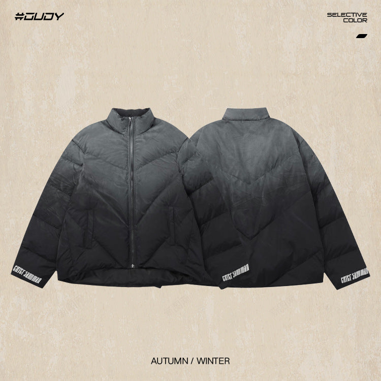 Gradient Letter Print Stand Neck Padded Jacket WN12645