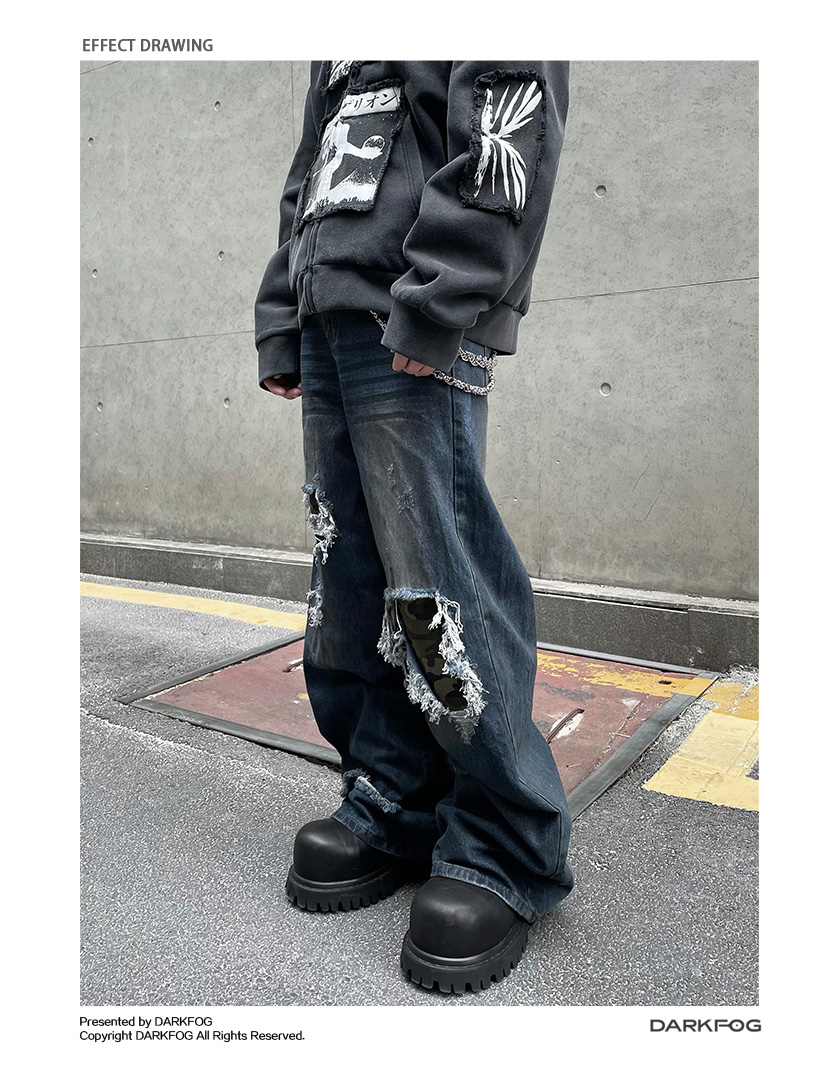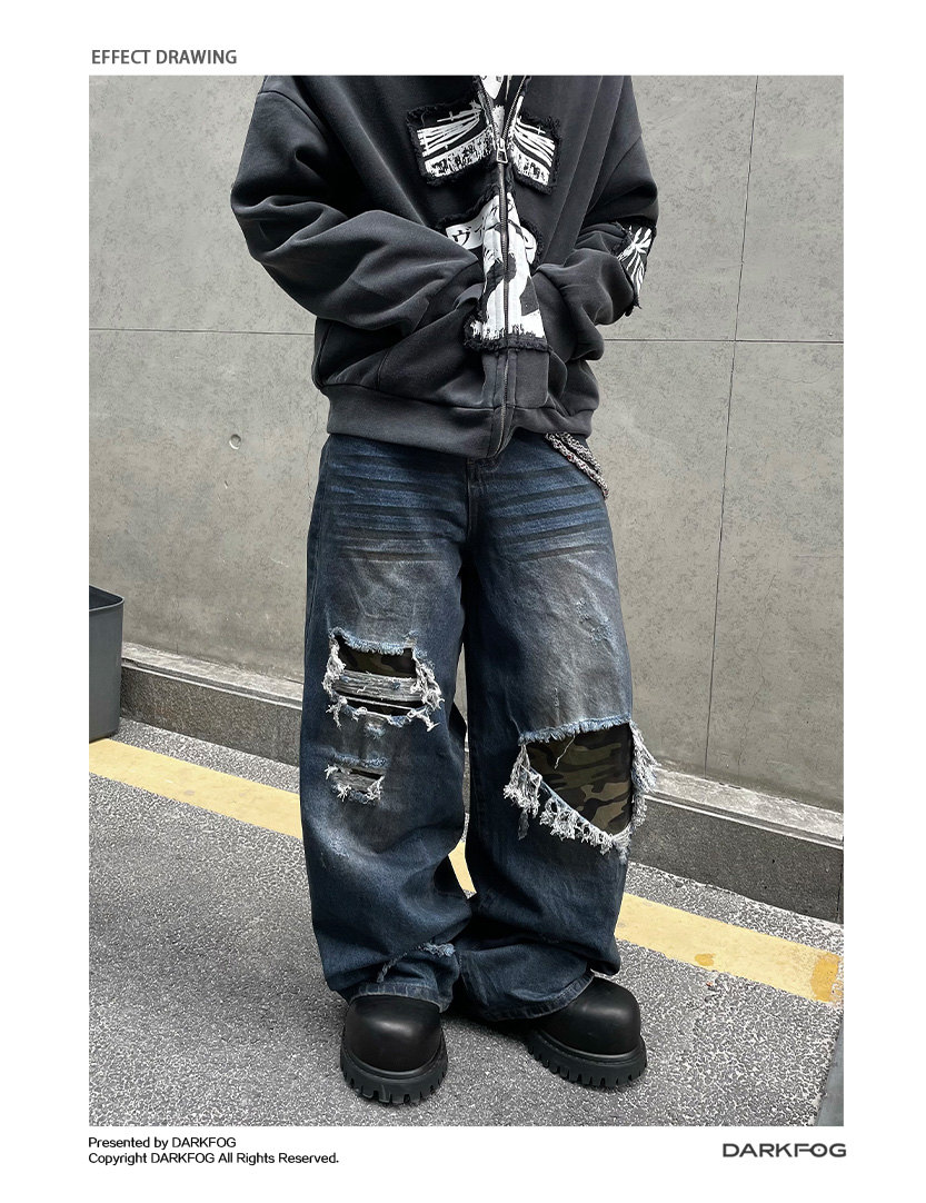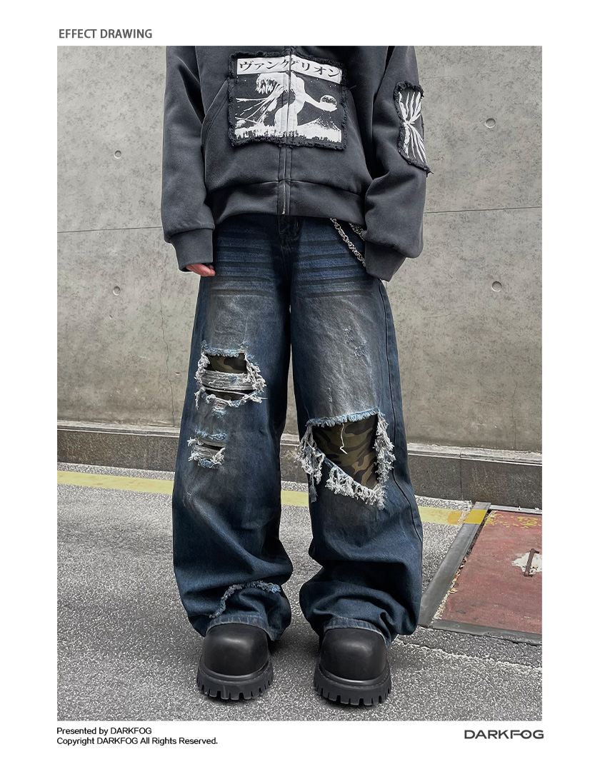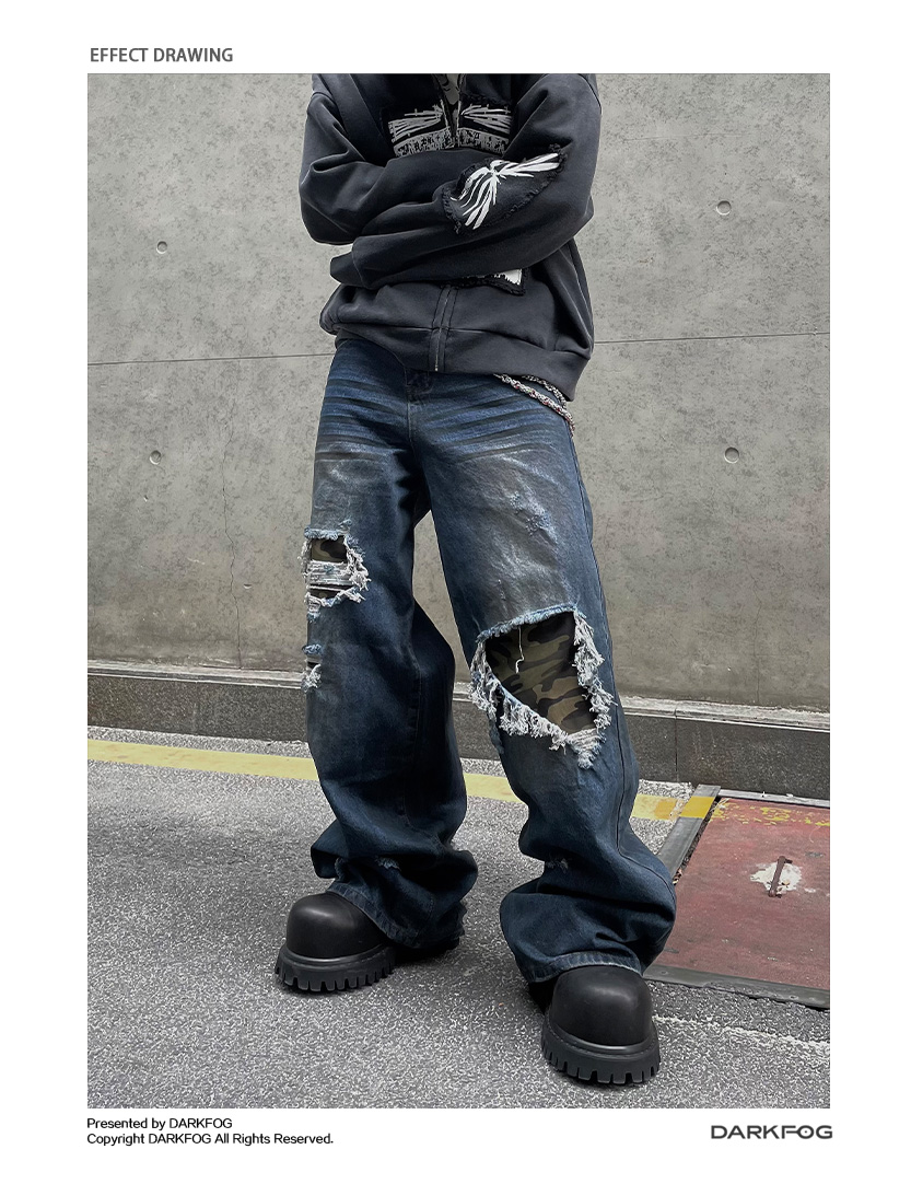Patchwork Camouflage Straight Denim Jeans WN12858