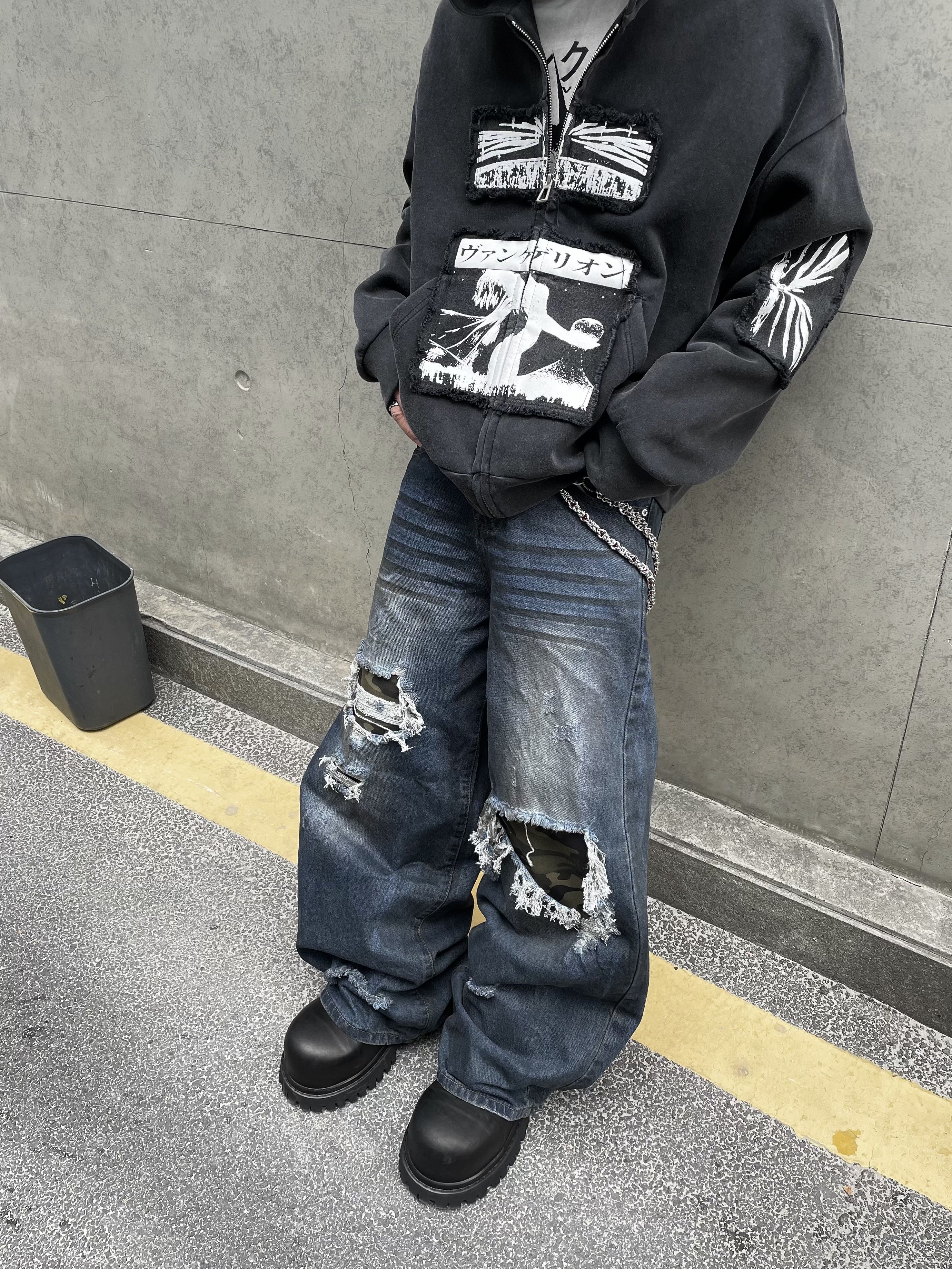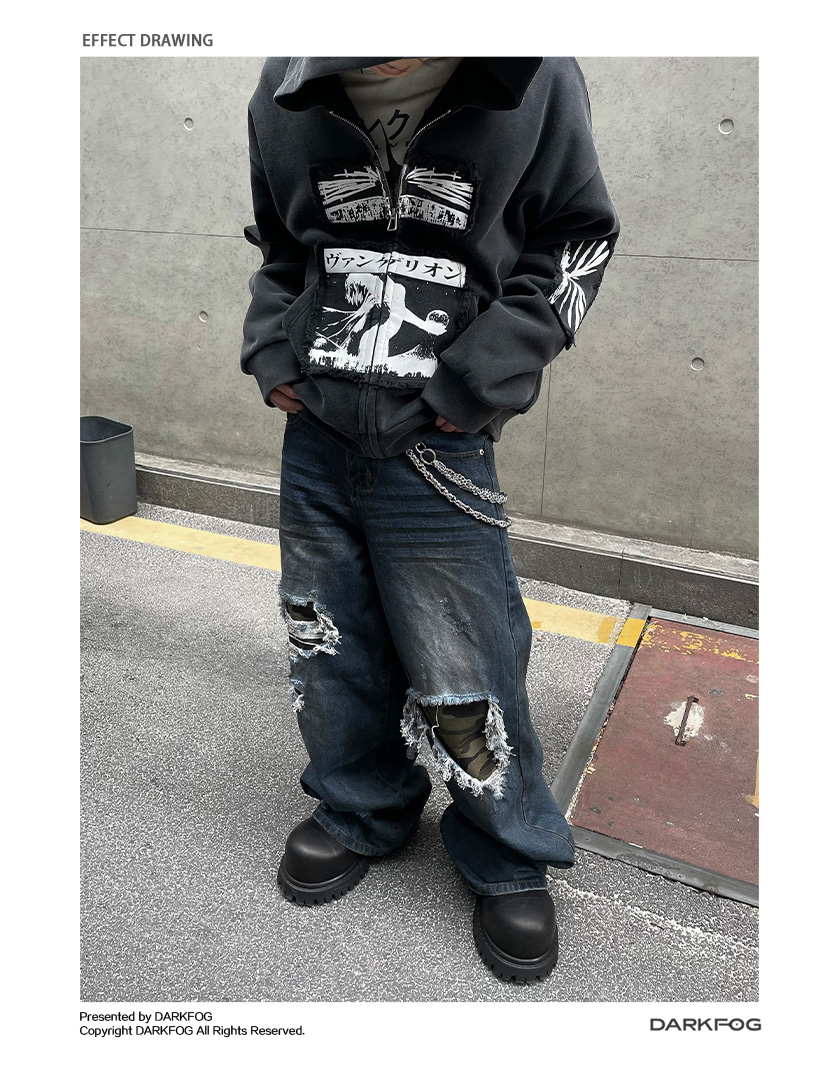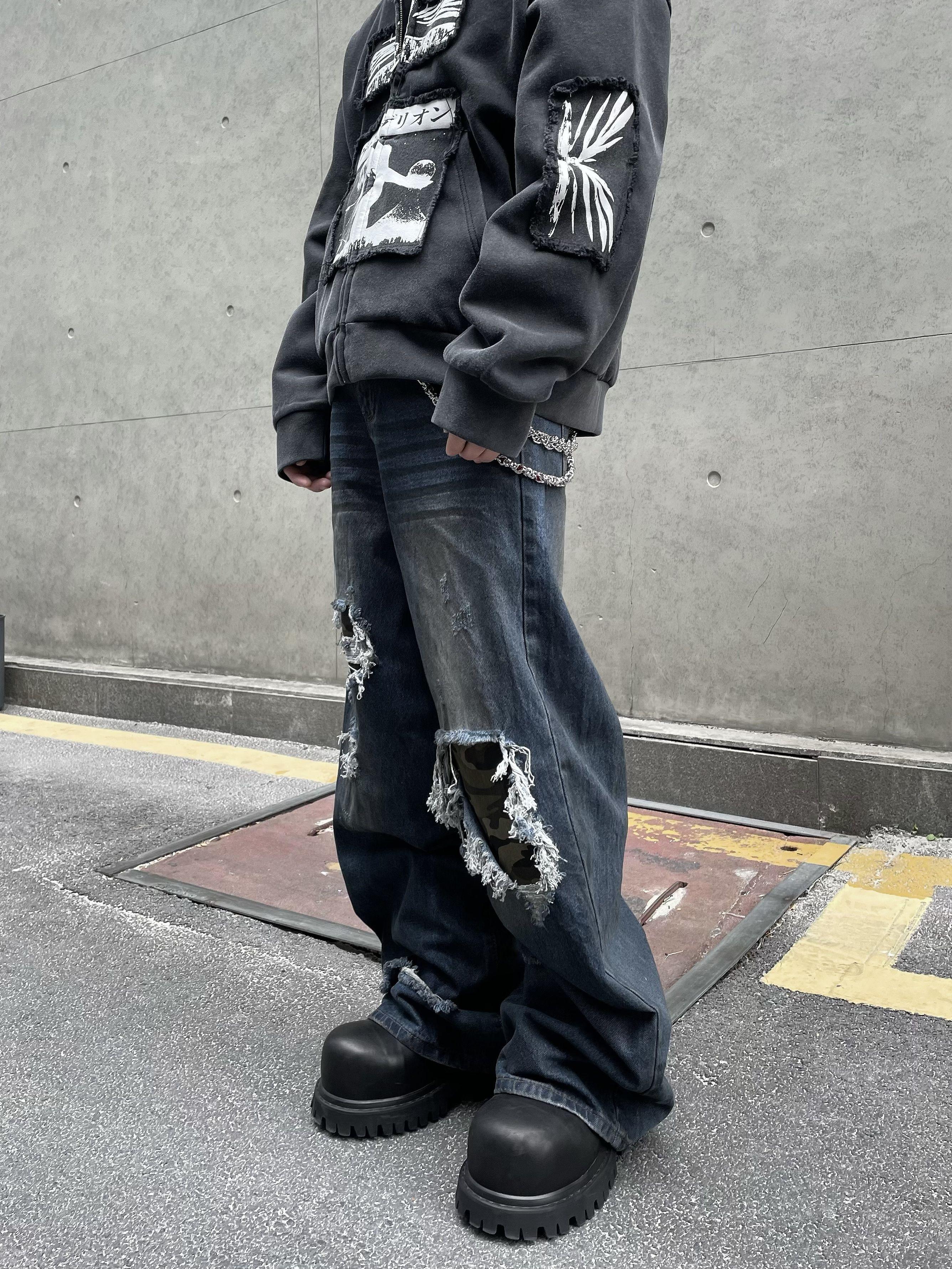 Patchwork Camouflage Straight Denim Jeans WN12858