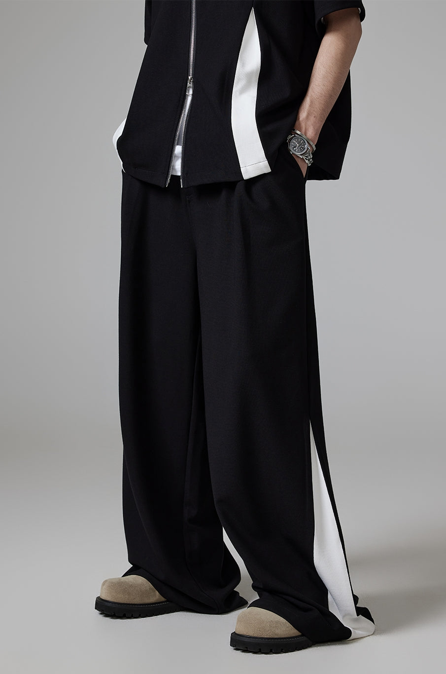 Black And White Stripe Oversize Short Sleeve Shirt & Wide-Leg Pants Setup WN13292