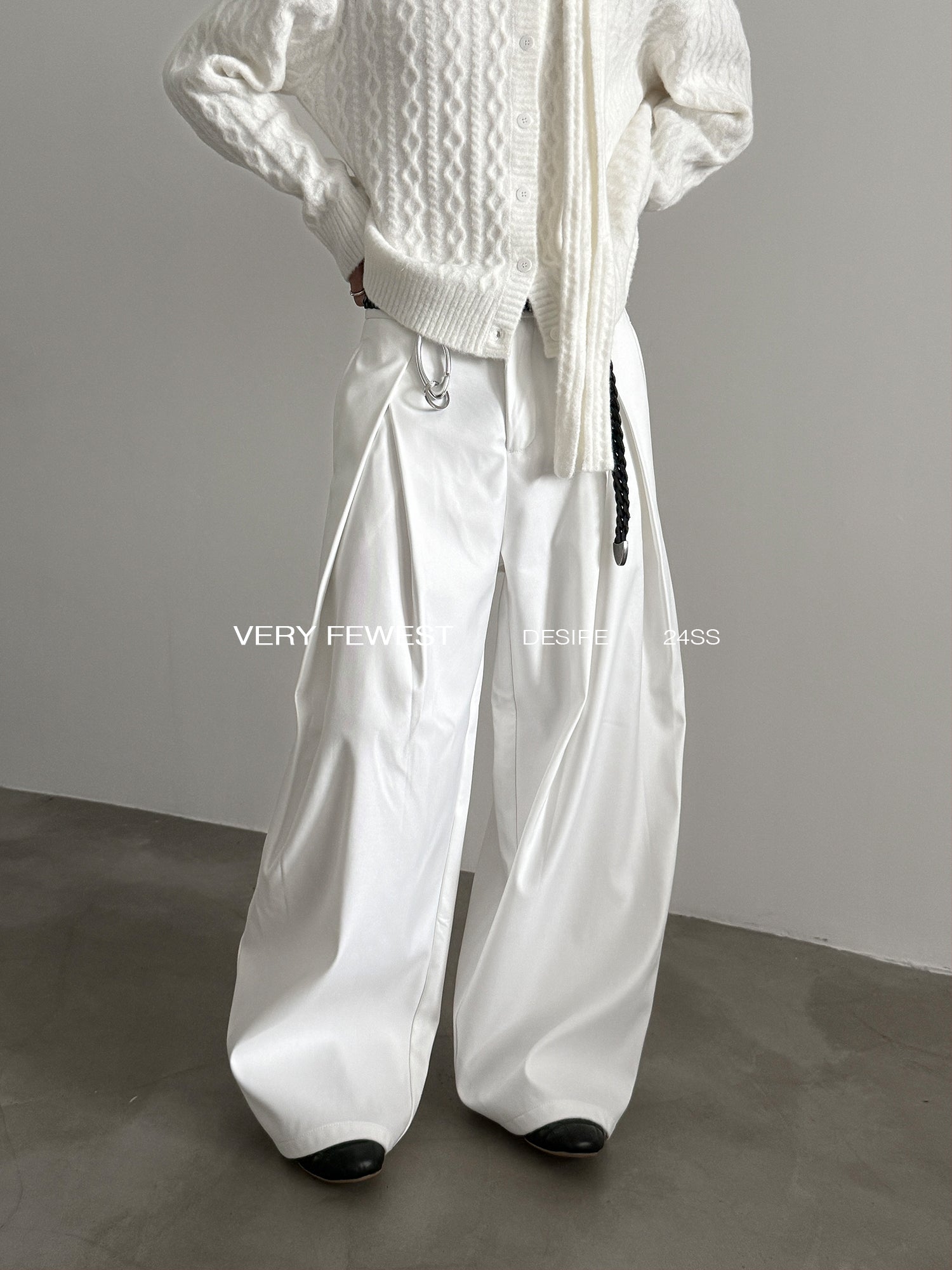 Heavyweight Pleats Wide-Leg Trousers WN15267