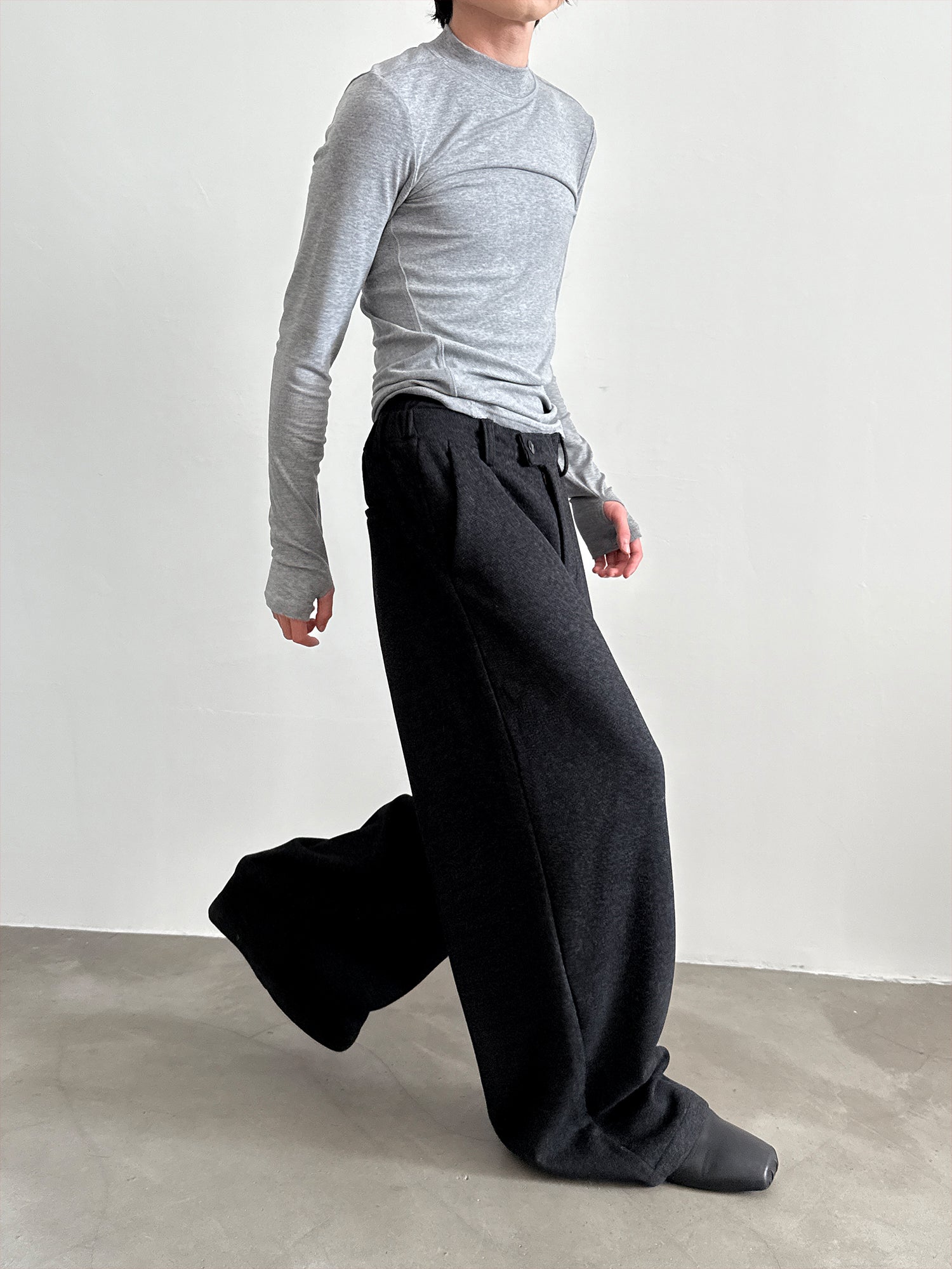 Wool Blend Draping Half-Elastic Wide-Leg Trousers WN15282