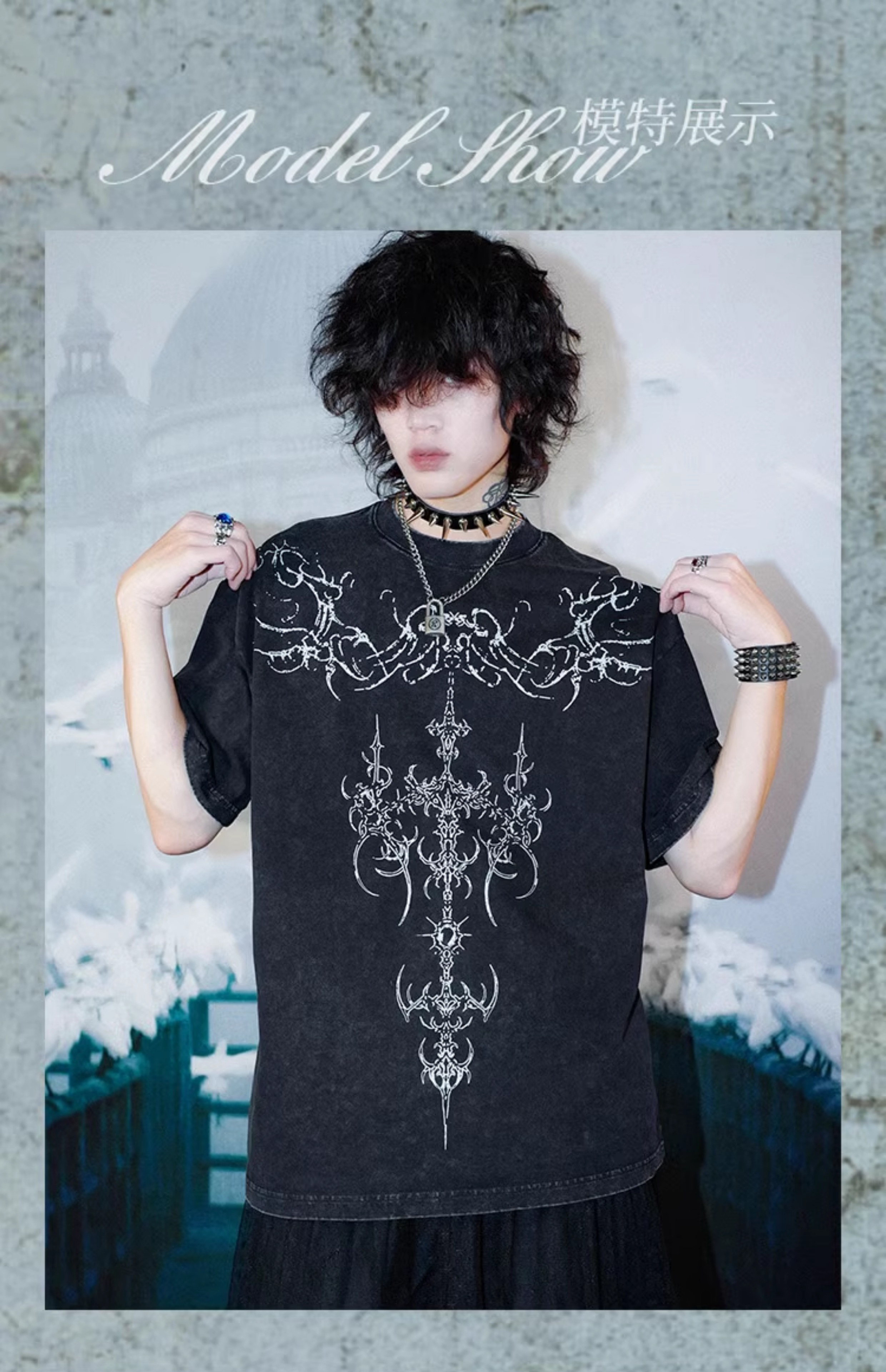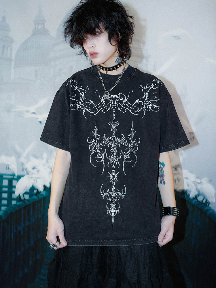 Washed Graphic Print Oversize Short Sleeve T-Shirt WN15993