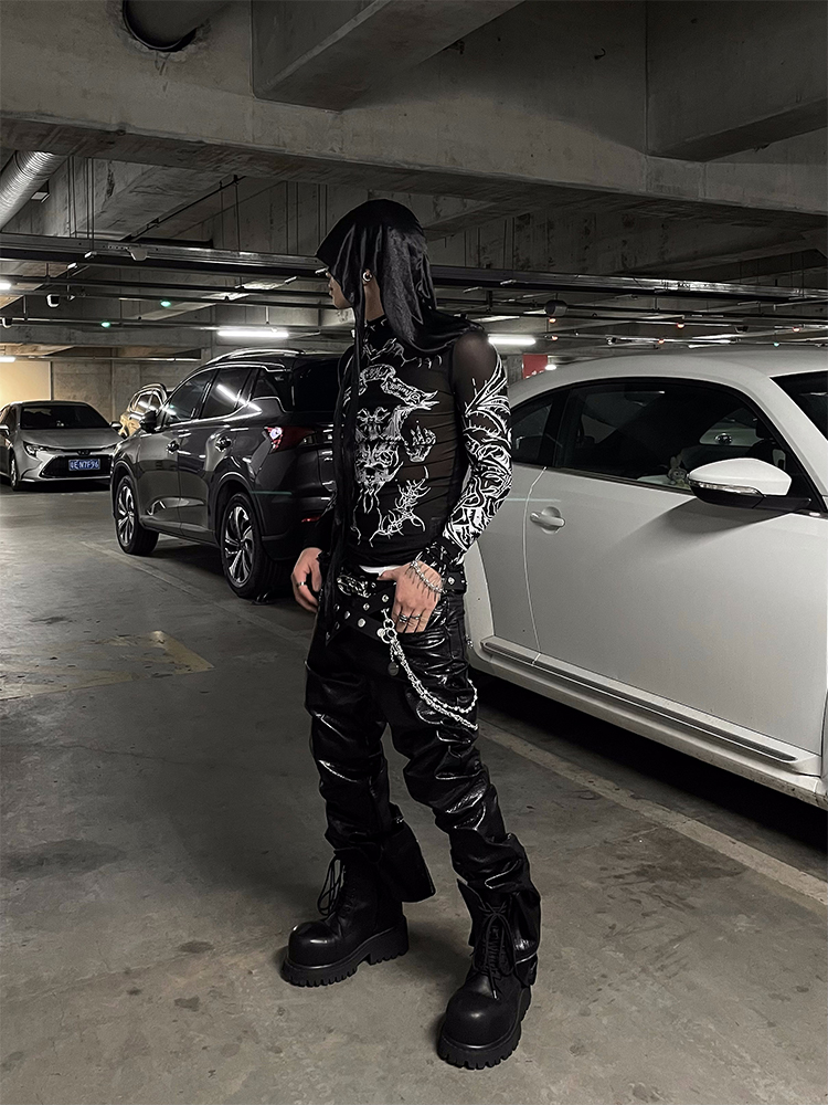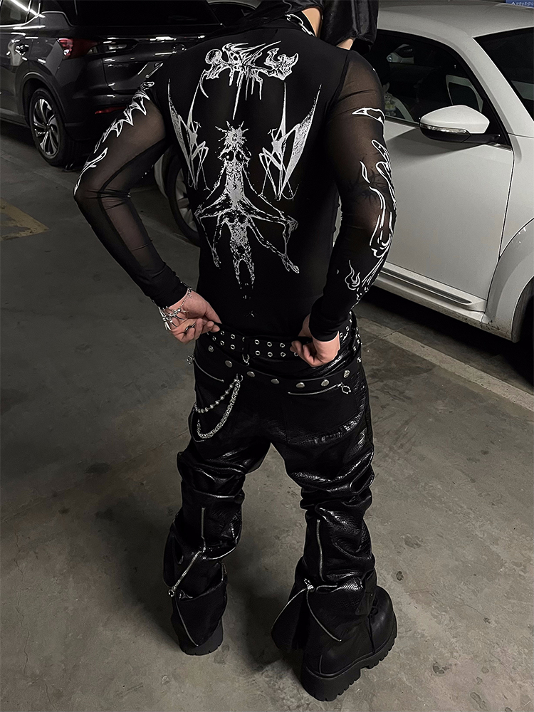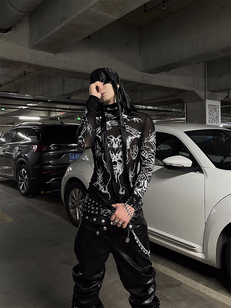 Mesh See-Through High-Neck Long Sleeve T-Shirt WN16309