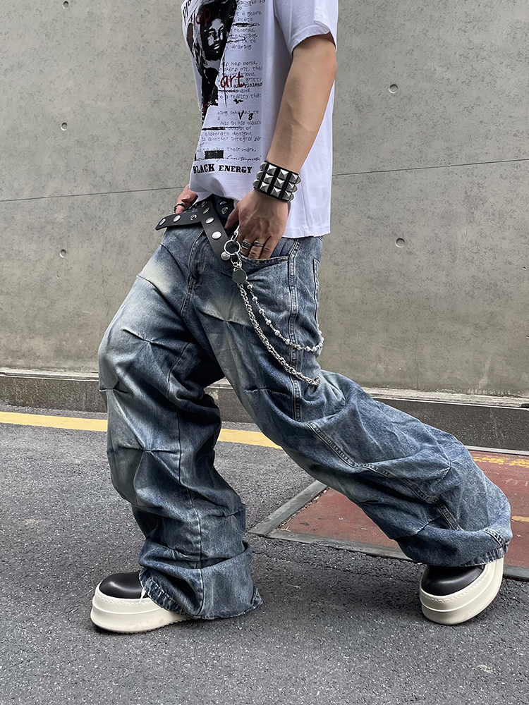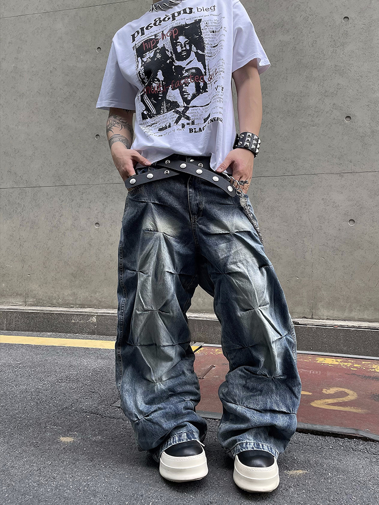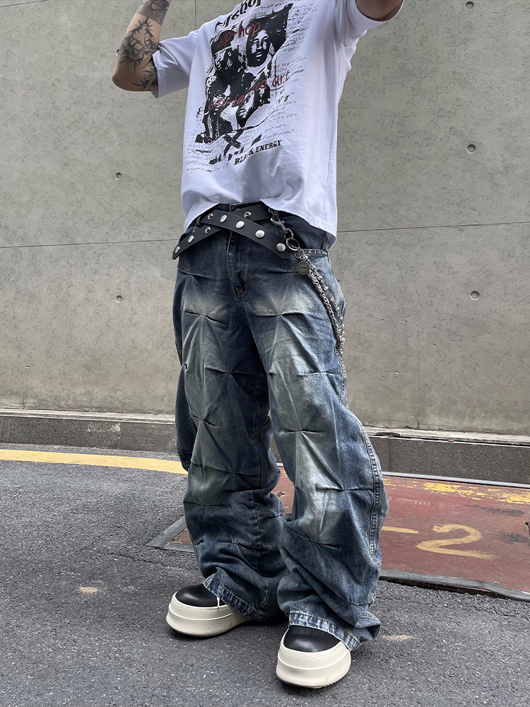 Wrinkle Design Wash Wide Leg Denim Jeans WN18808