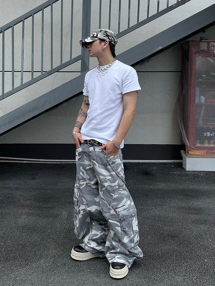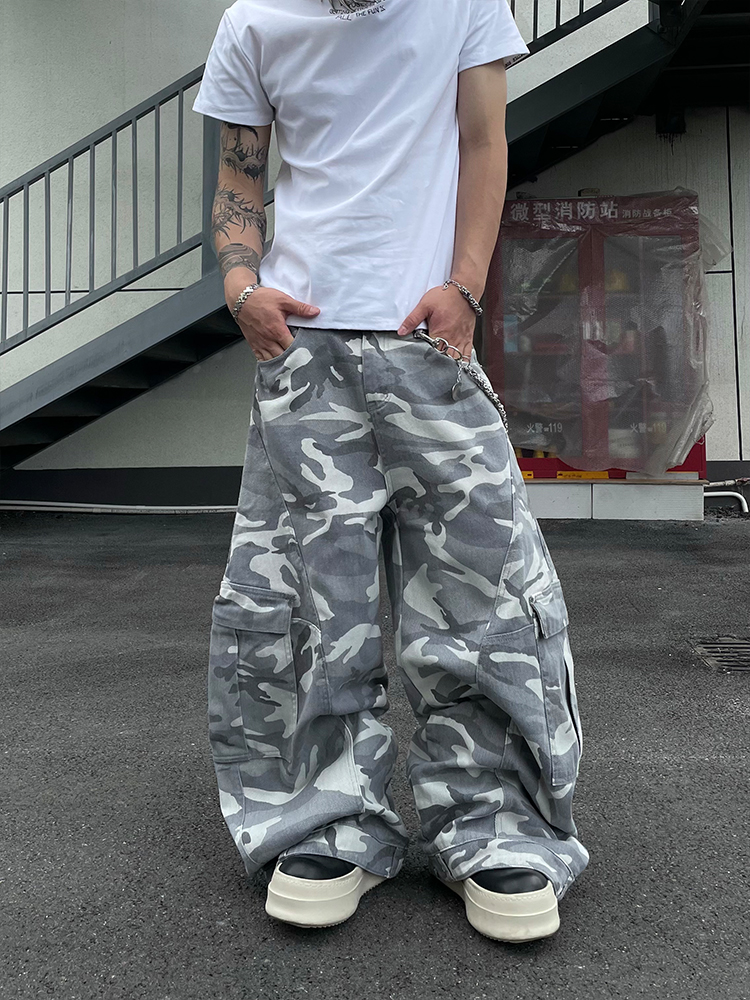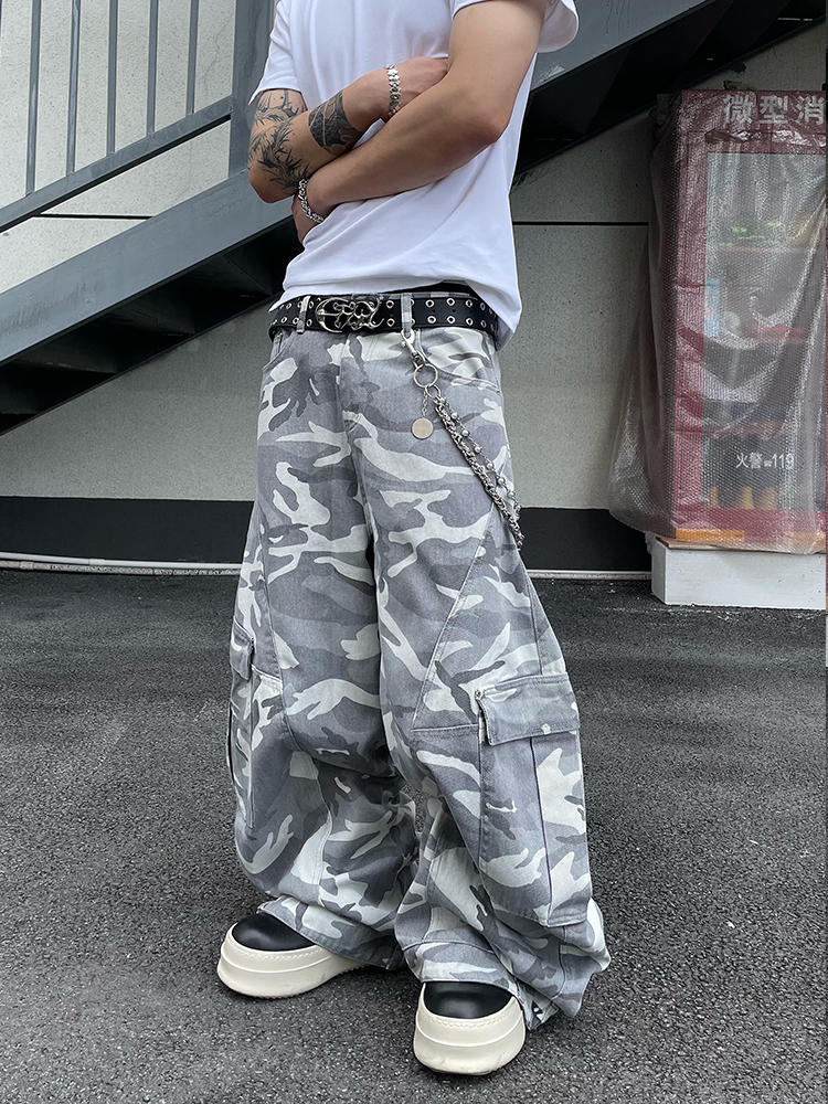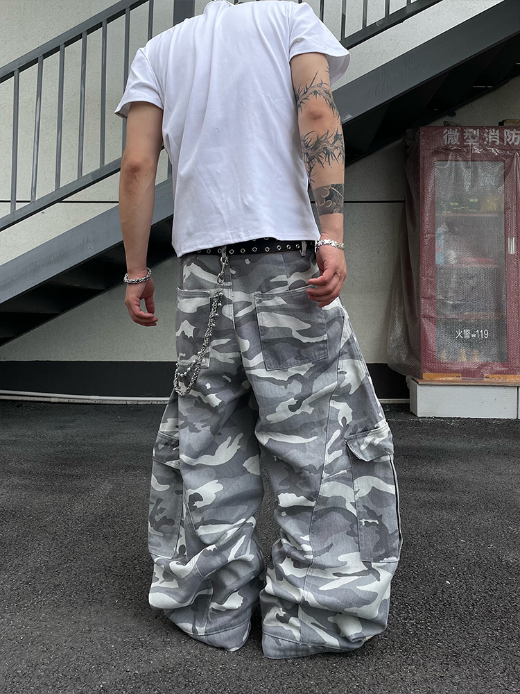 Multi-Pocket Camouflage Wide Leg Cargo Pants WN18830