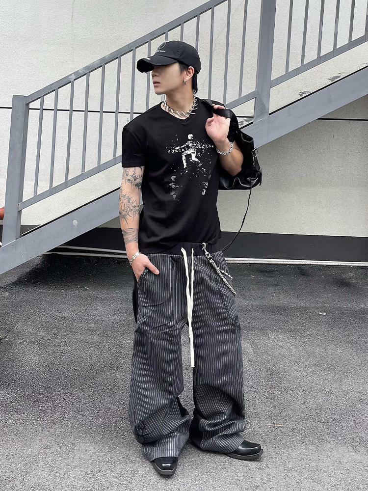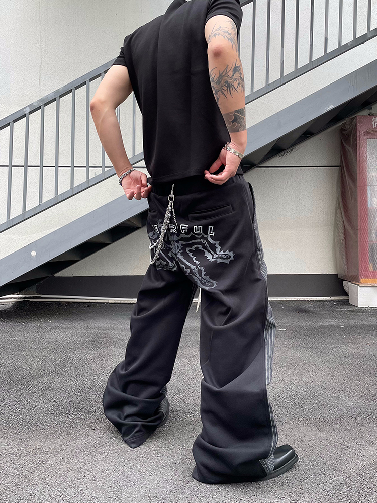 Striped Patchwork Design Vintage Style Wide Leg Pants WN18842
