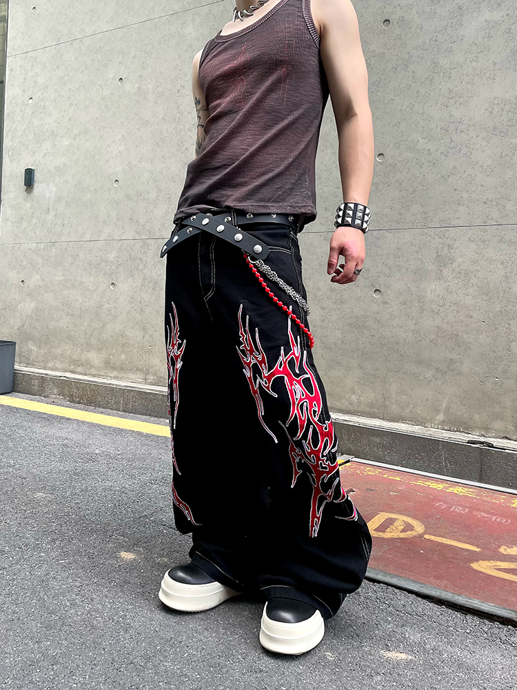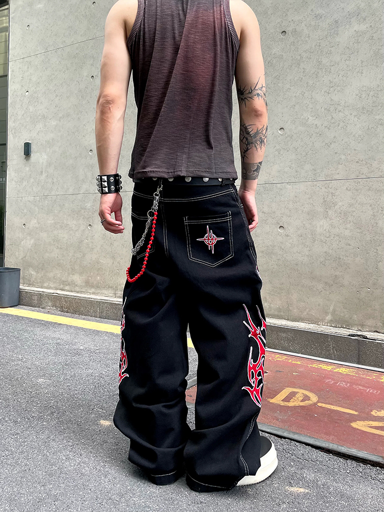 Thorn Embroidery Wide Leg Denim Jeans WN18848