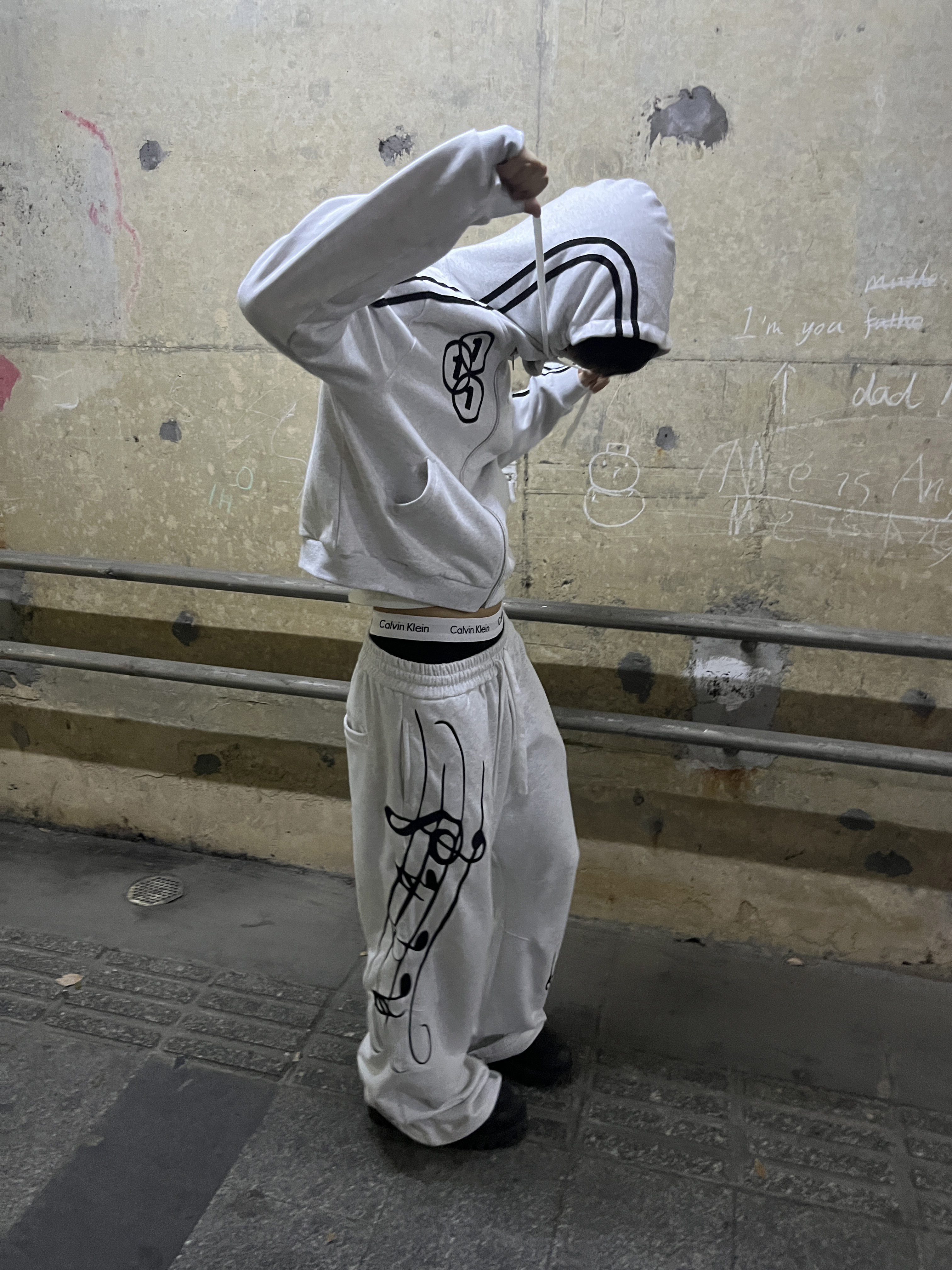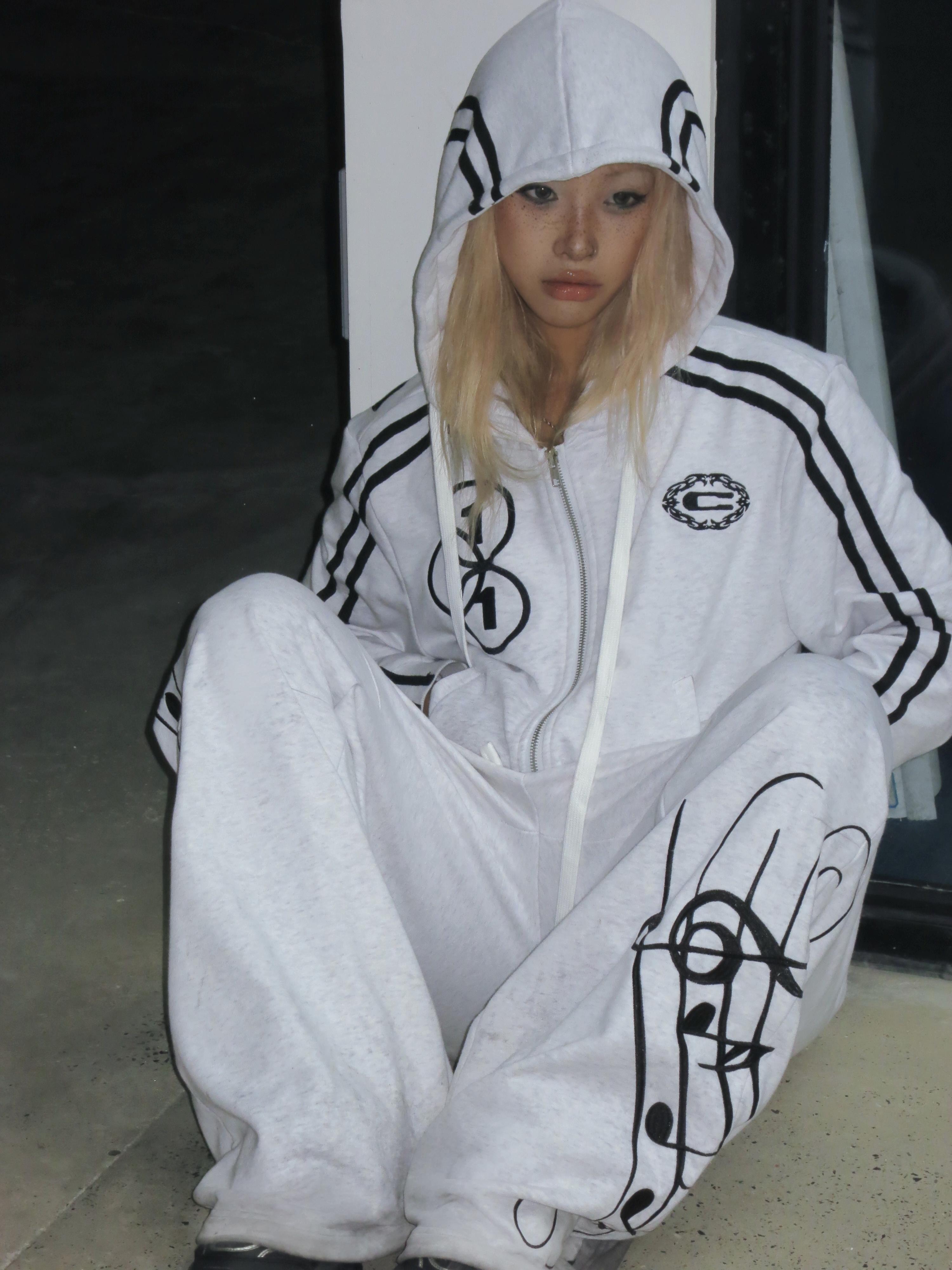 Music Score Embroidery Wide Leg Sporty Sweat Pants WN19053