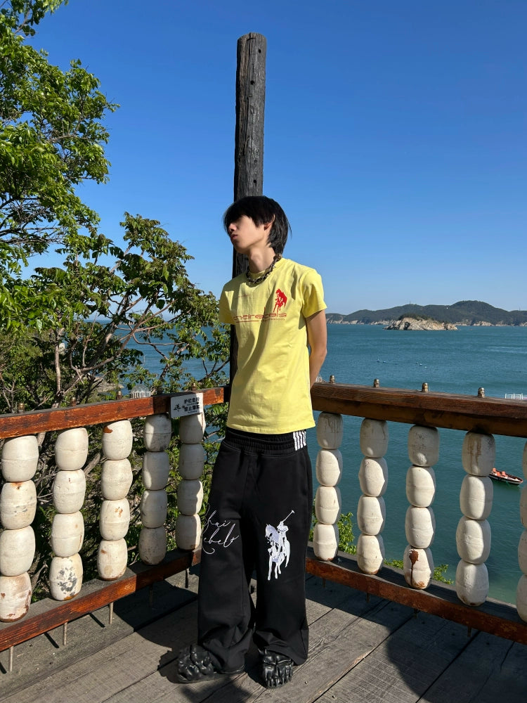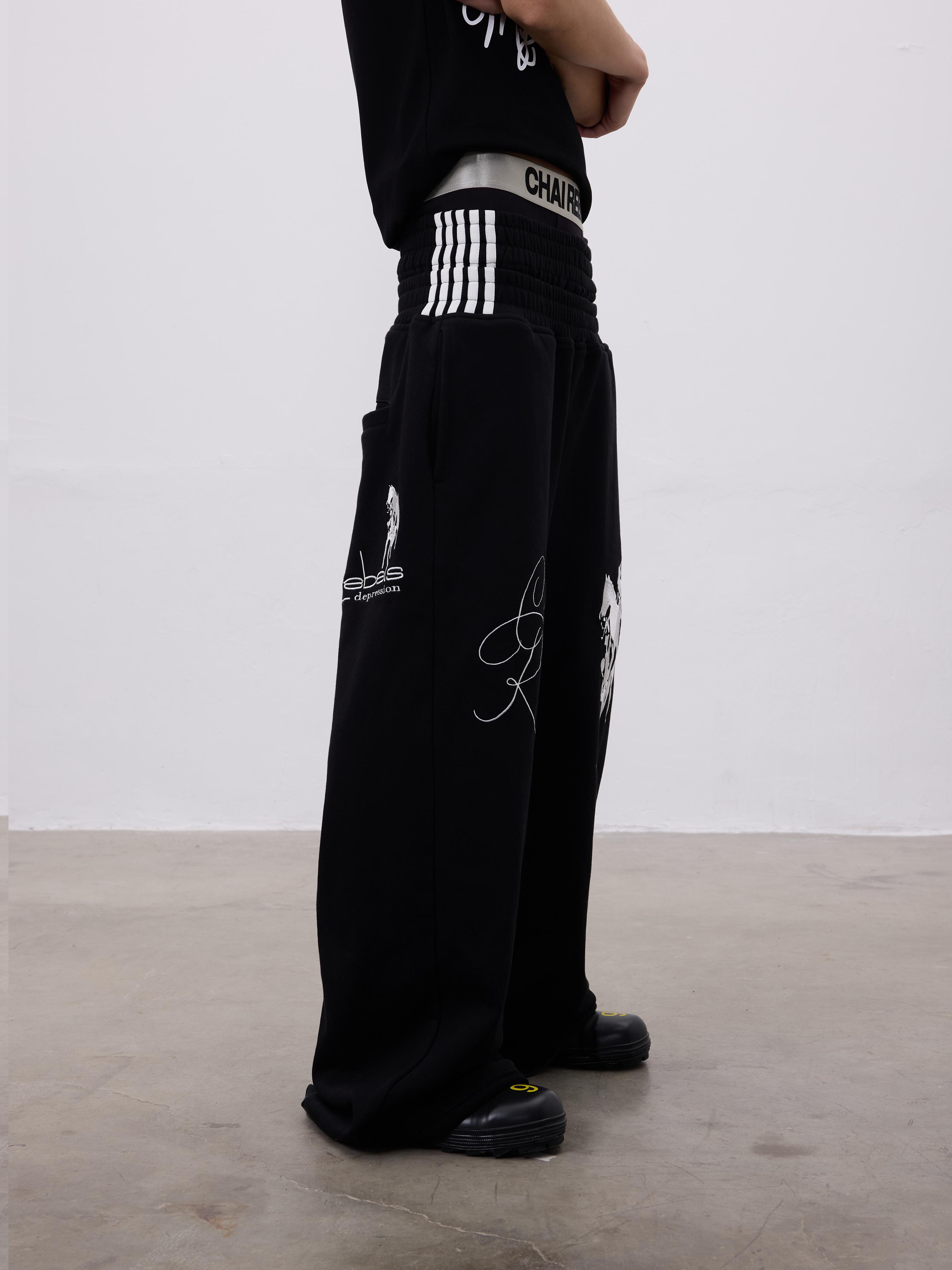 Horse Logo Embroidery Reversible Baggy Sweat Pants WN19065