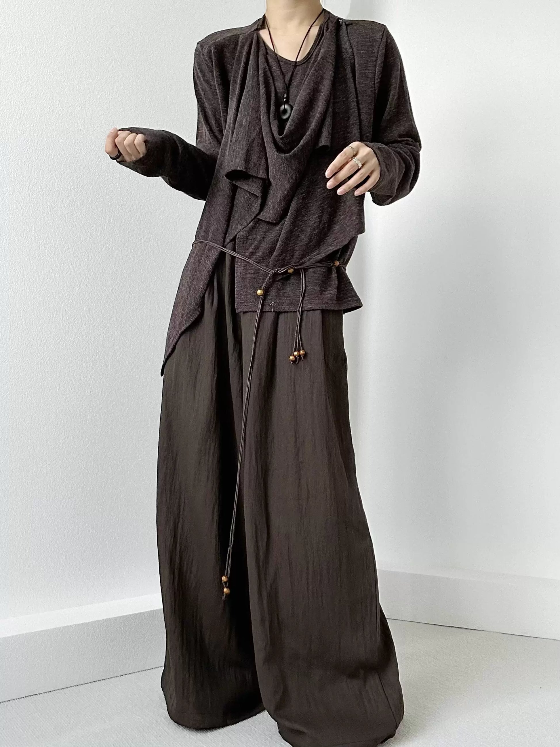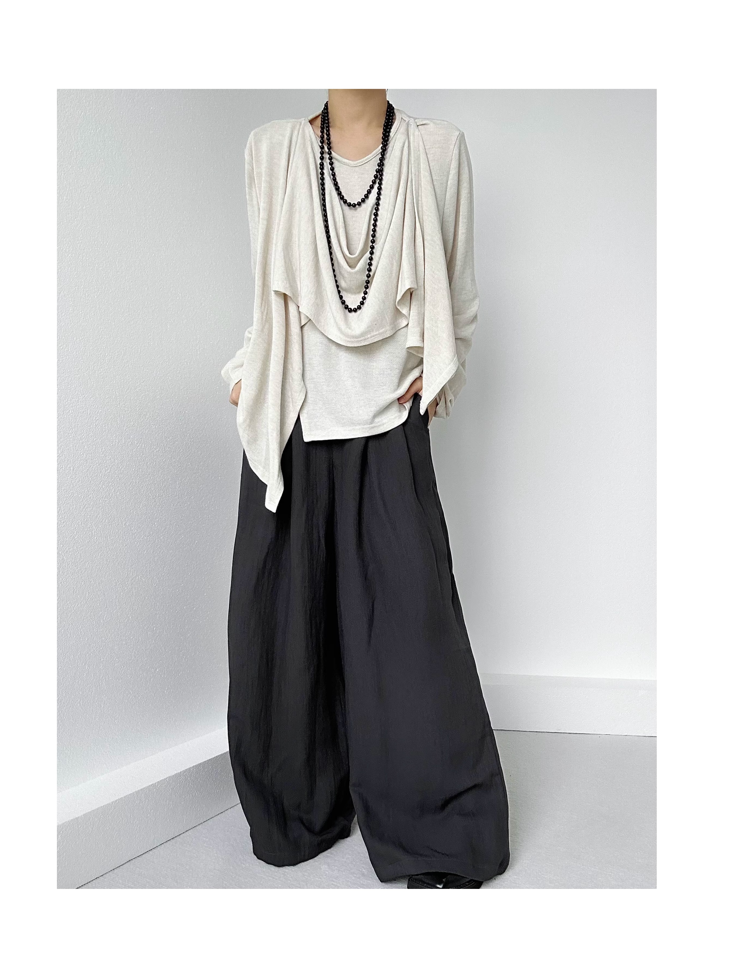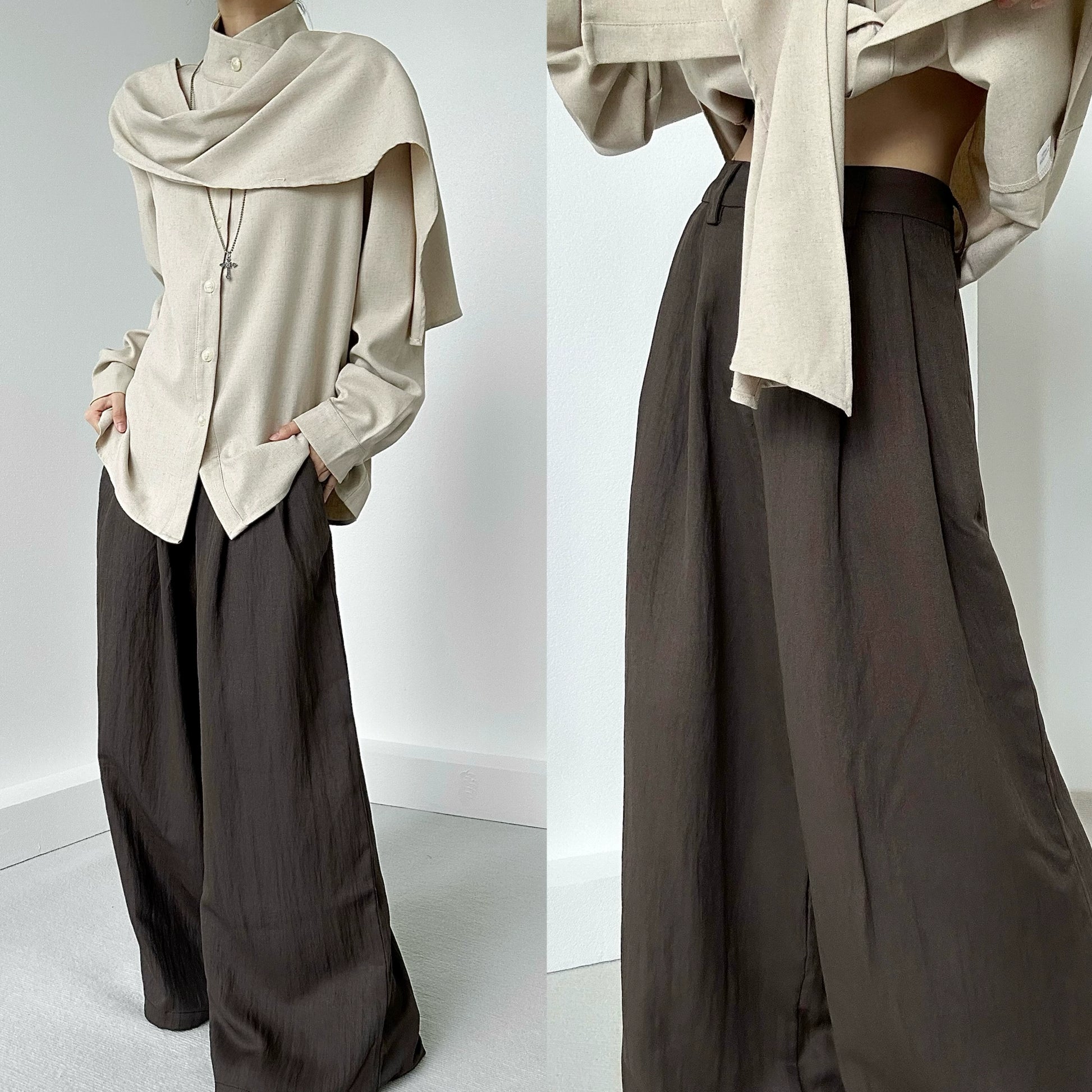 Pleats Relaxed Fit Flowy Wide Leg Pants WN19649