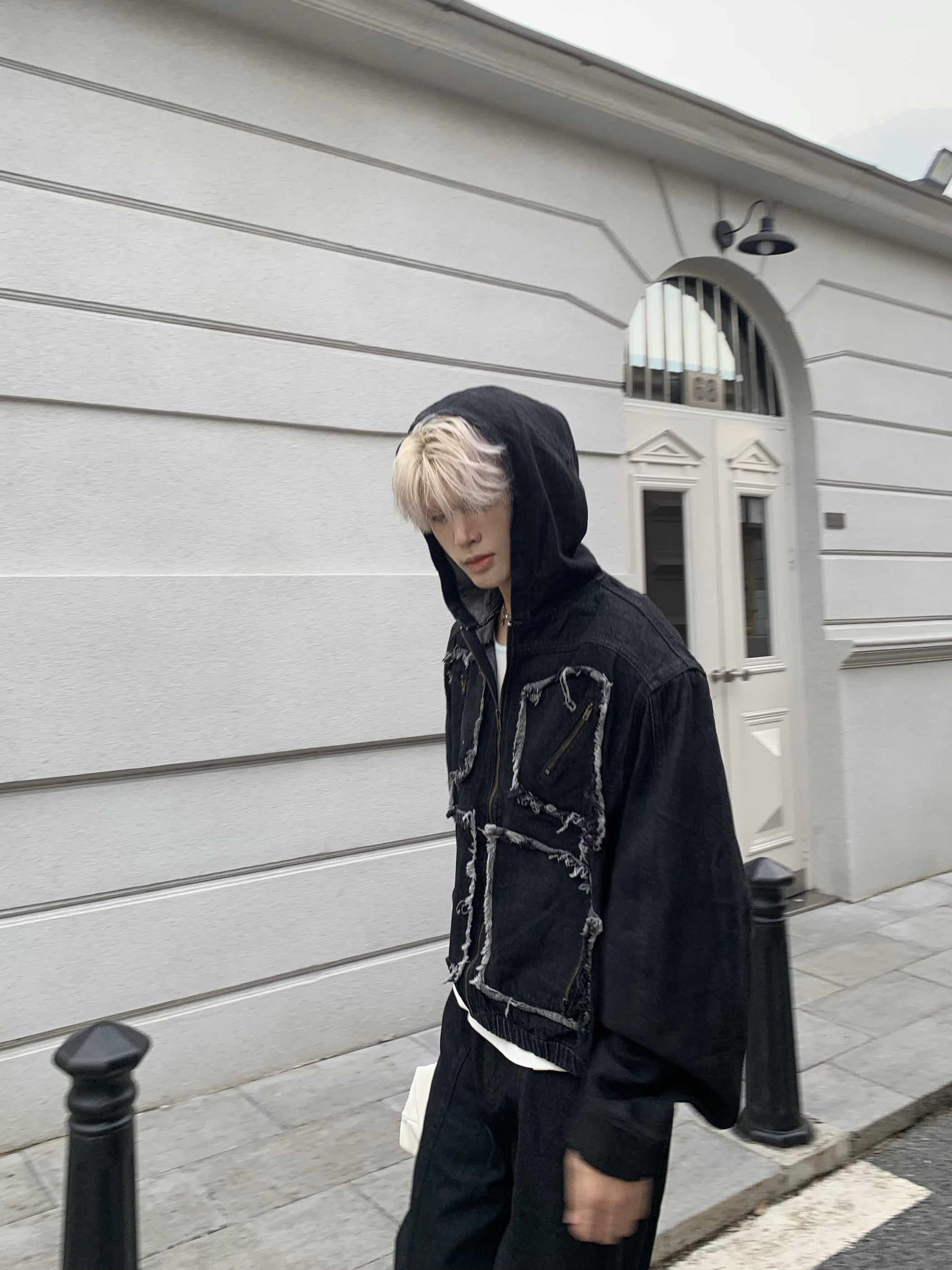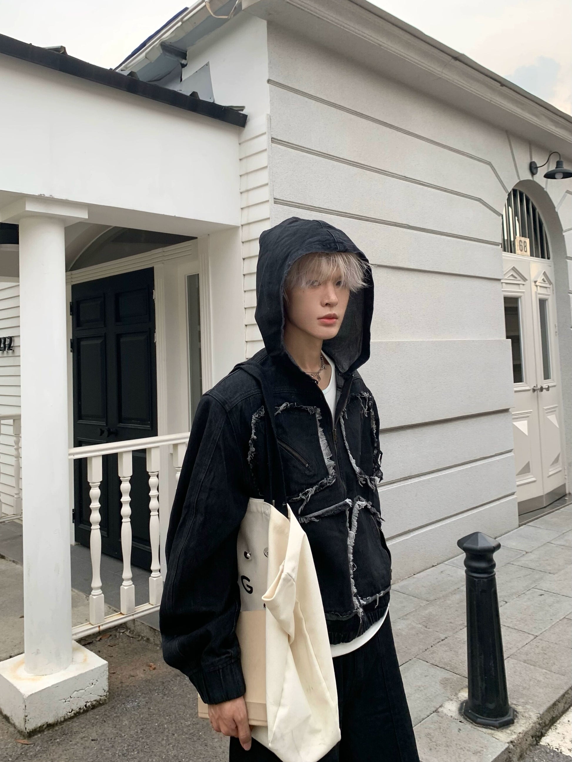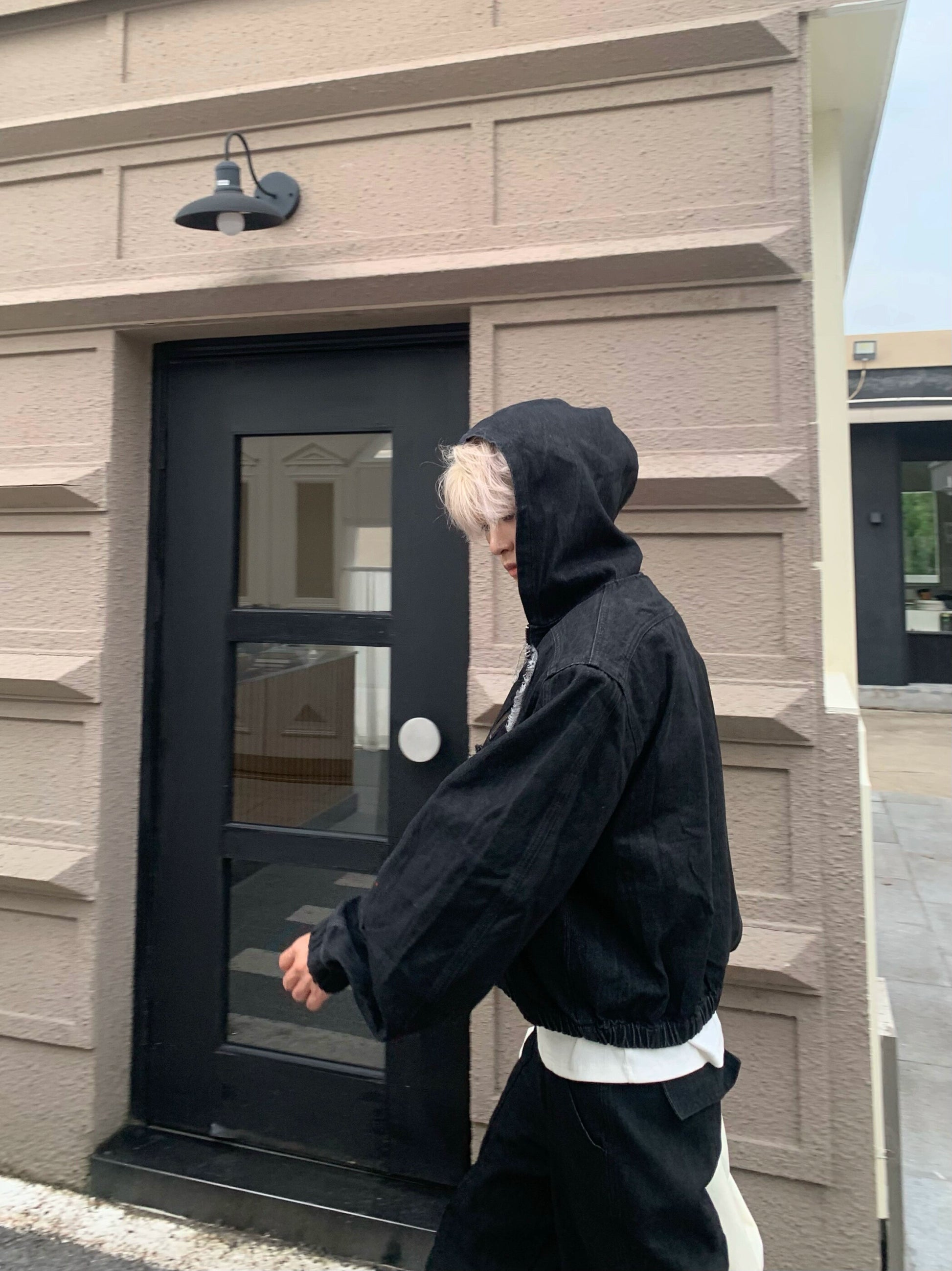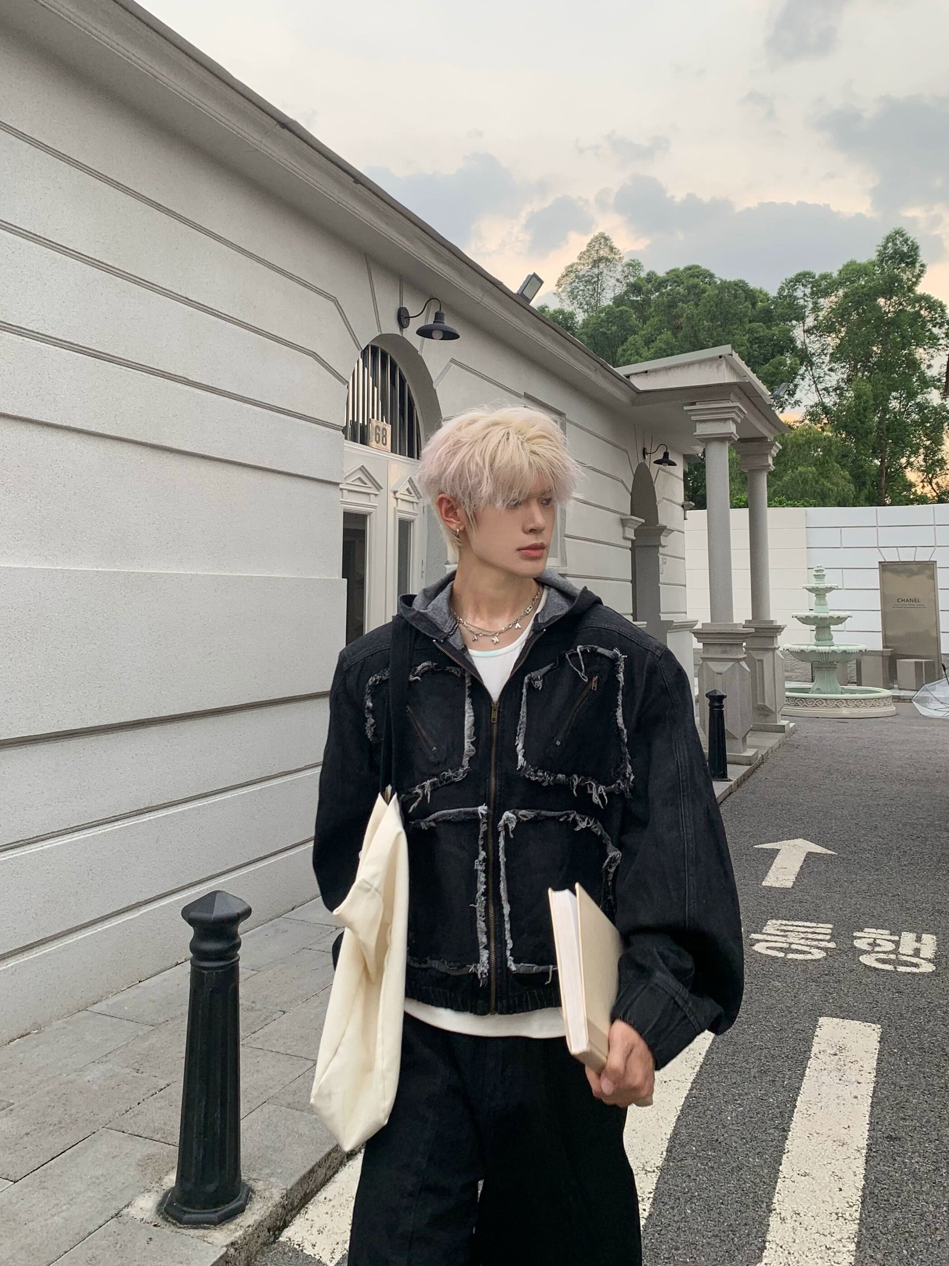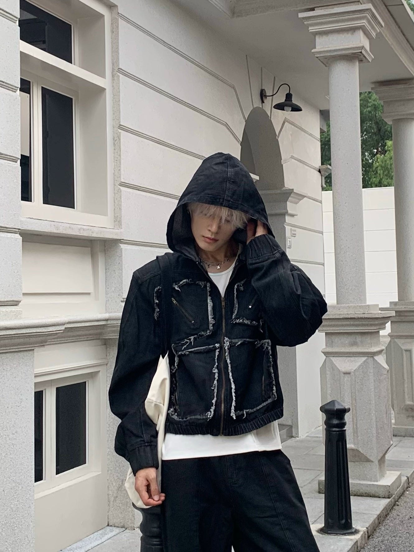 Metal Zipper Panel Denim Jacket & Wide Leg Pants Setup WN19827