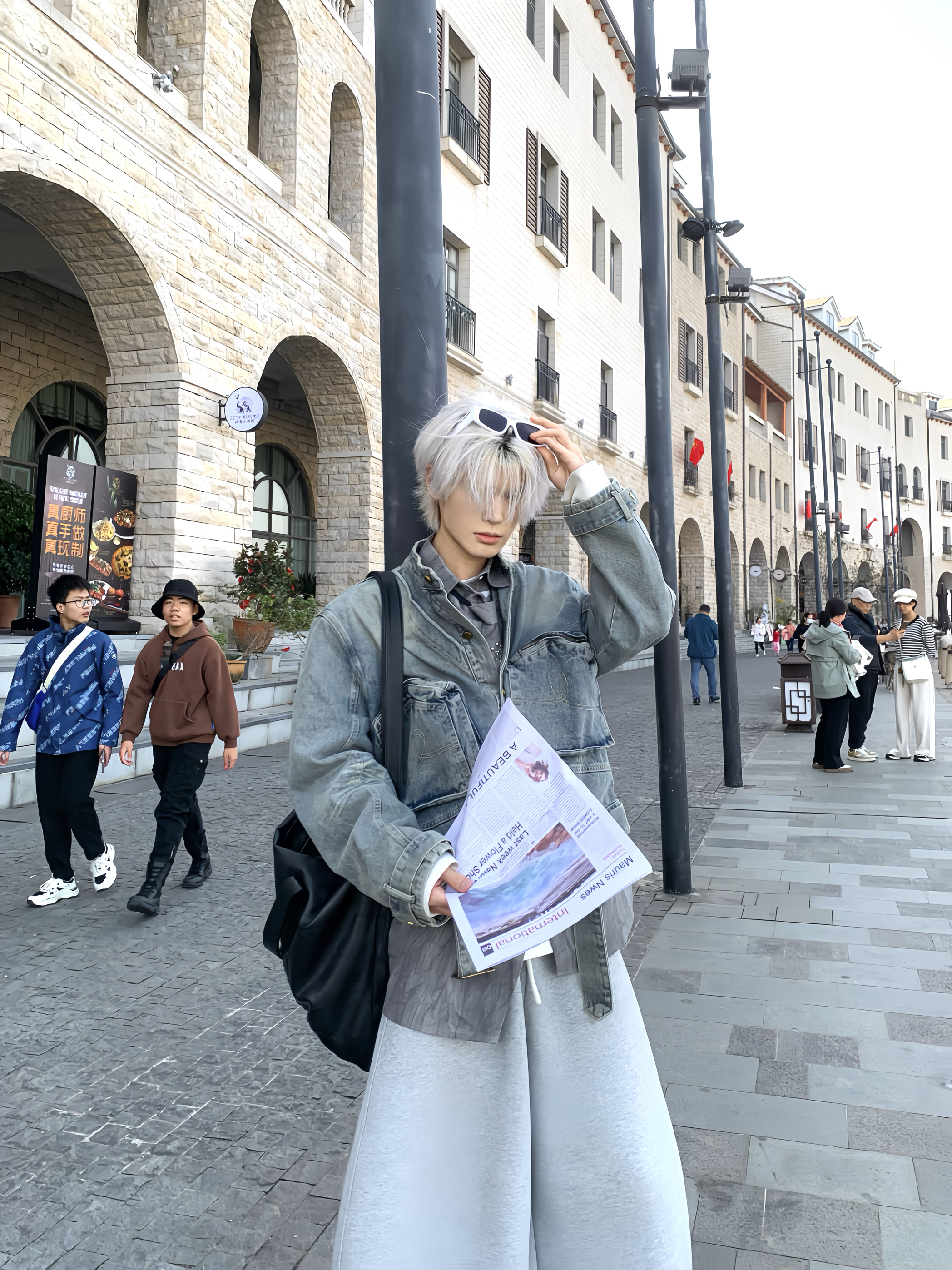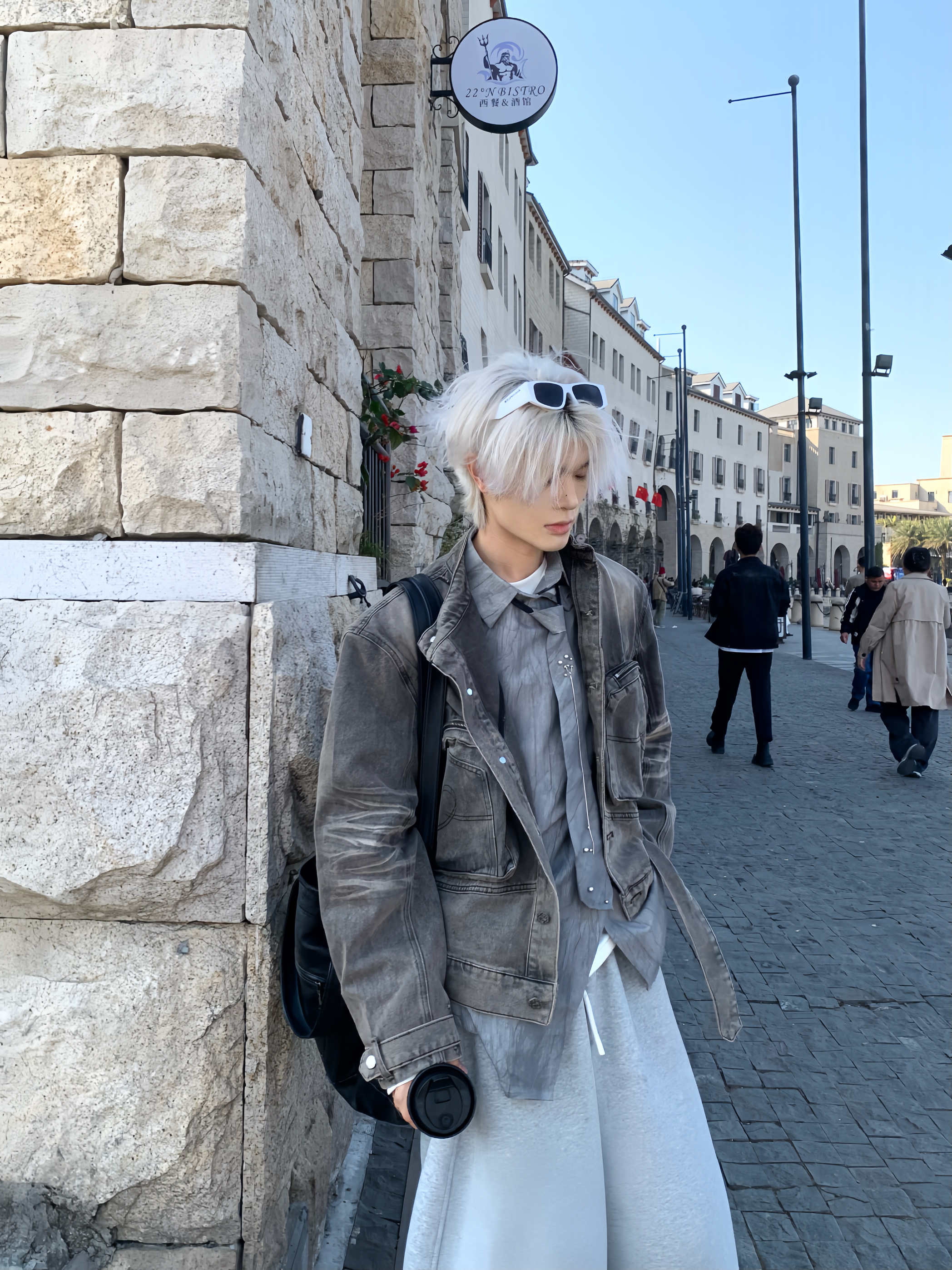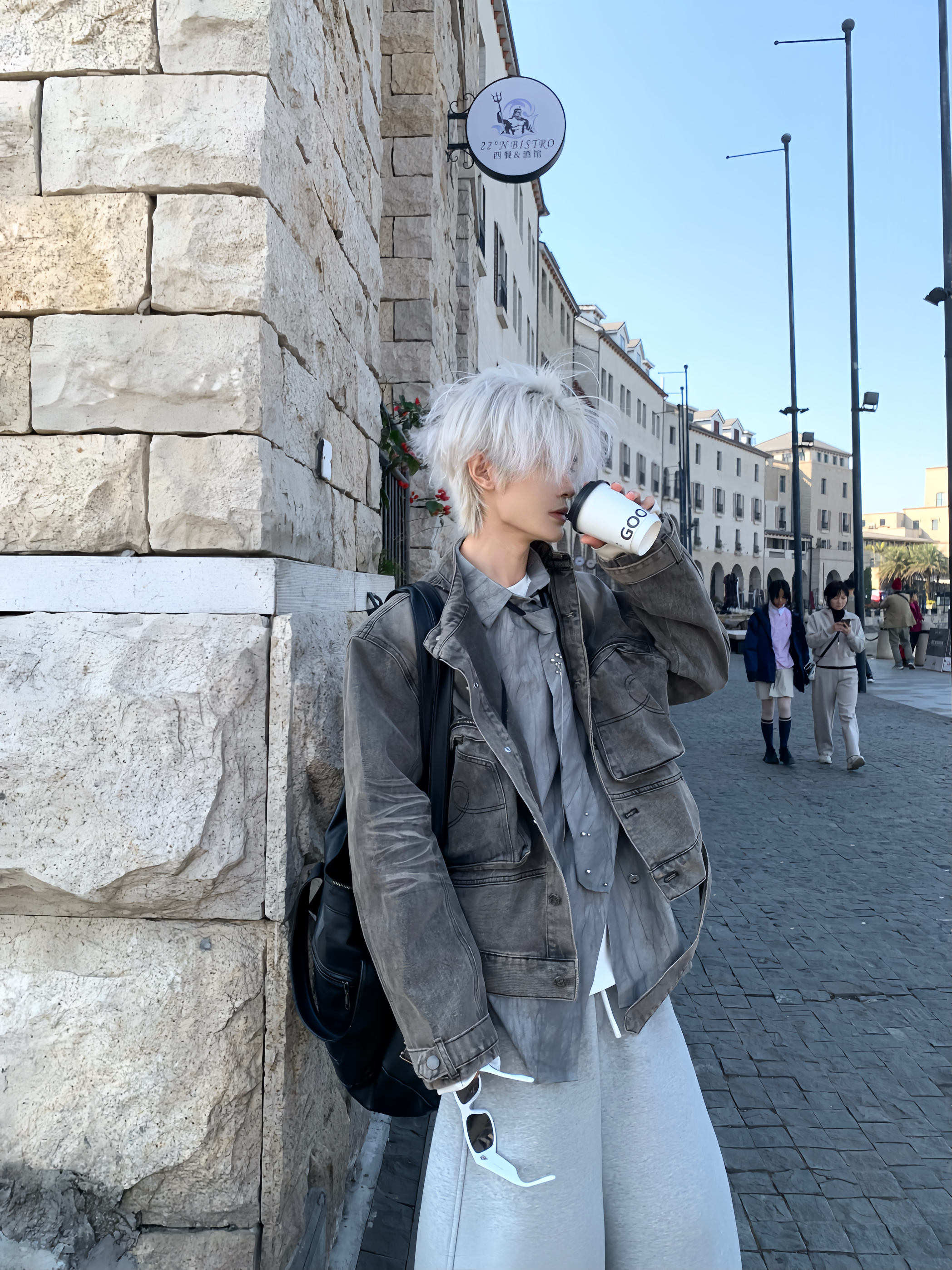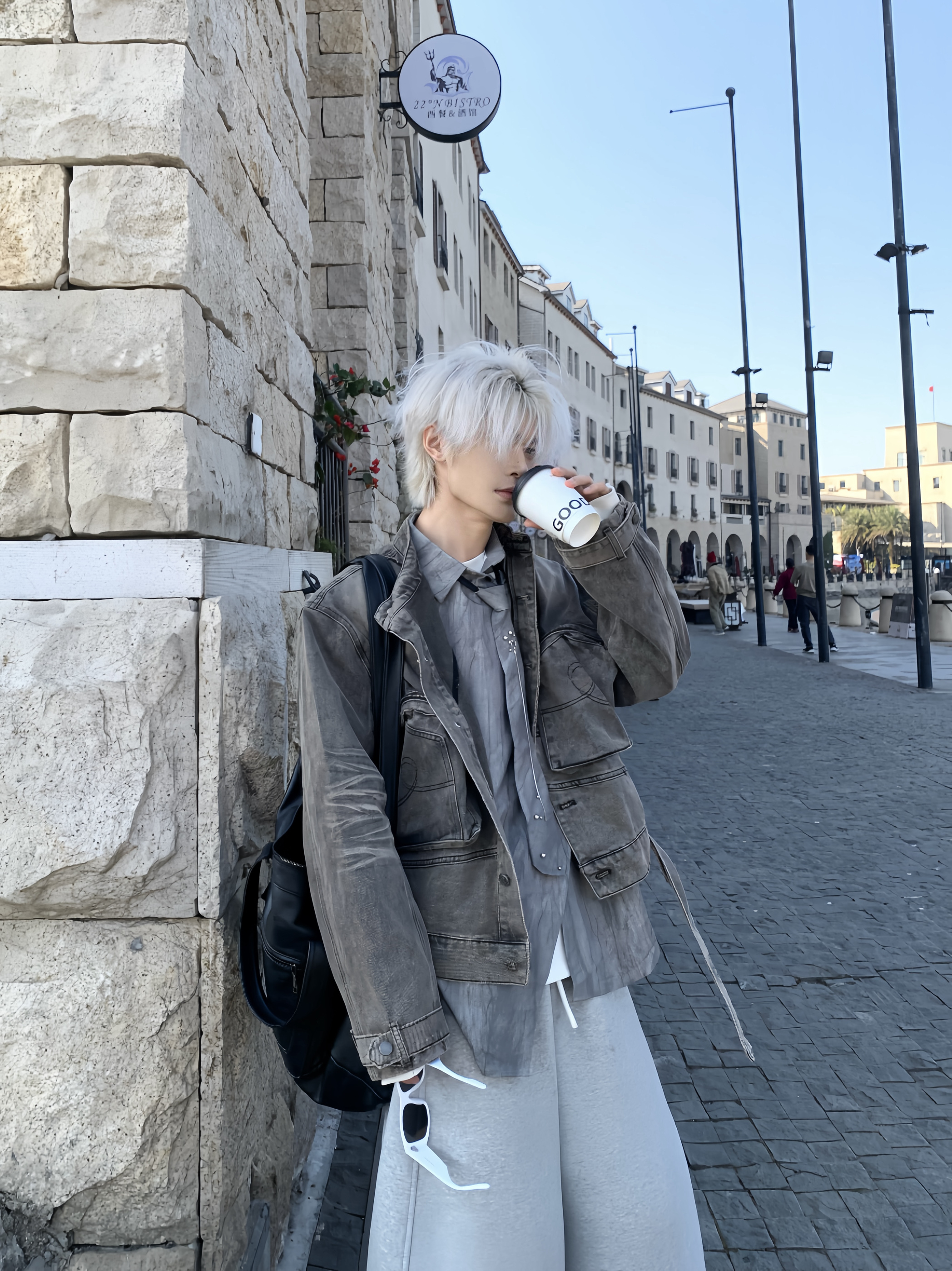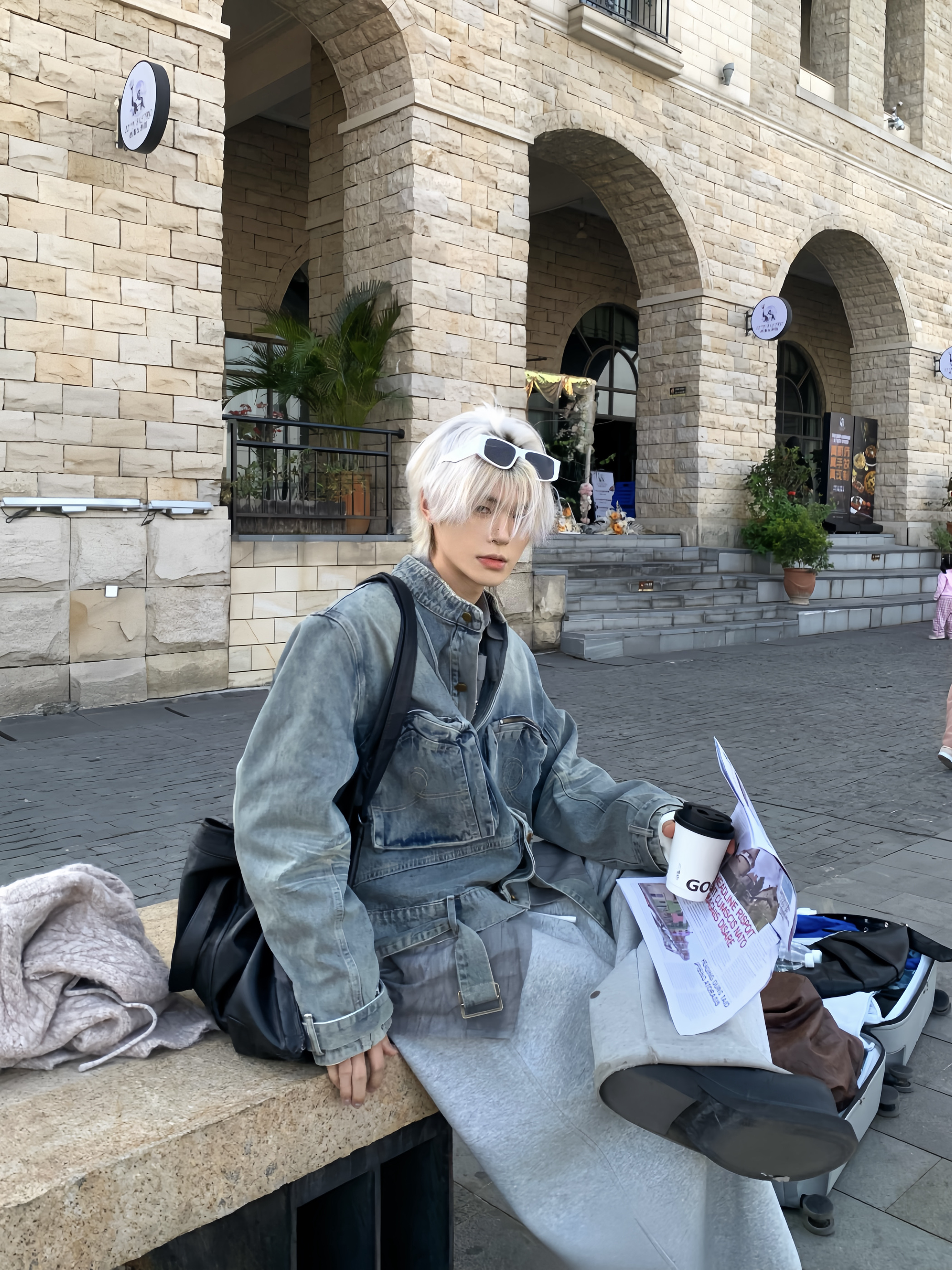 Large Pocket Button Shoulder-Pad Denim Jacket WN19930