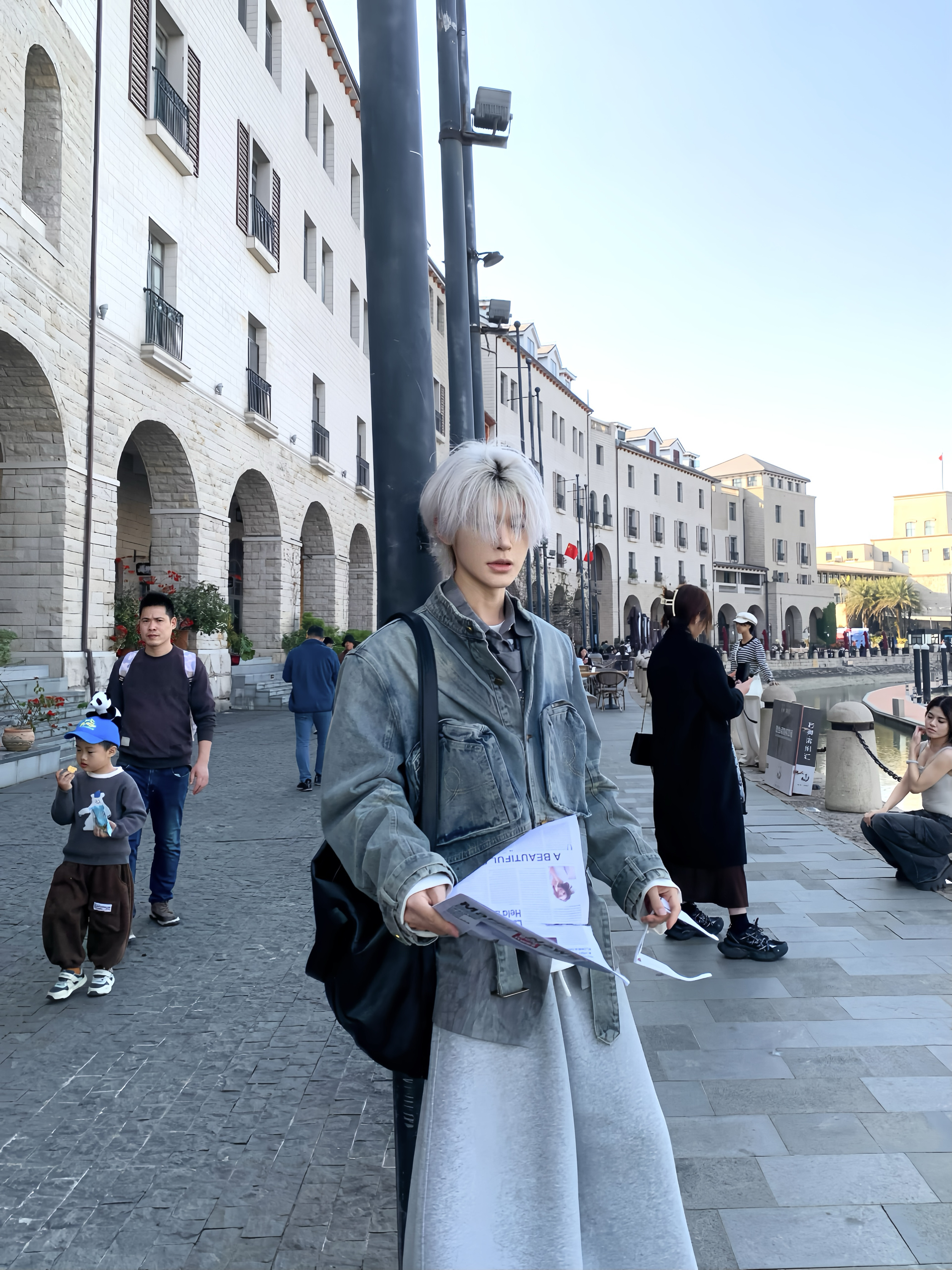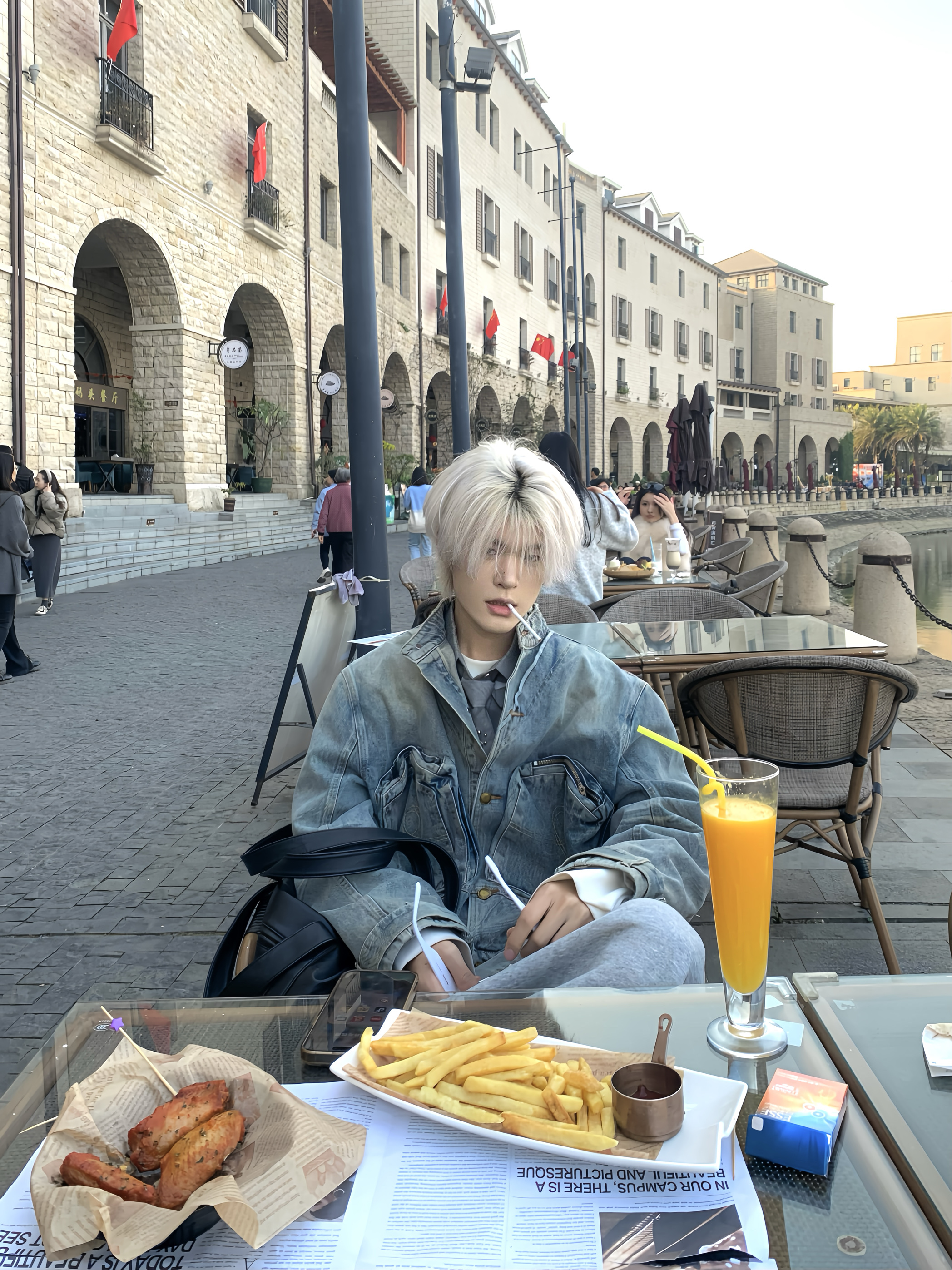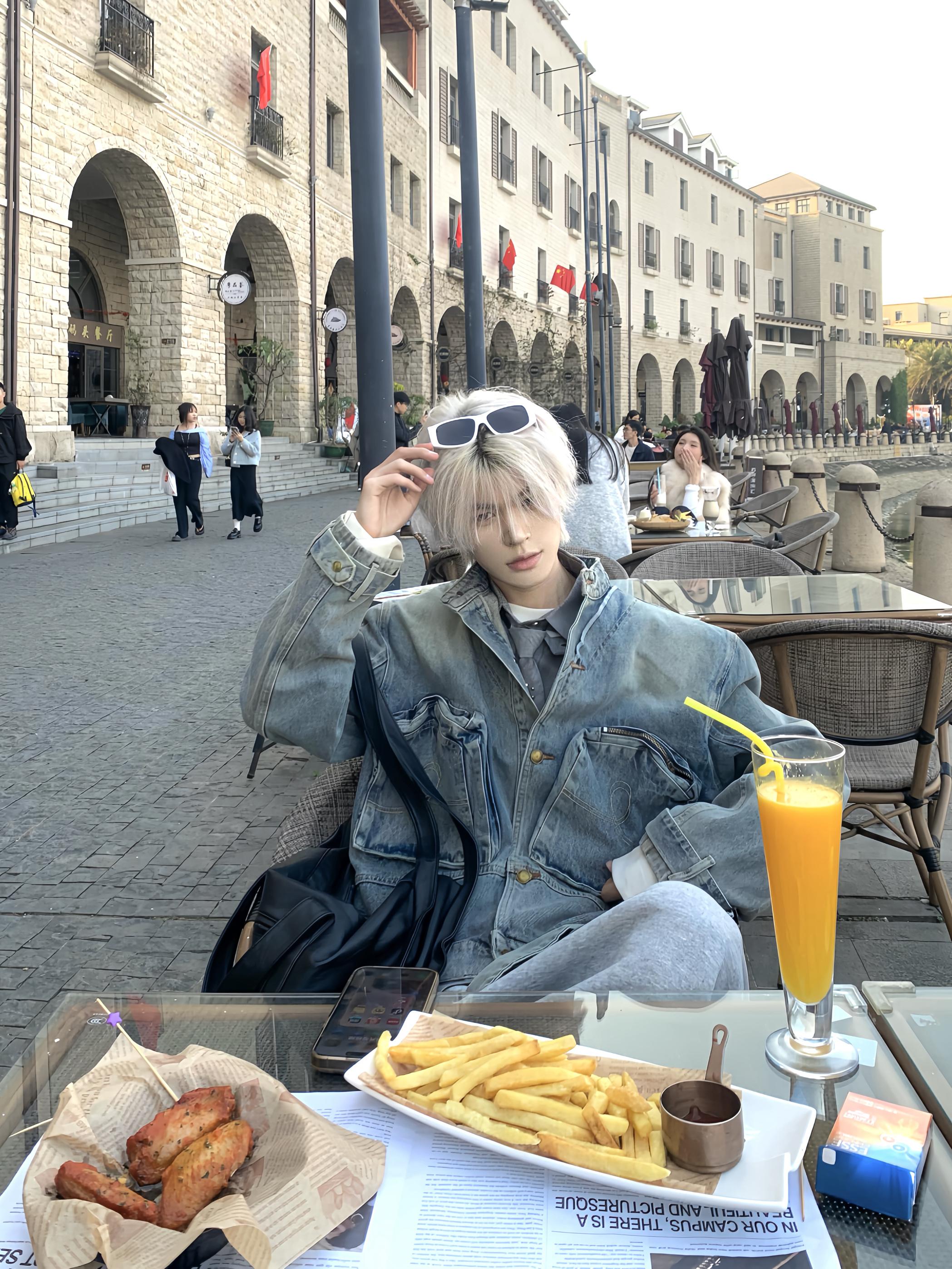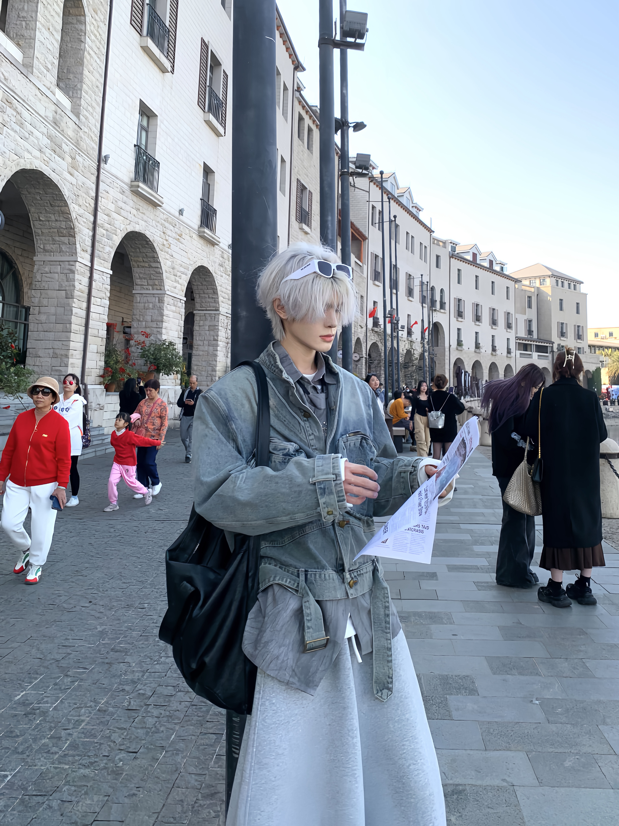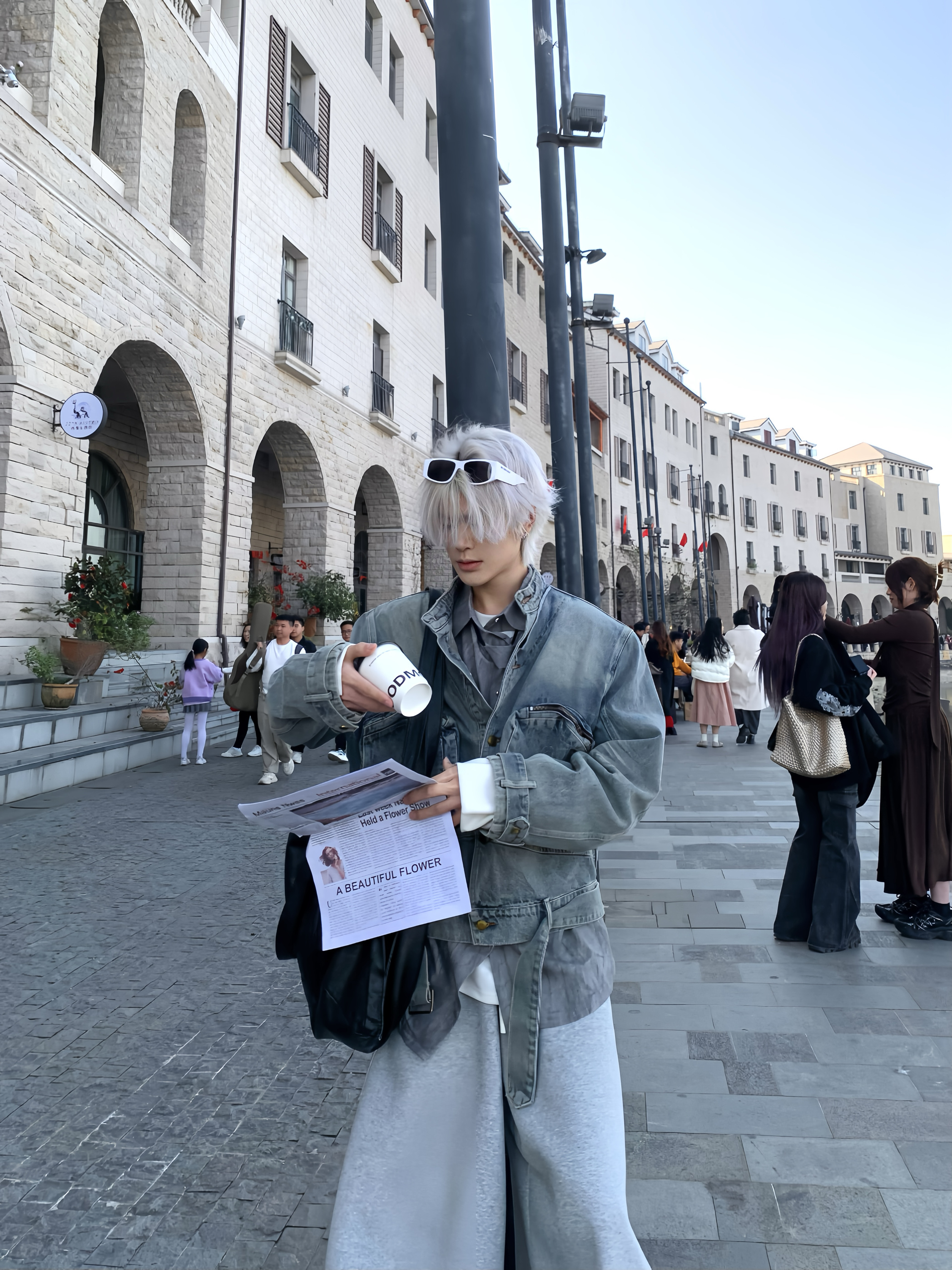 Large Pocket Button Shoulder-Pad Denim Jacket WN19930