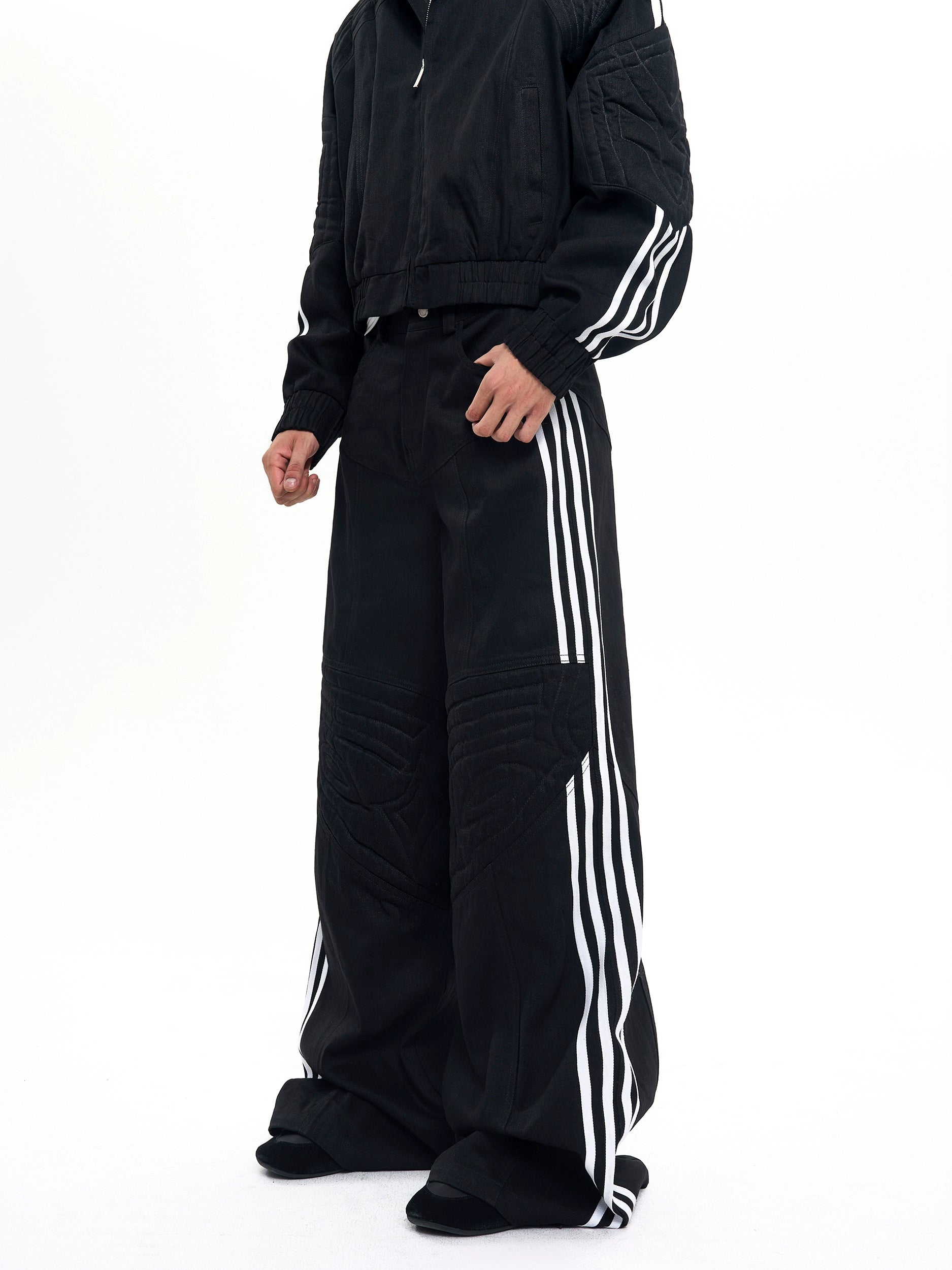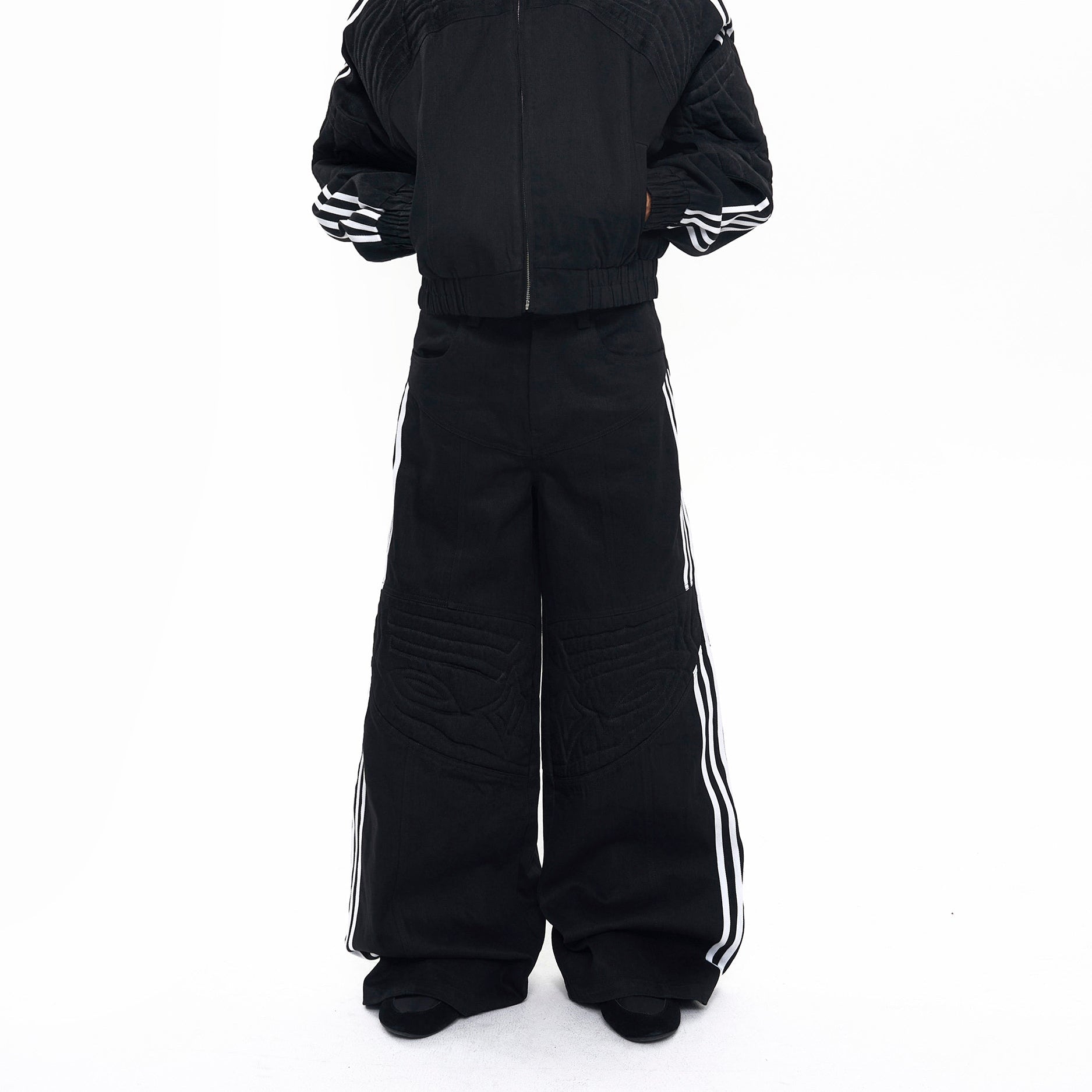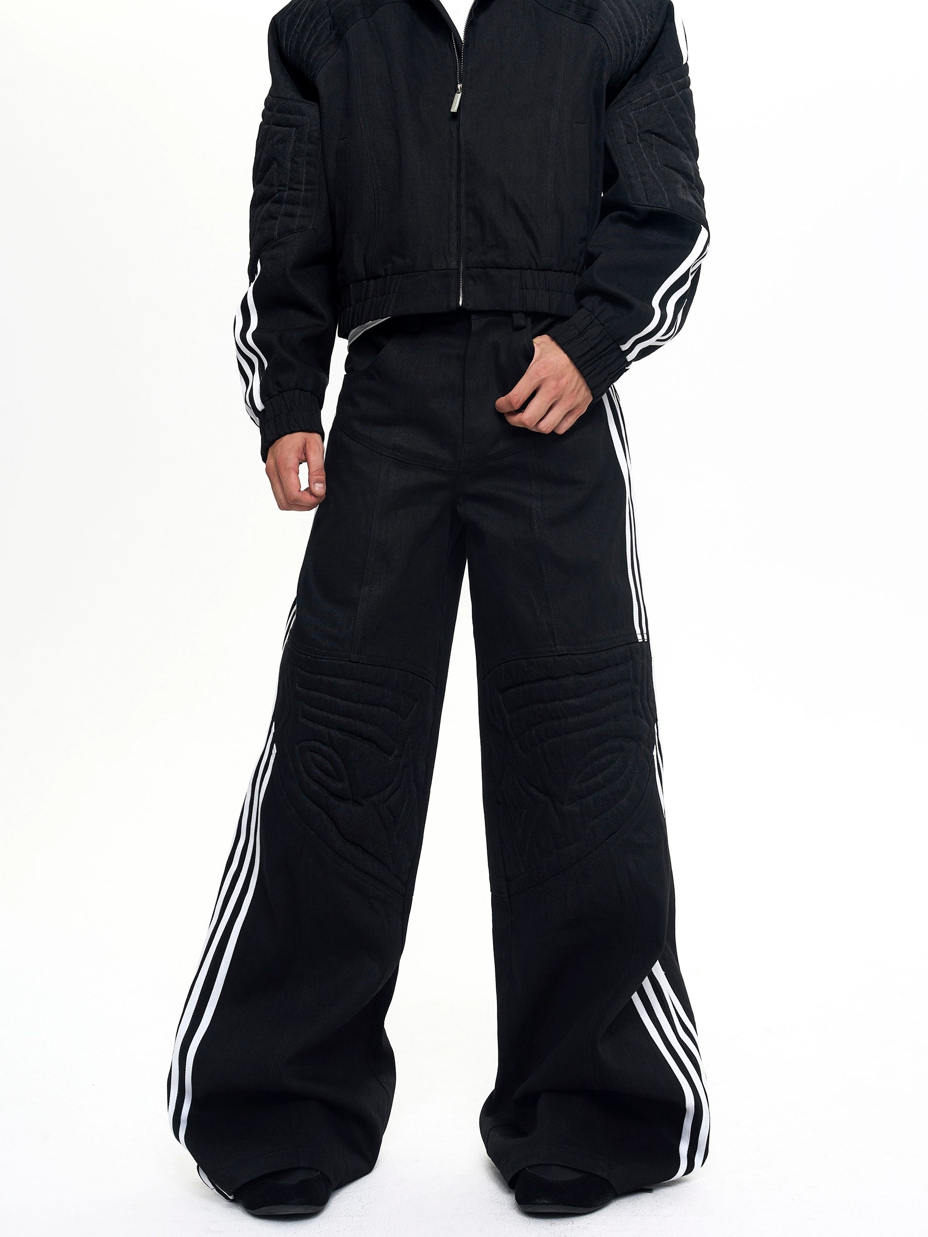 Patchwork Stand Neck Jacket & Patchwork Wide Leg Pants Setup WN20380