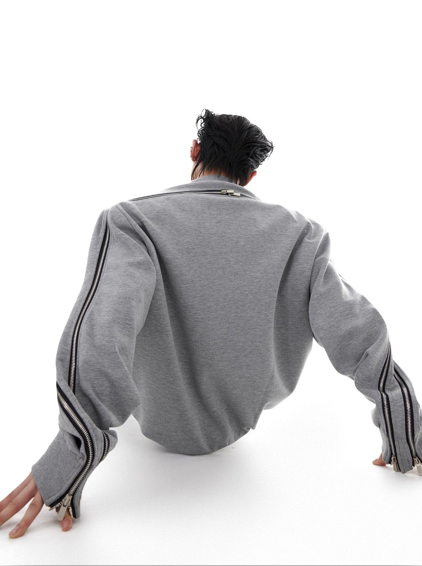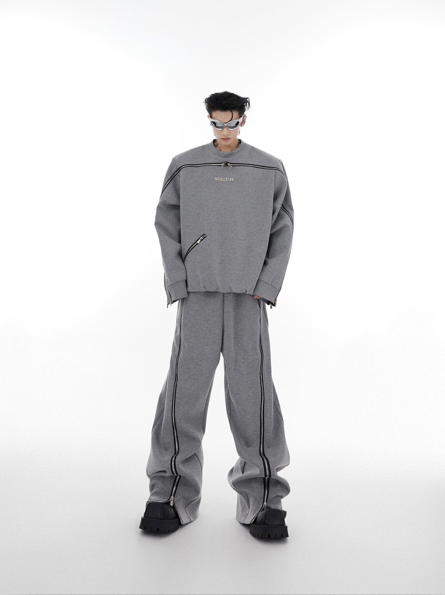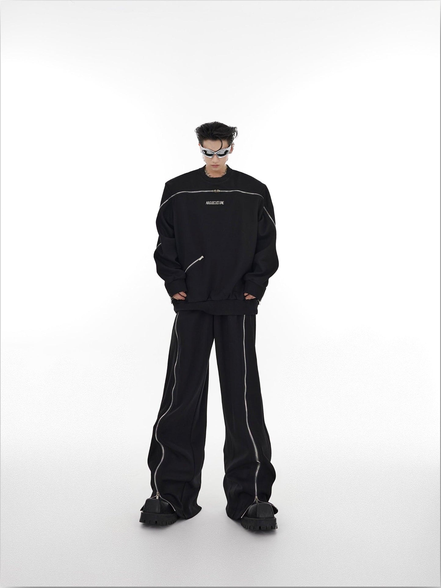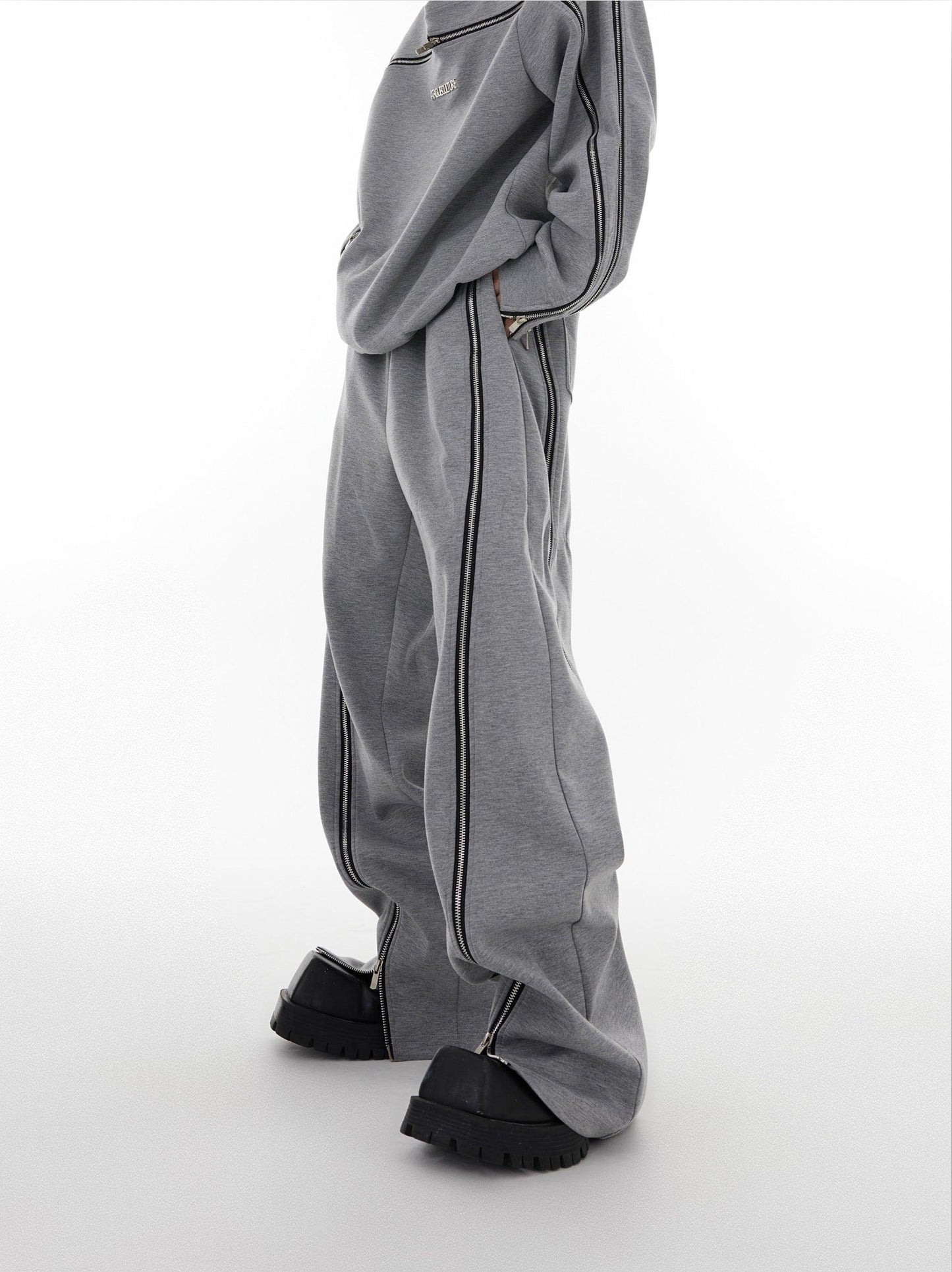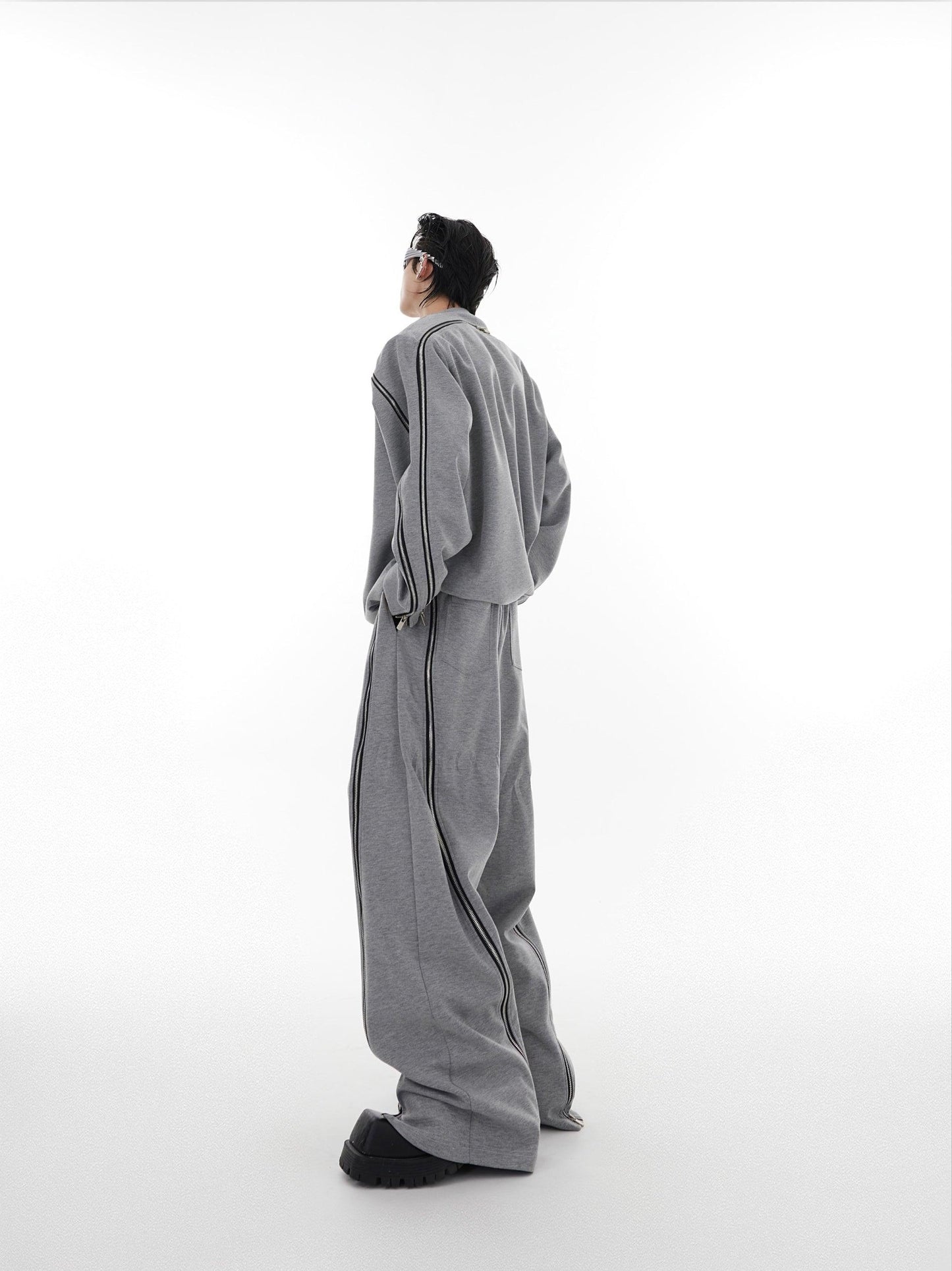 Oversize Zipper Shoulder-pads Sweatshirt & Wide-leg Zipper Sweatpants Setup WN2062