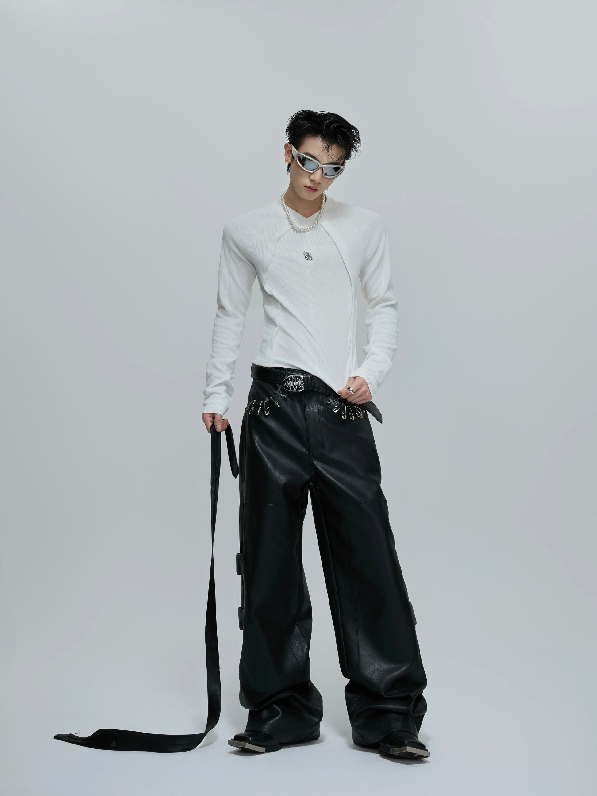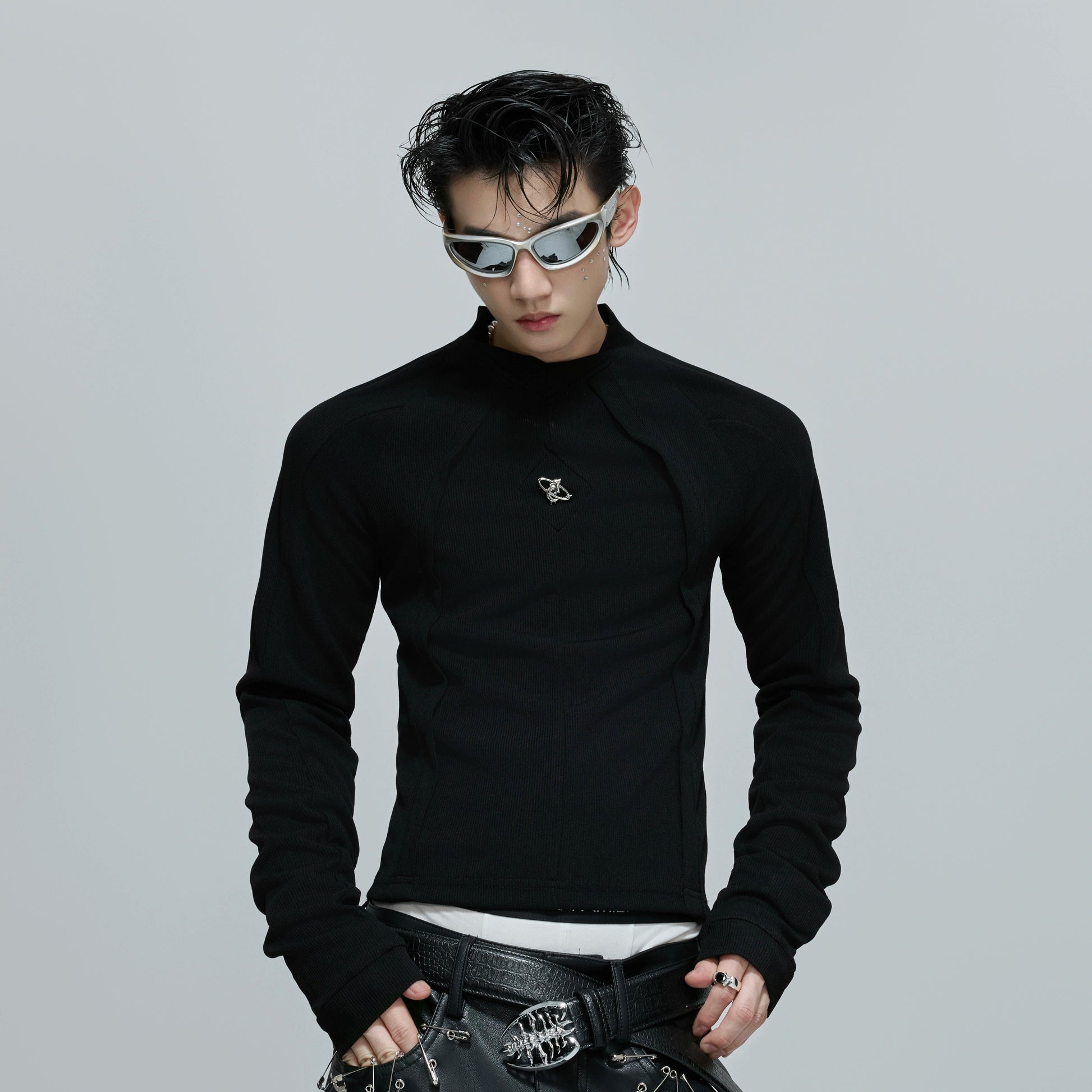 Deconstructed Slim Fit Metal Logo Long Sleeve T-Shirt WN21695