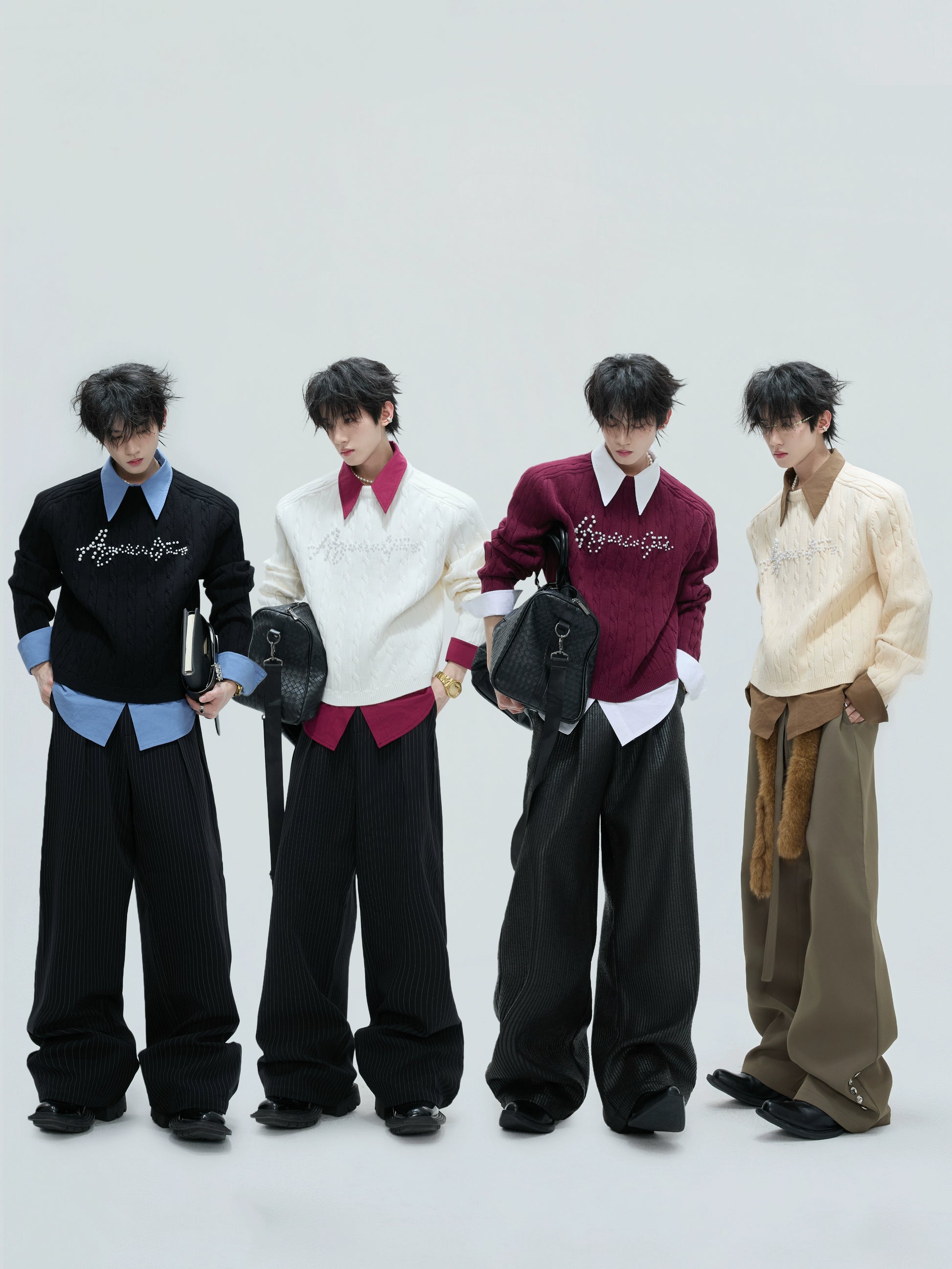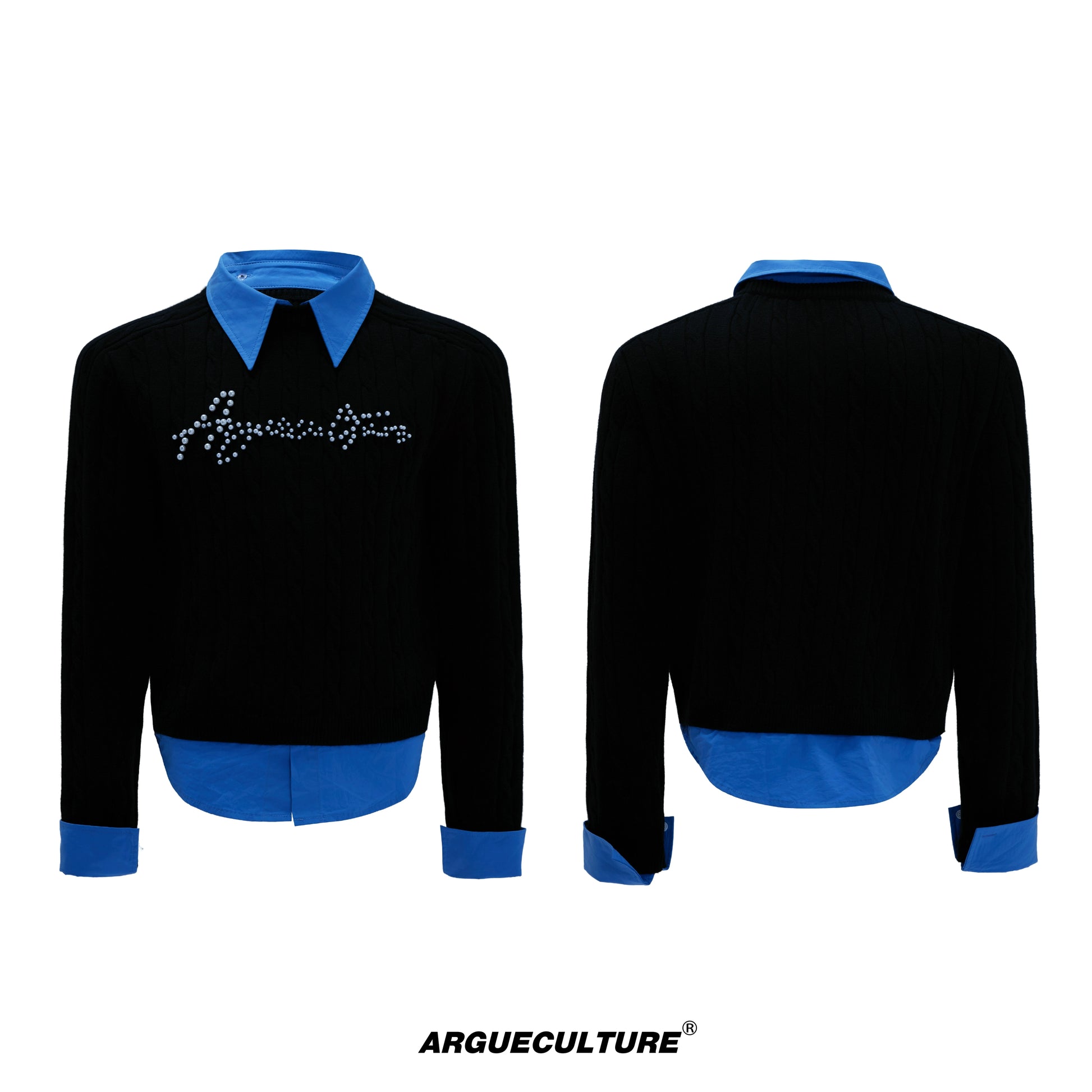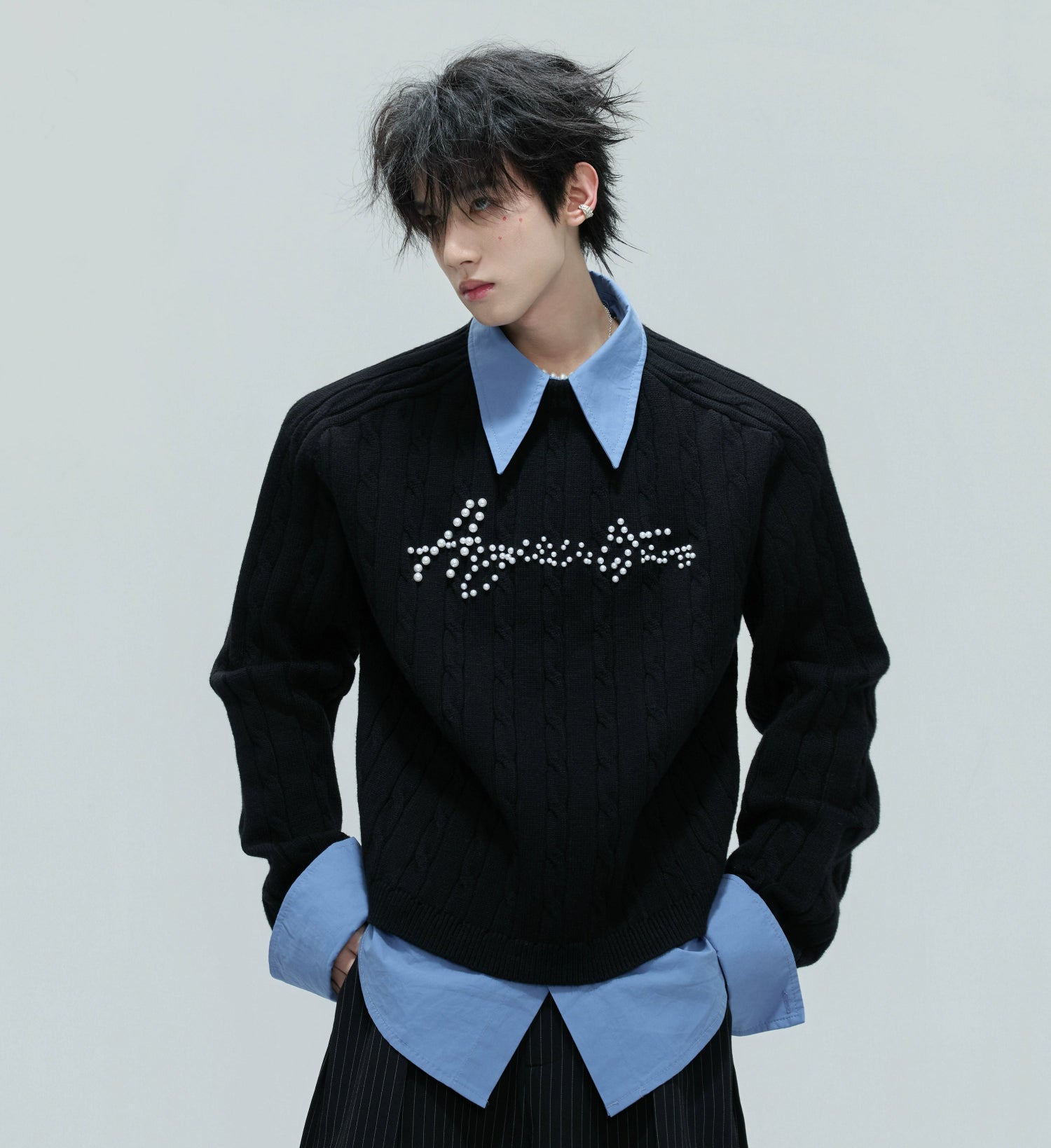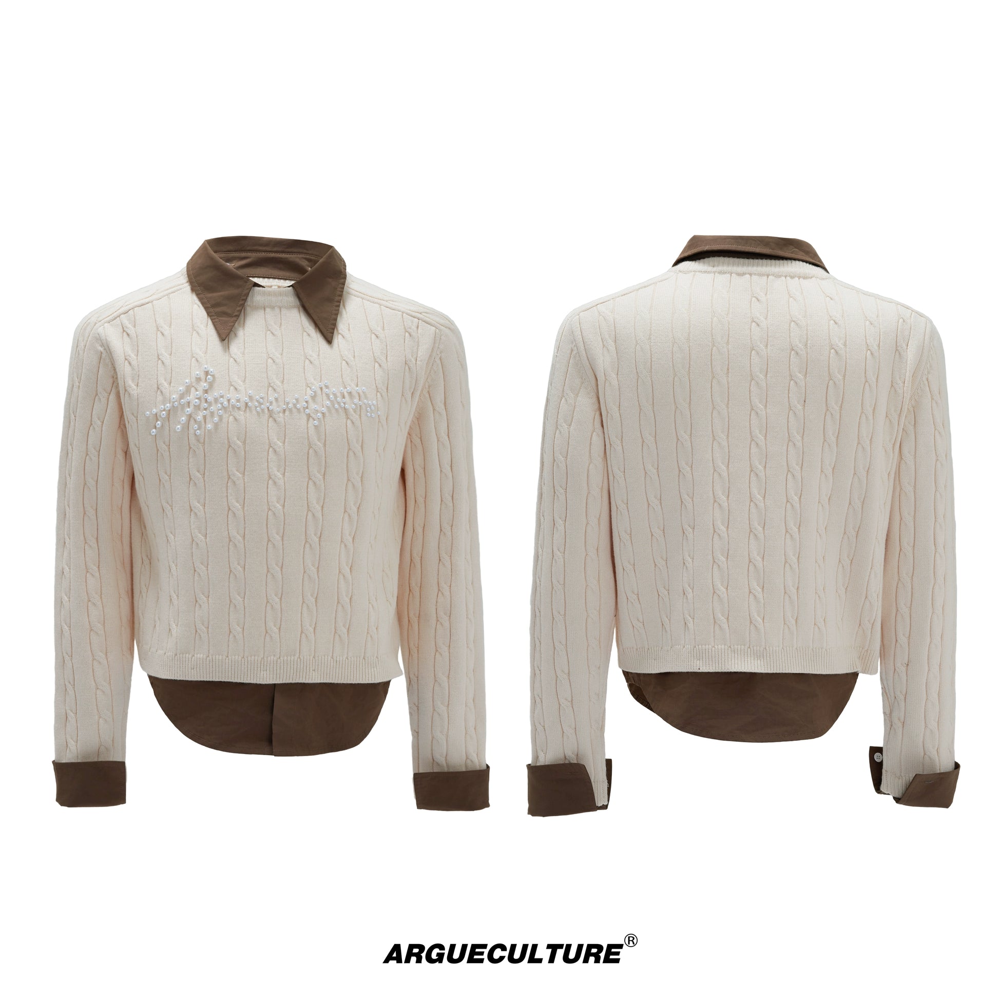 Fake Layered Pearl Embellished Thick Knit Sweater WN21721