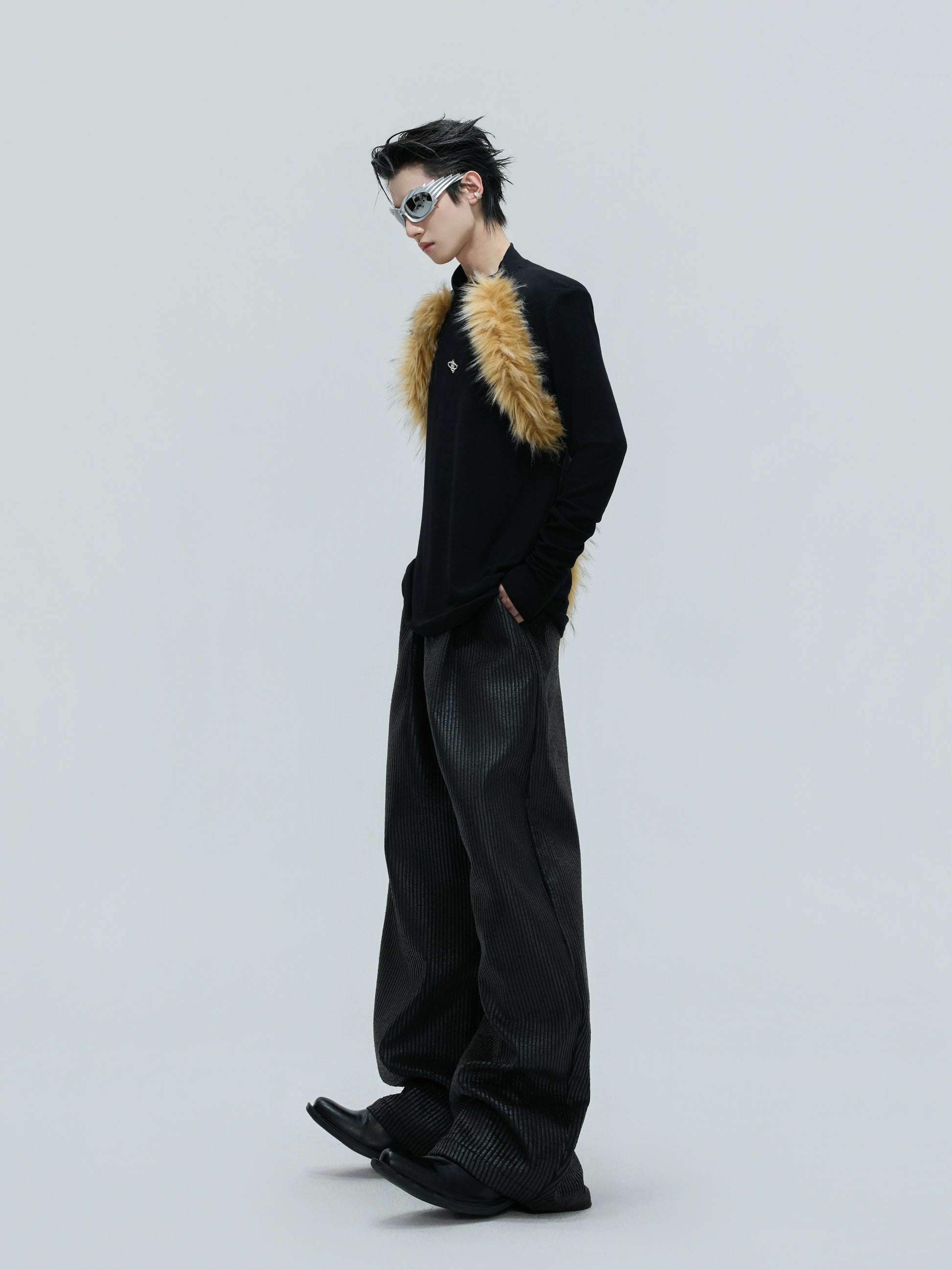 Fake Fur Panel Knit Sweater WN21738