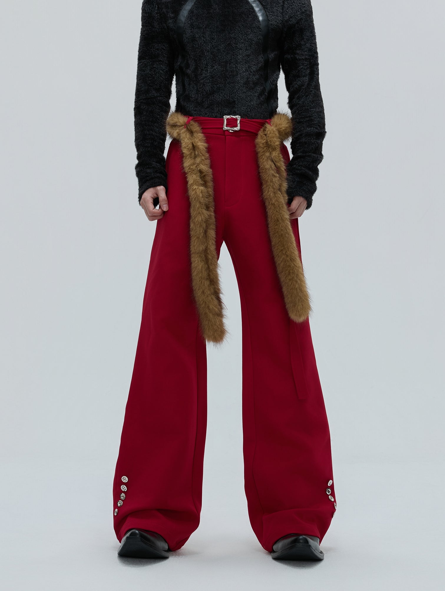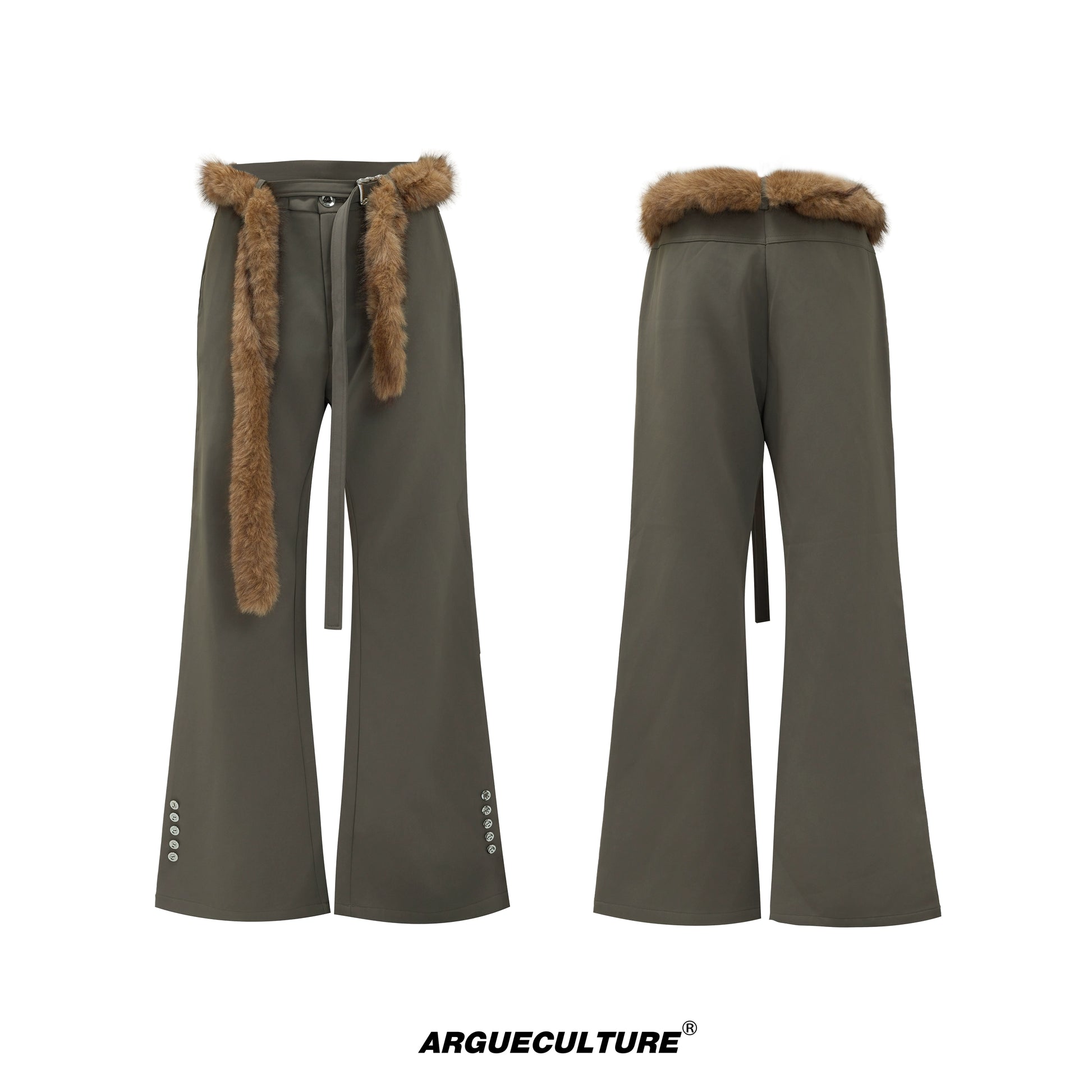 Design Flare Trousers with Fake Fur Ribbon WN21743