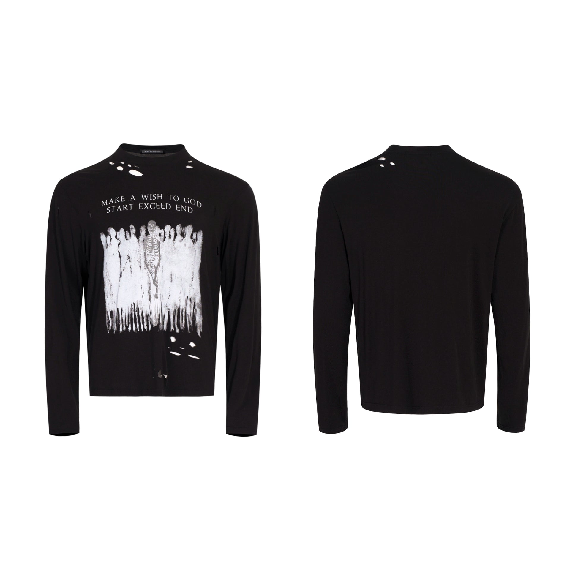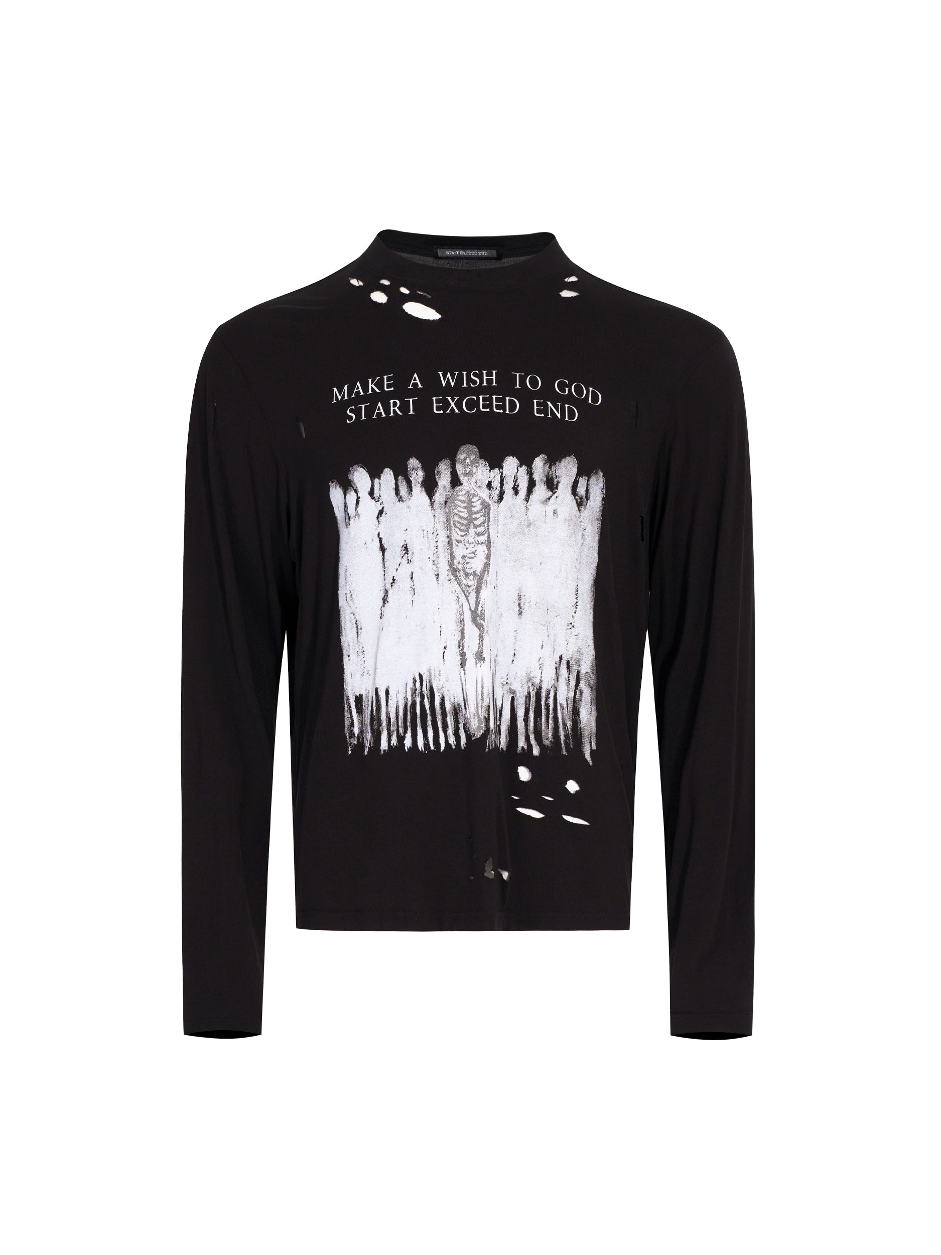 Skull Print Washed Damage Long Sleeve T-Shirt WN21771
