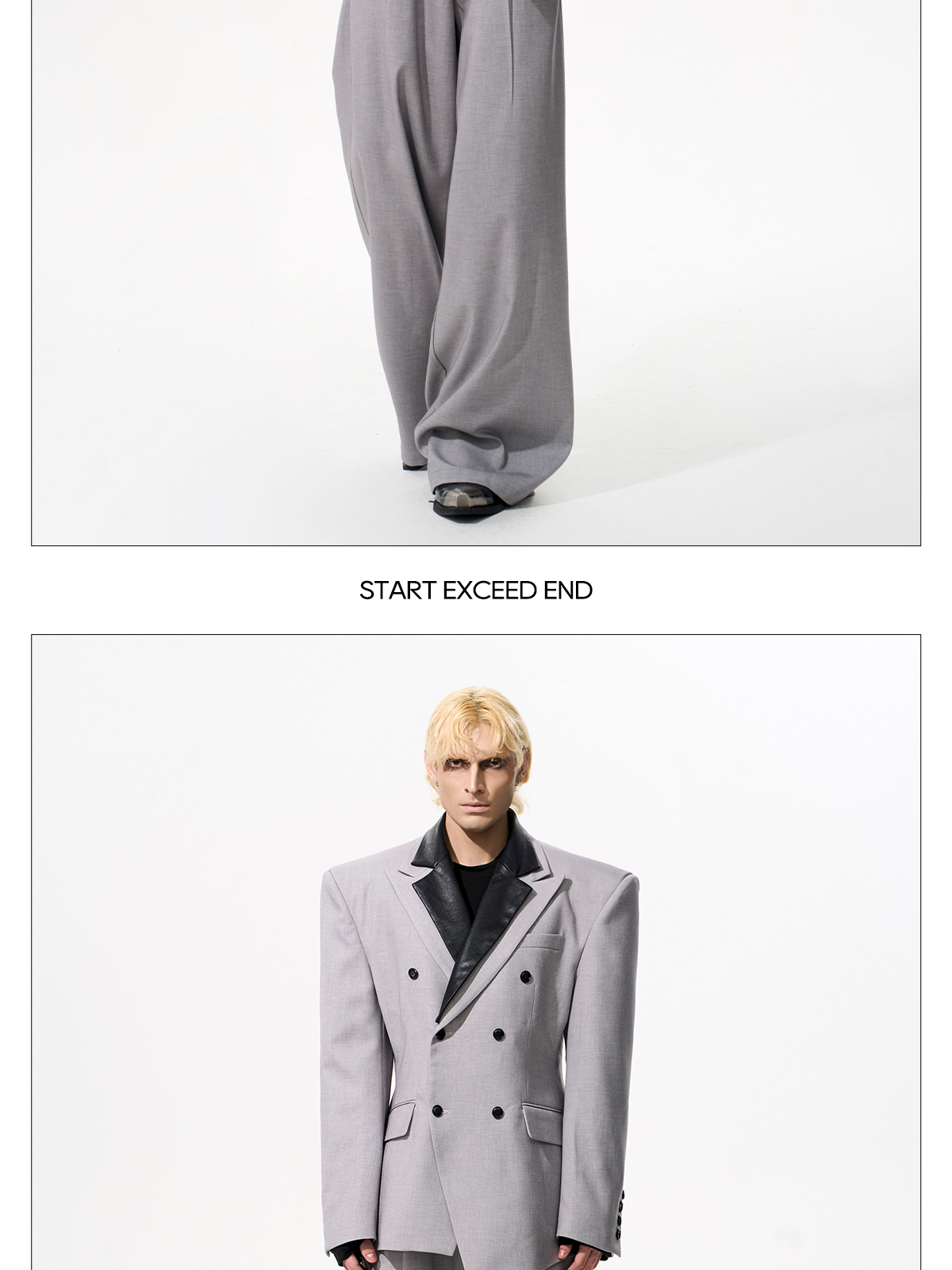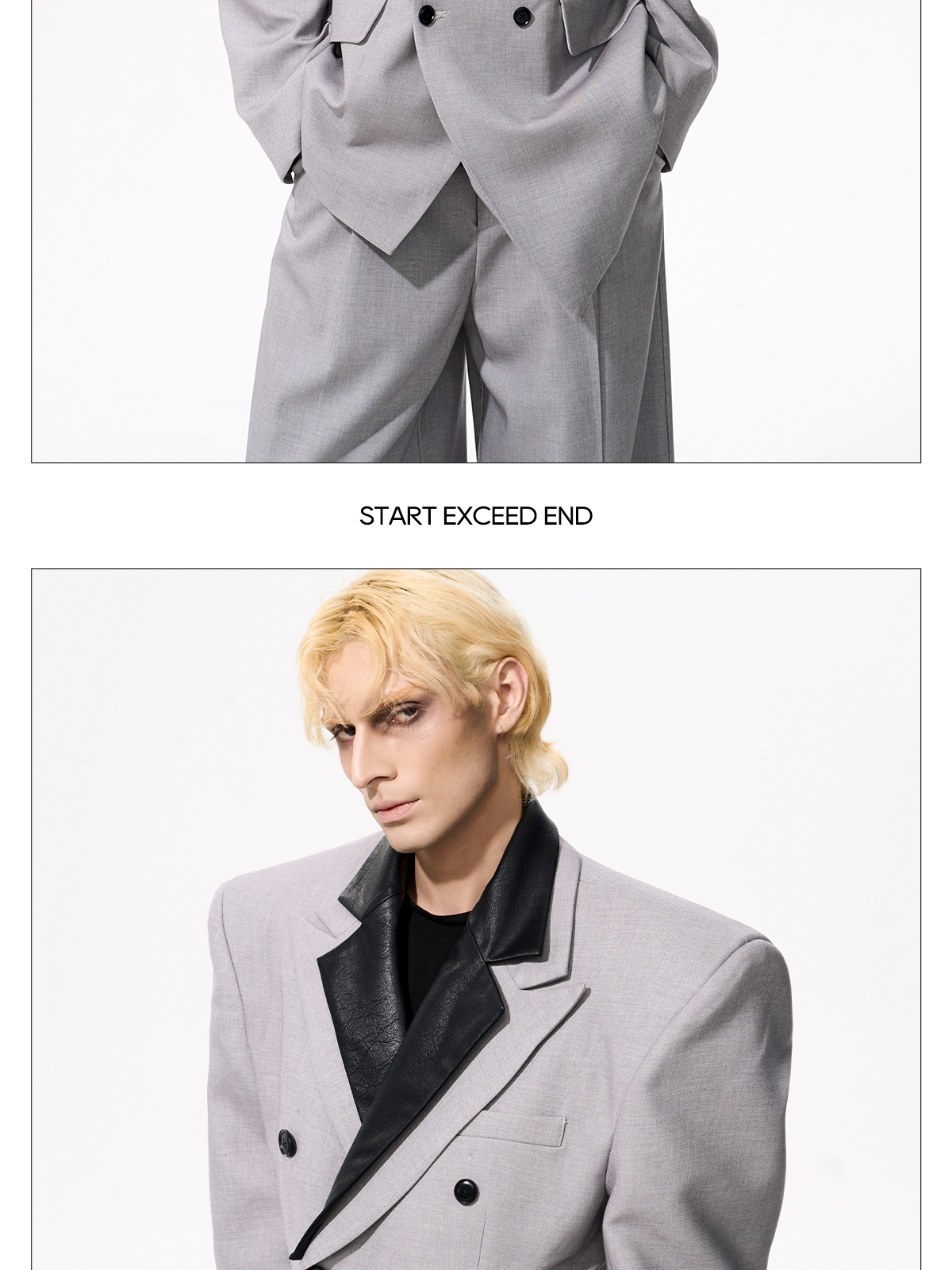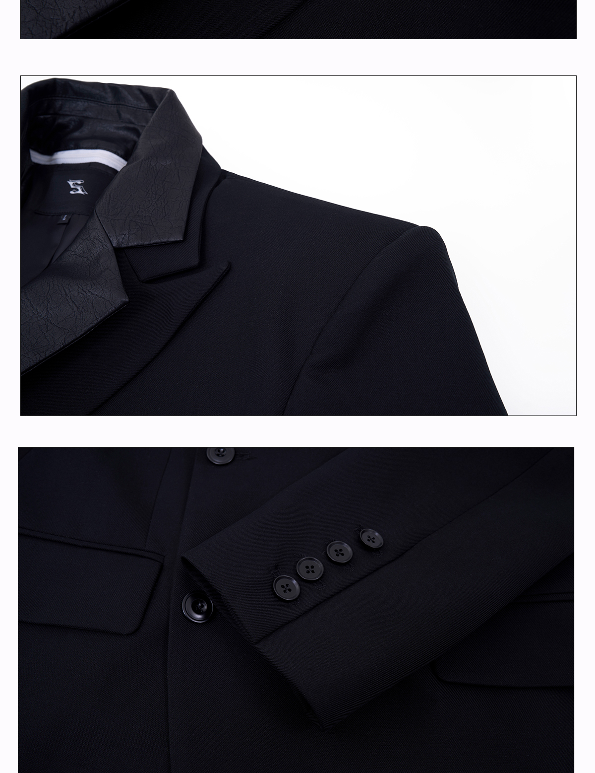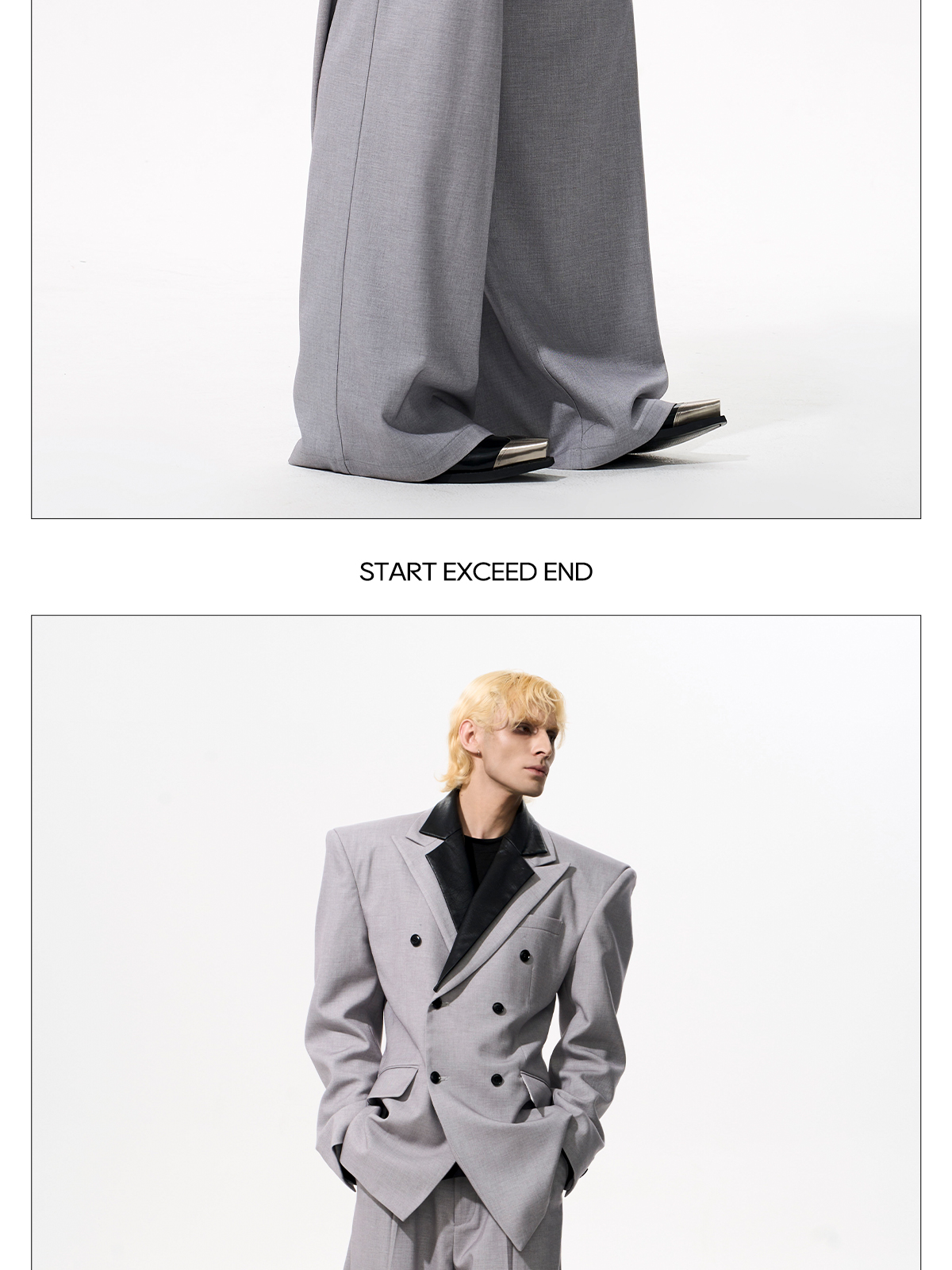 Detachable PU Leather Collar Wool Tailored Jacket & Straight Leg Pants Setup WN21772