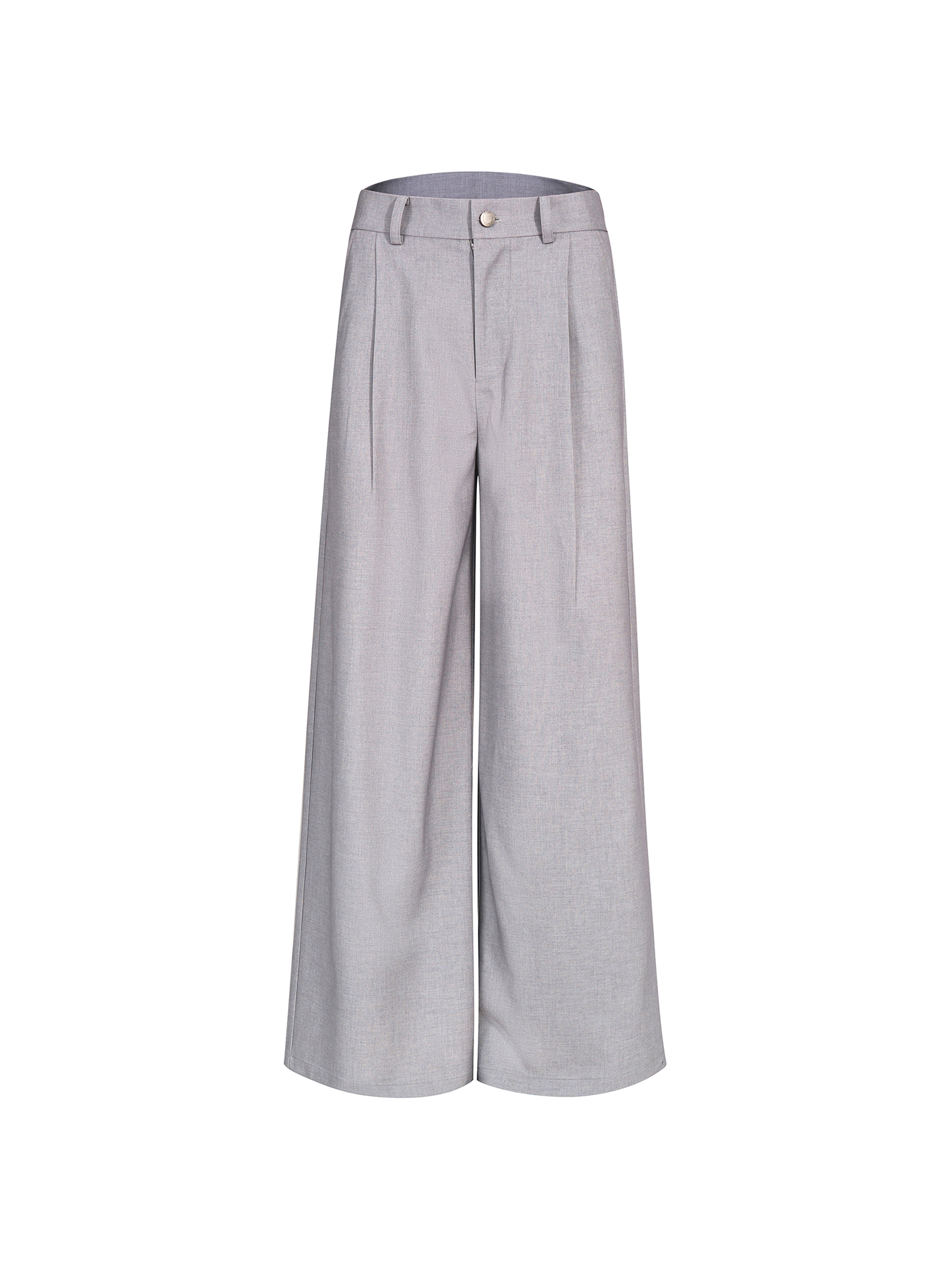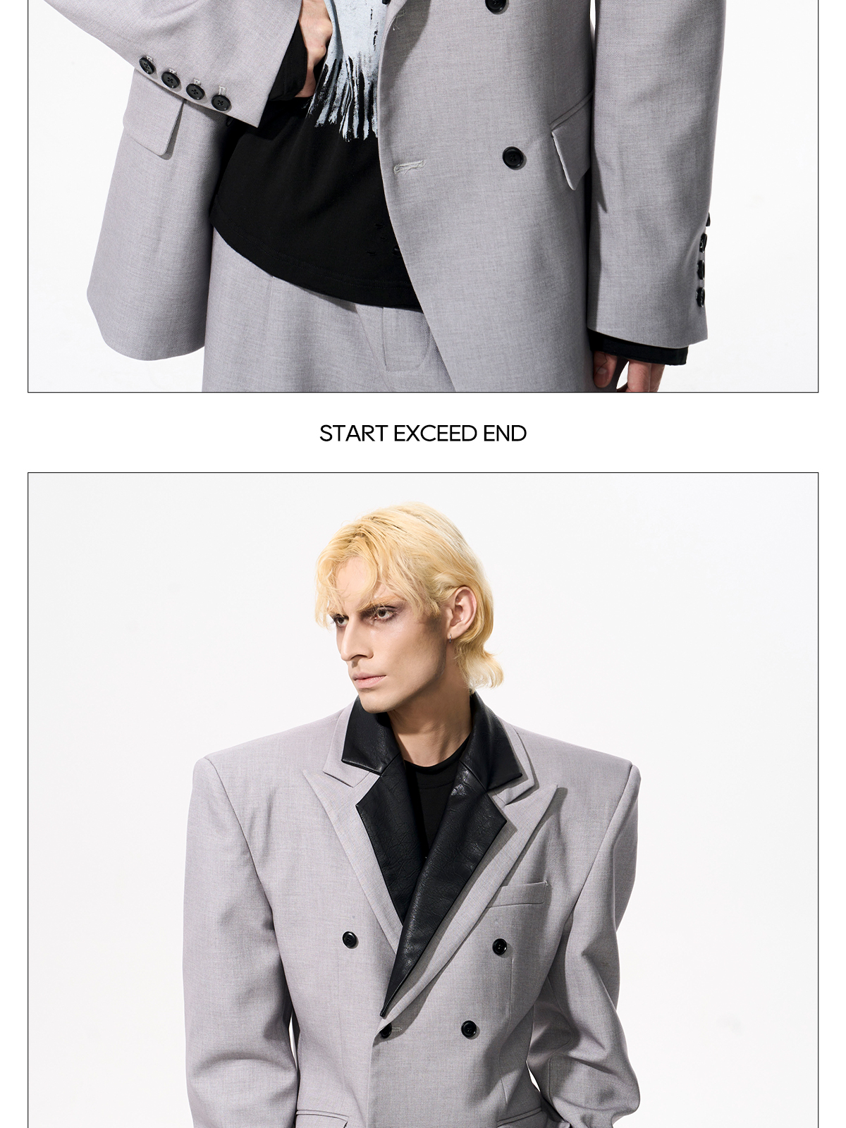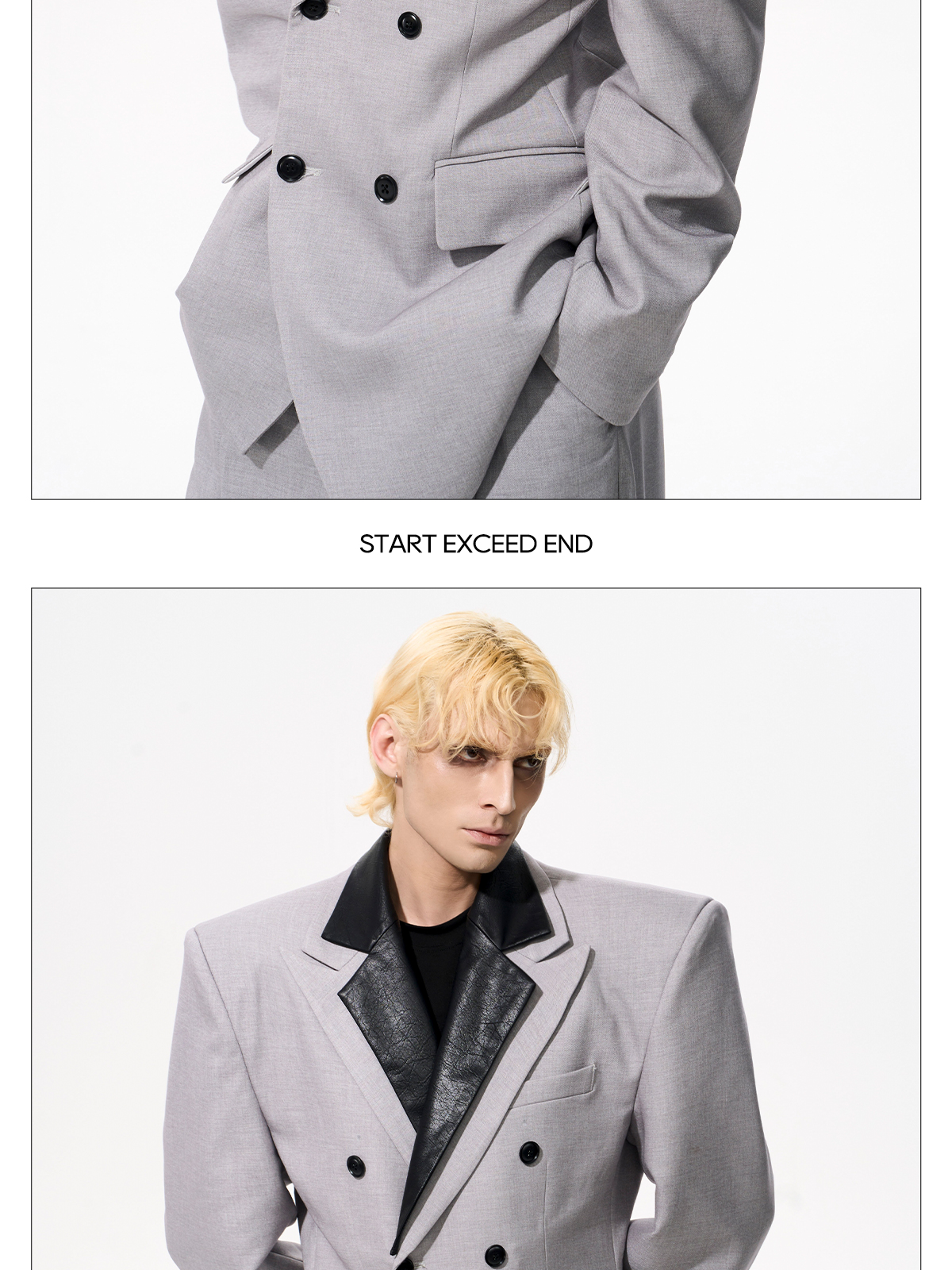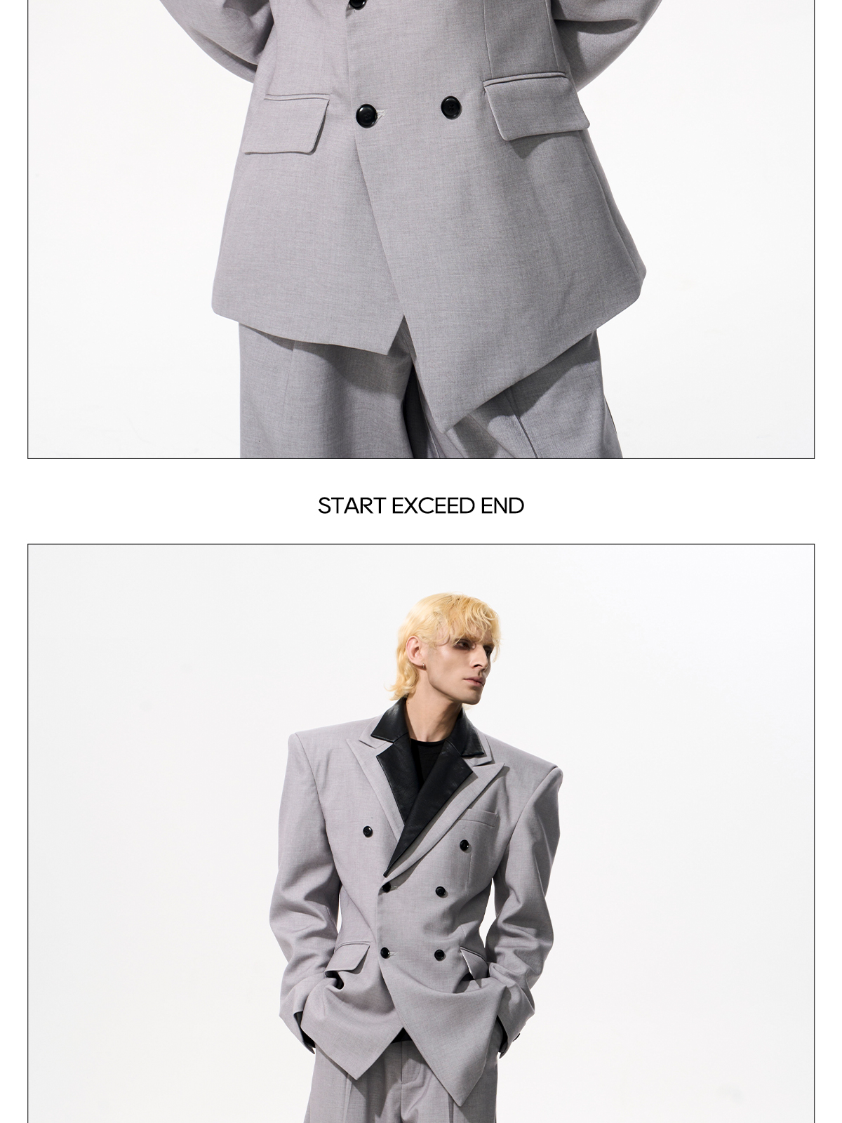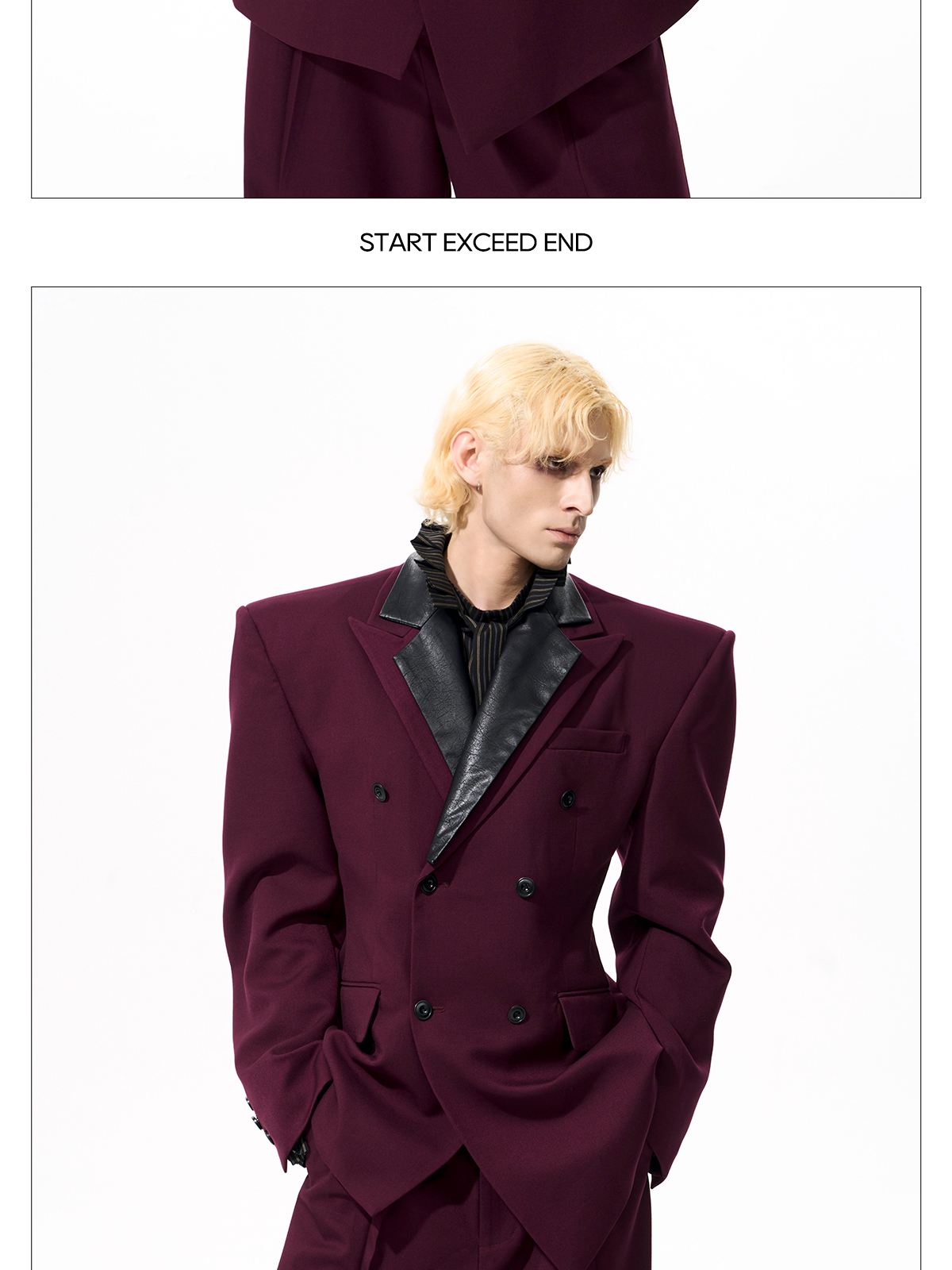 Detachable PU Leather Collar Wool Tailored Jacket & Straight Leg Pants Setup WN21772