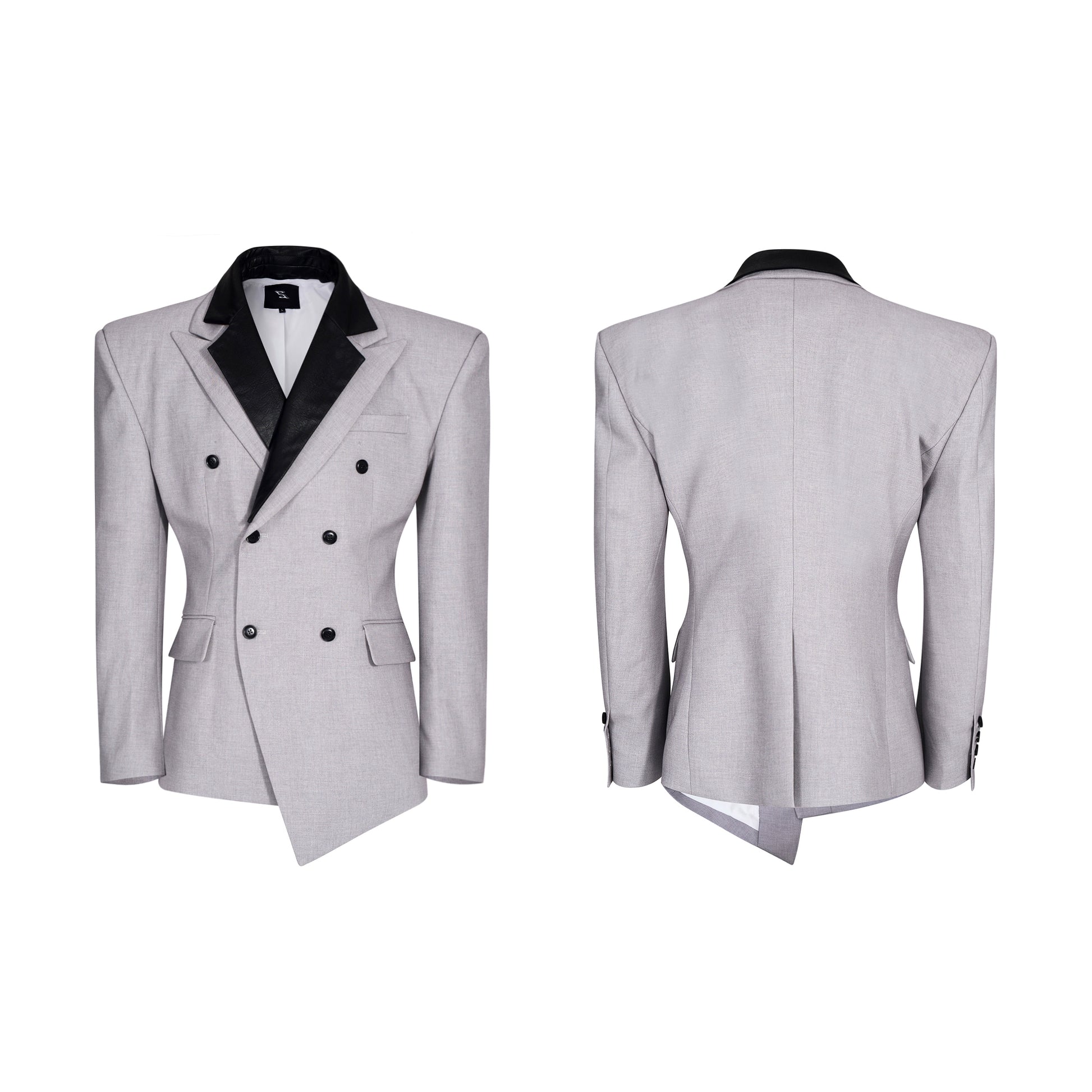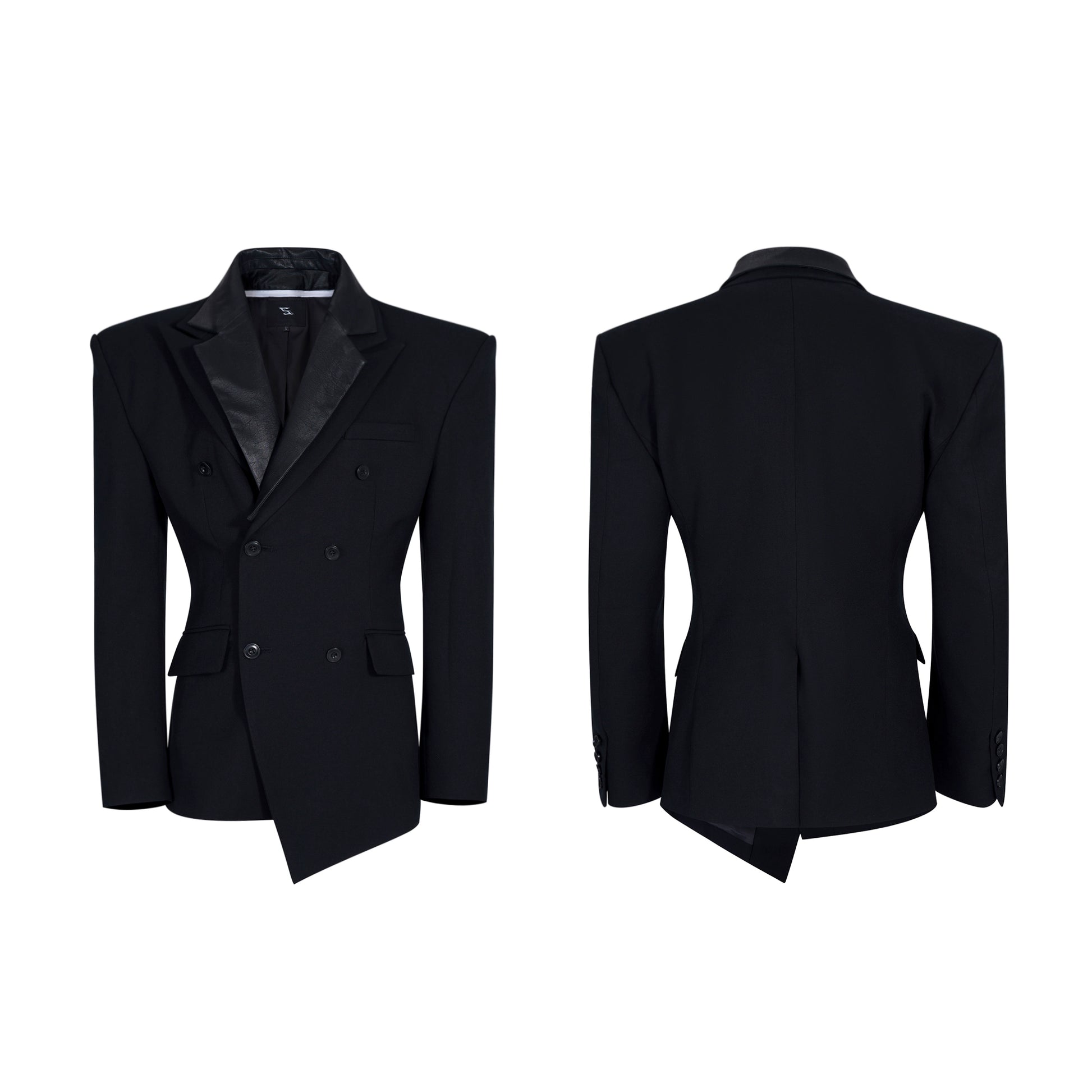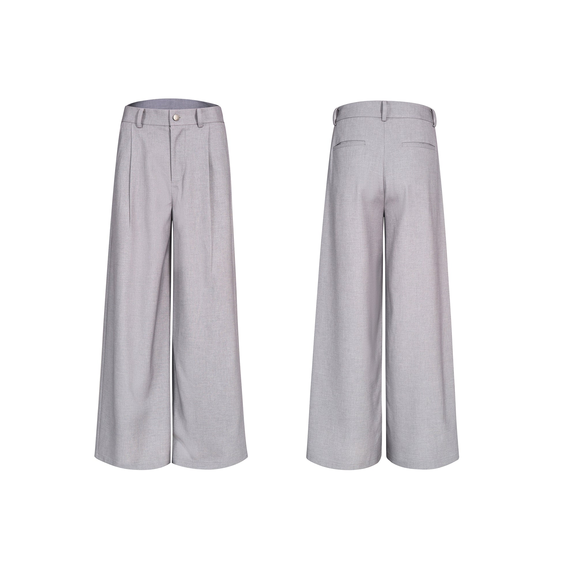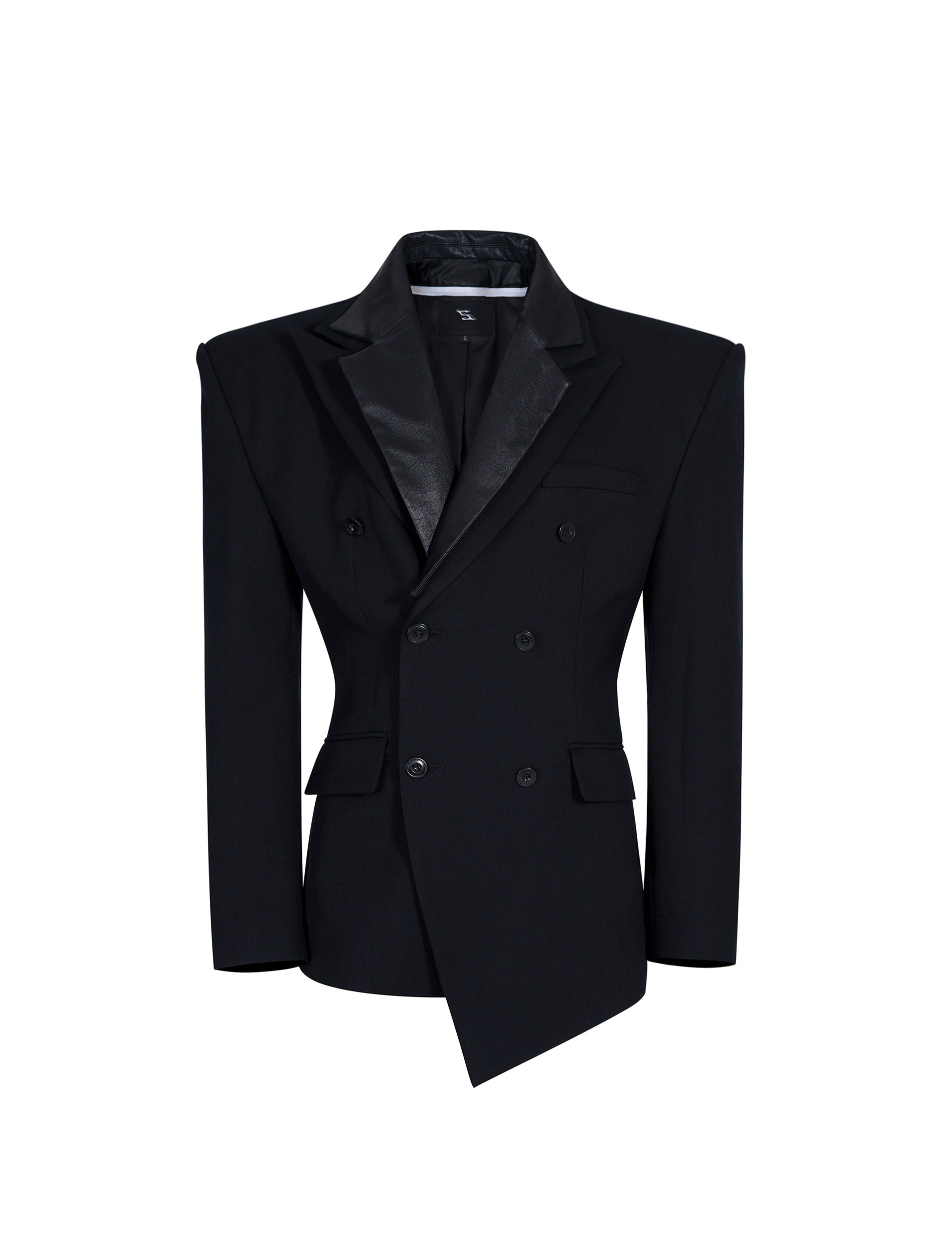 Detachable PU Leather Collar Wool Tailored Jacket & Straight Leg Pants Setup WN21772