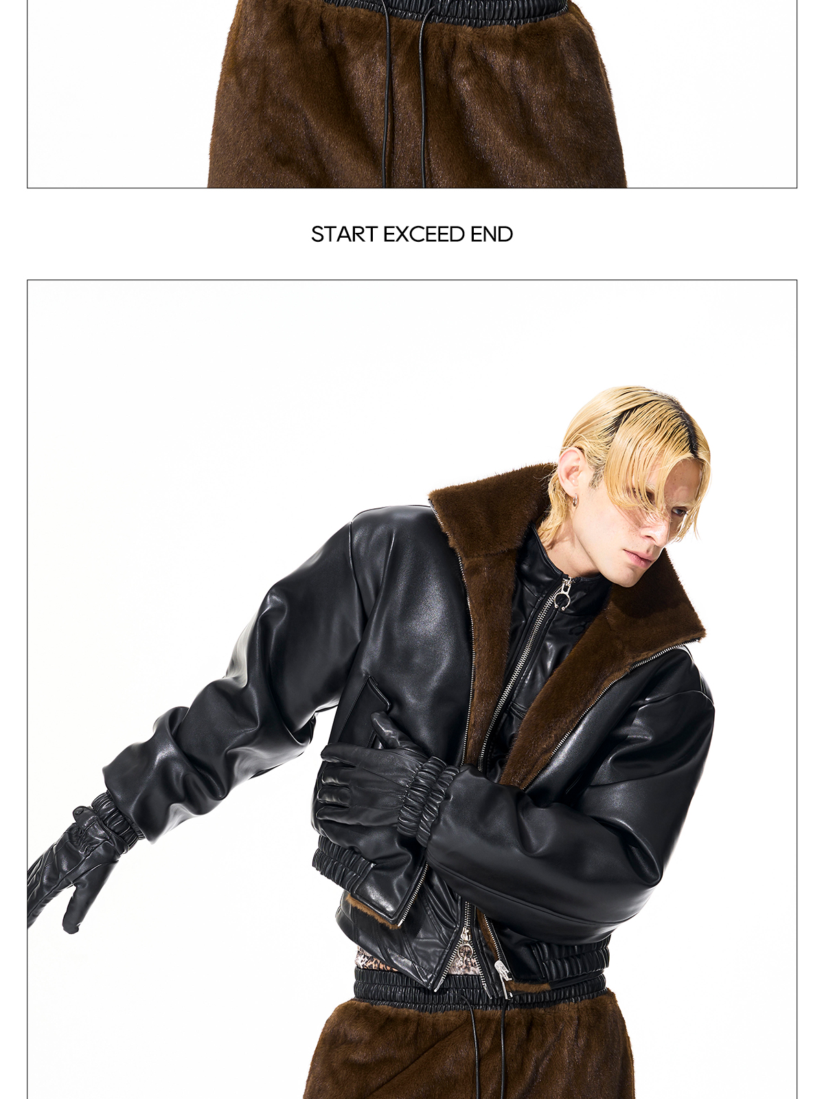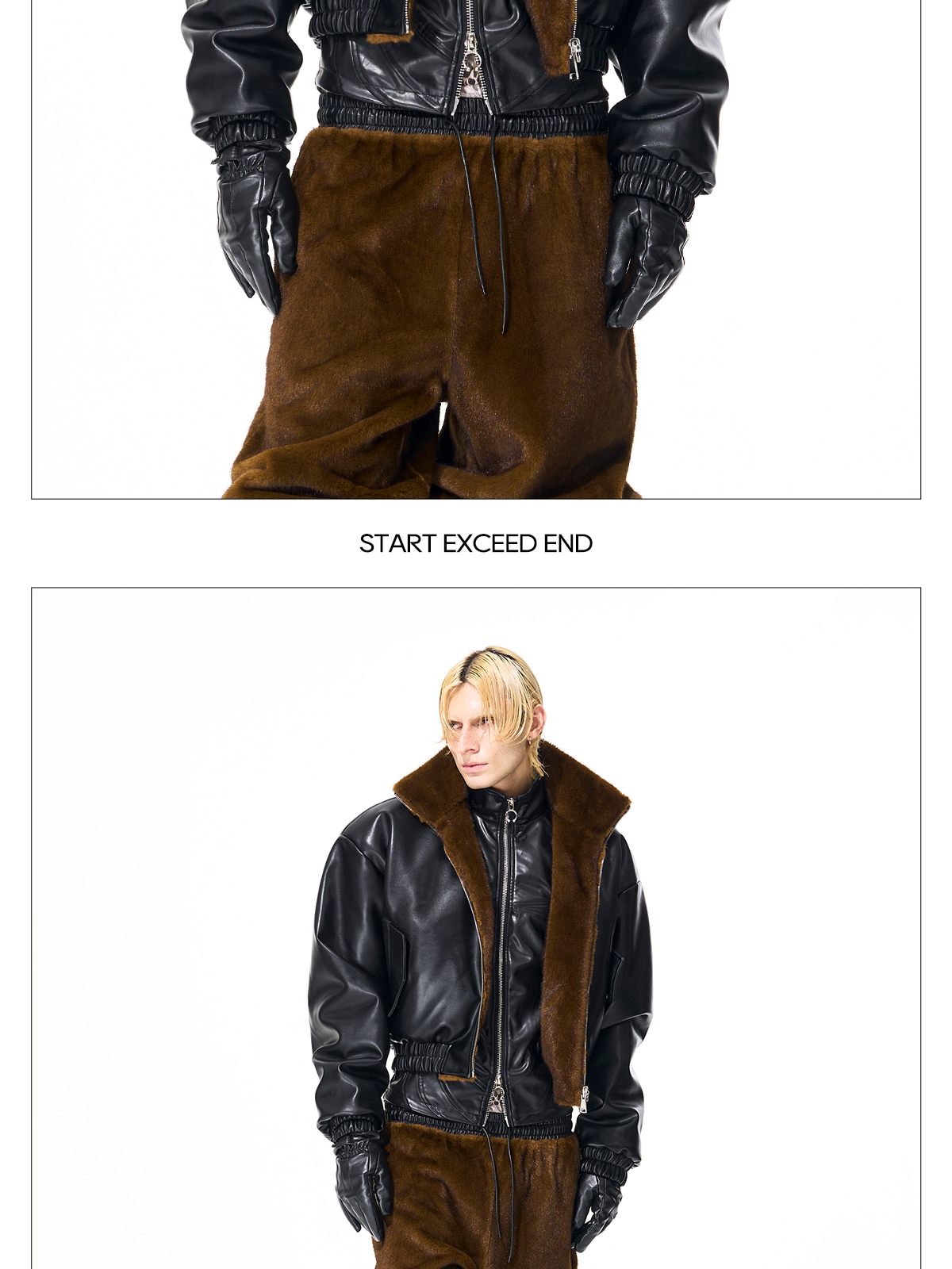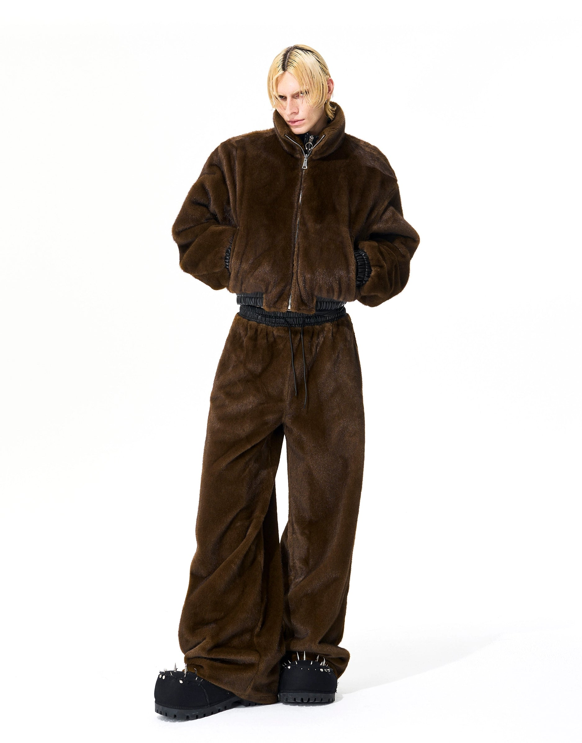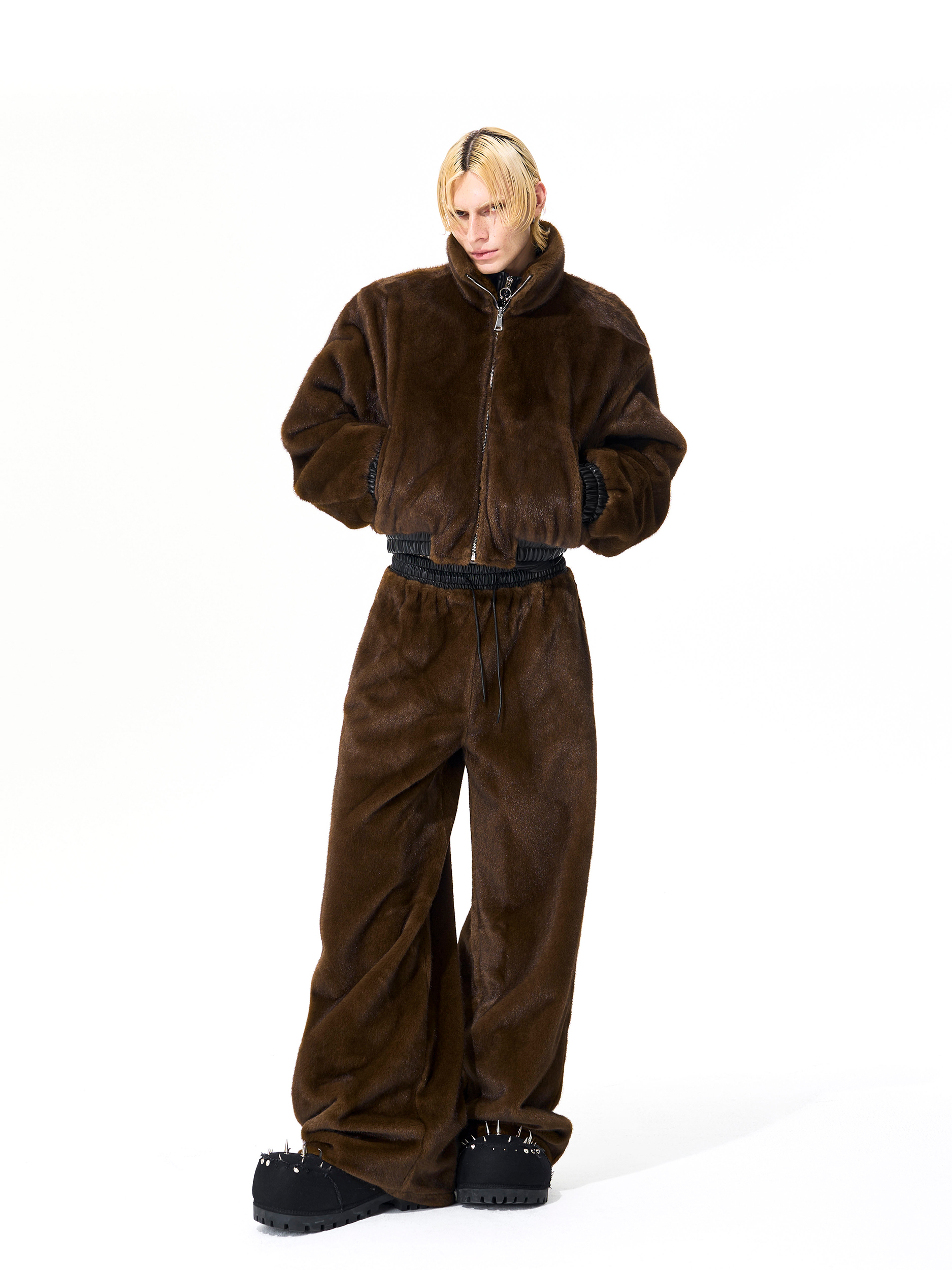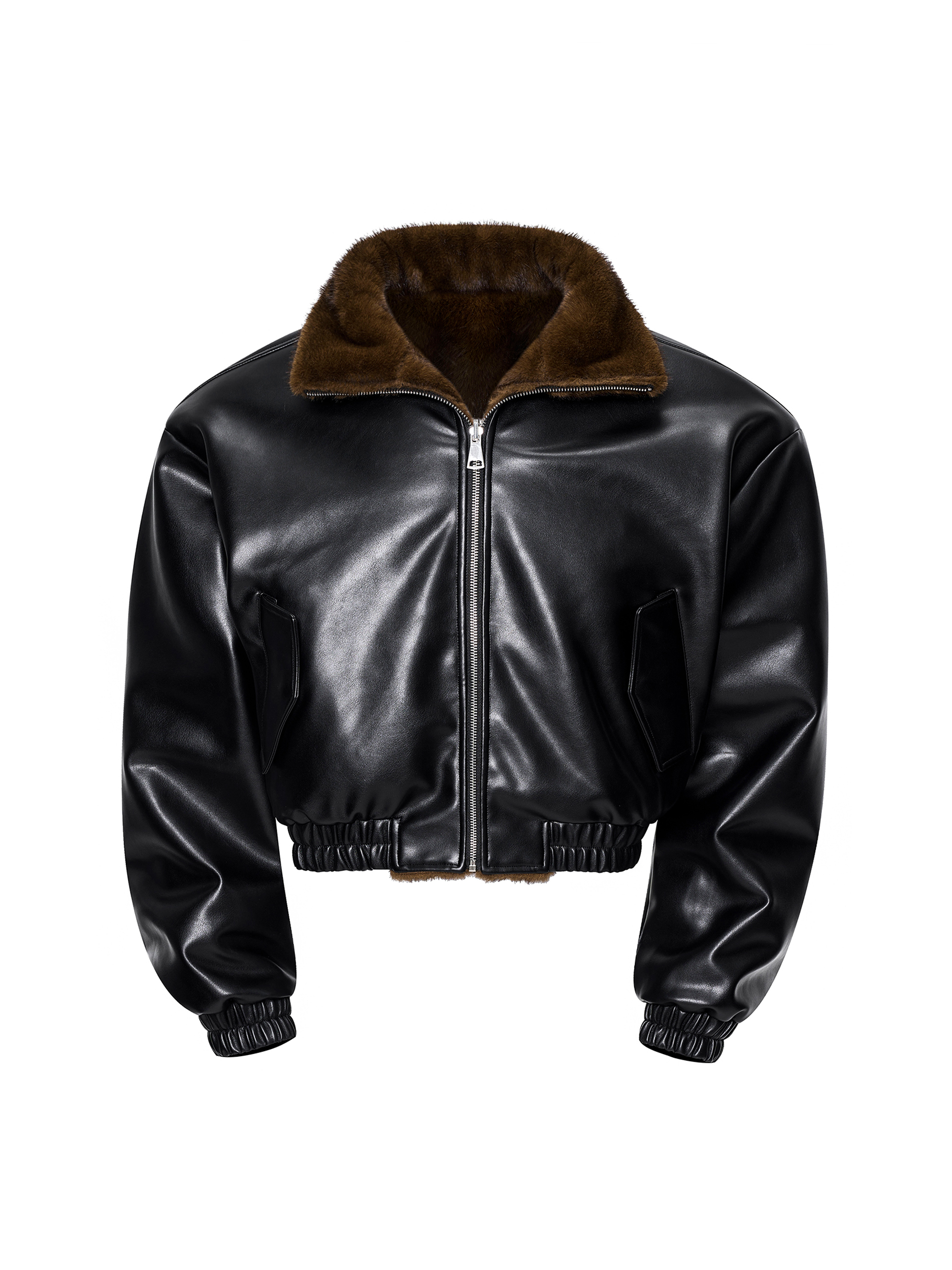 Reversible Fake Fur Stand Neck PU Leather Jacket & Pants Setup WN21827