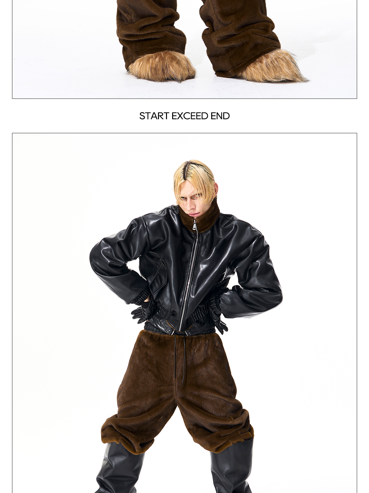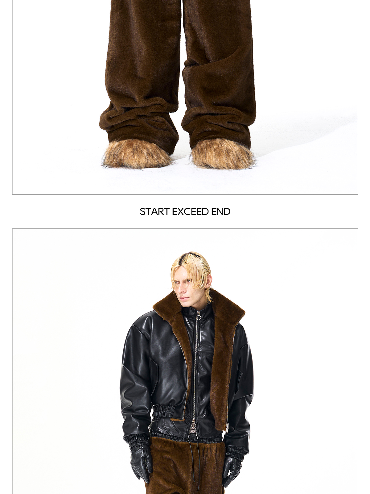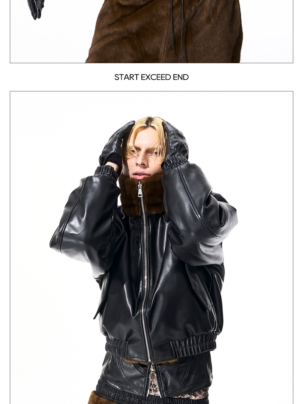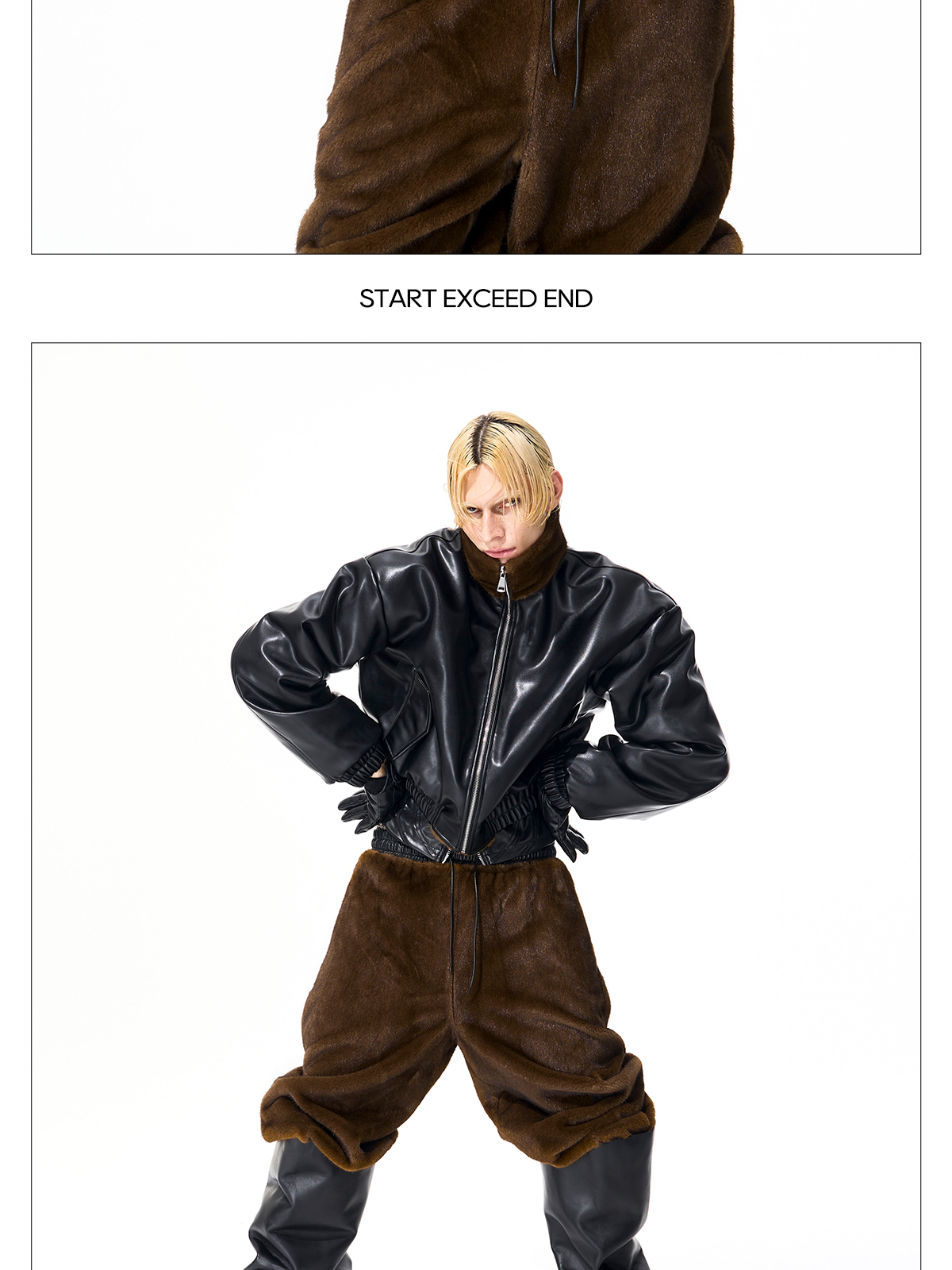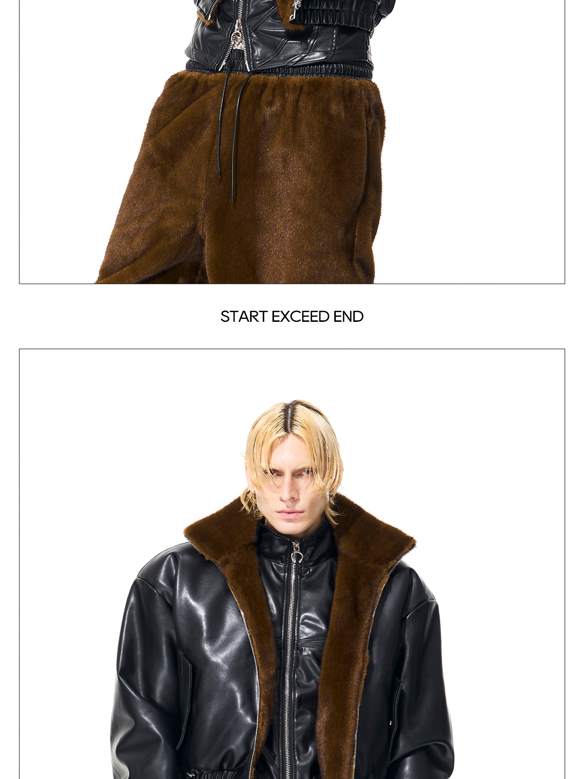Reversible Fake Fur Stand Neck PU Leather Jacket & Pants Setup WN21827