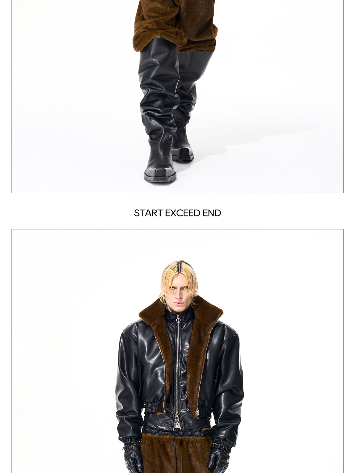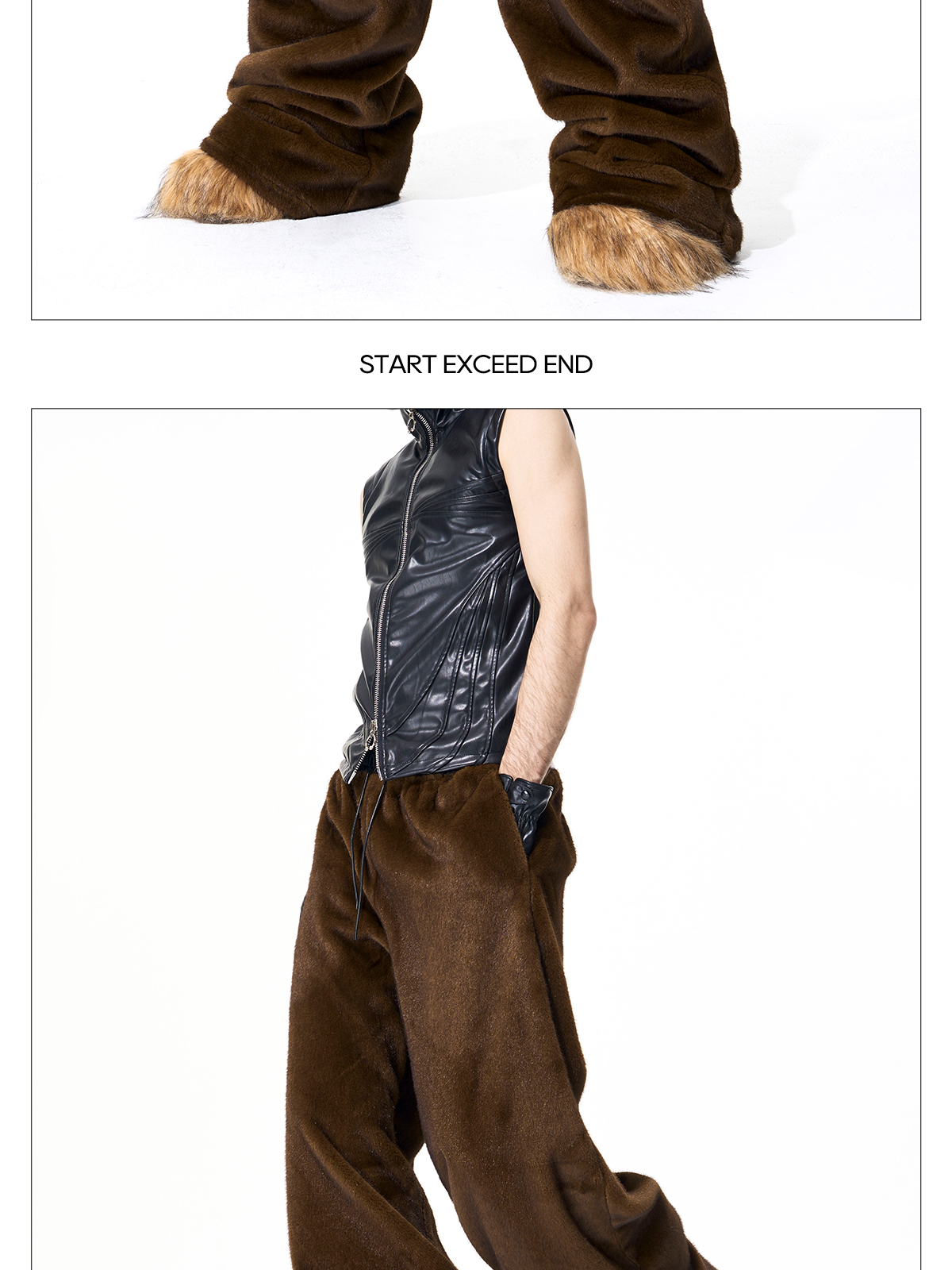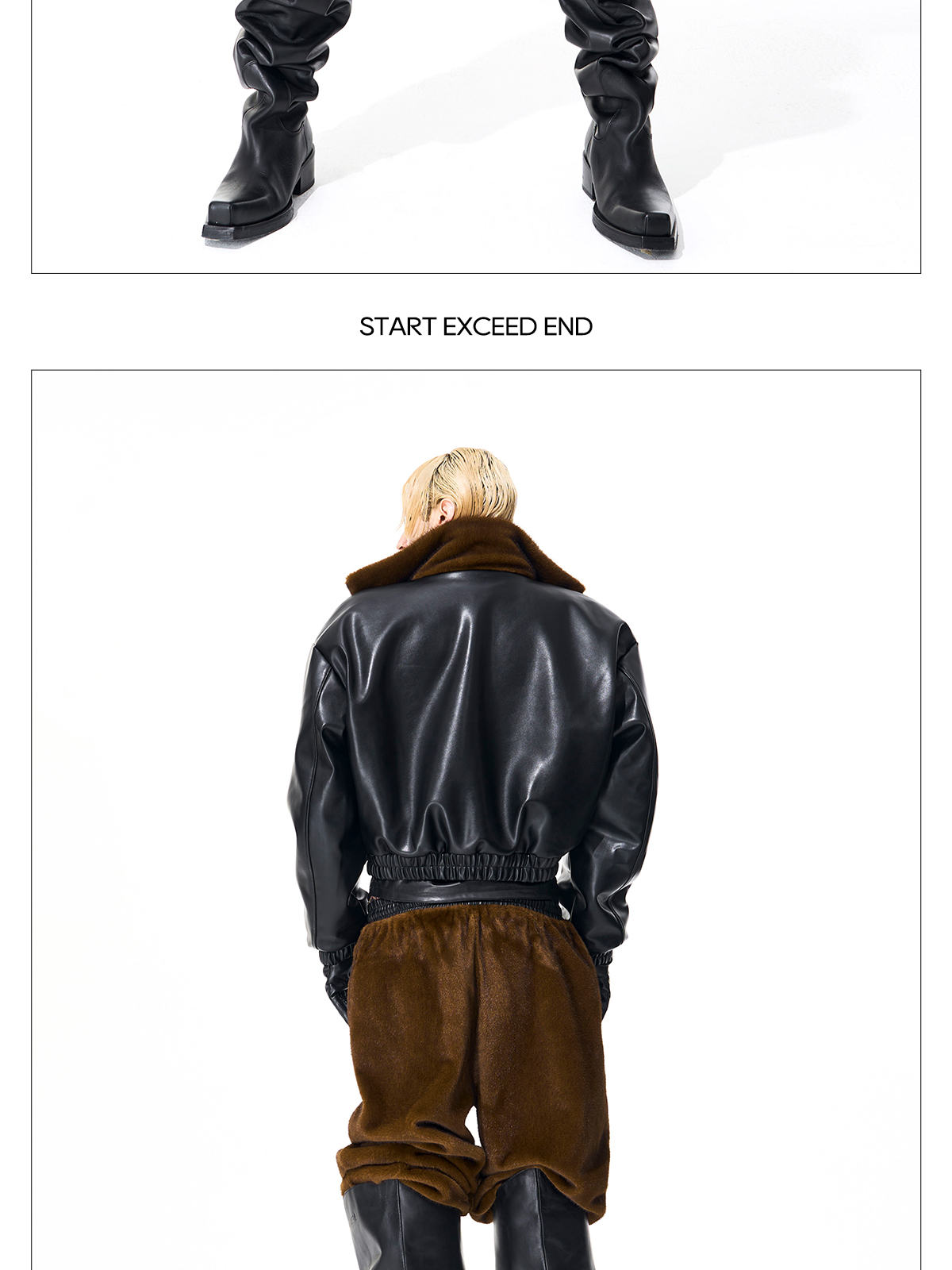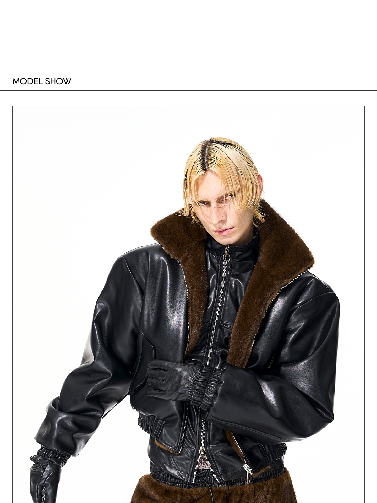 Reversible Fake Fur Stand Neck PU Leather Jacket & Pants Setup WN21827