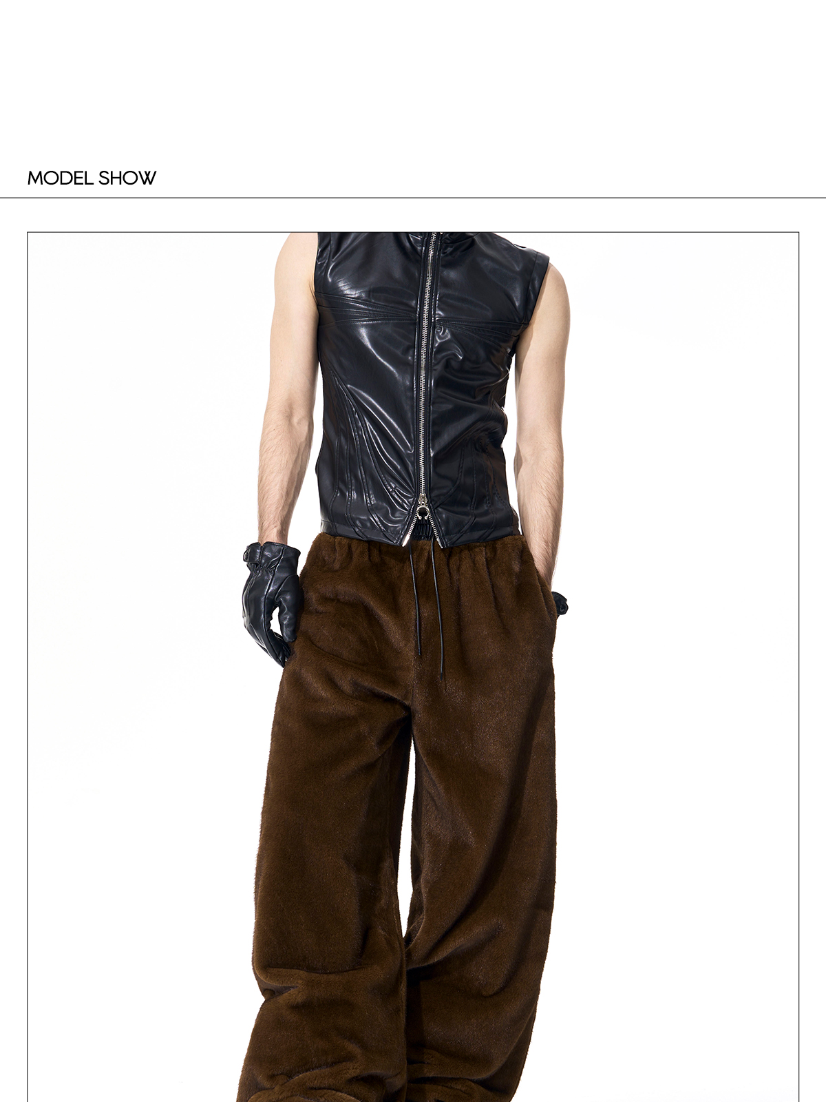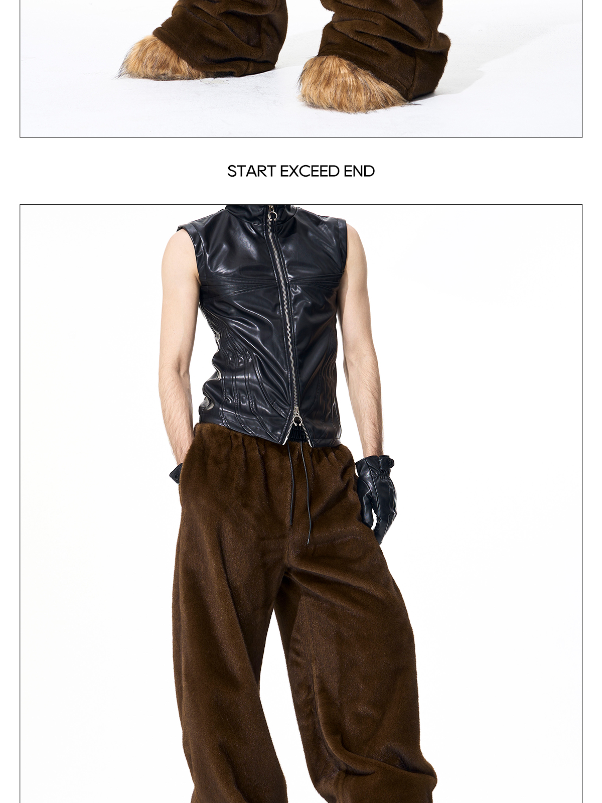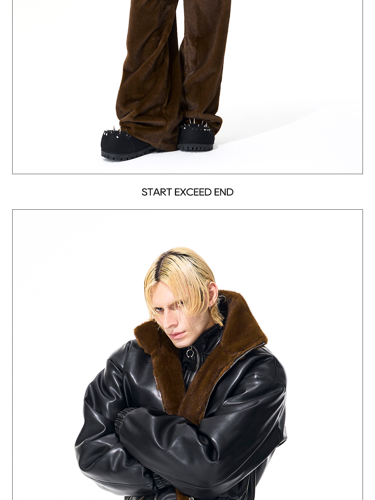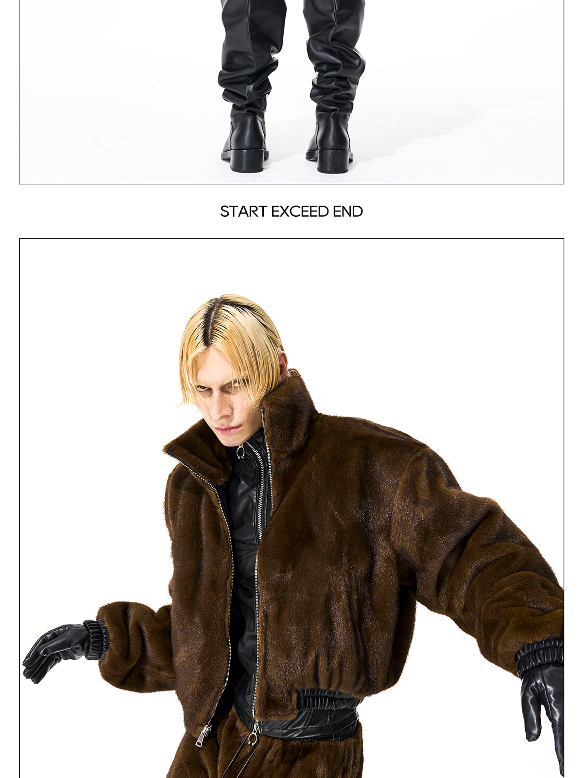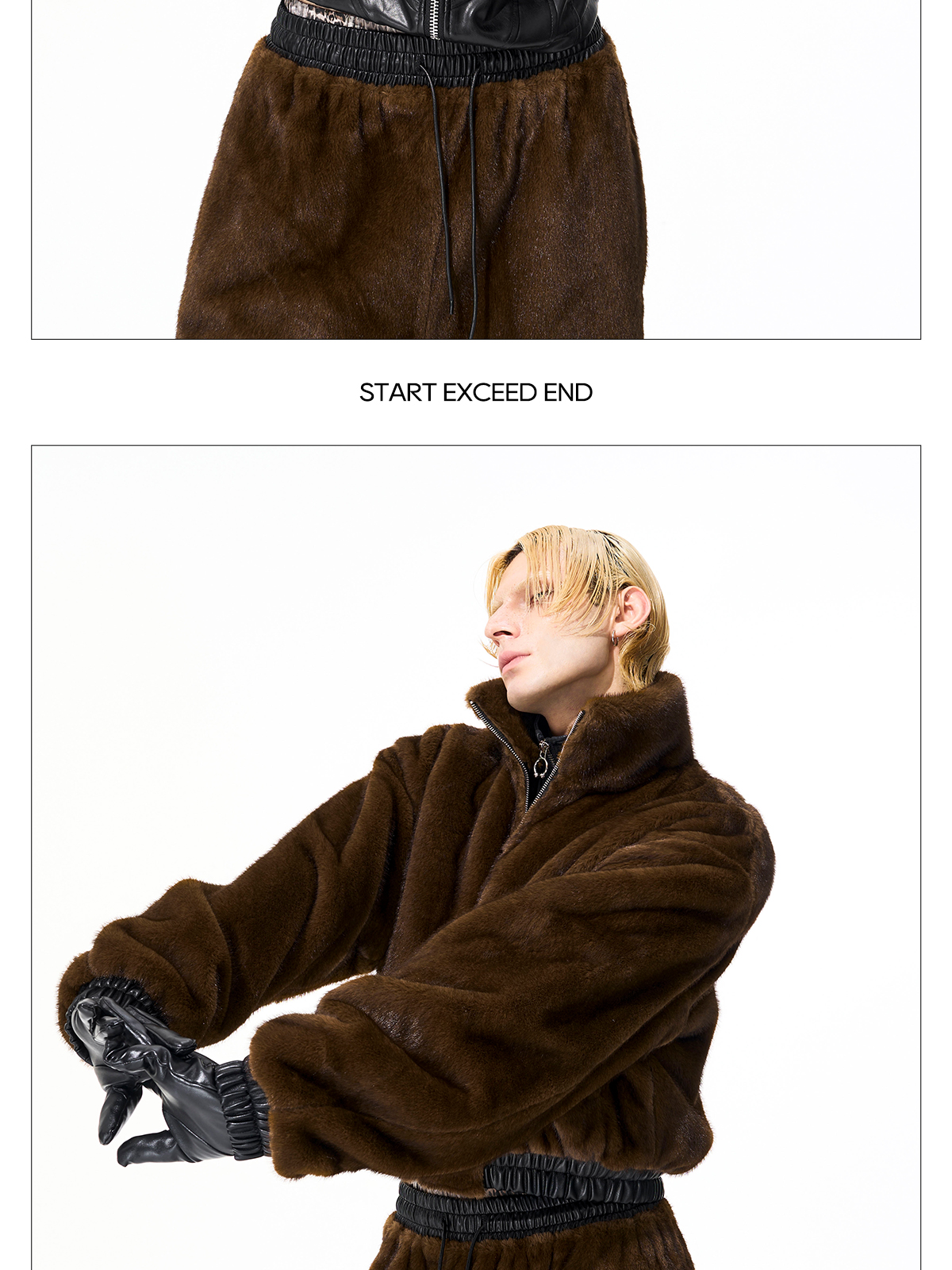 Reversible Fake Fur Stand Neck PU Leather Jacket & Pants Setup WN21827