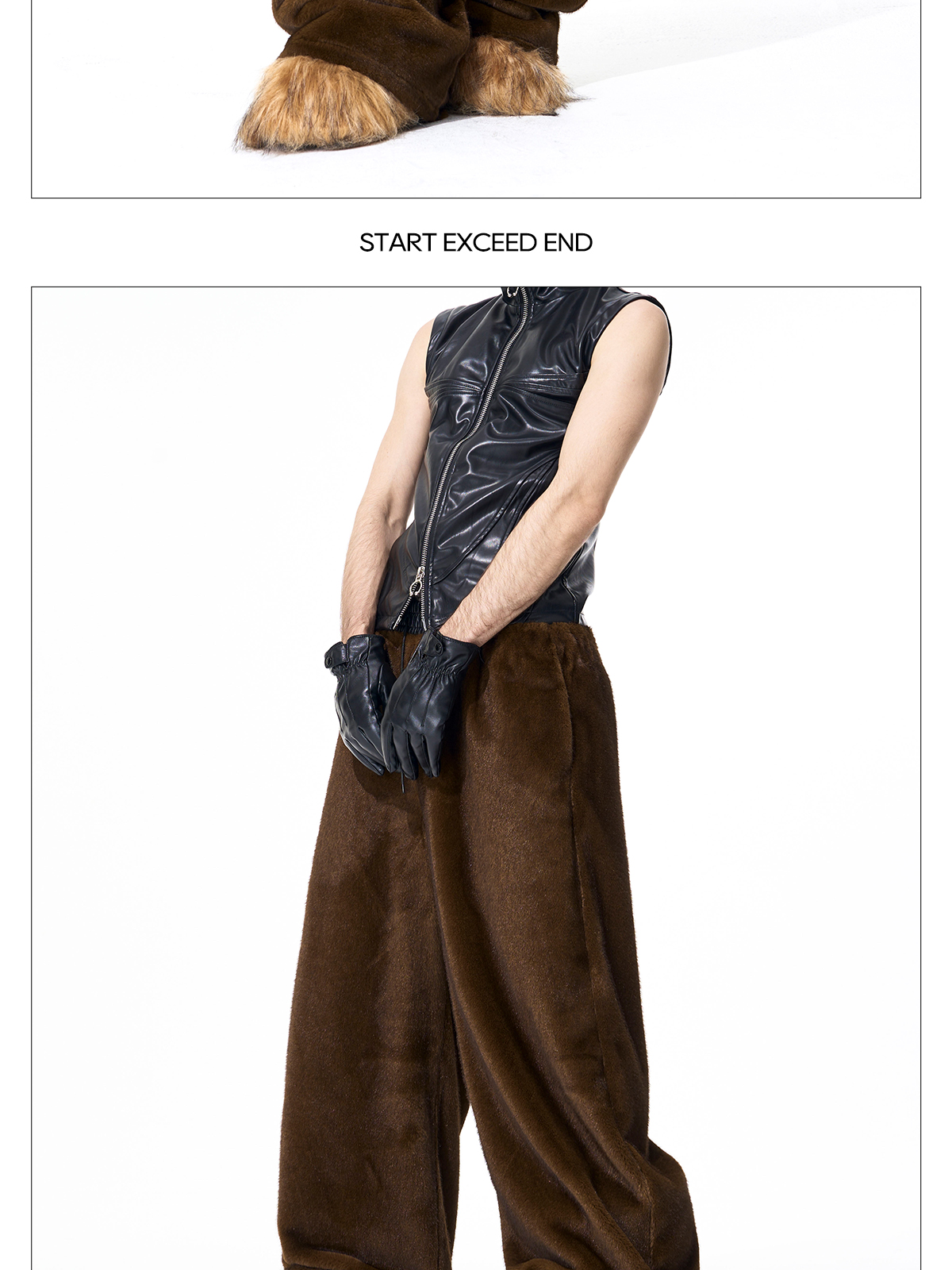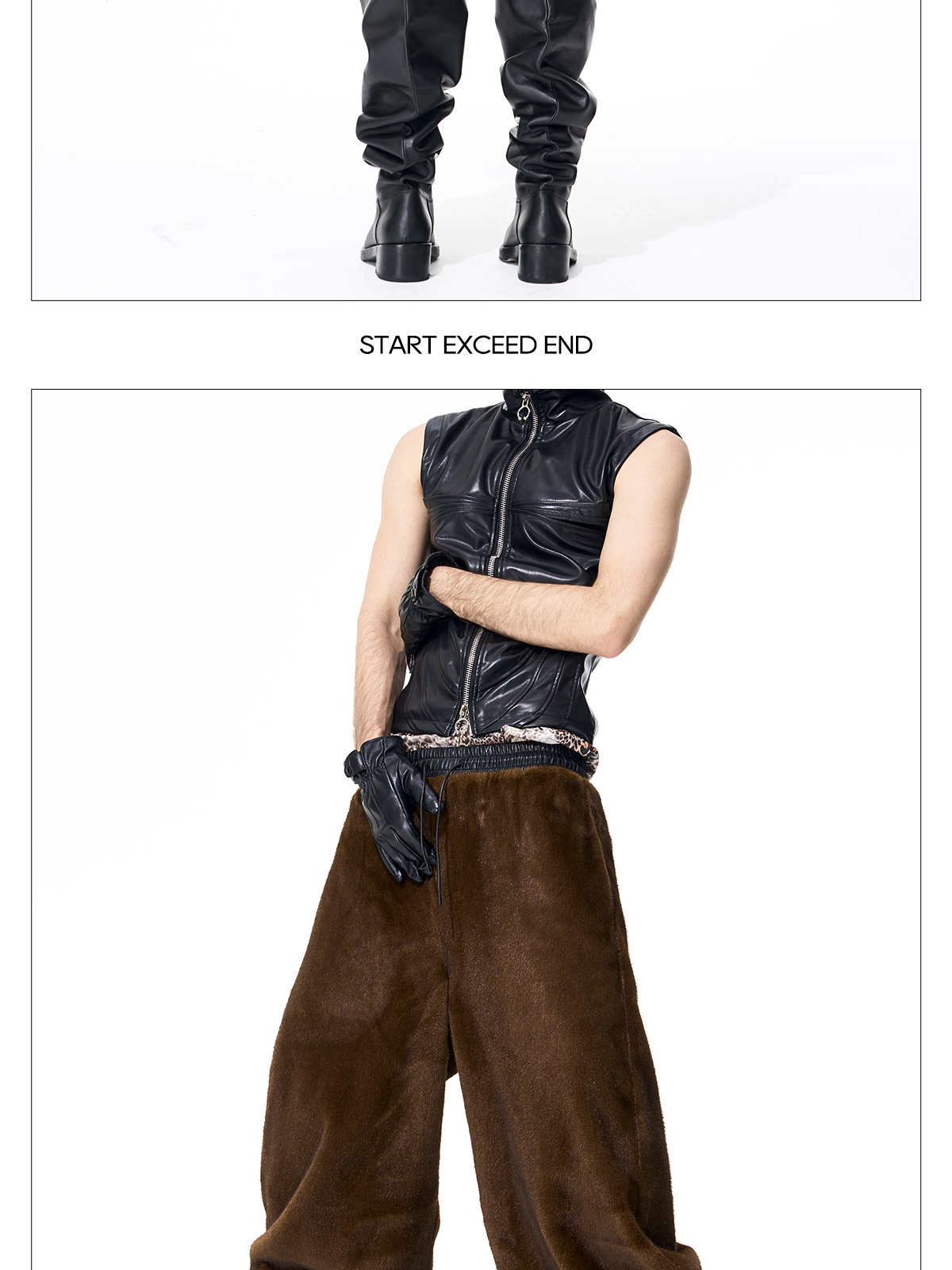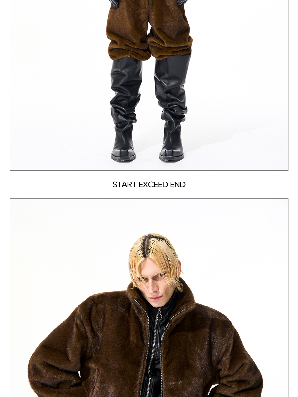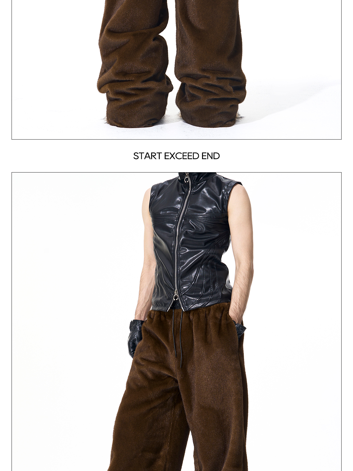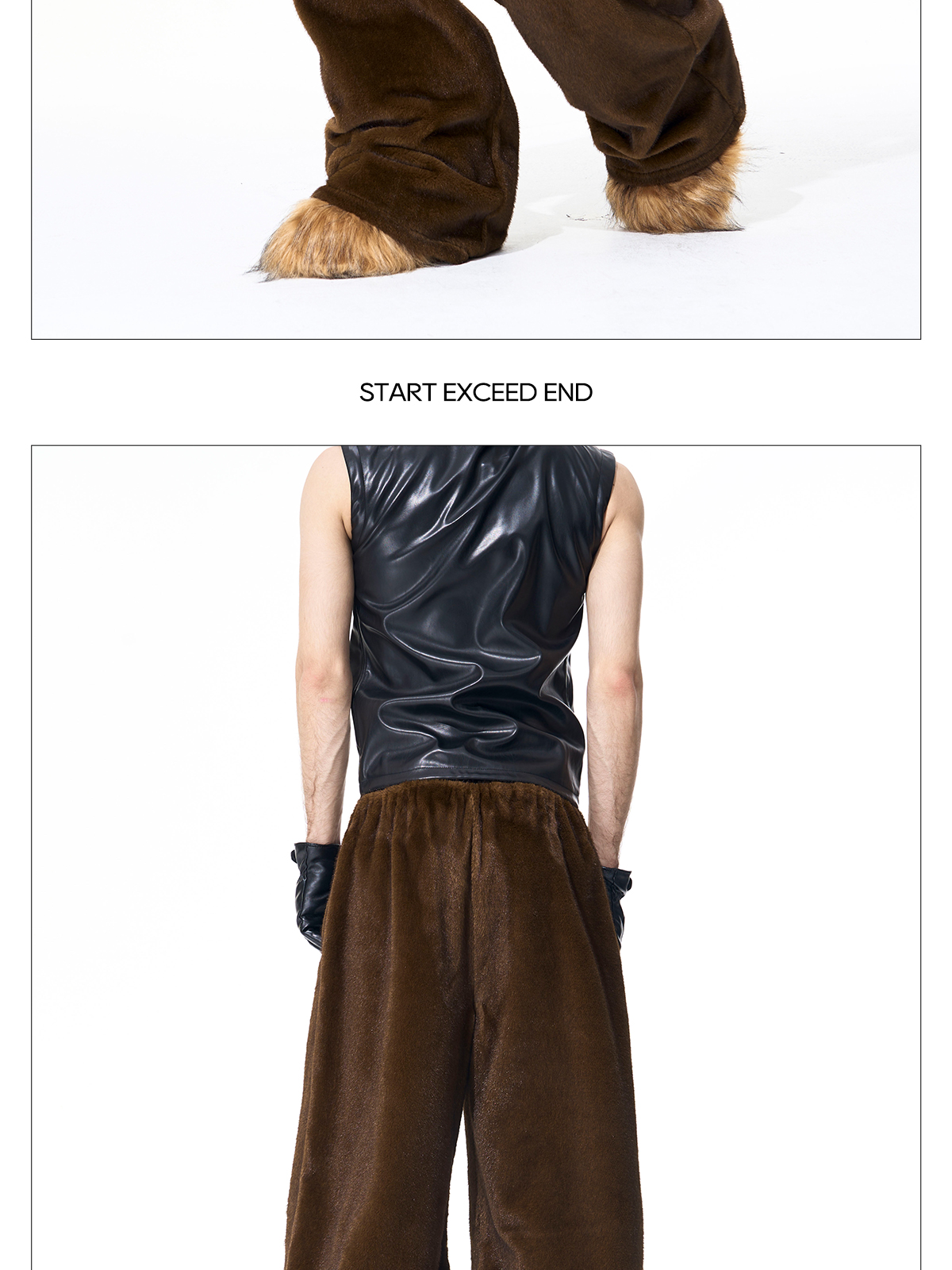 Reversible Fake Fur Stand Neck PU Leather Jacket & Pants Setup WN21827