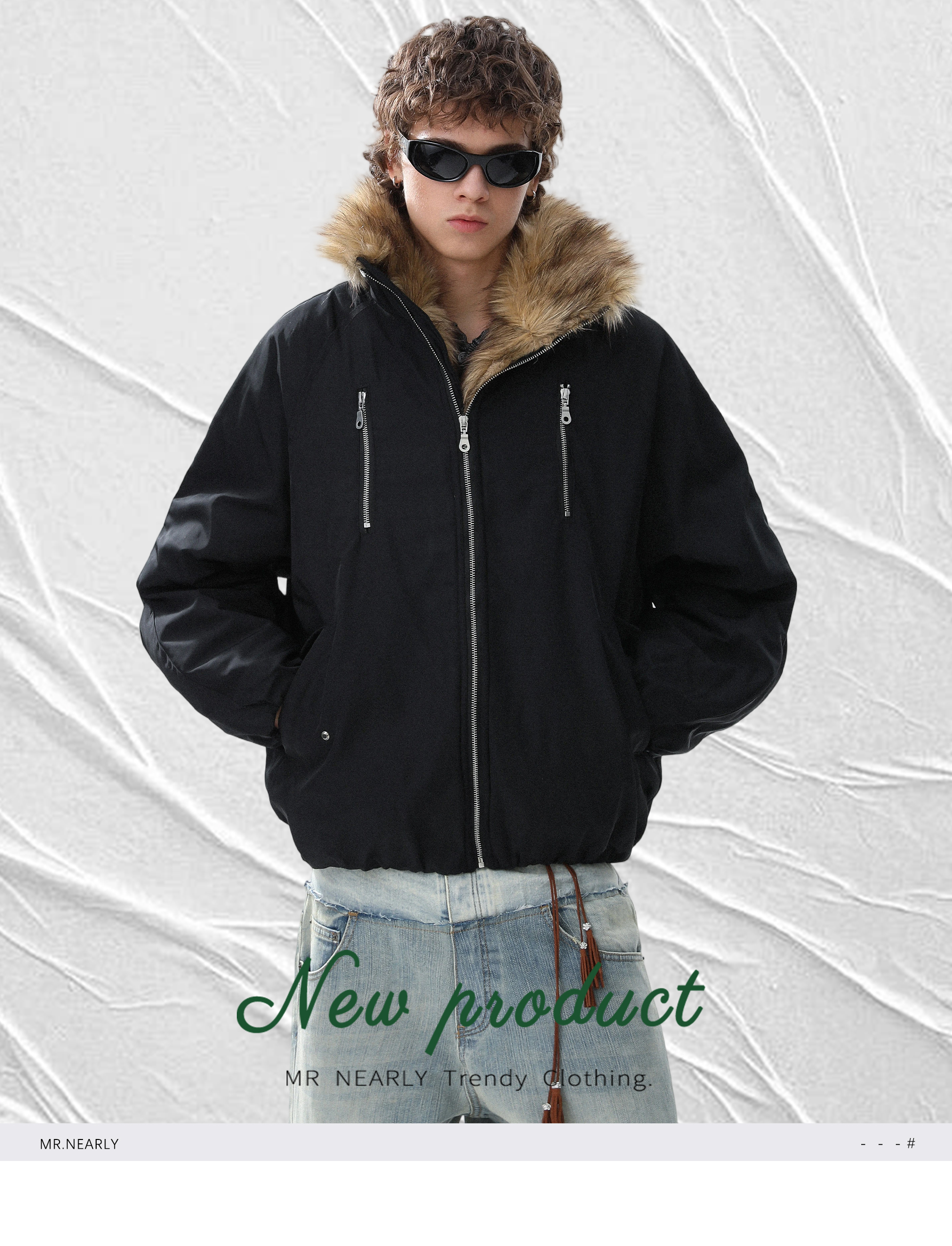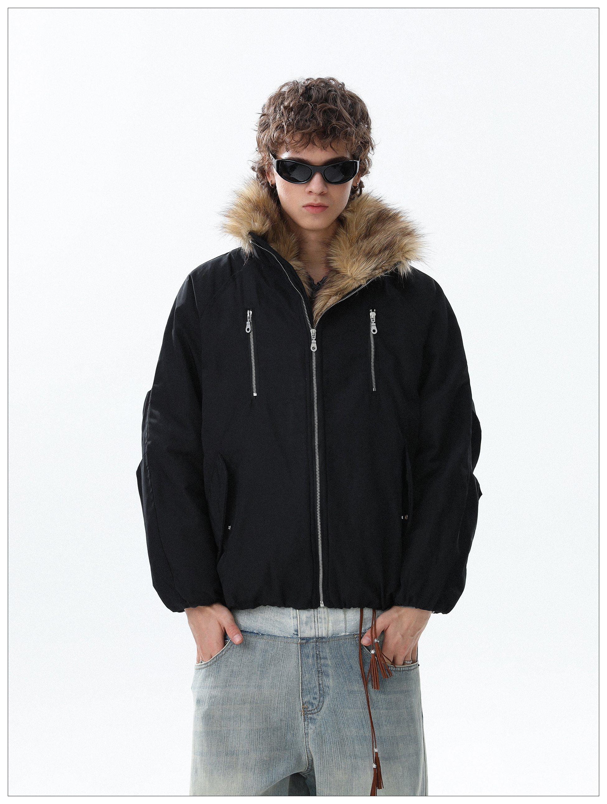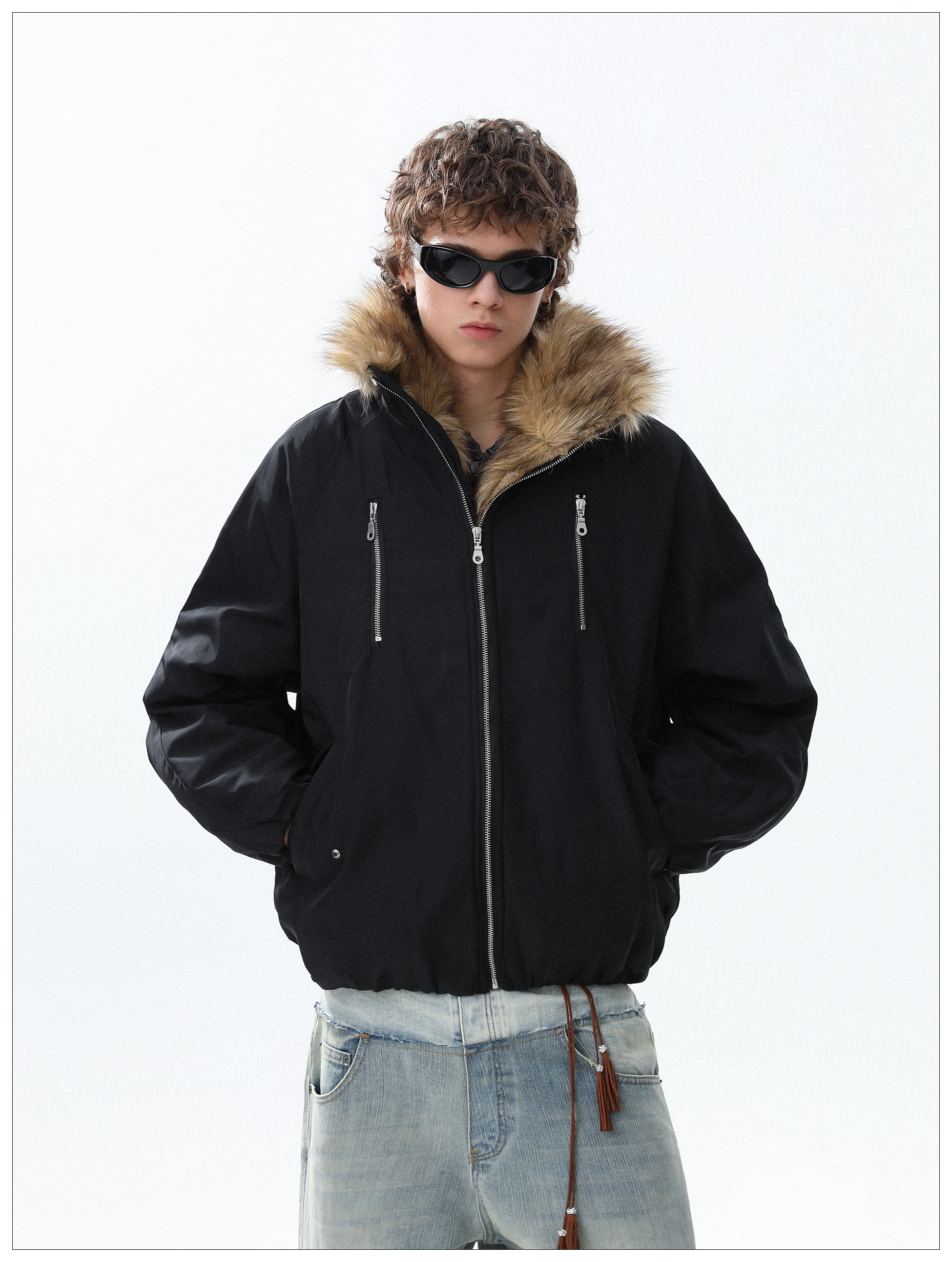 Fake Fur-Collar Thick Warm Zipper Jacket WN22094