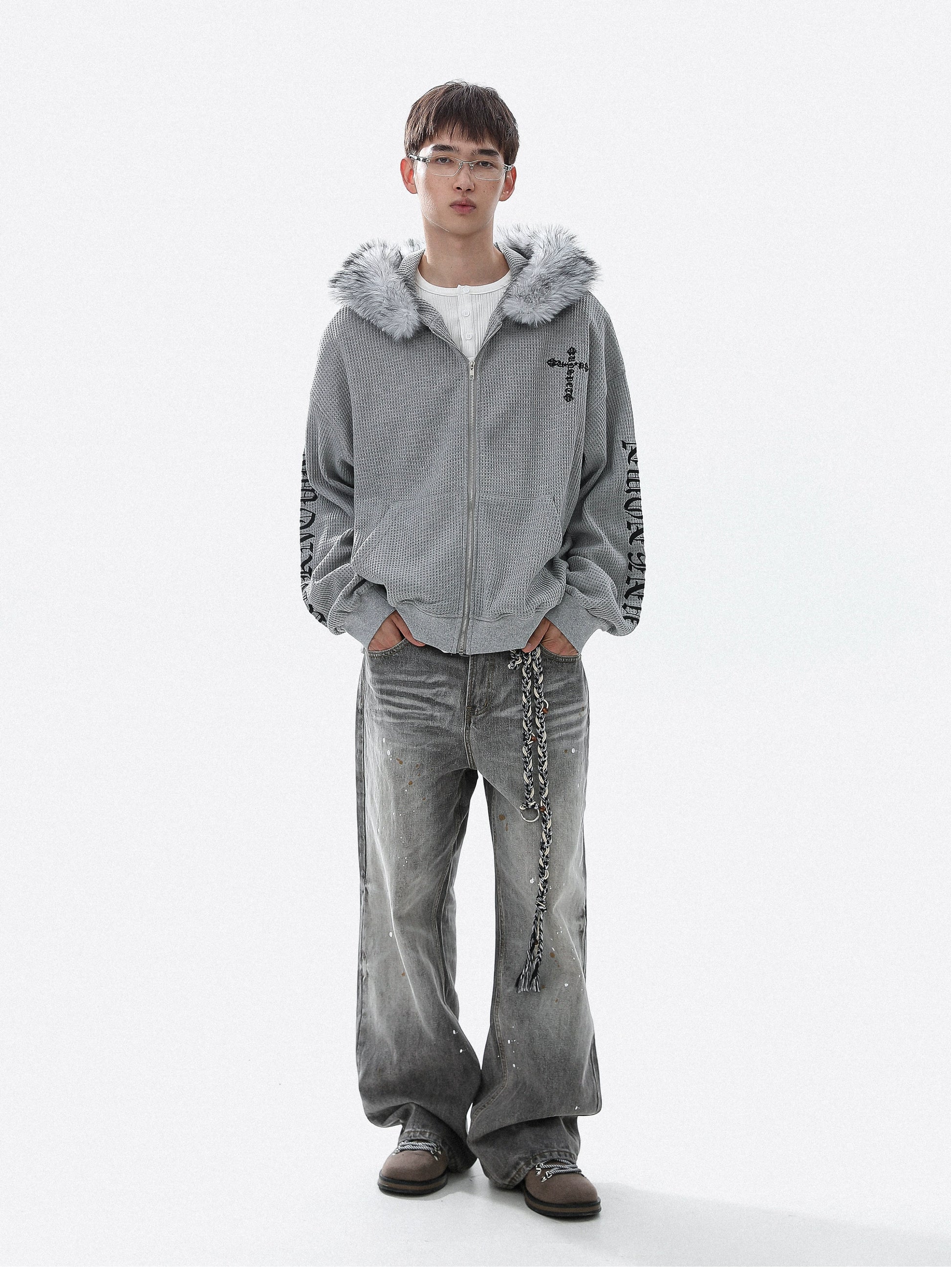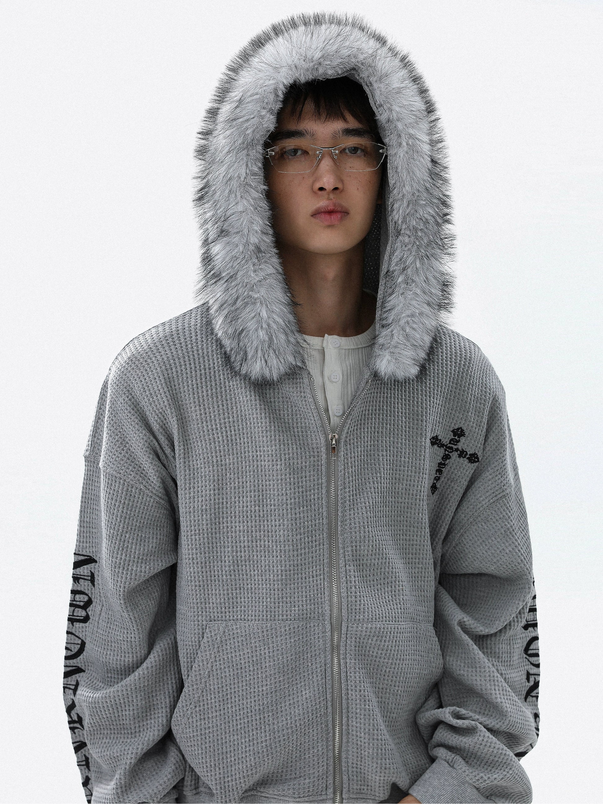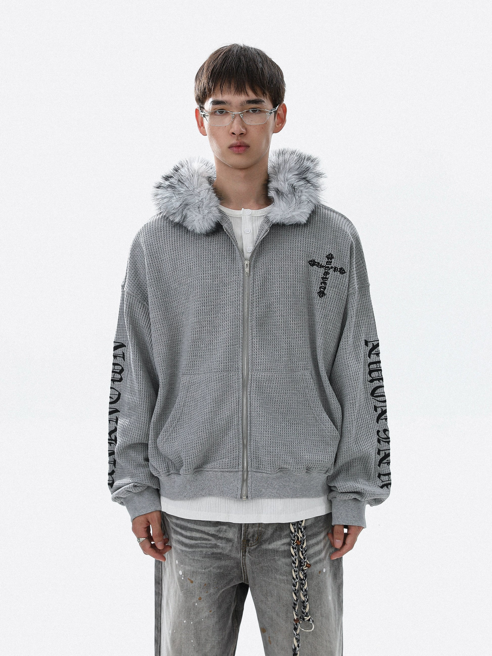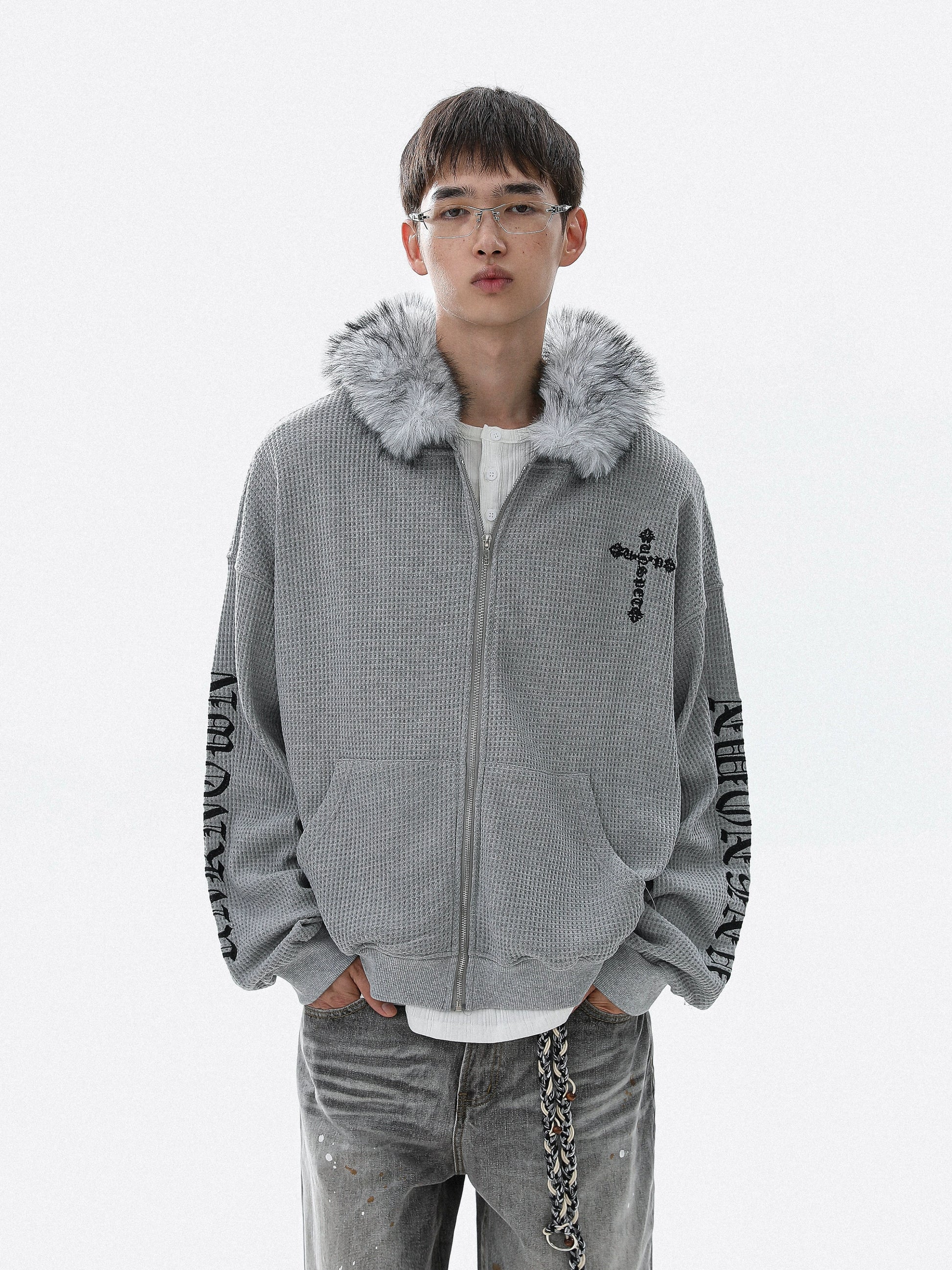 Embroidery Fake Fur-Collar Thick Zipper Hoodie WN22104