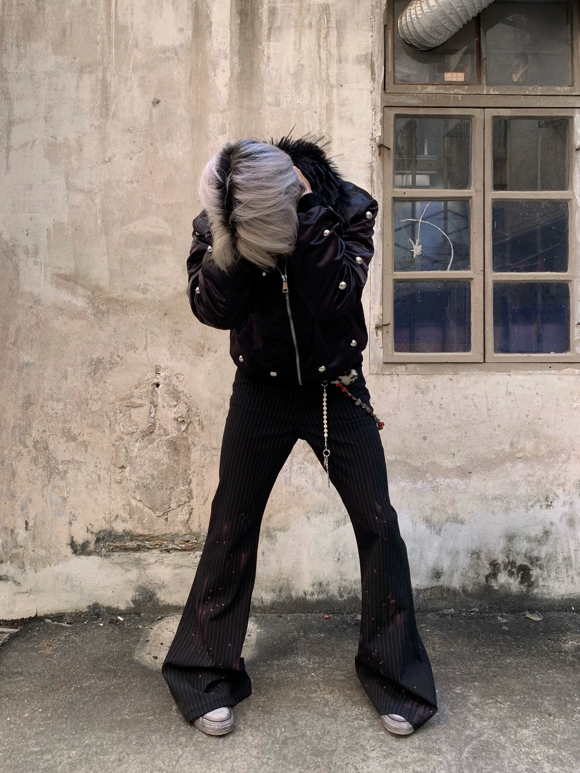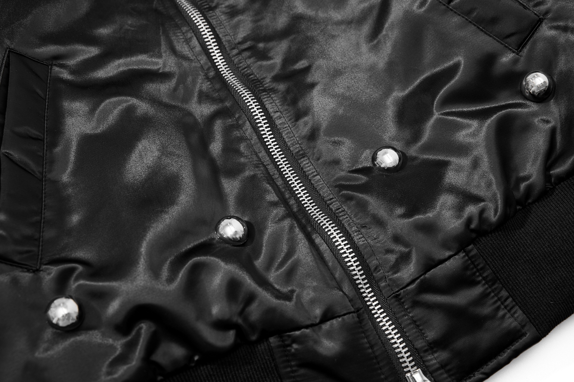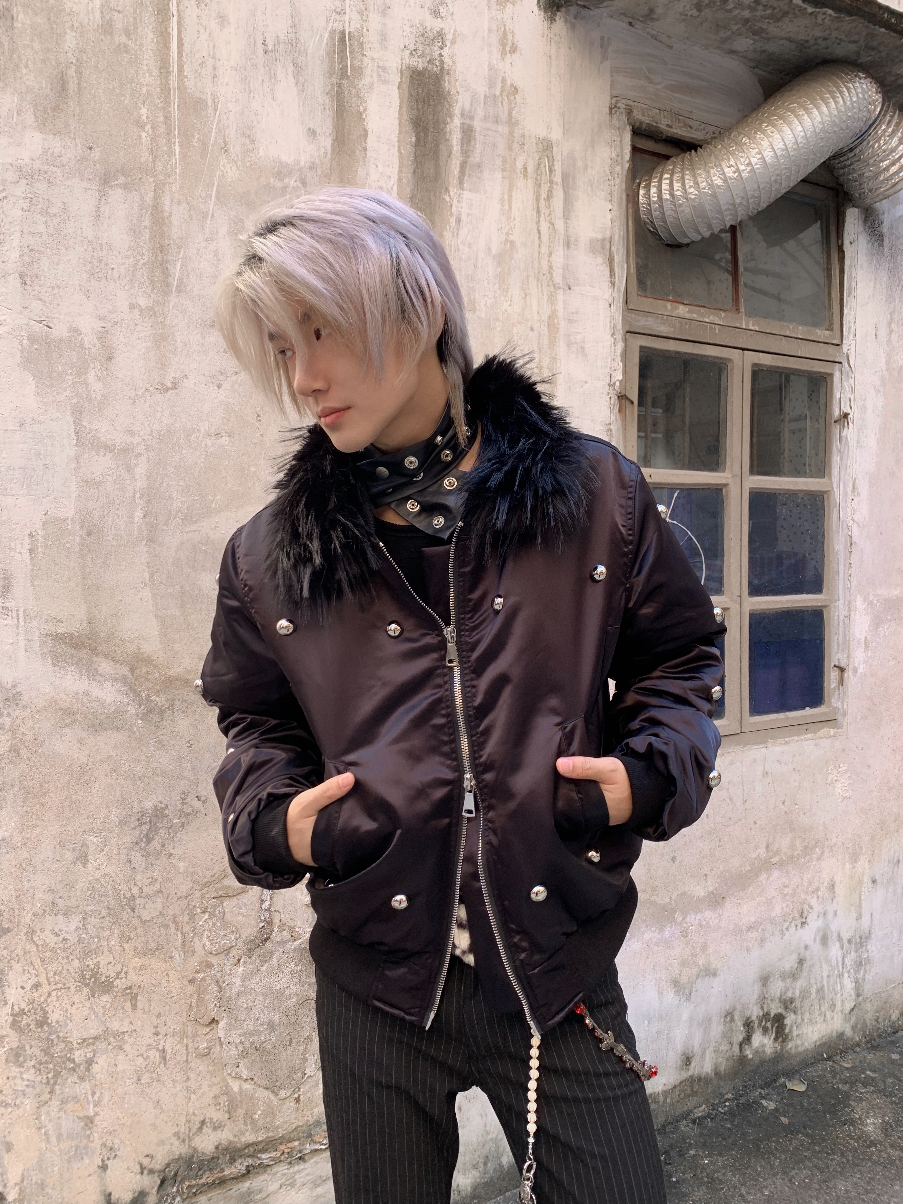 Fake Fur-Collar Rivet Zipper Bomber Jacket WN22206