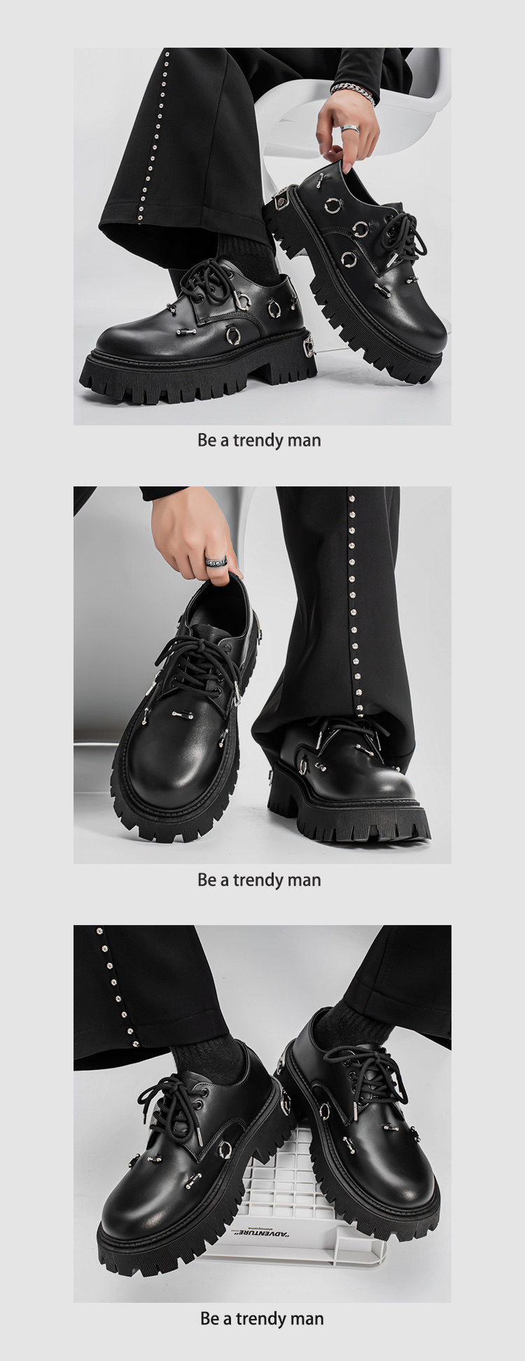 Metal Ring Detail Platform Lace-Up Shoes WN23349