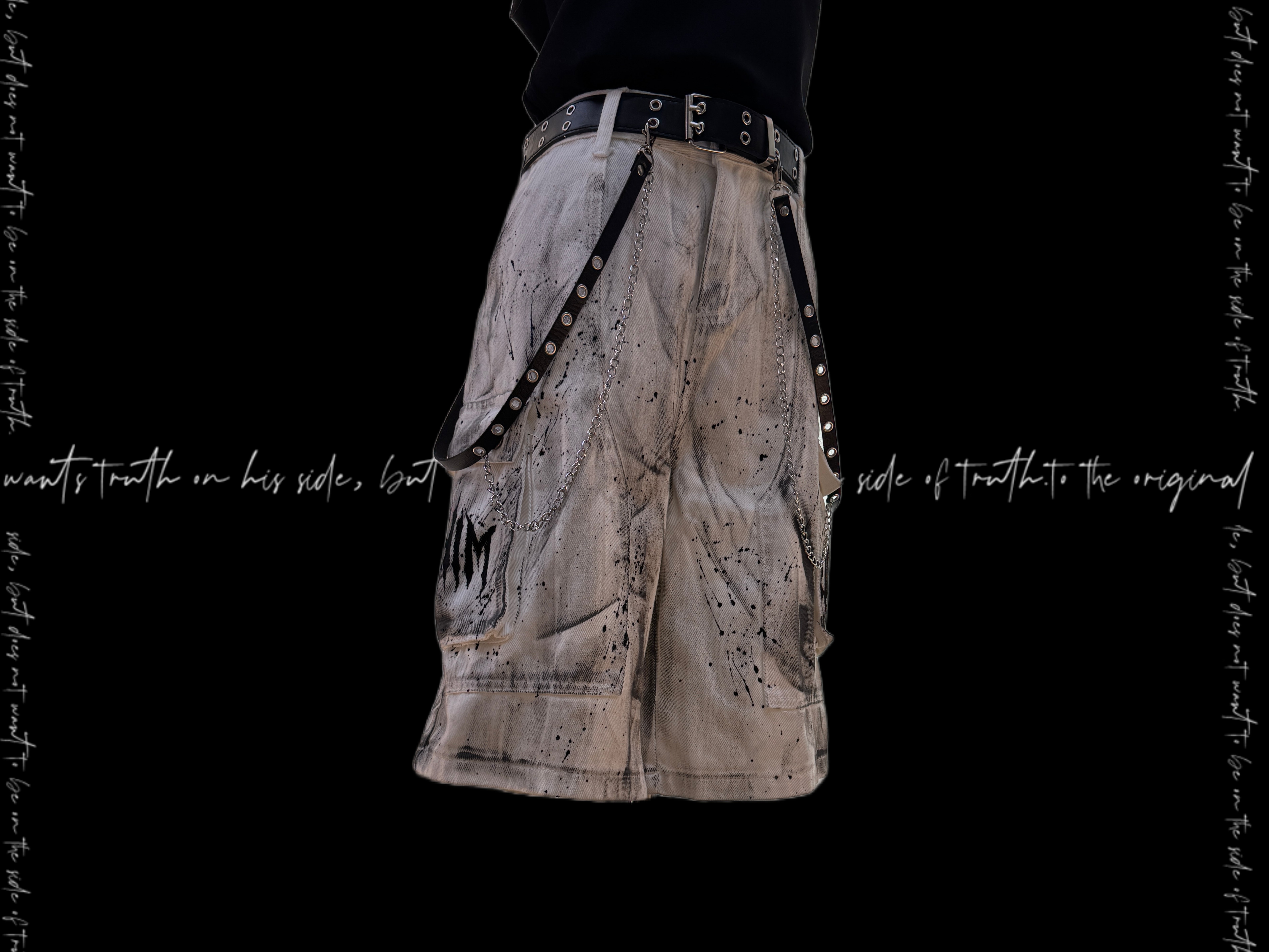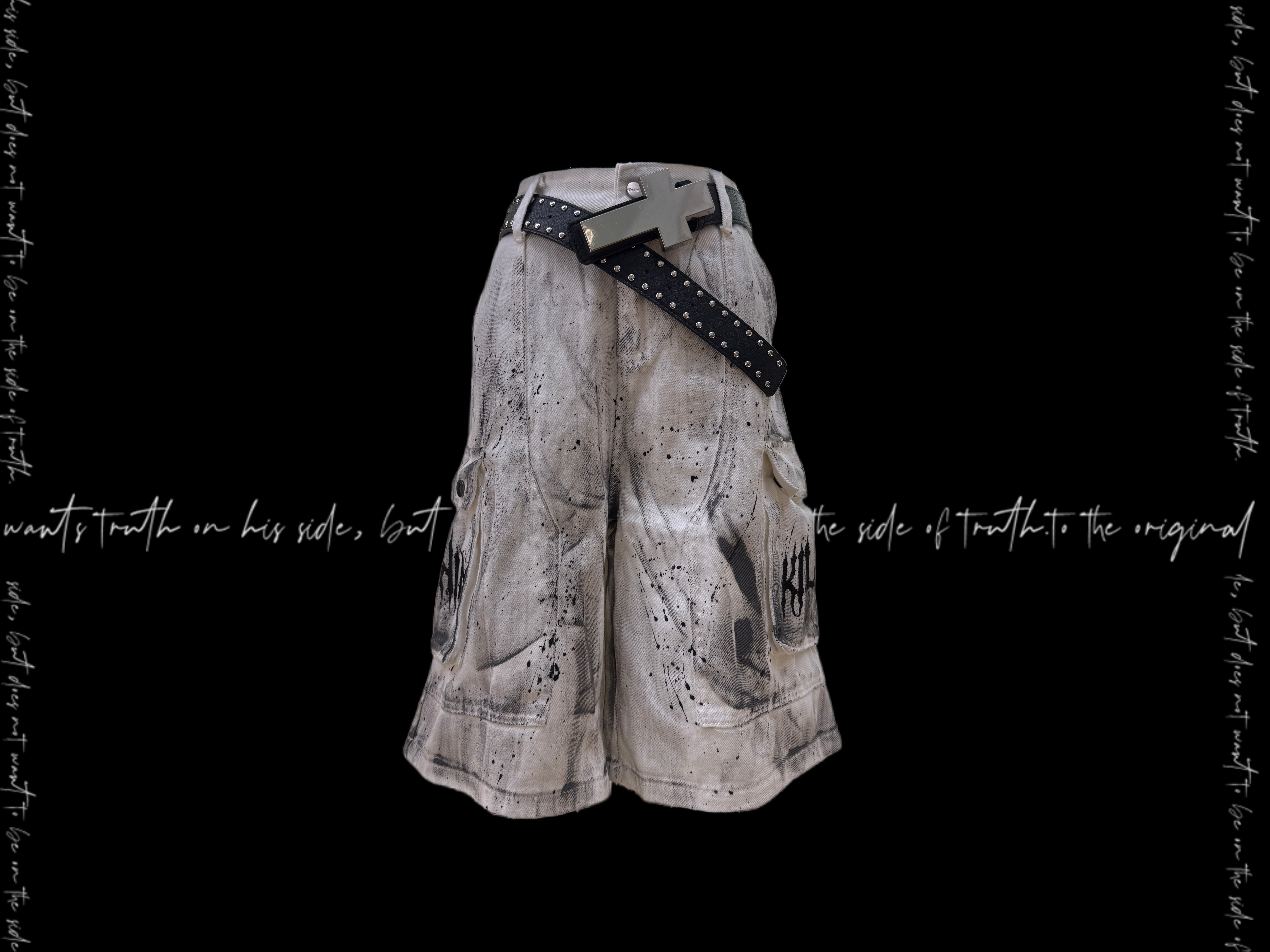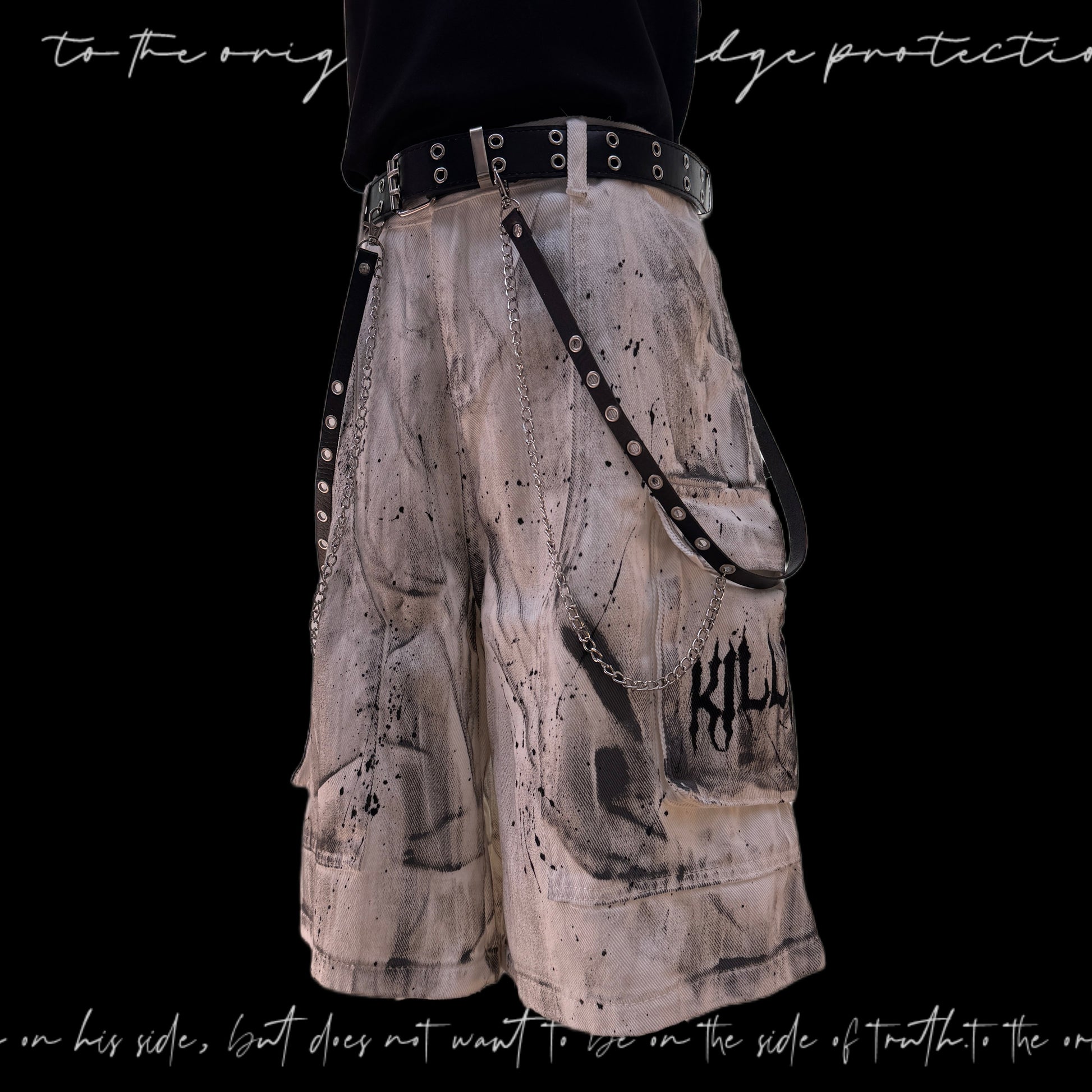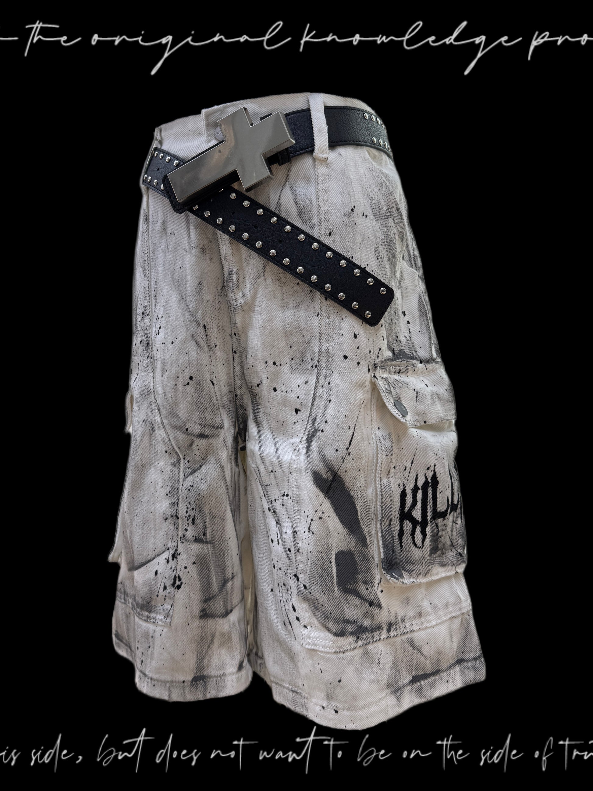 Paint Pocket Denim Cargo Denim Half Jeans & Skull Belt & Cross Belt & Belt Chain WN23797