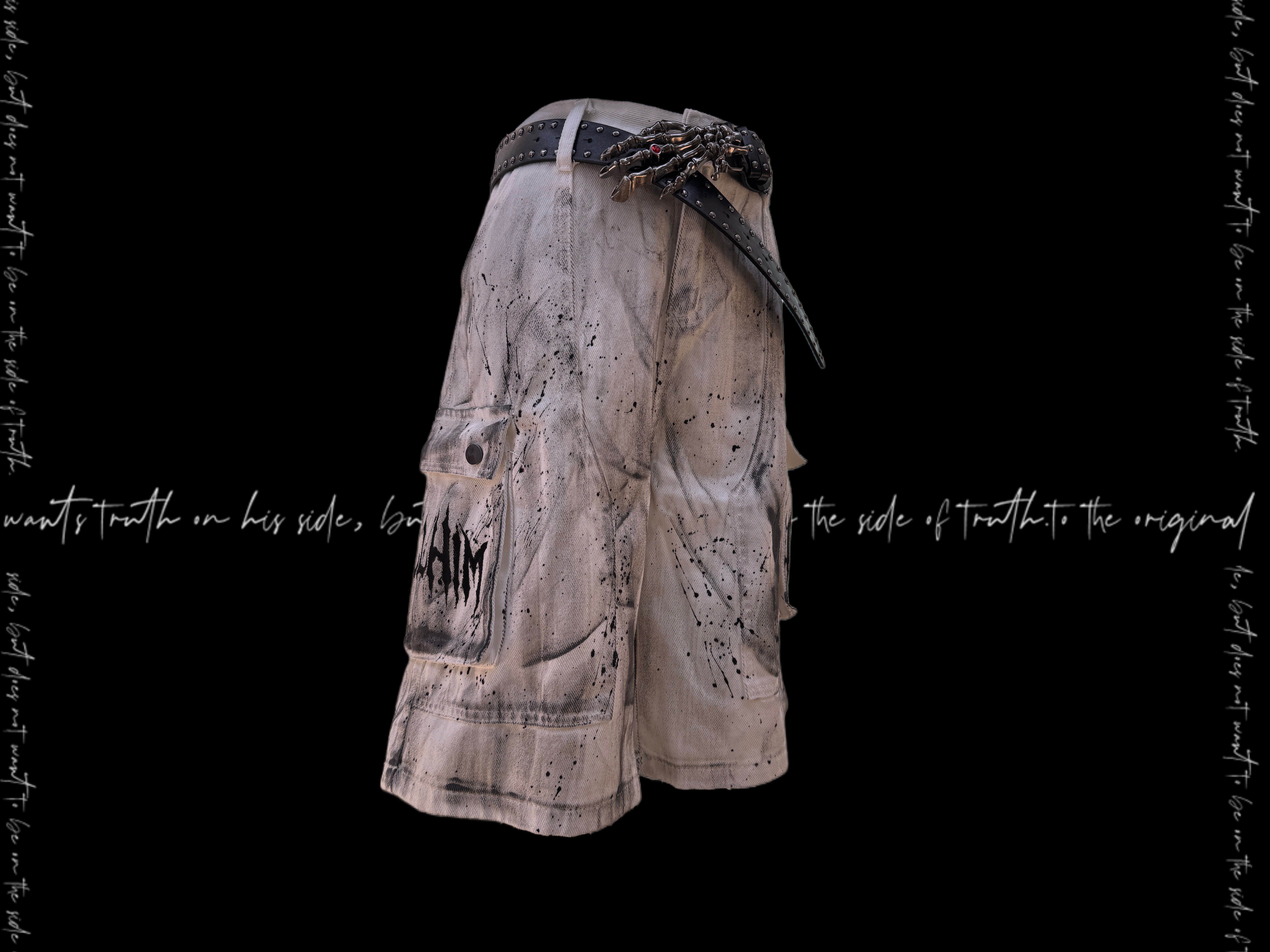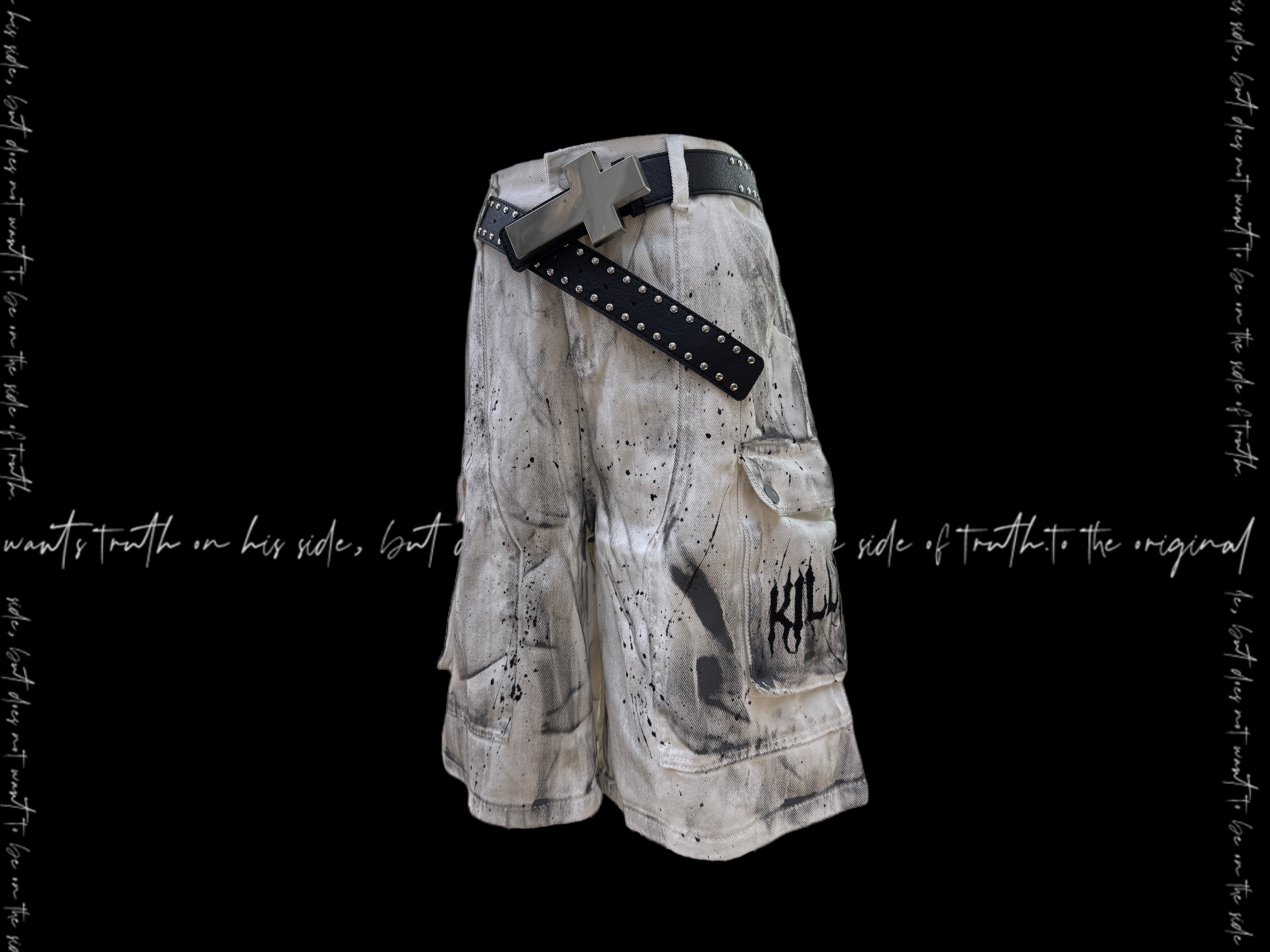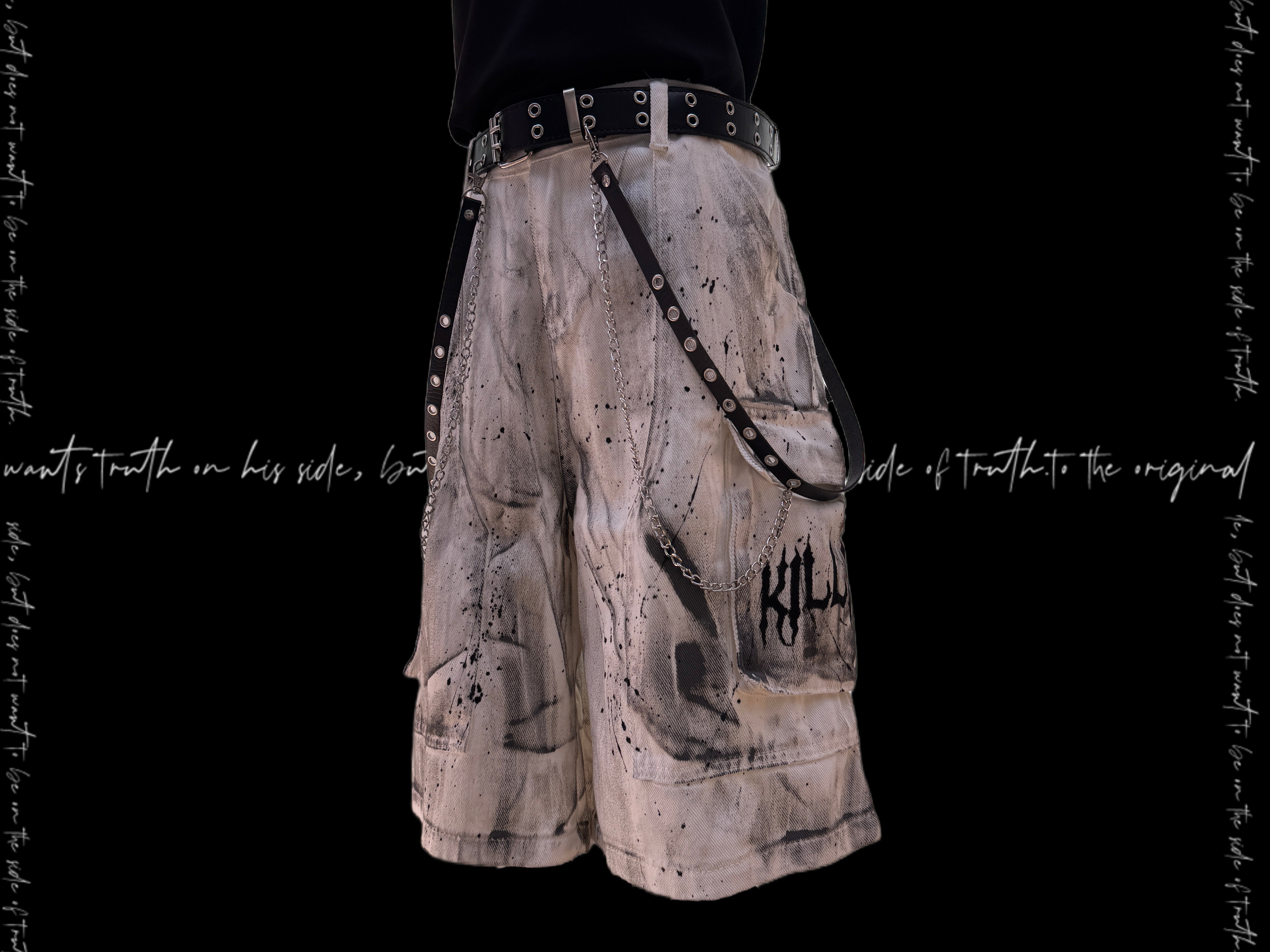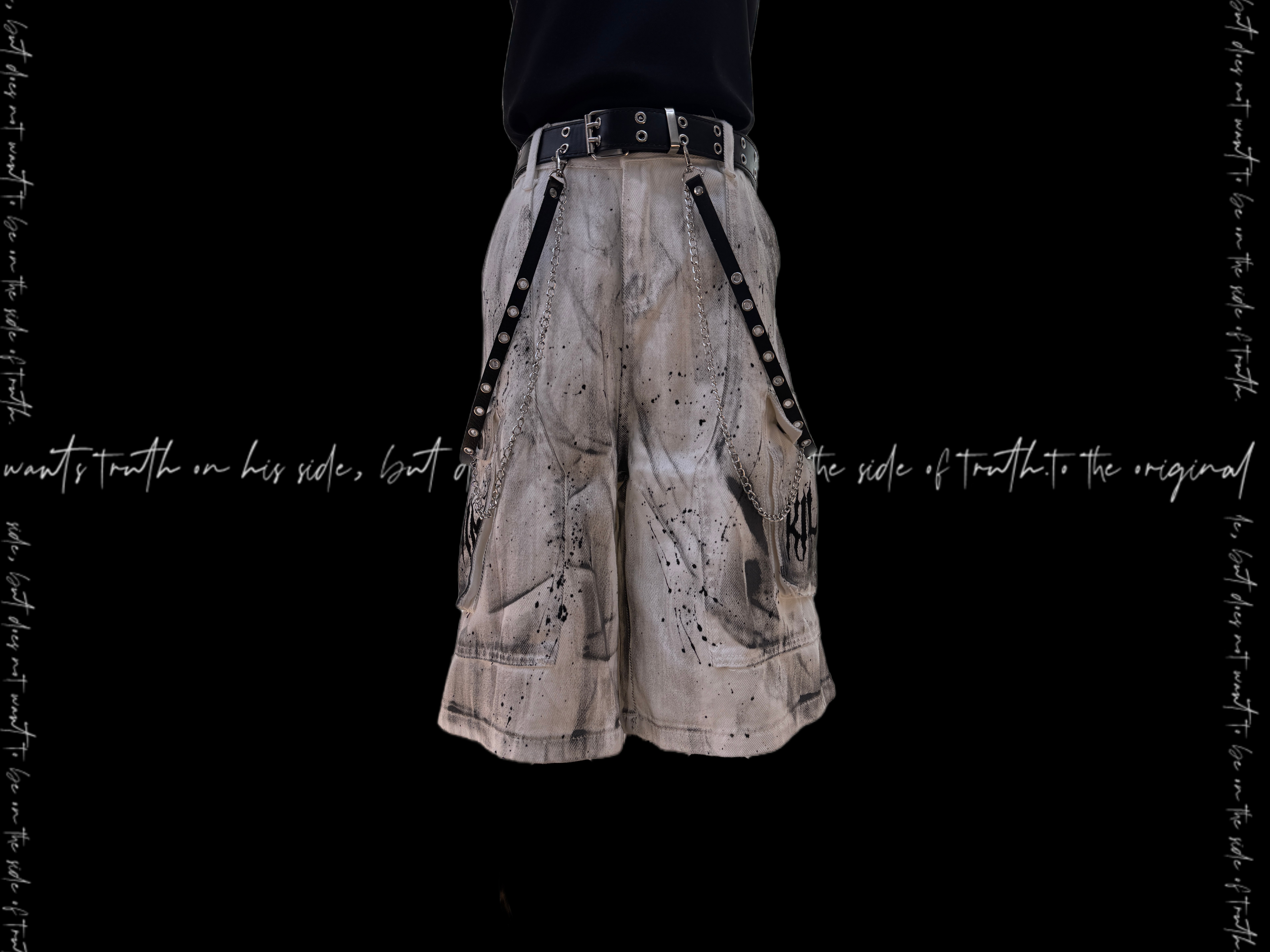 Paint Pocket Denim Cargo Denim Half Jeans & Skull Belt & Cross Belt & Belt Chain WN23797