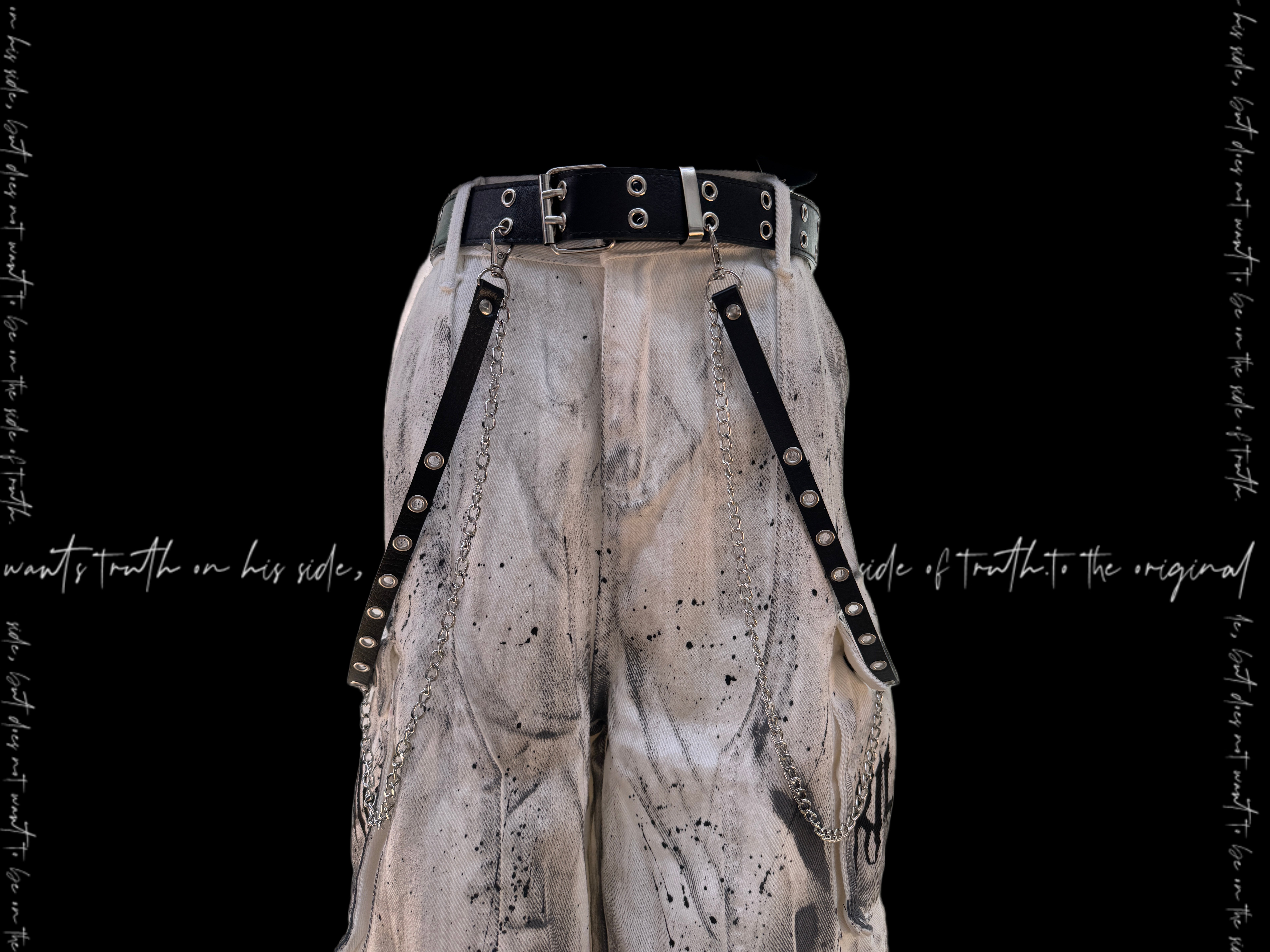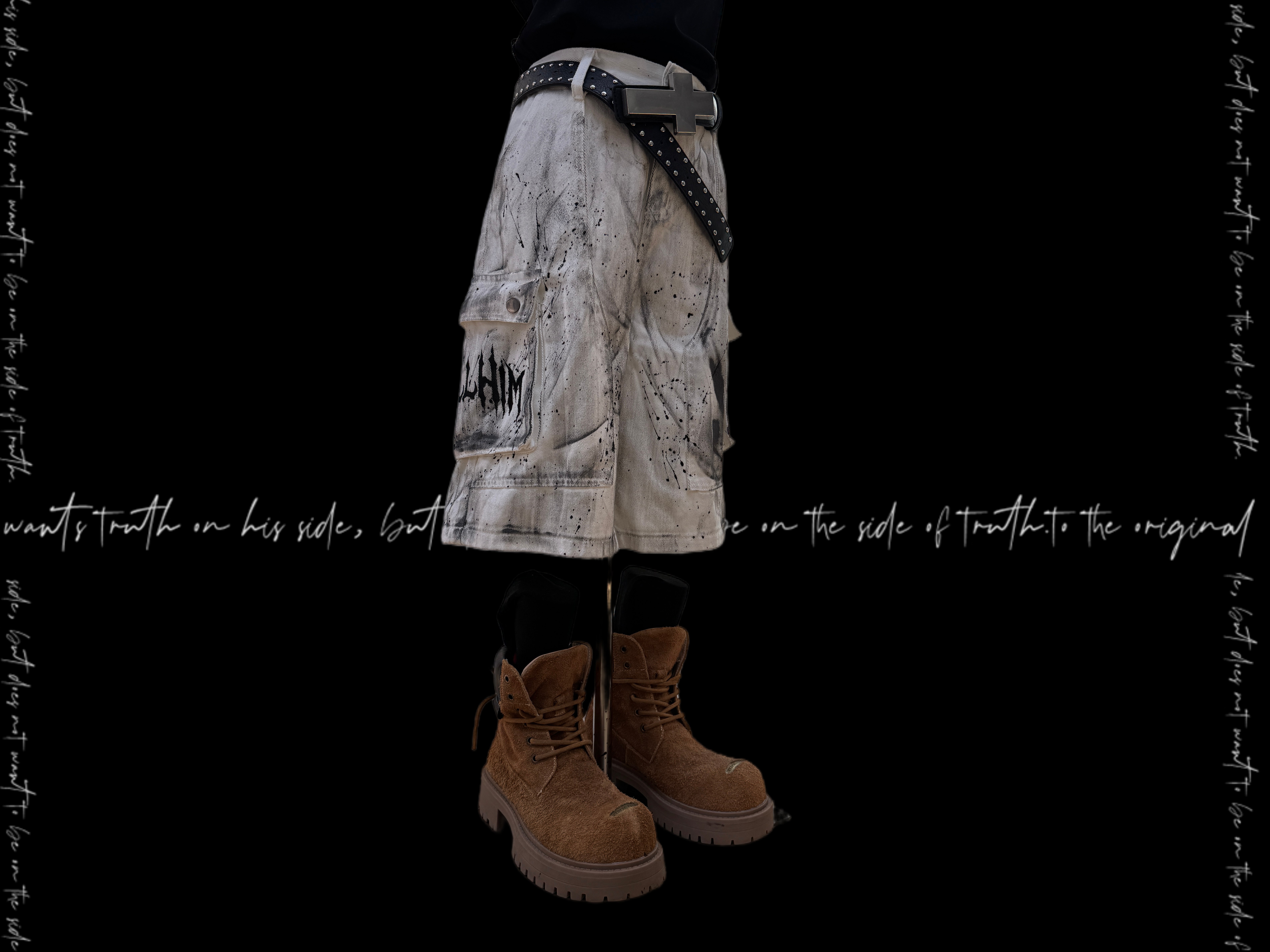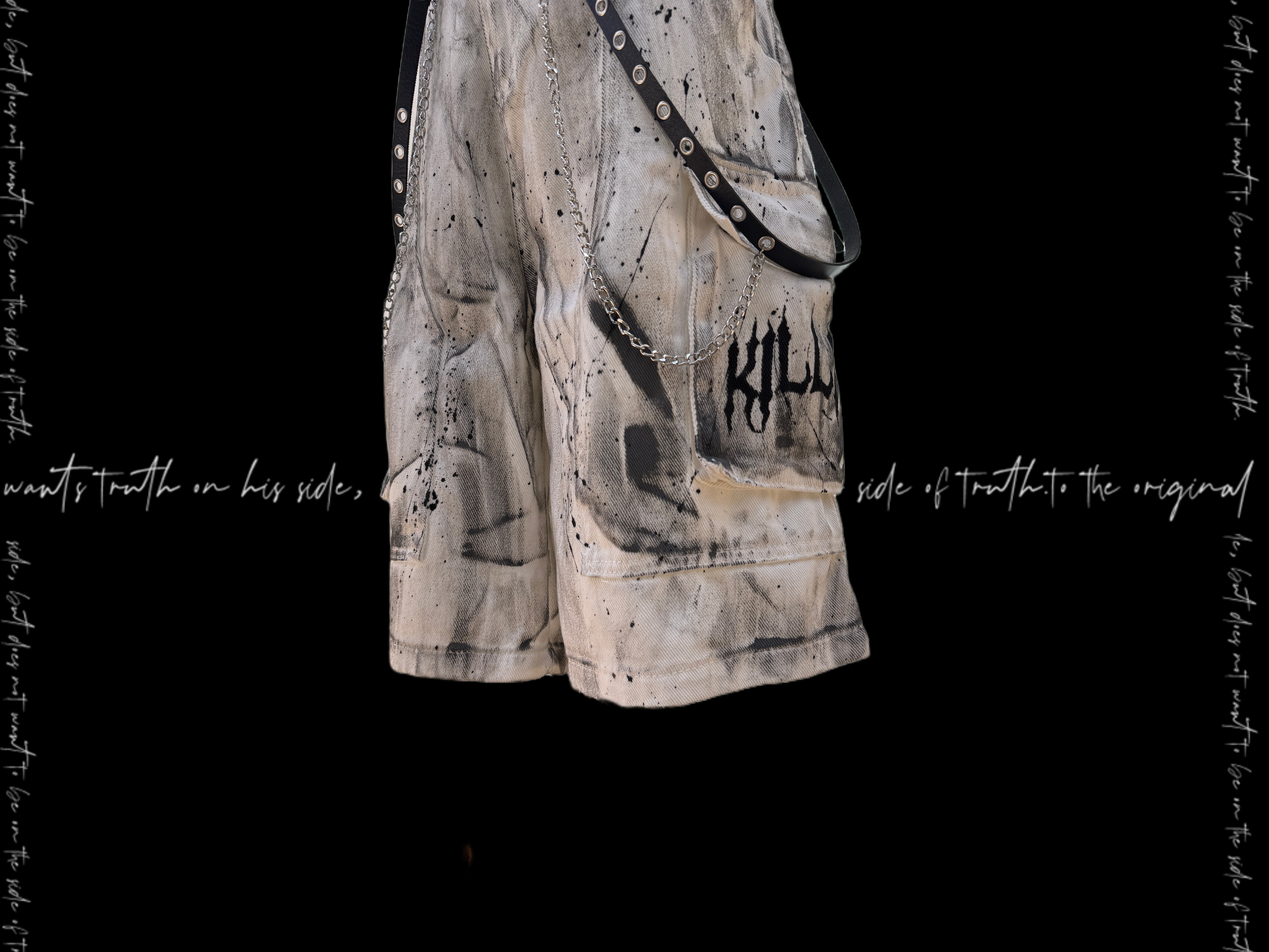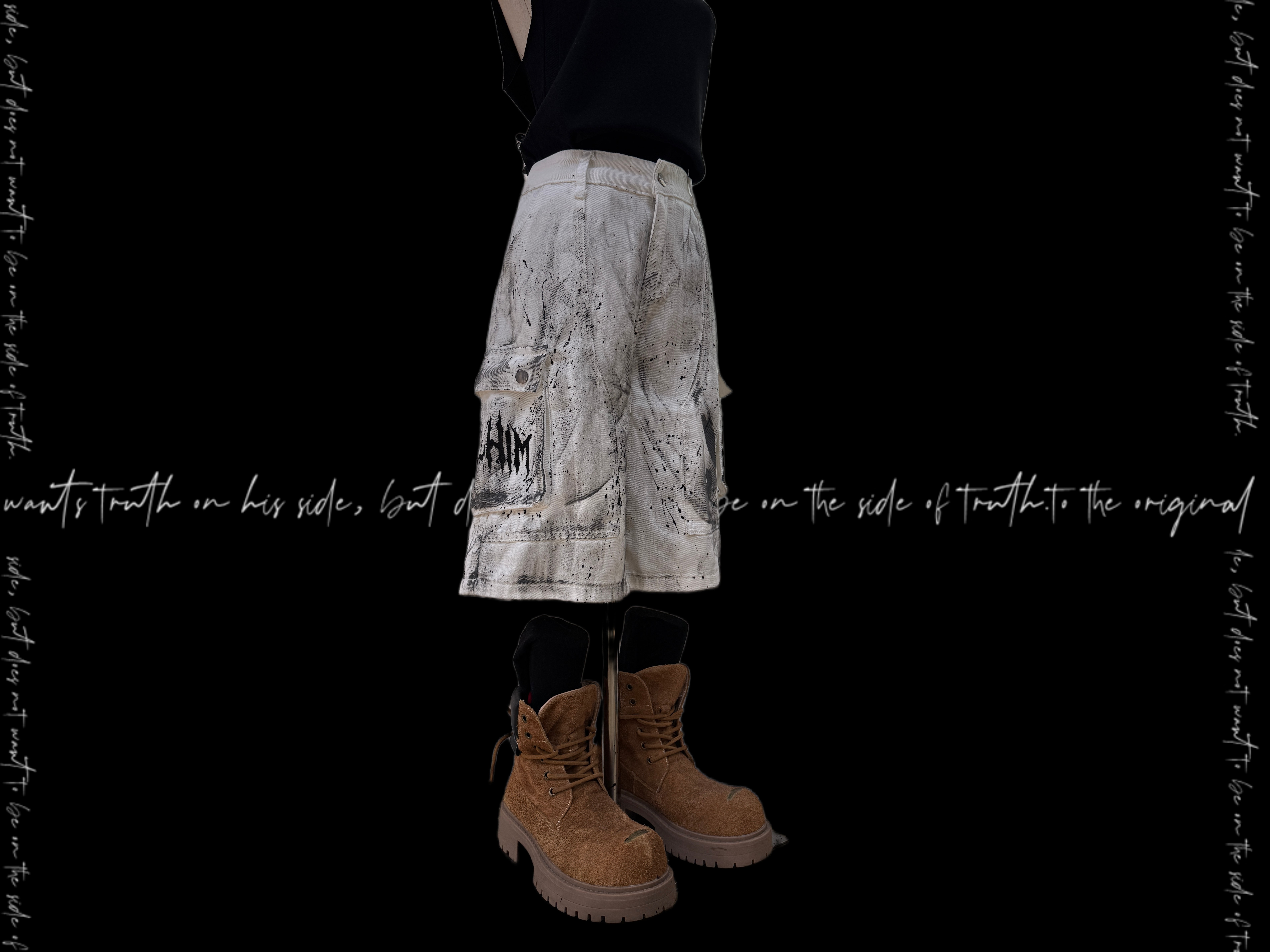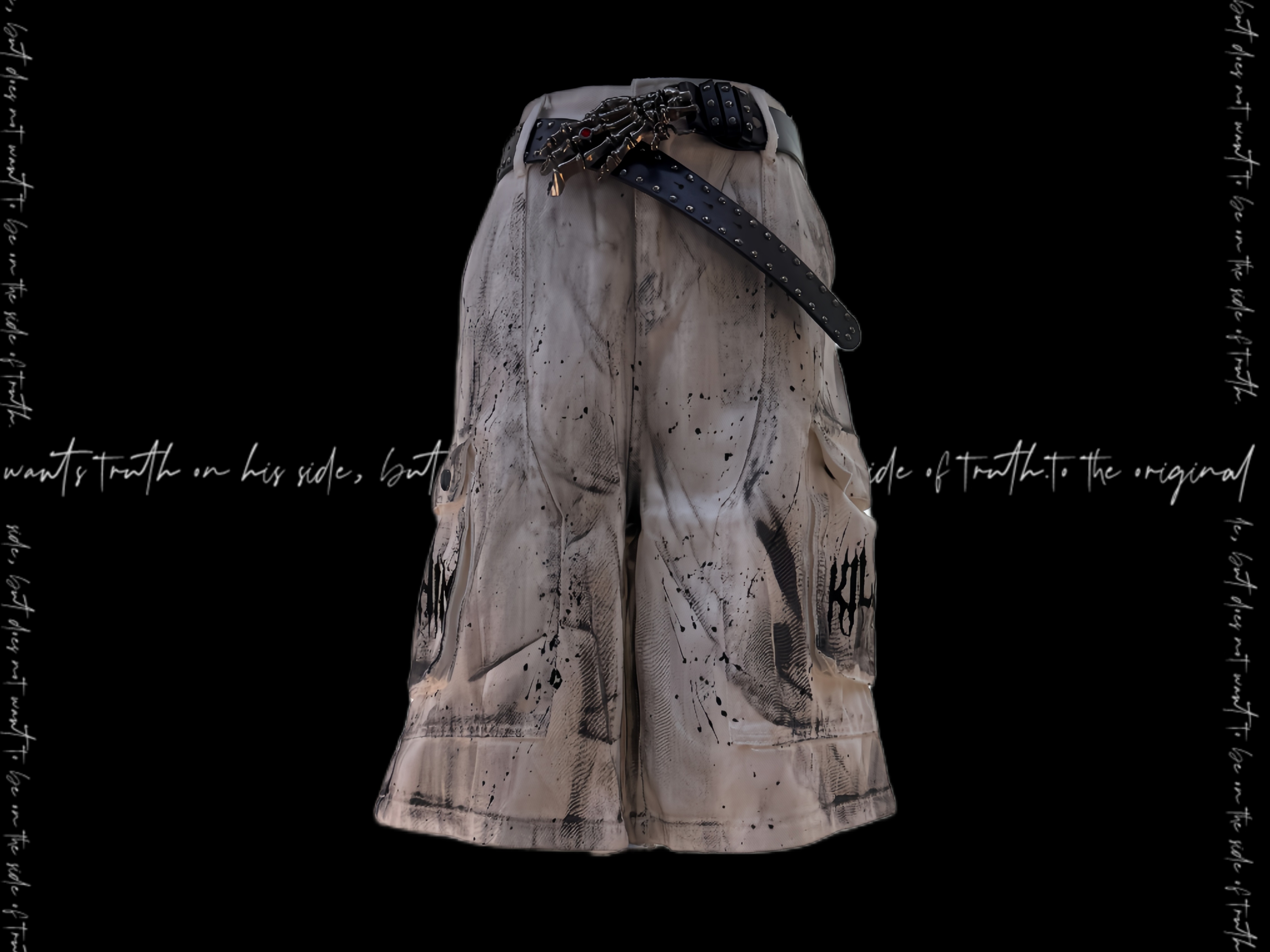 Paint Pocket Denim Cargo Denim Half Jeans & Skull Belt & Cross Belt & Belt Chain WN23797