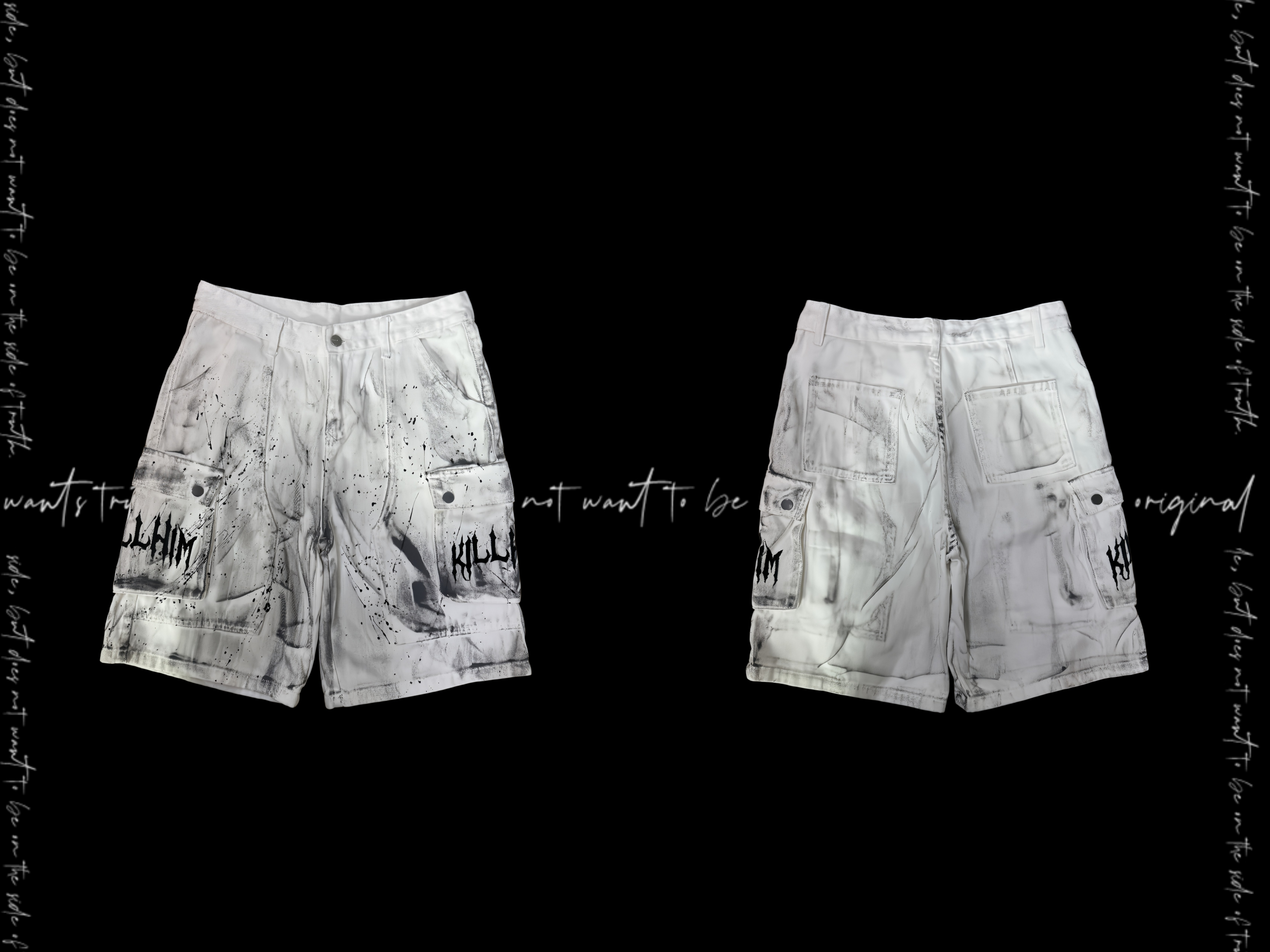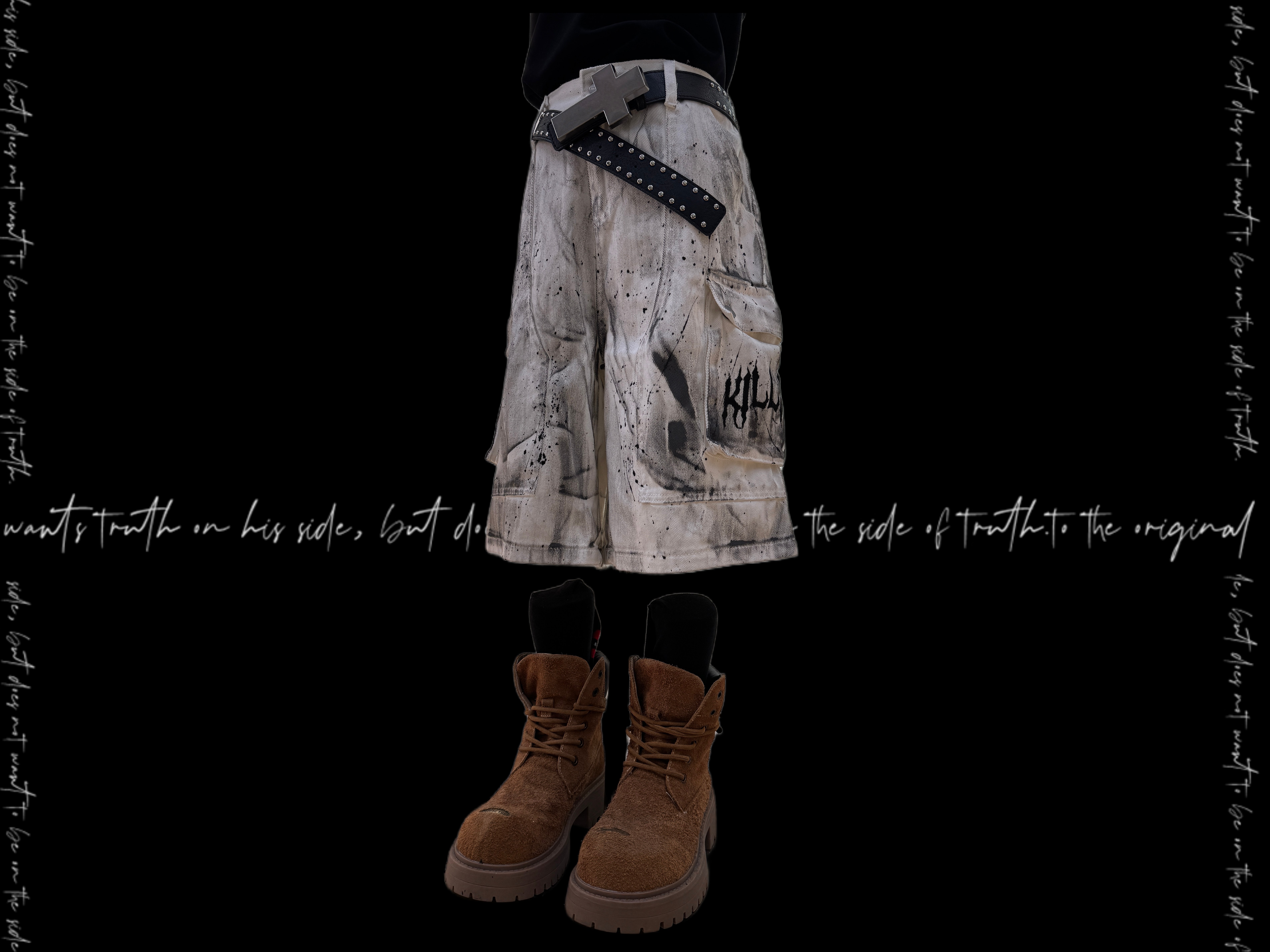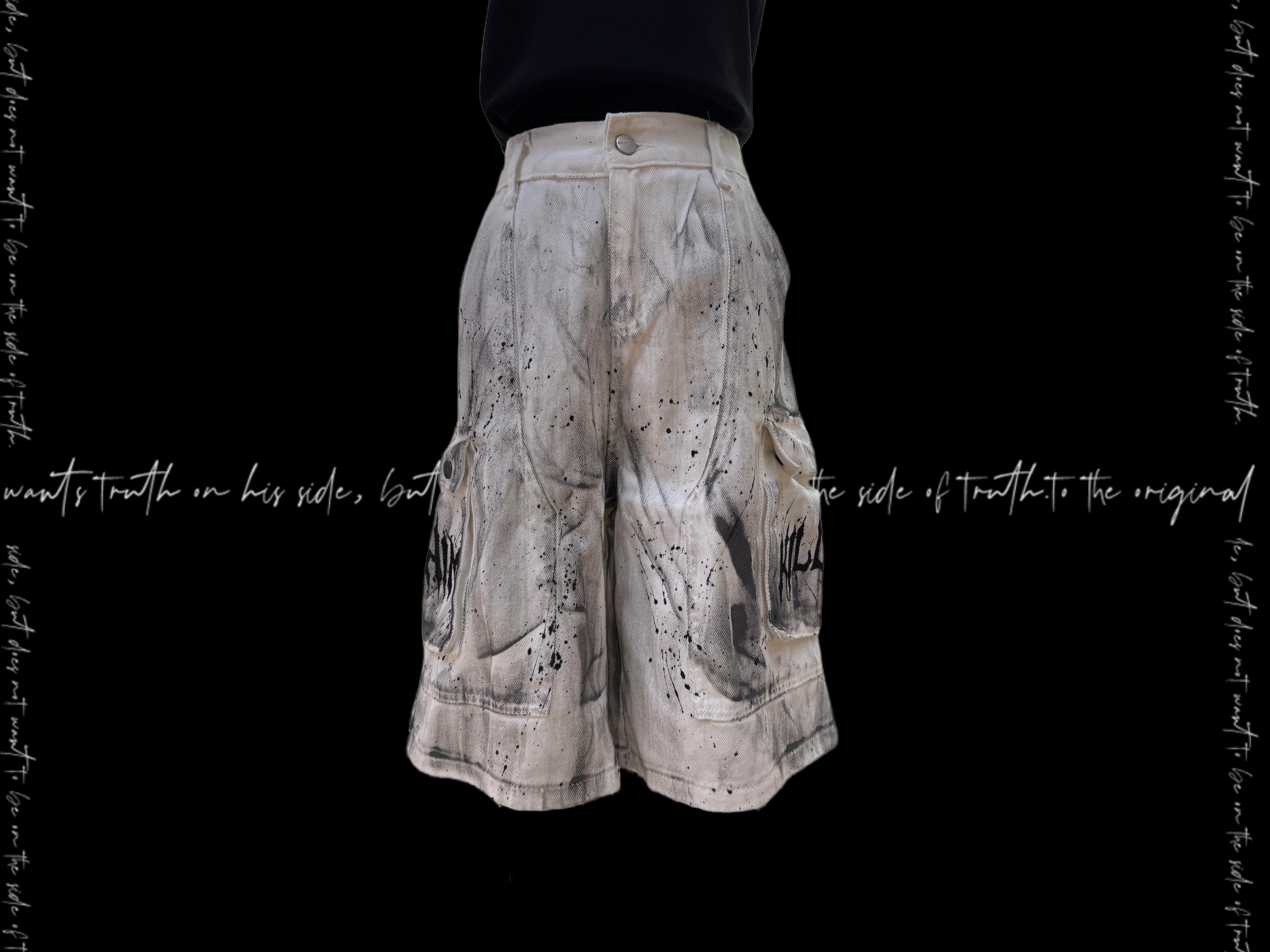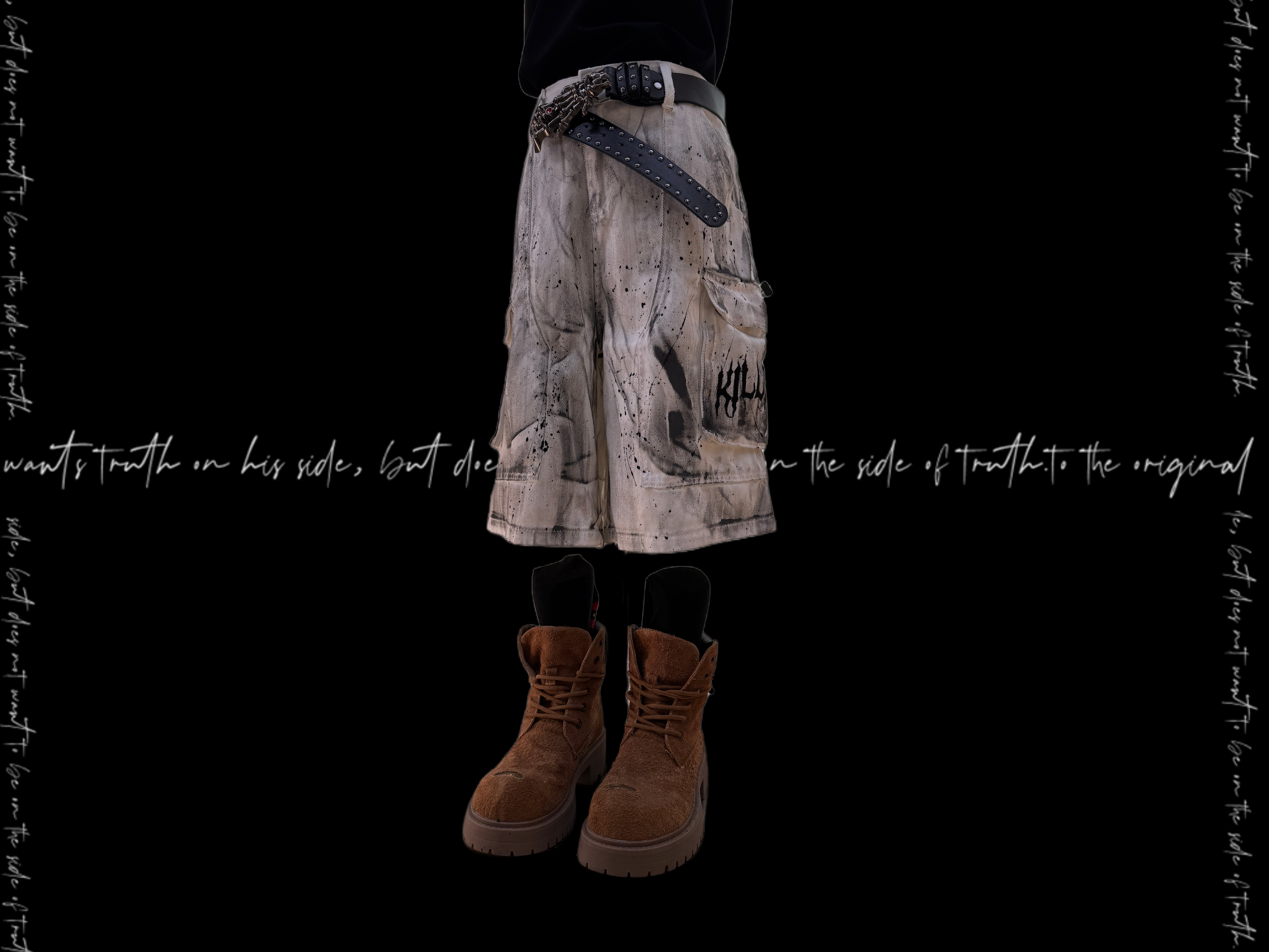 Paint Pocket Denim Cargo Denim Half Jeans & Skull Belt & Cross Belt & Belt Chain WN23797