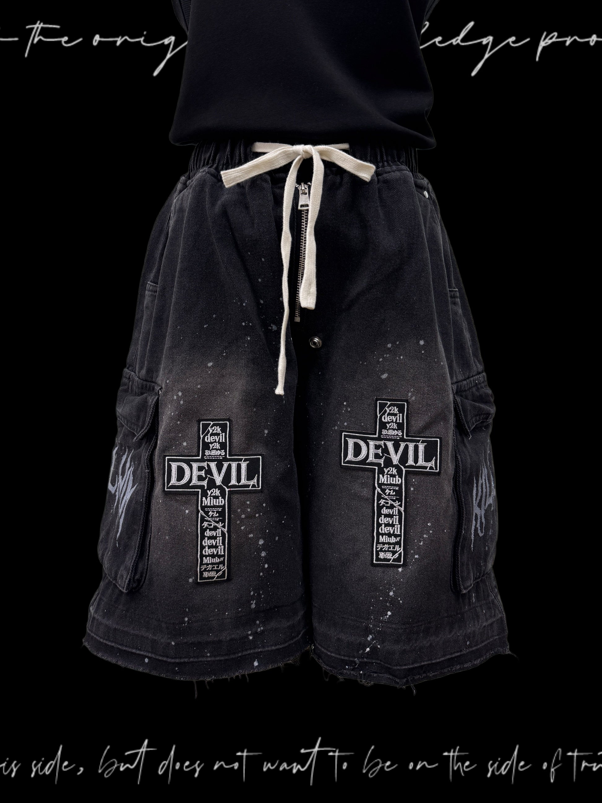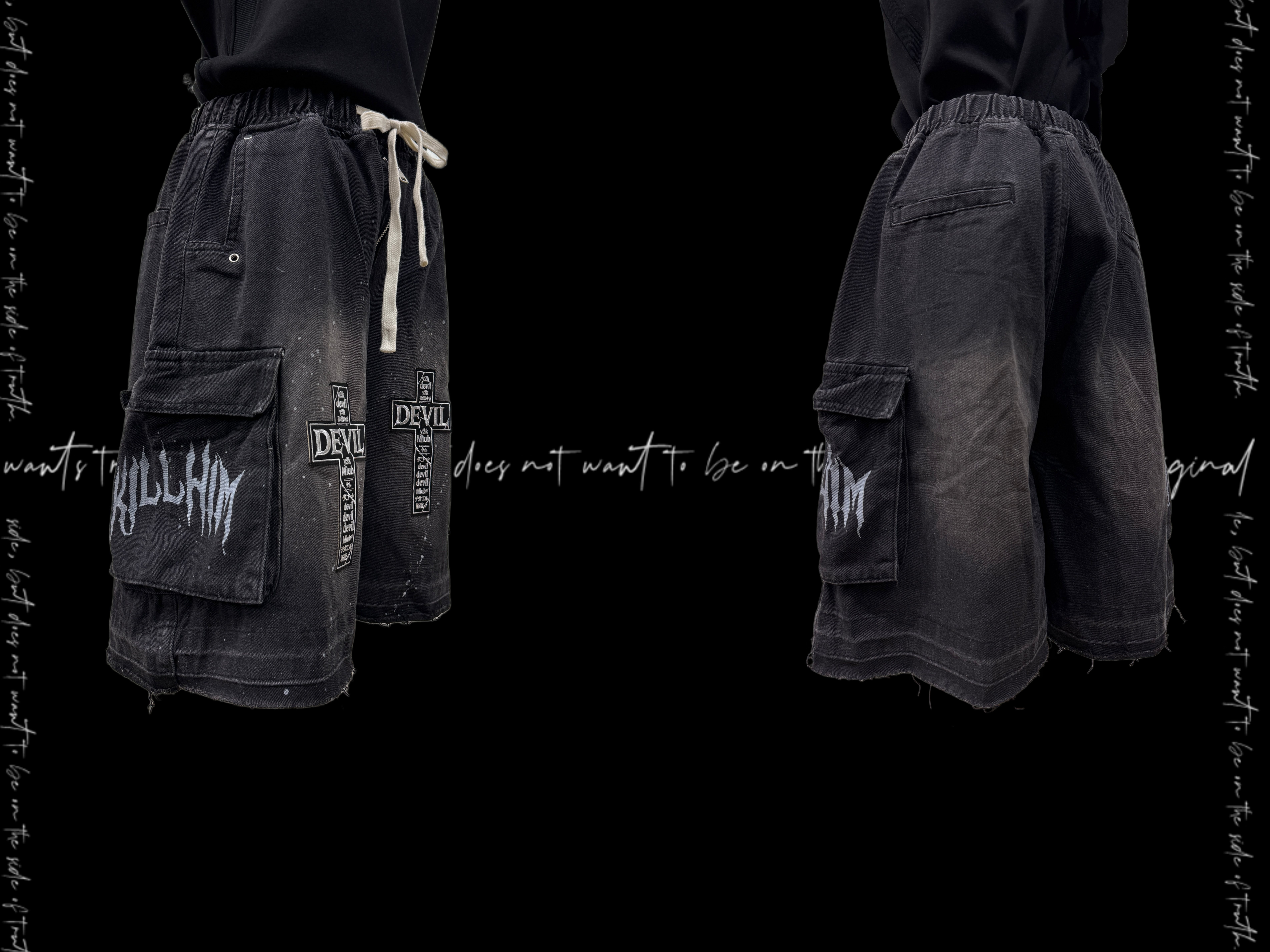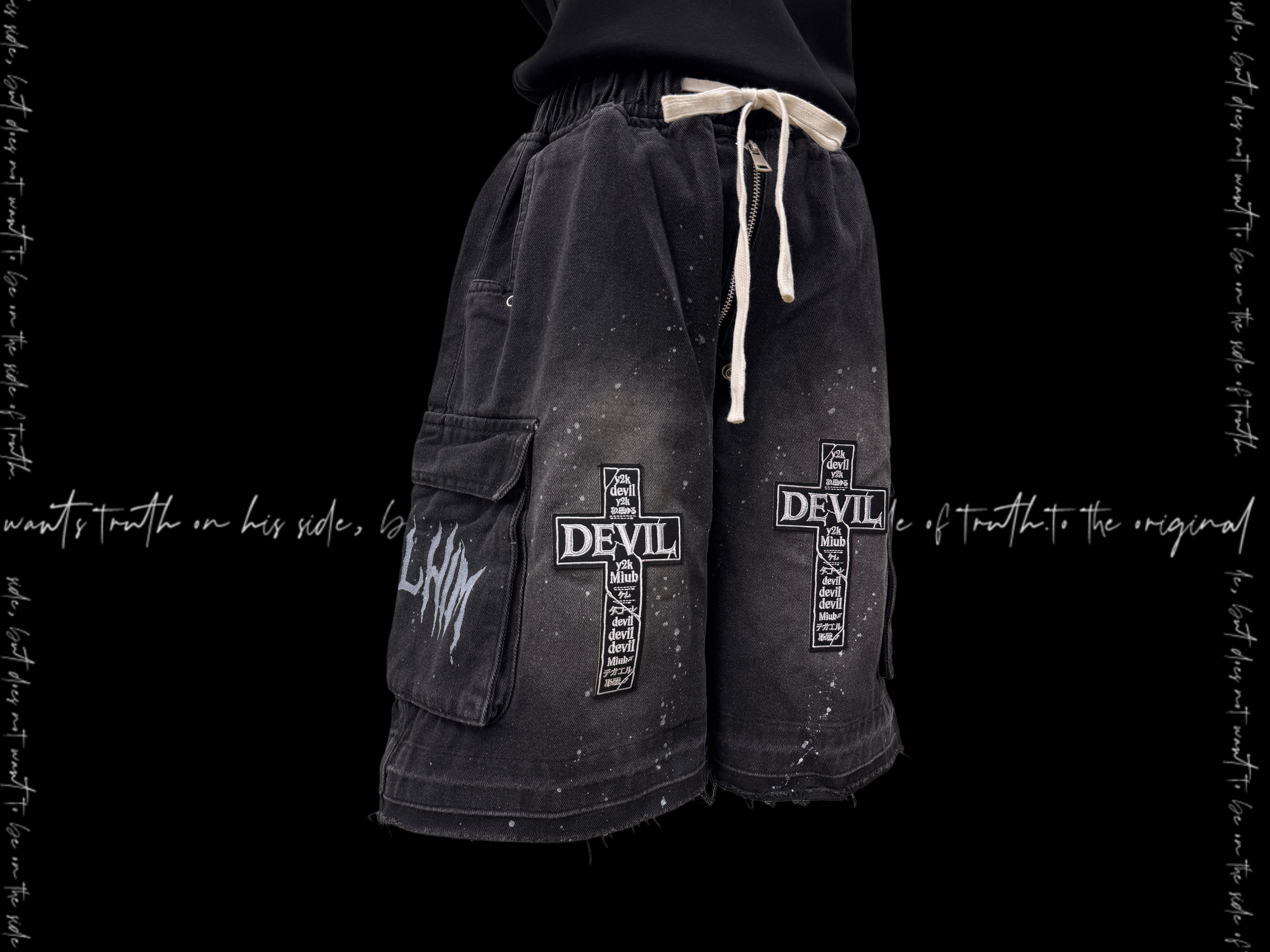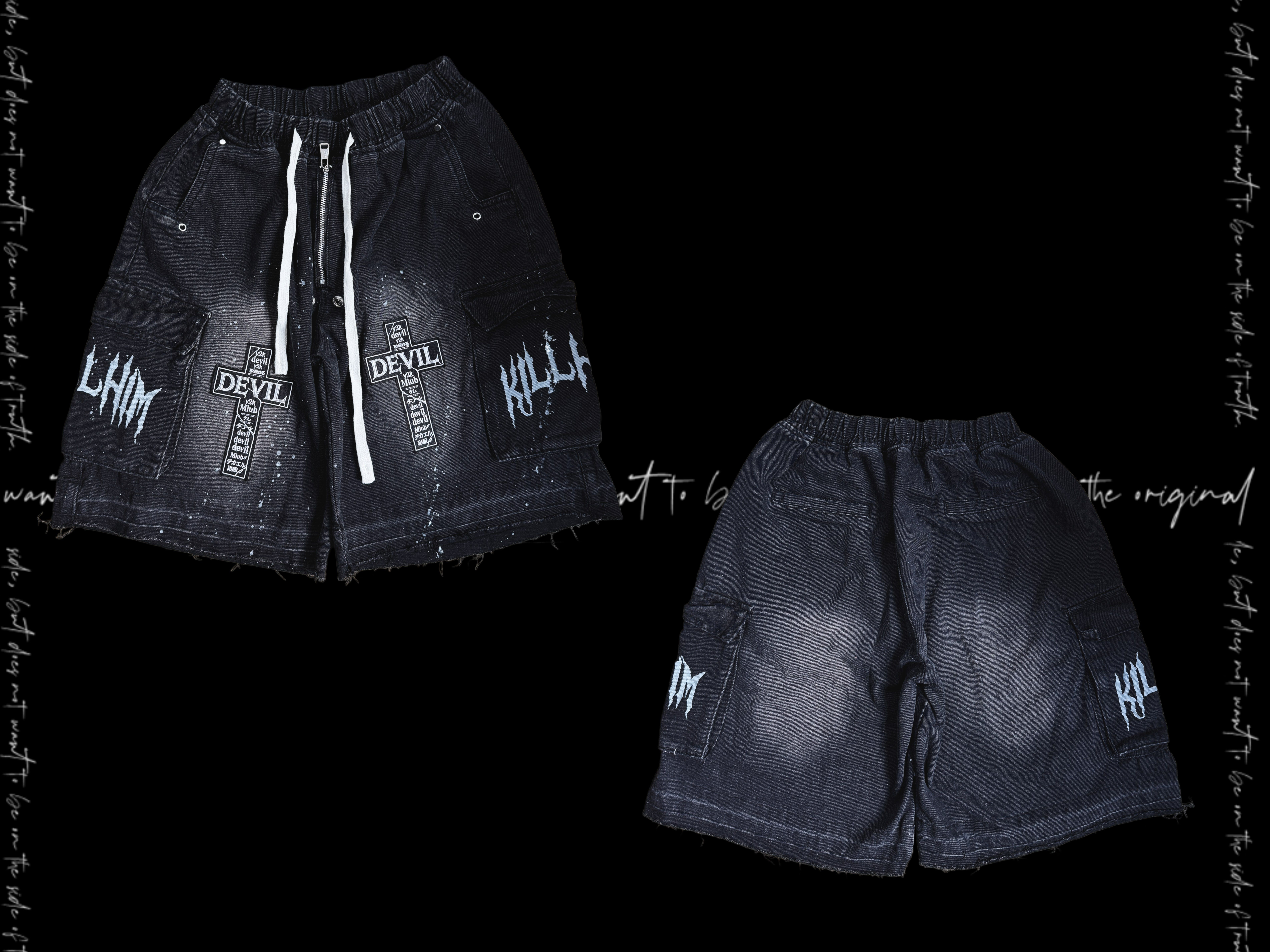 Raw Hem Paint Splash Cargo Half Pants WN23812
