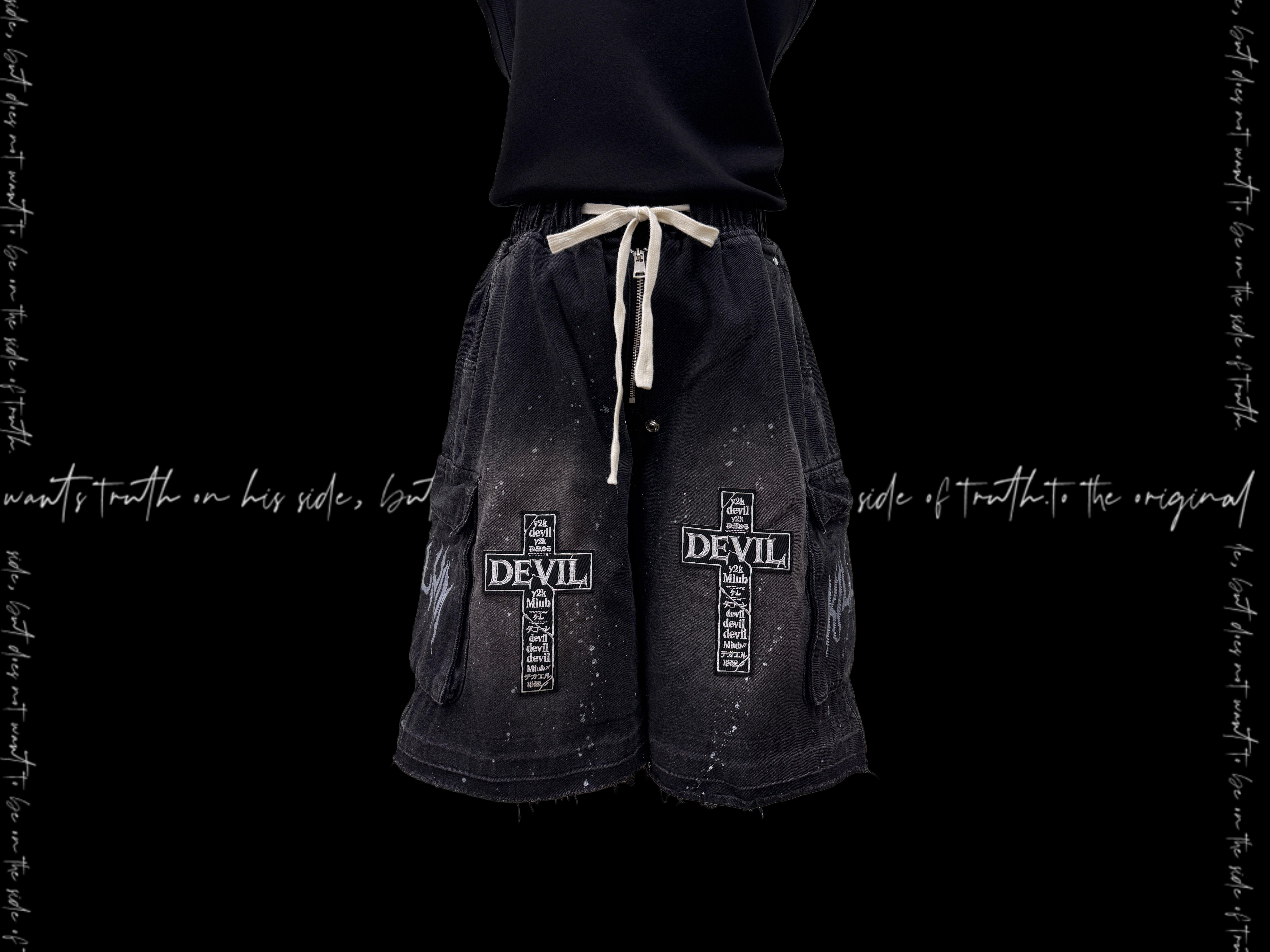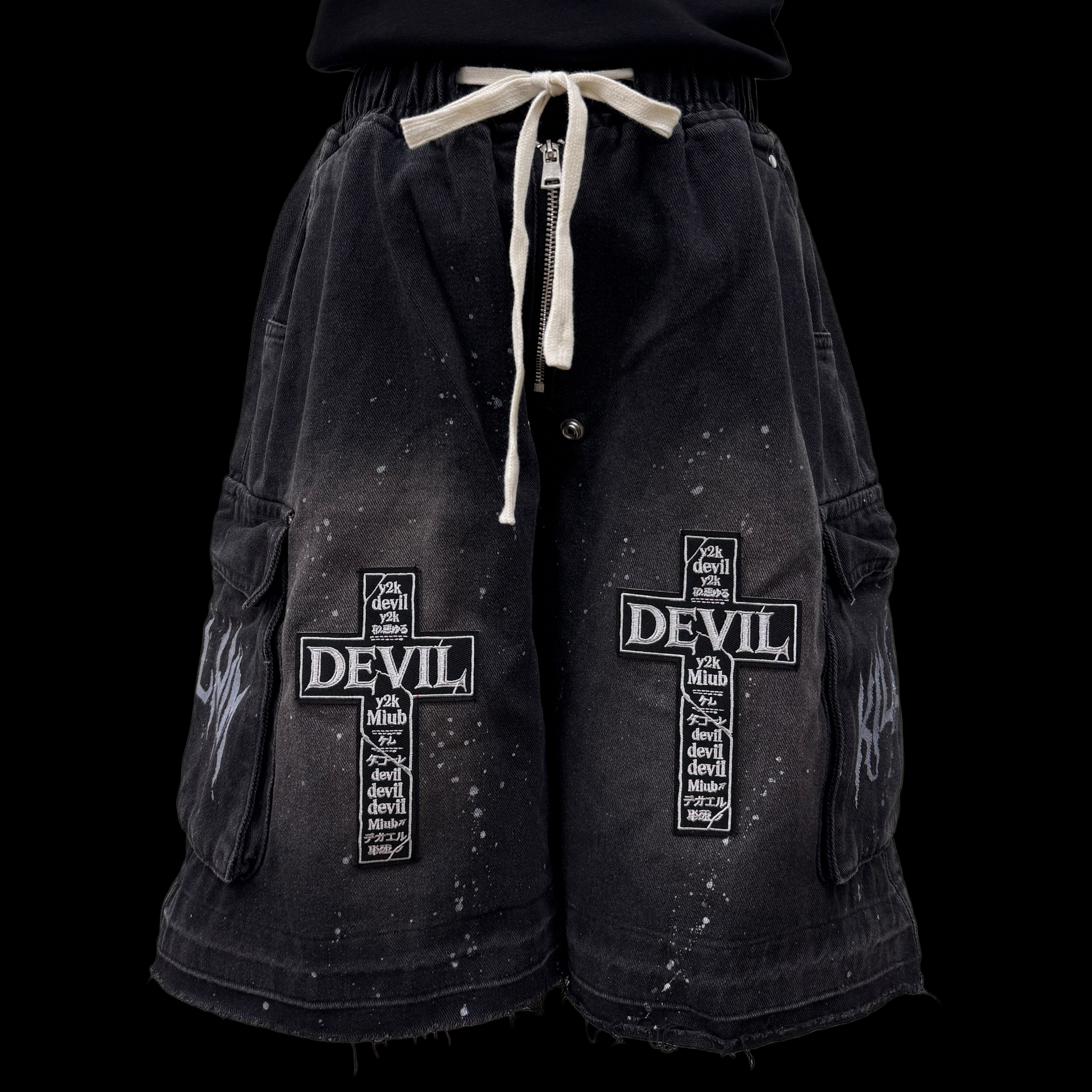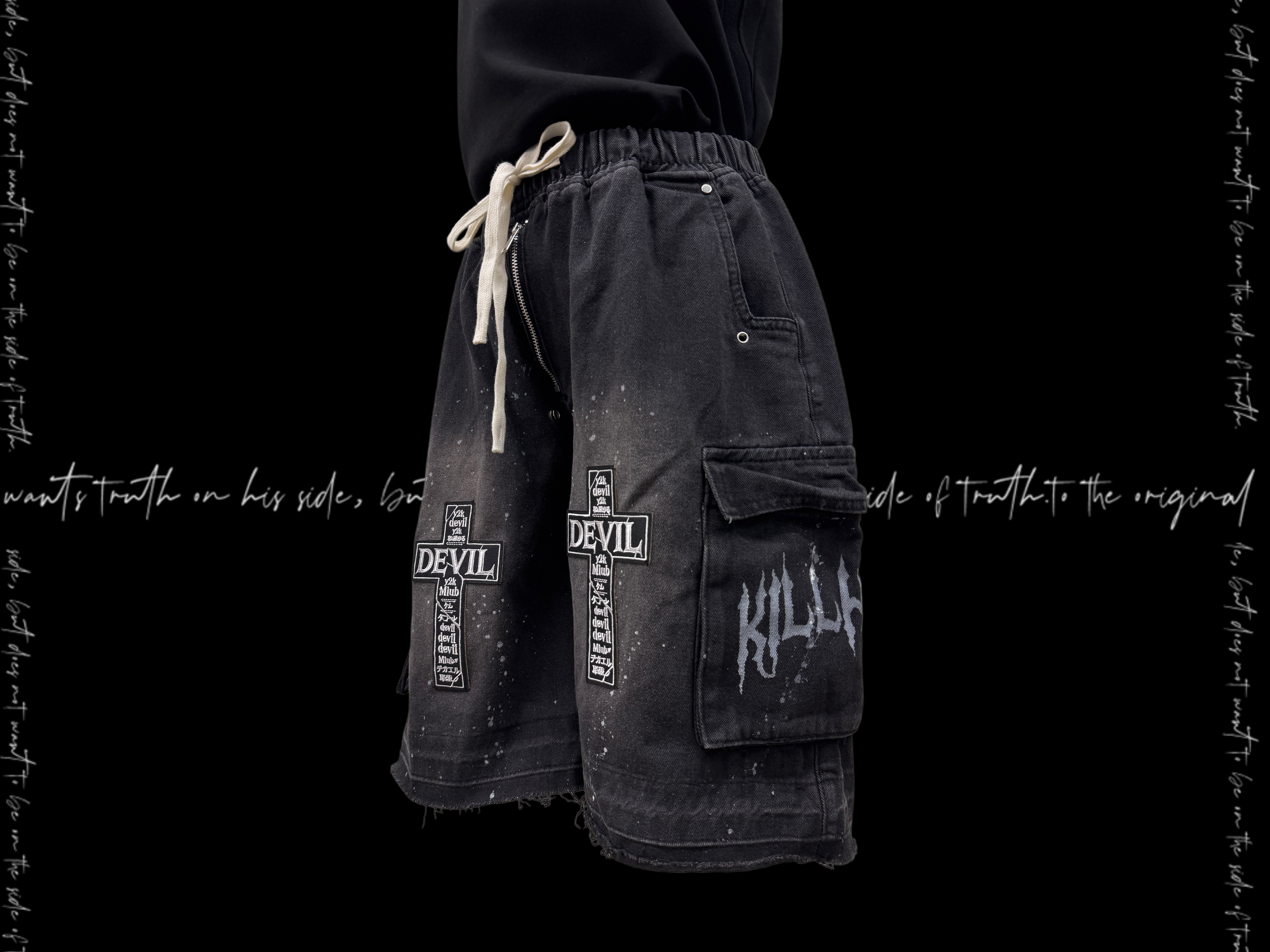 Raw Hem Paint Splash Cargo Half Pants WN23812