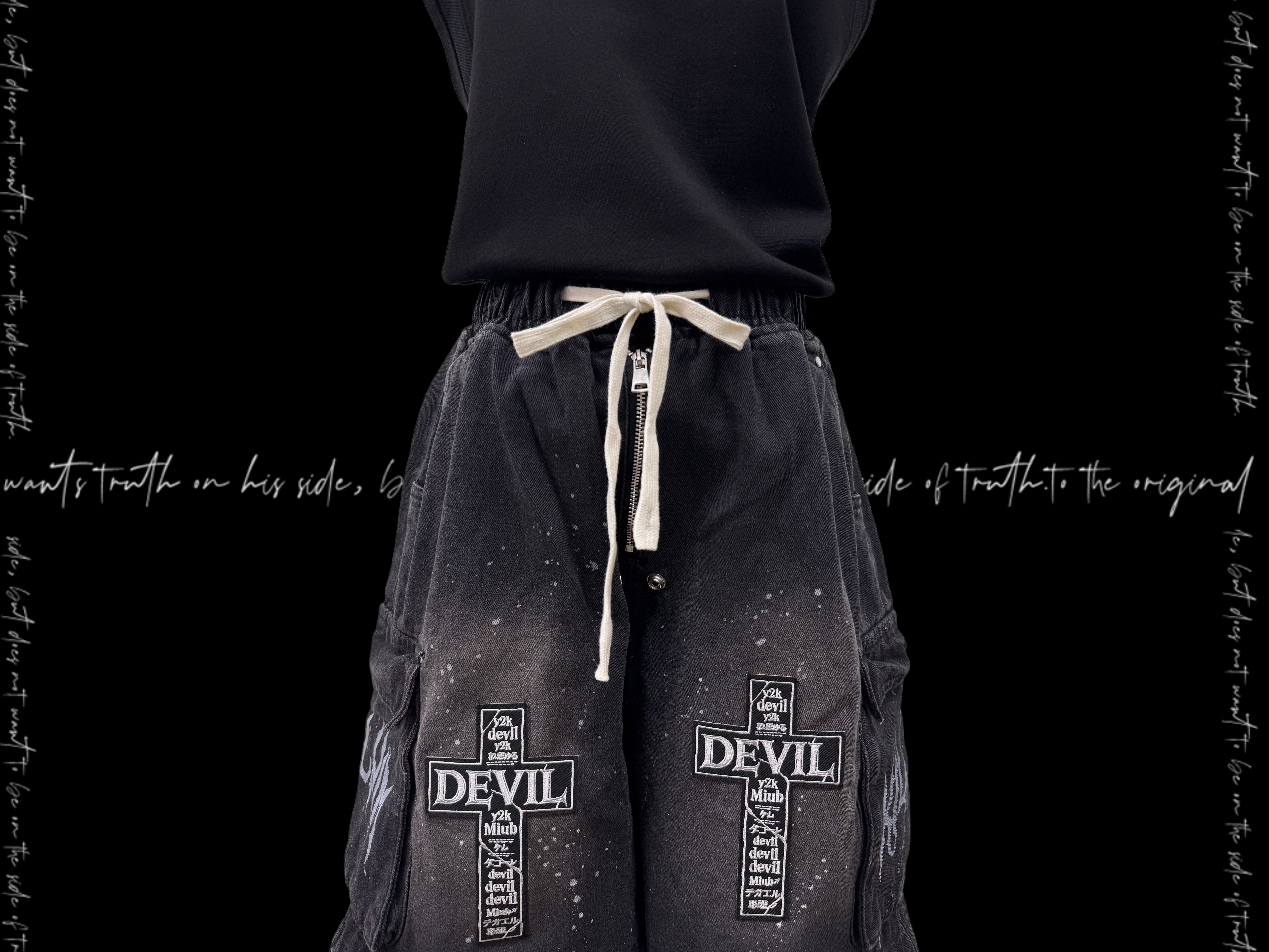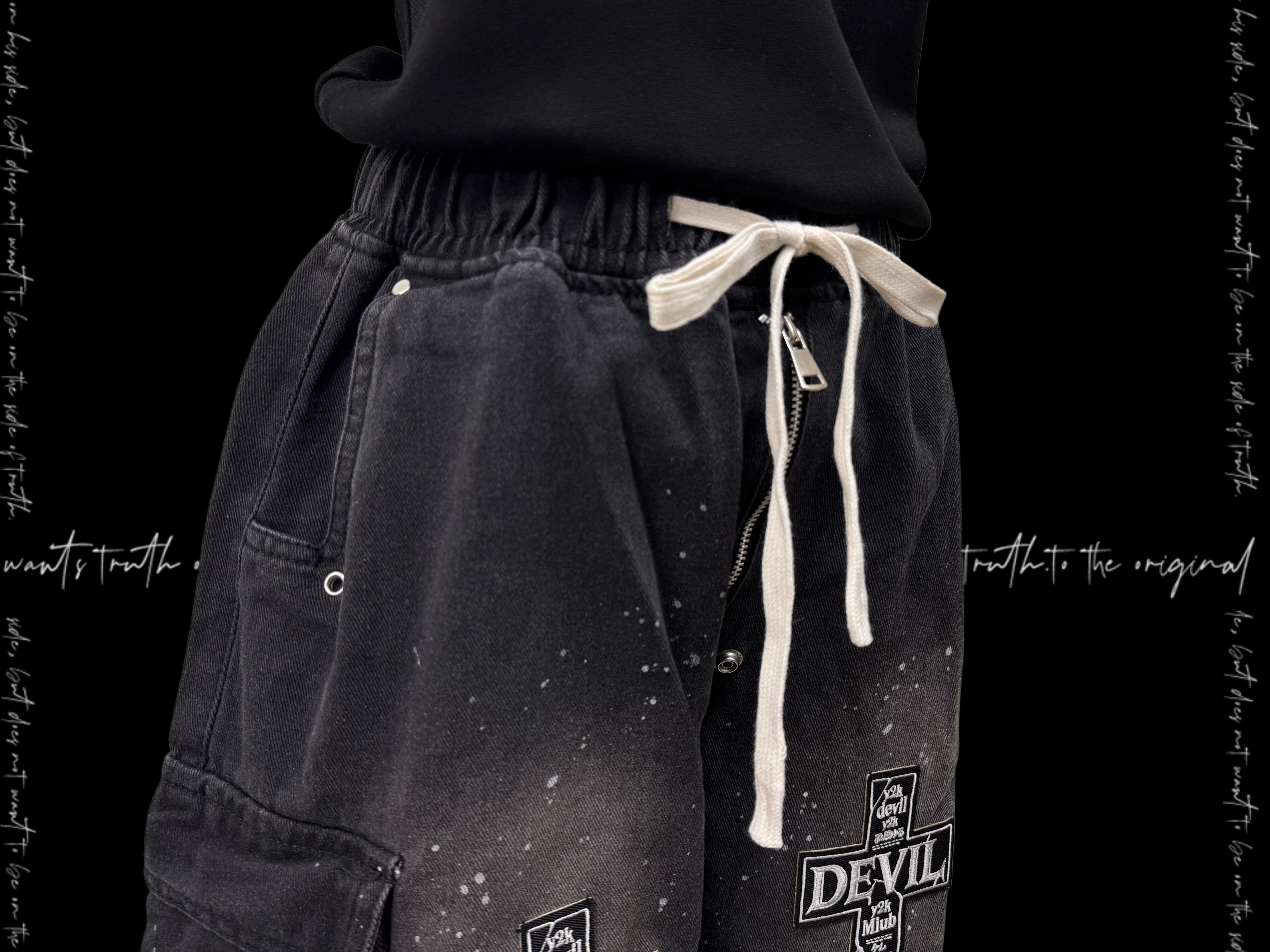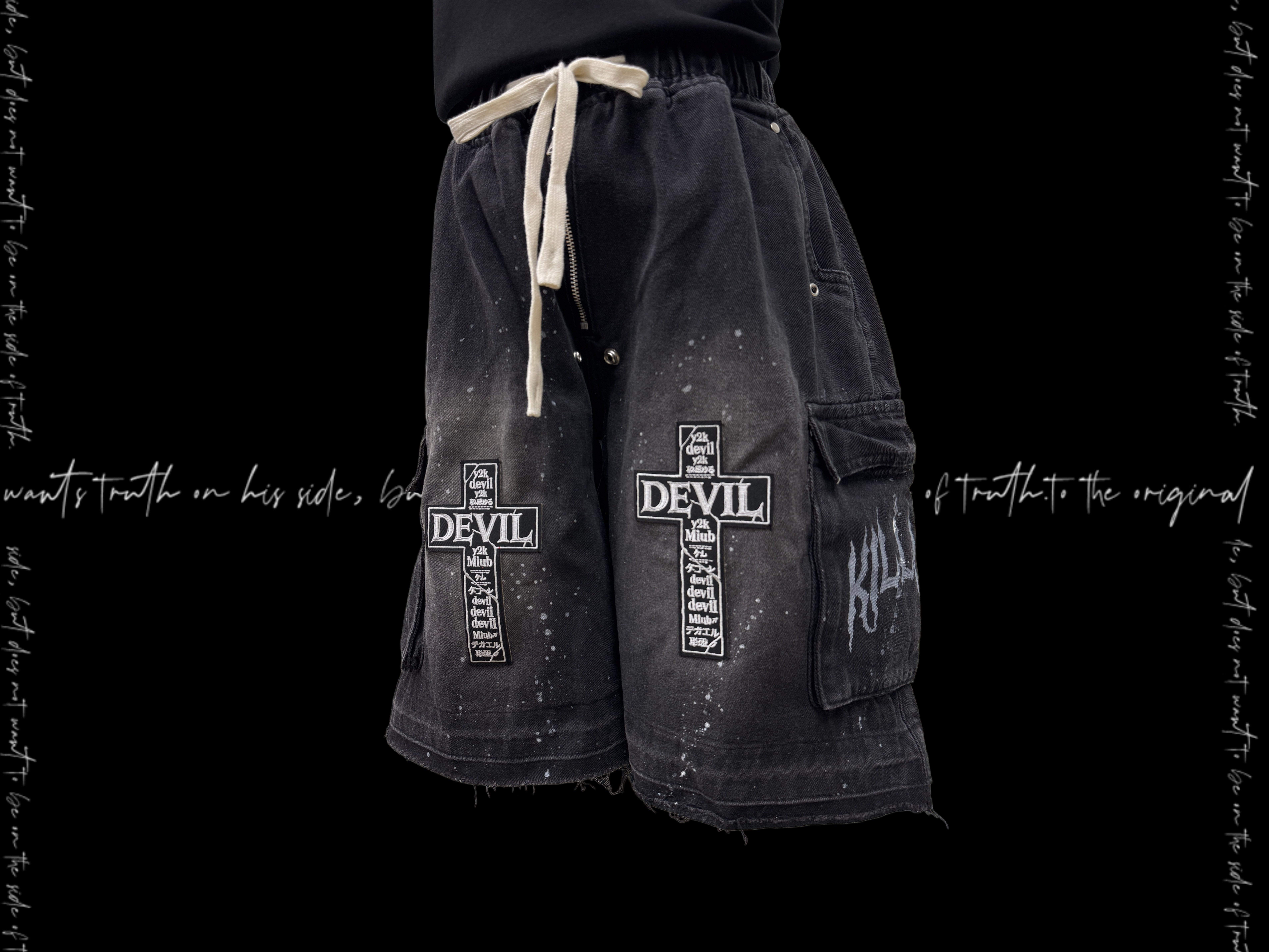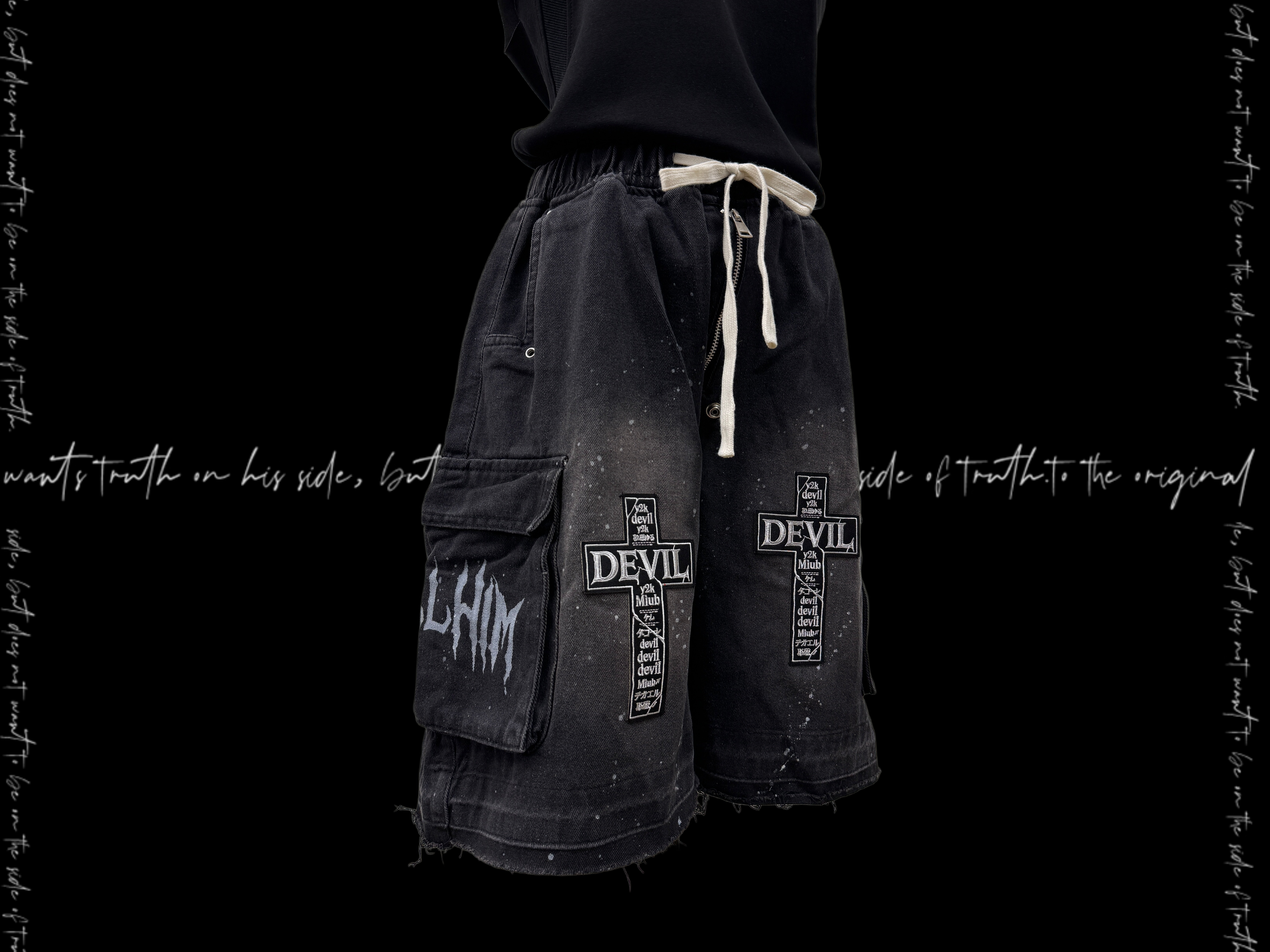 Raw Hem Paint Splash Cargo Half Pants WN23812
