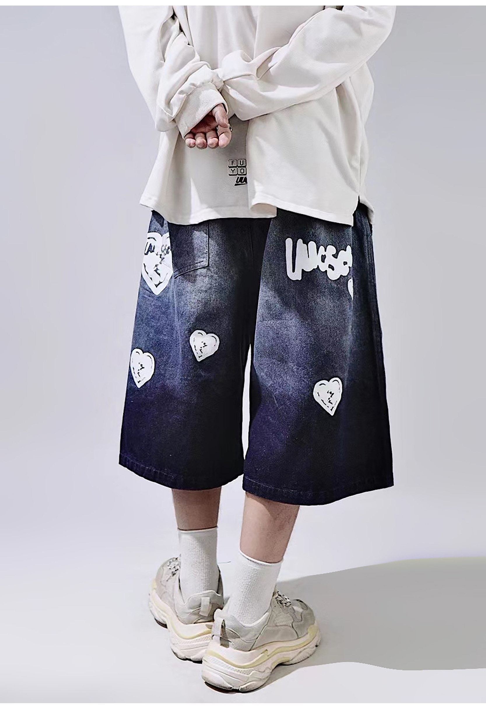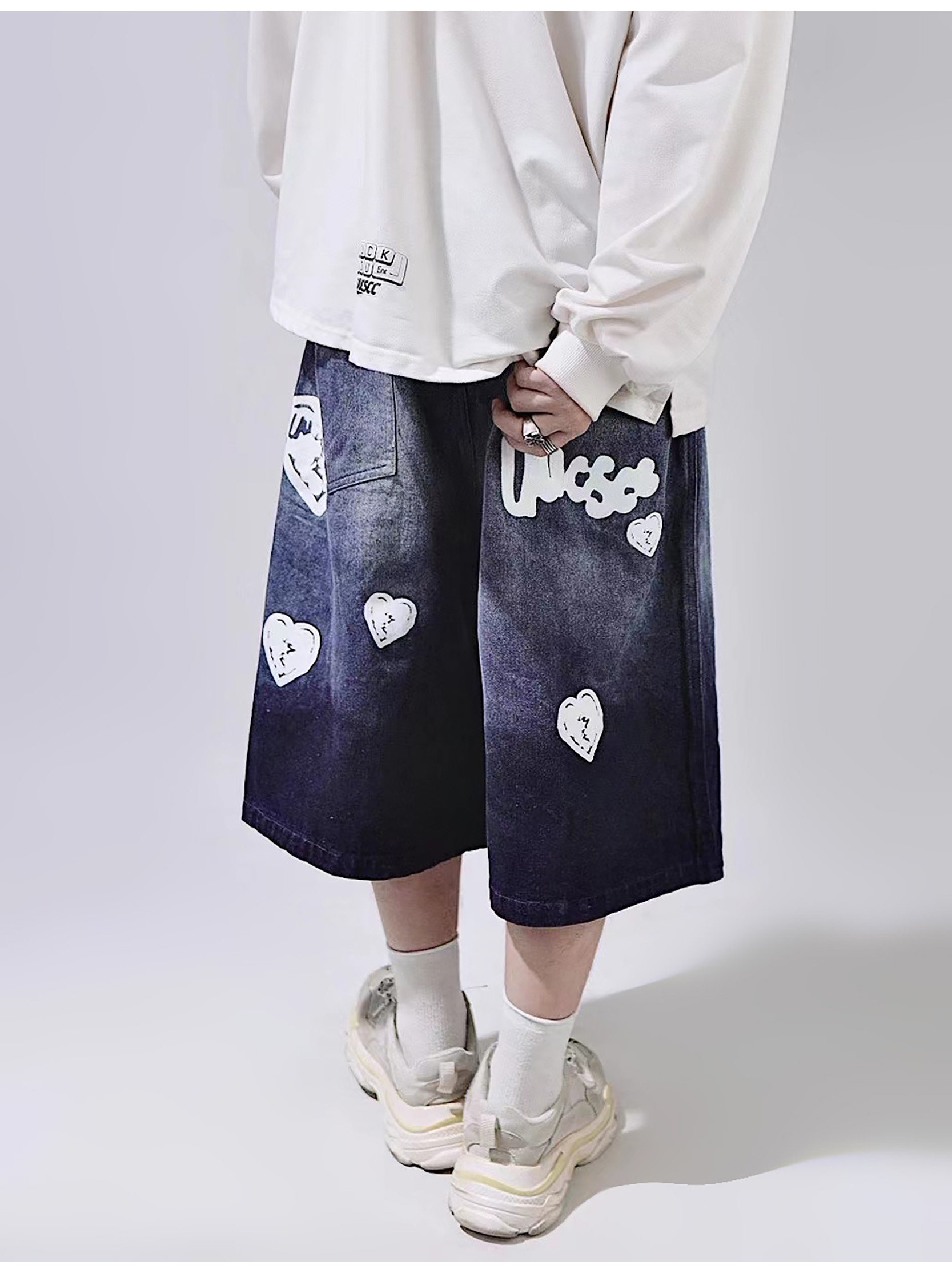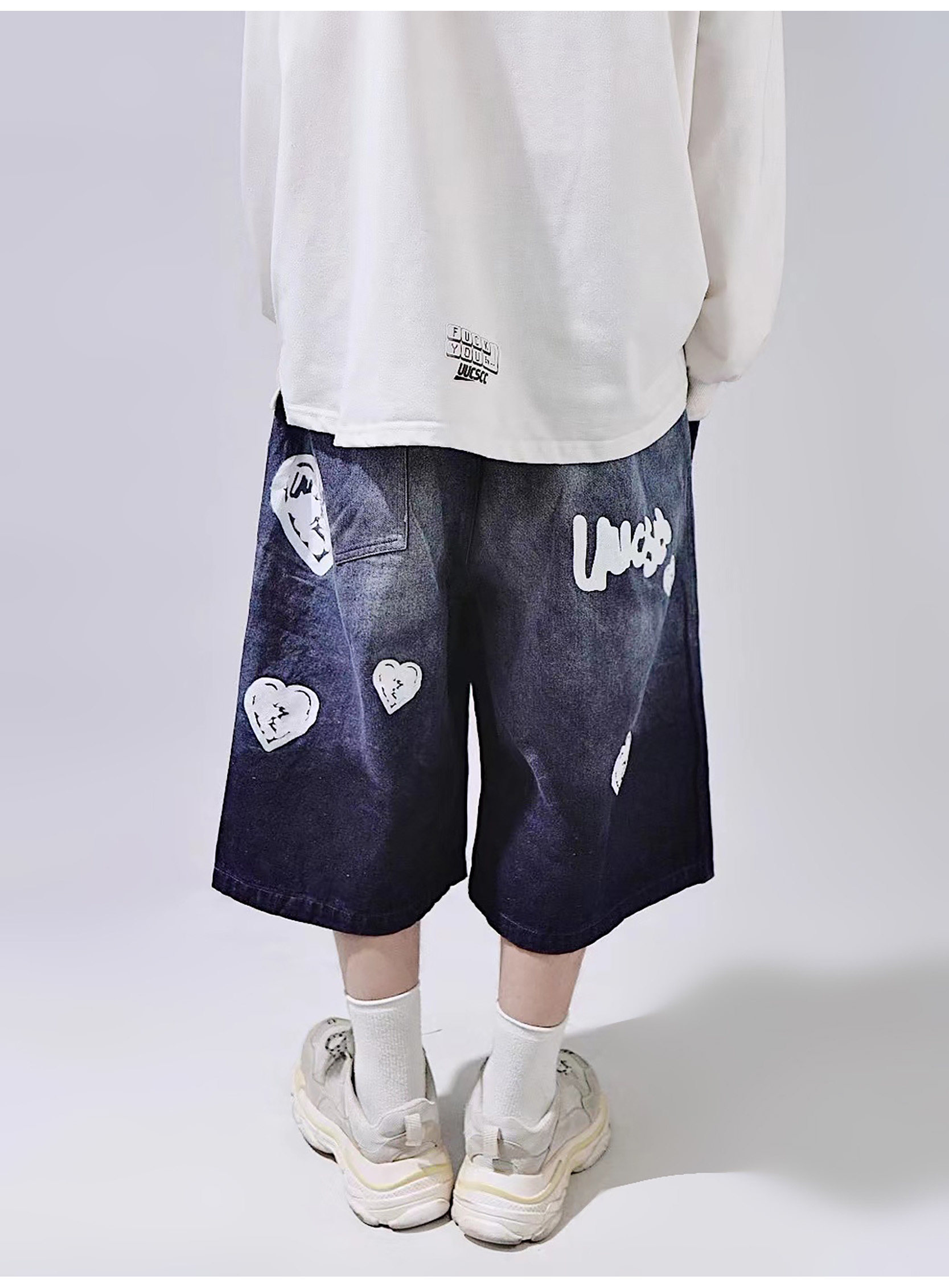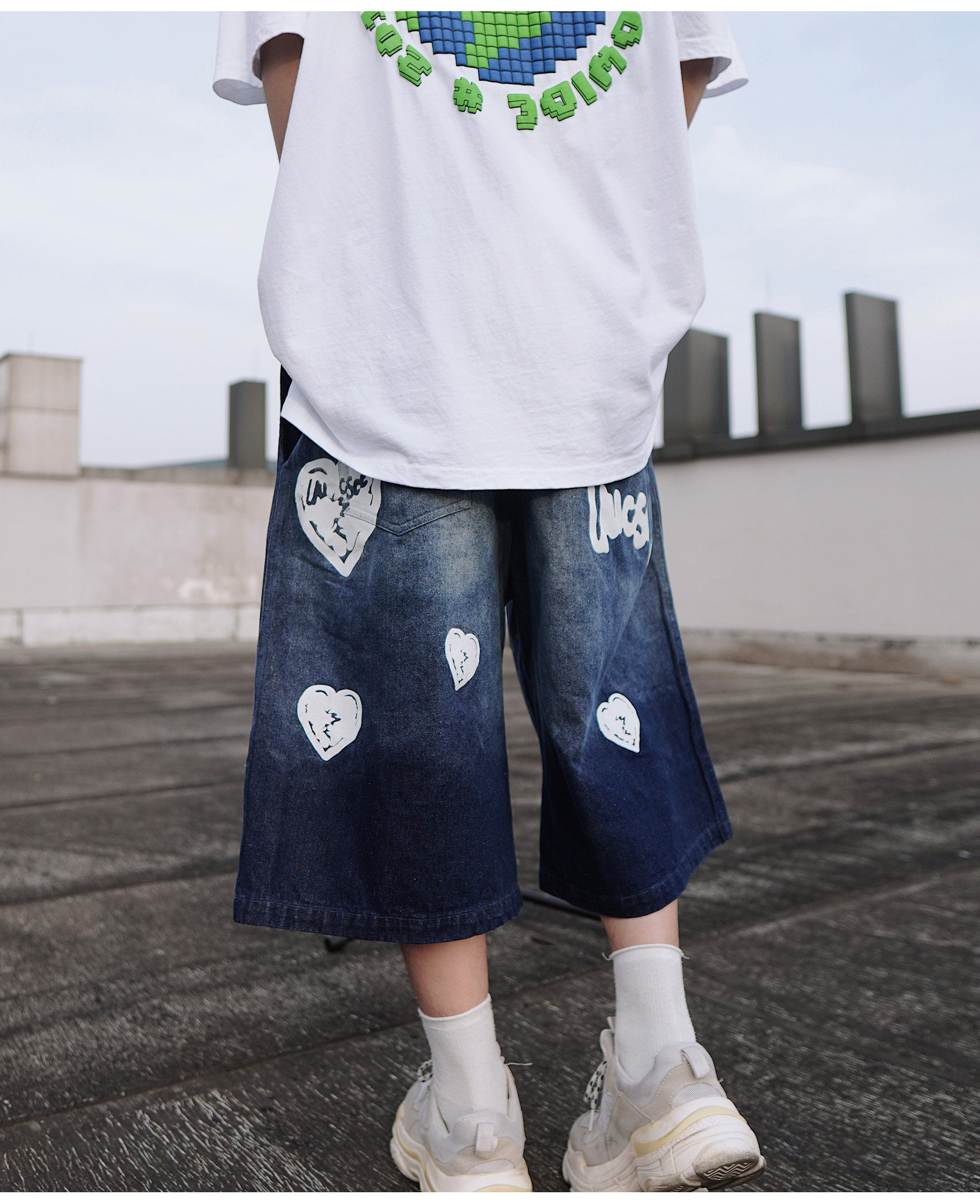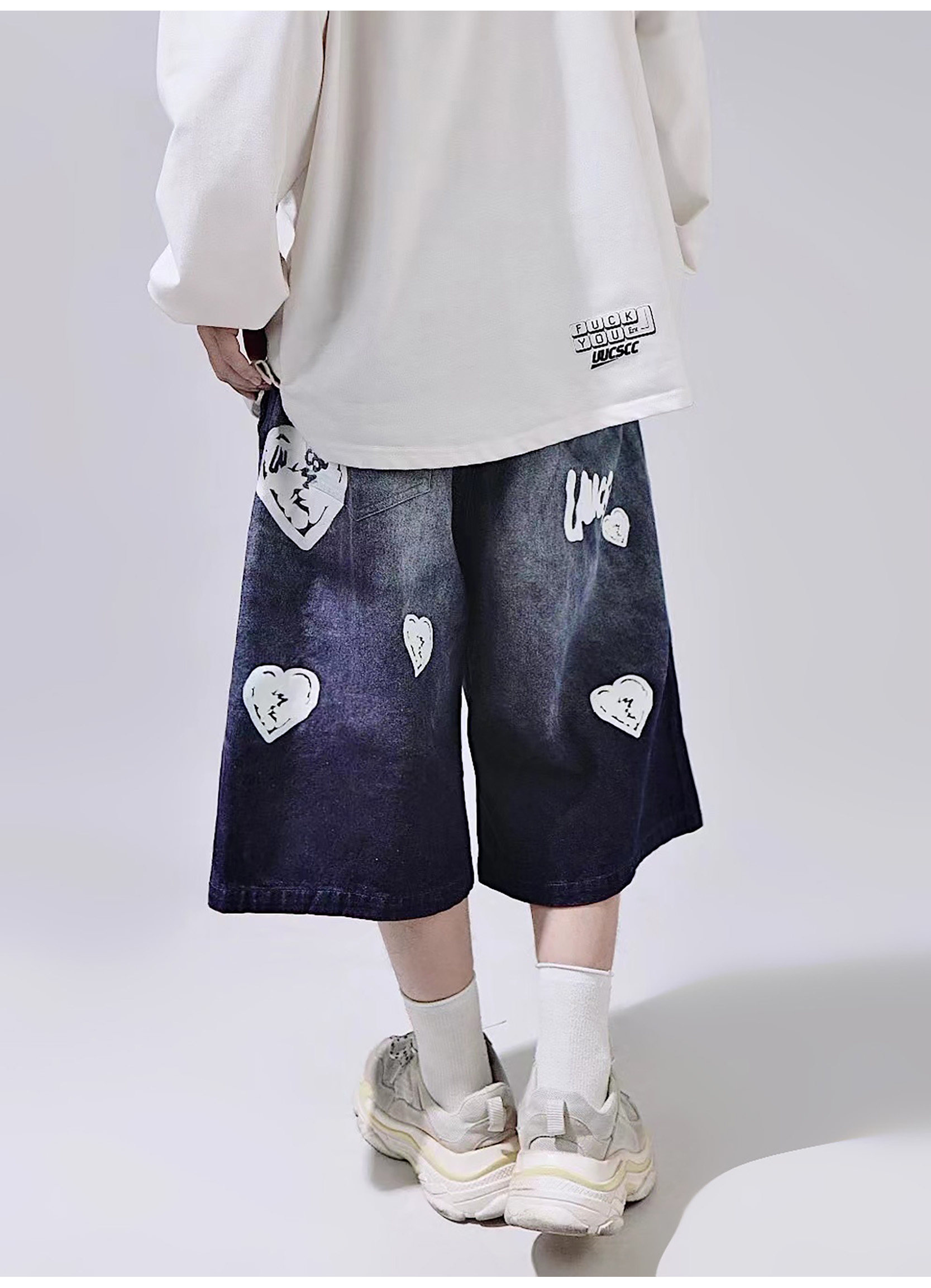 Heart Design Wide Leg Half Denim Jeans WN23997