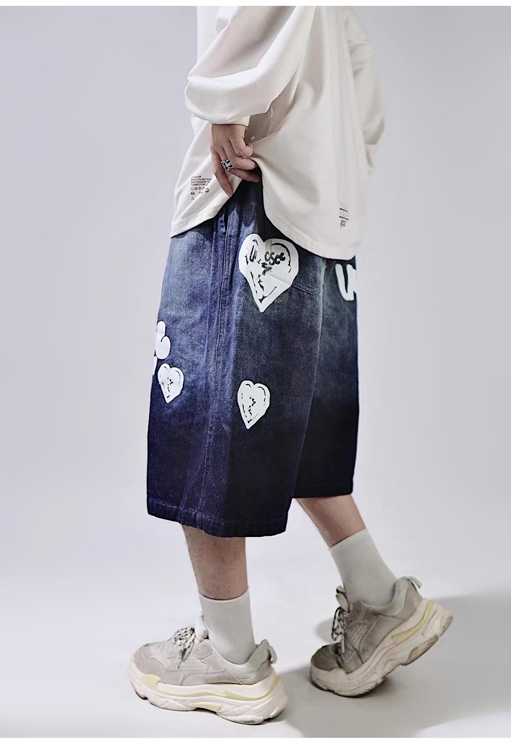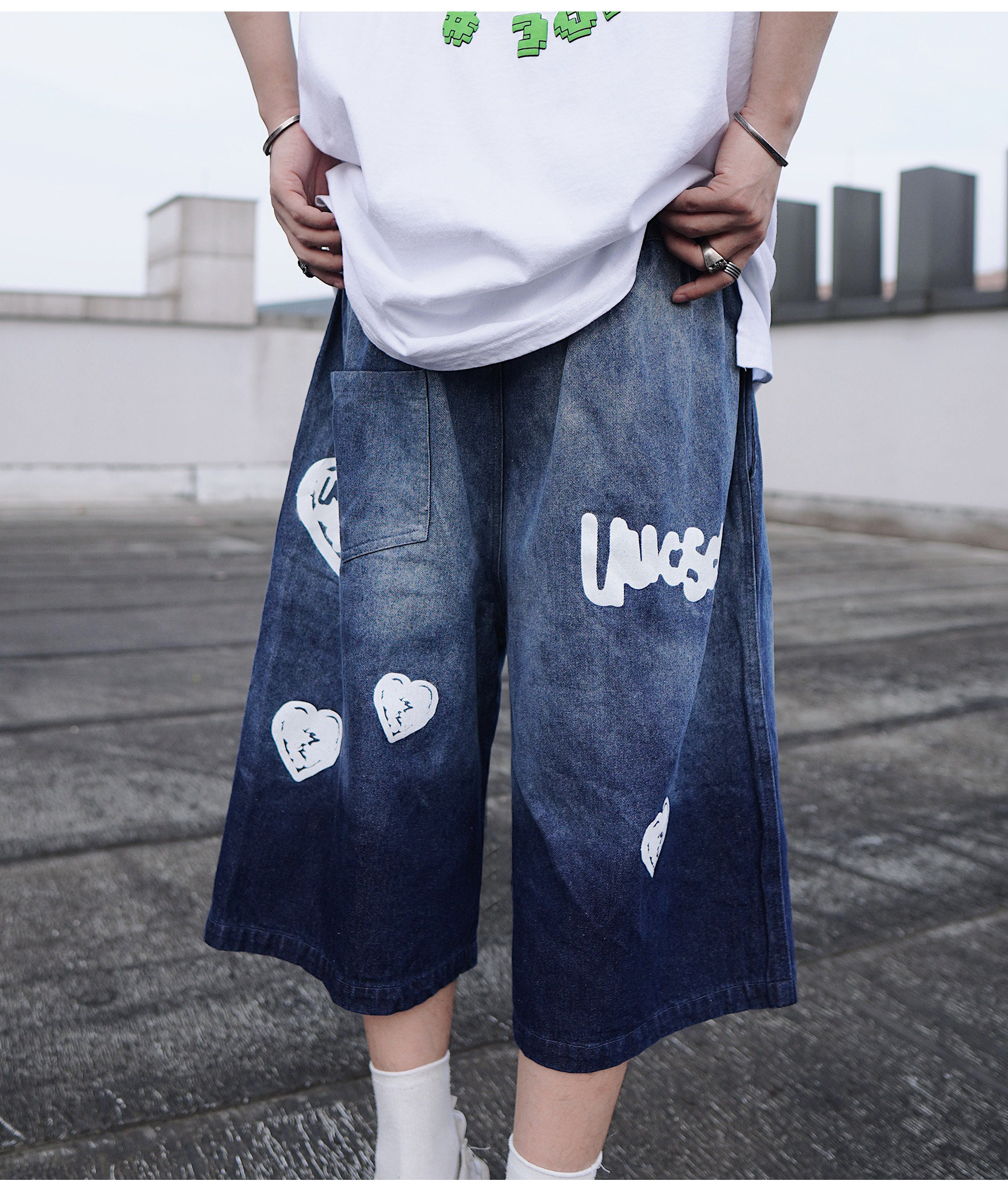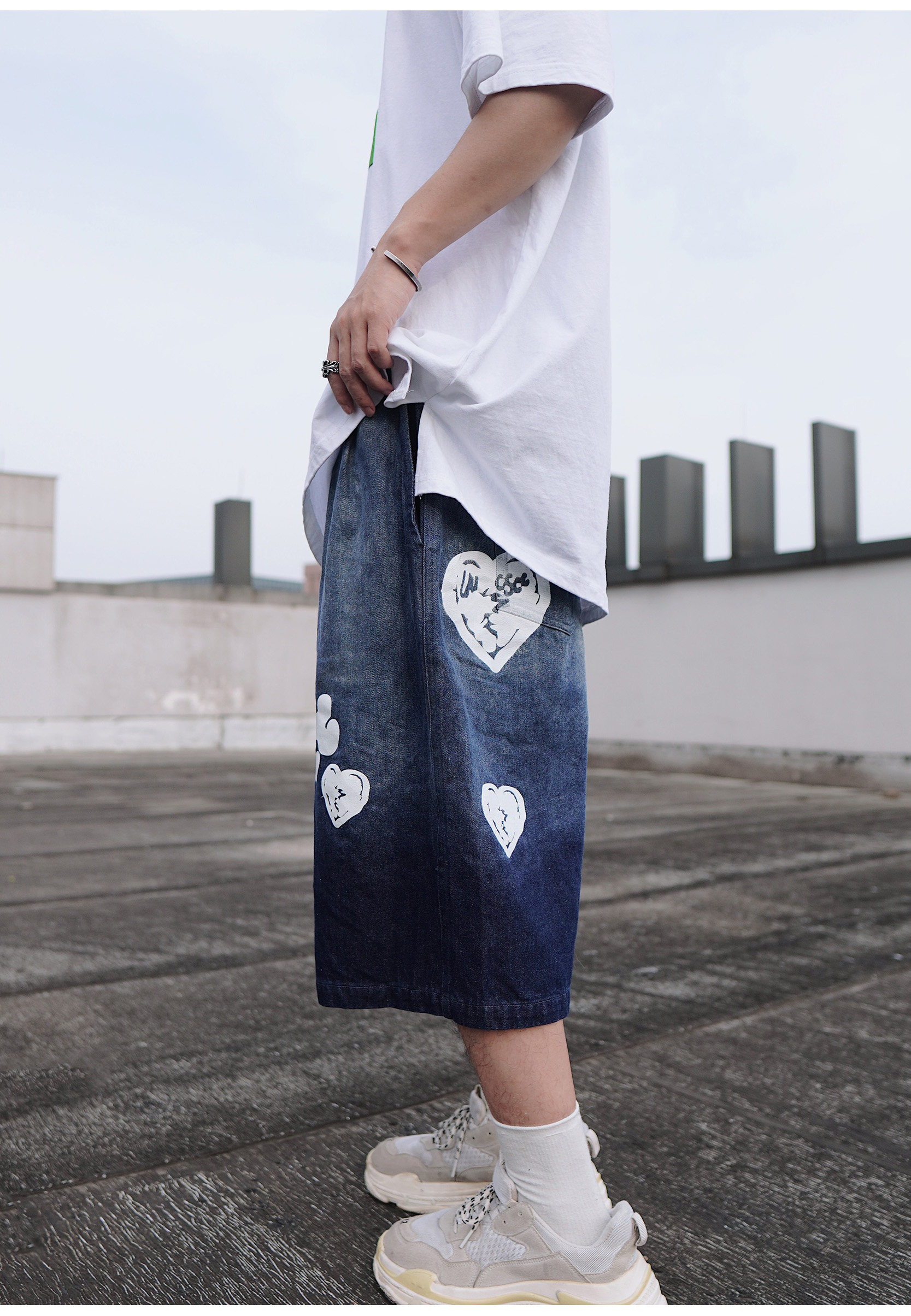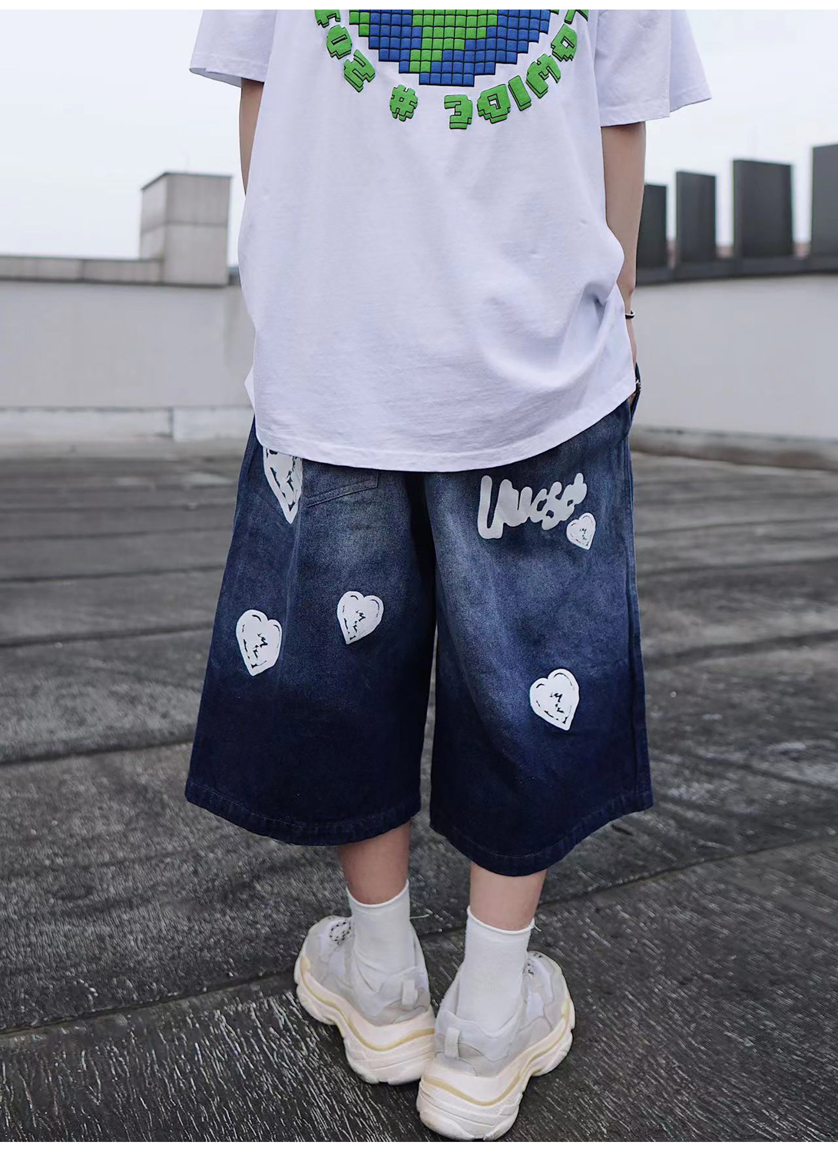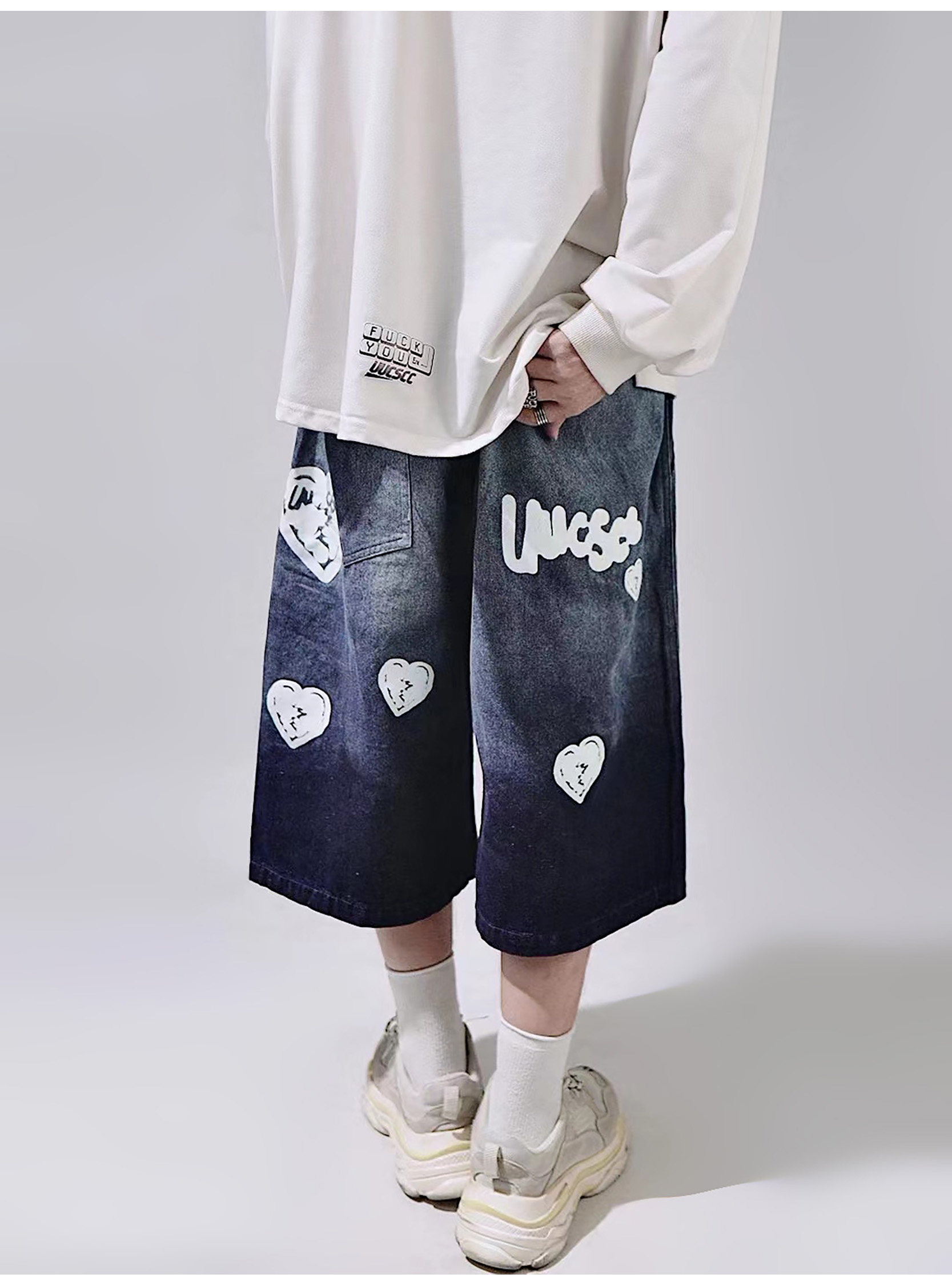 Heart Design Wide Leg Half Denim Jeans WN23997
