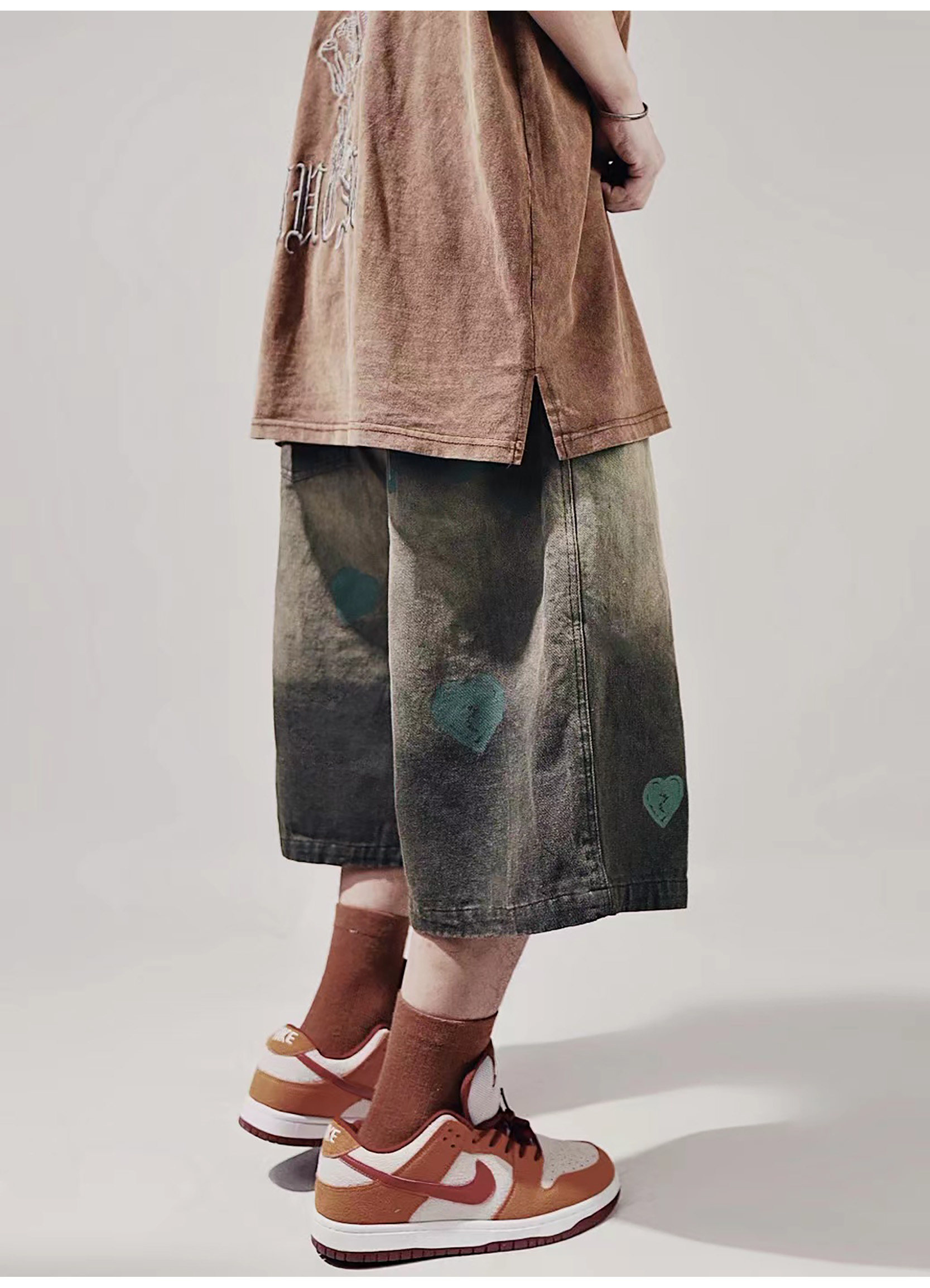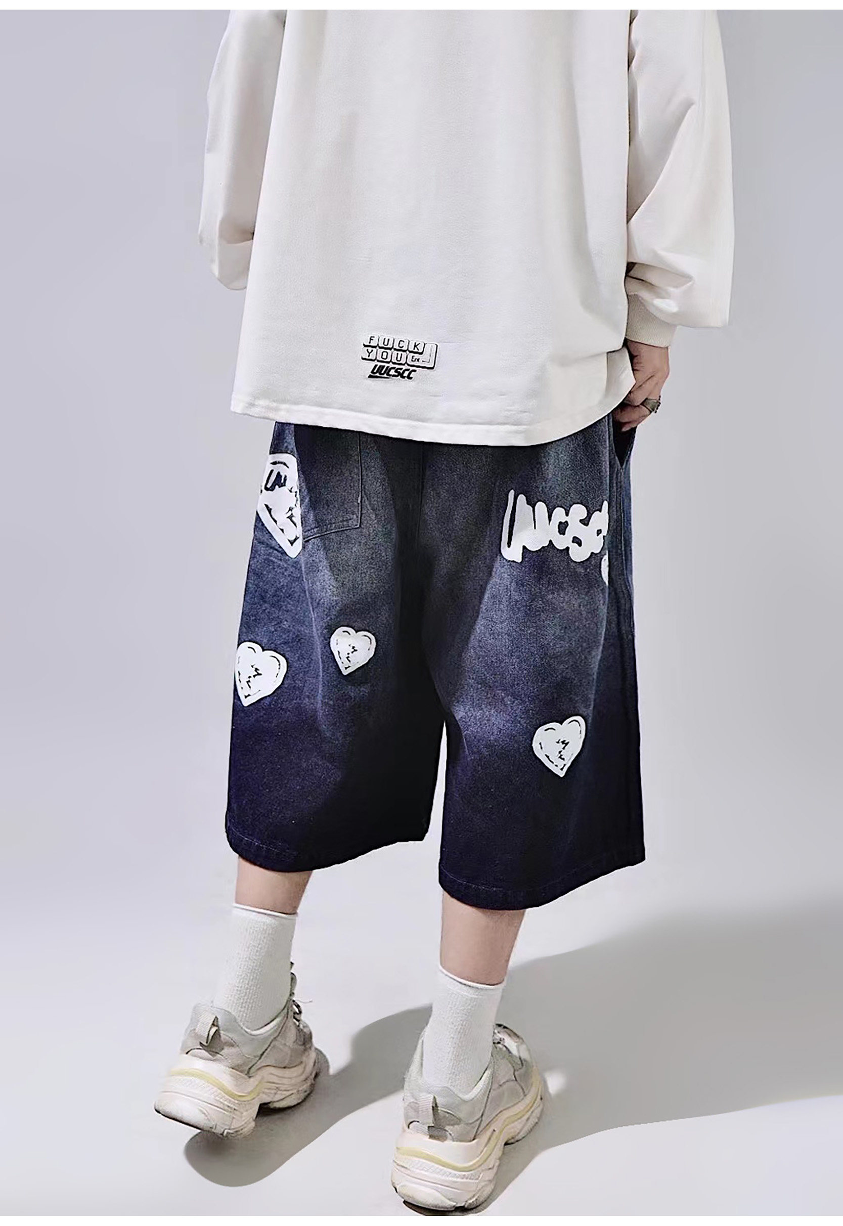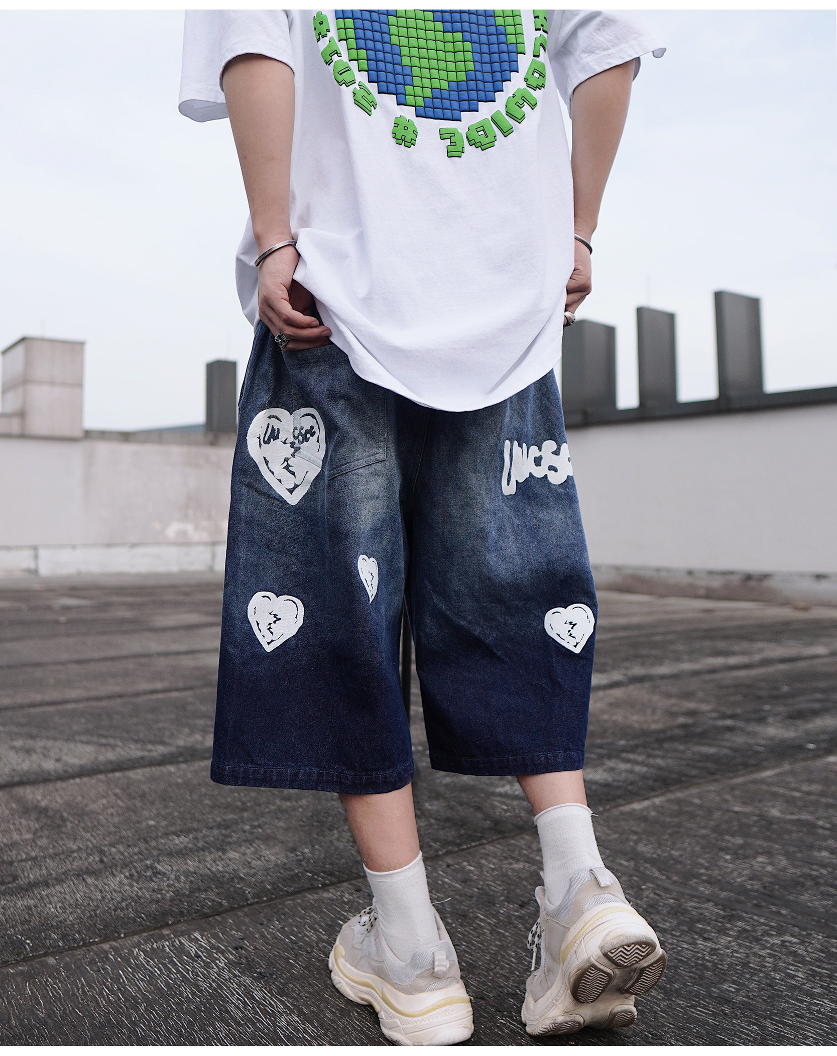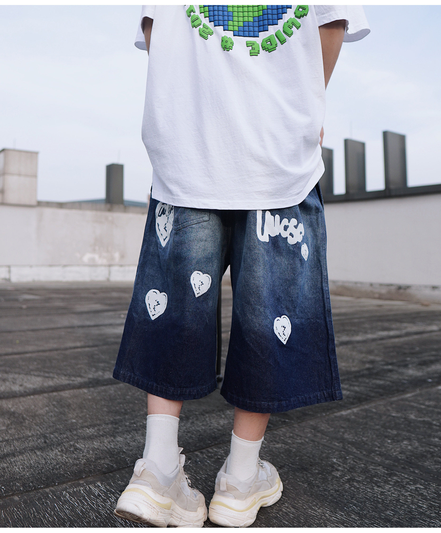 Heart Design Wide Leg Half Denim Jeans WN23997