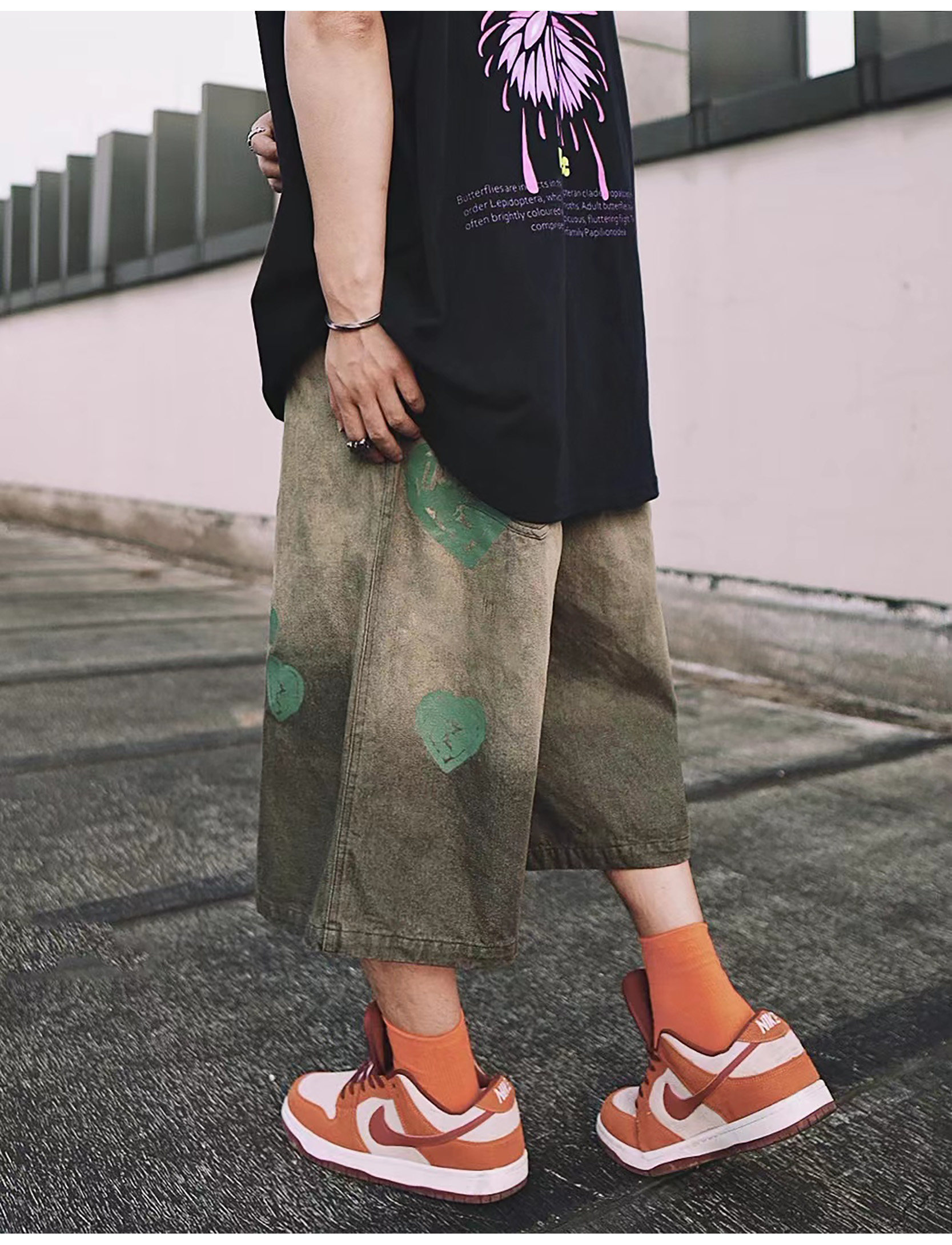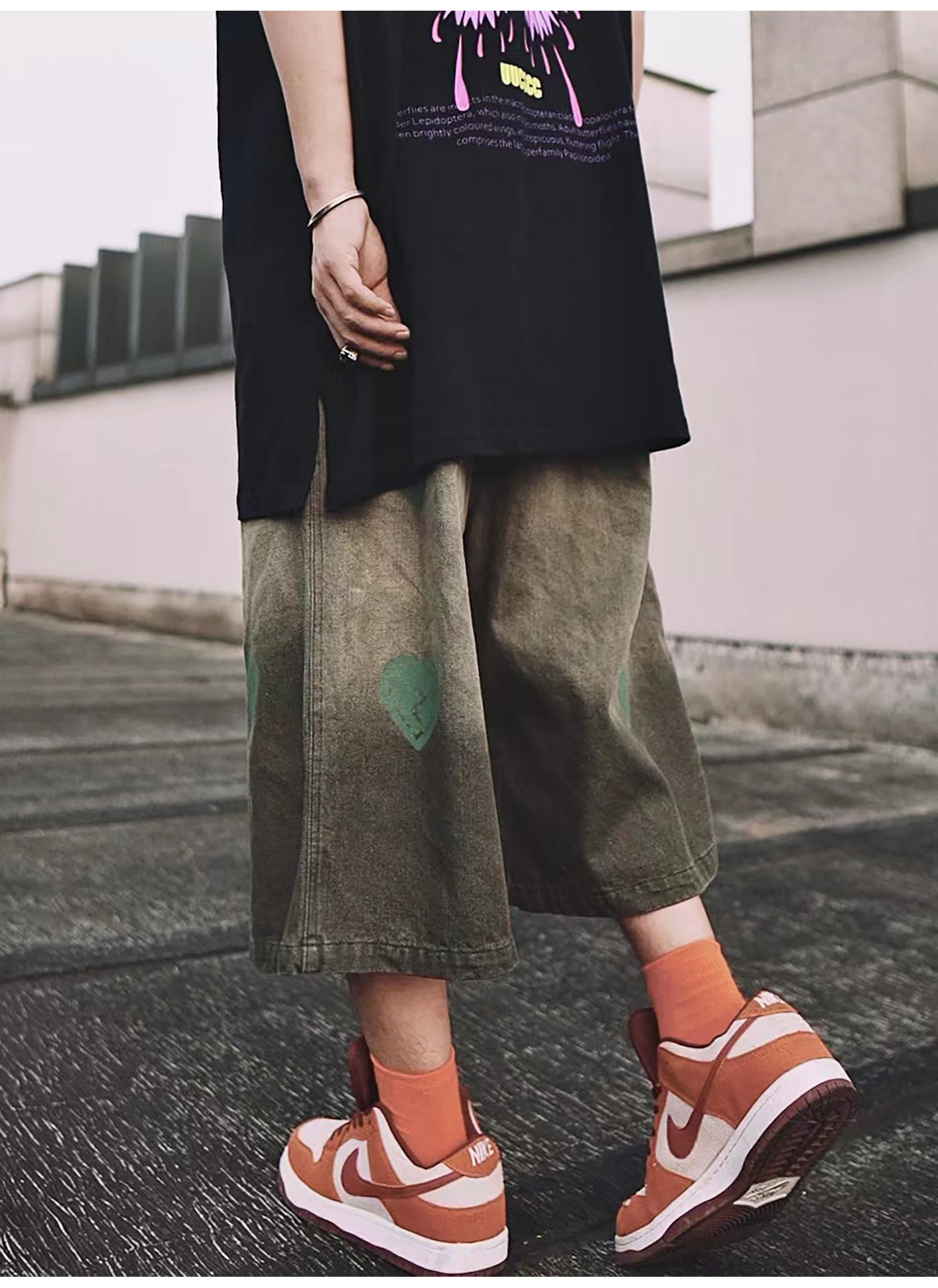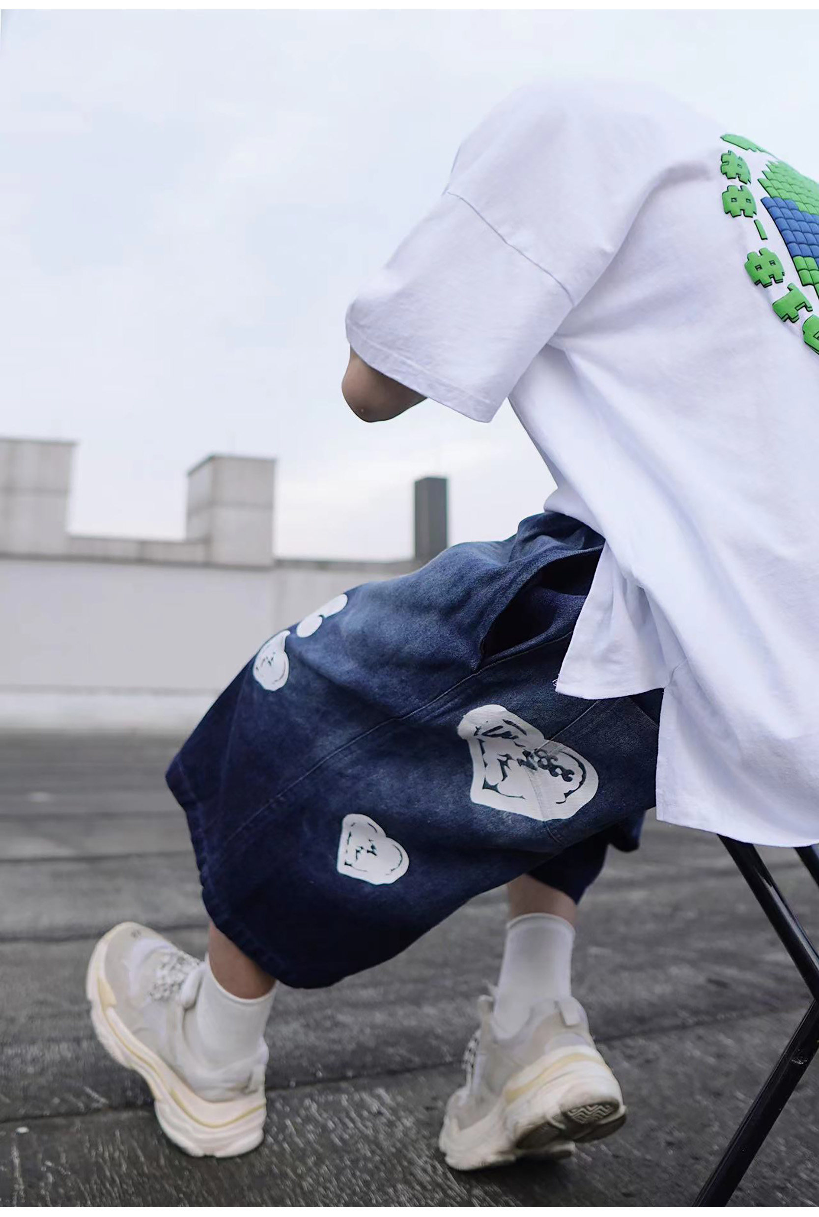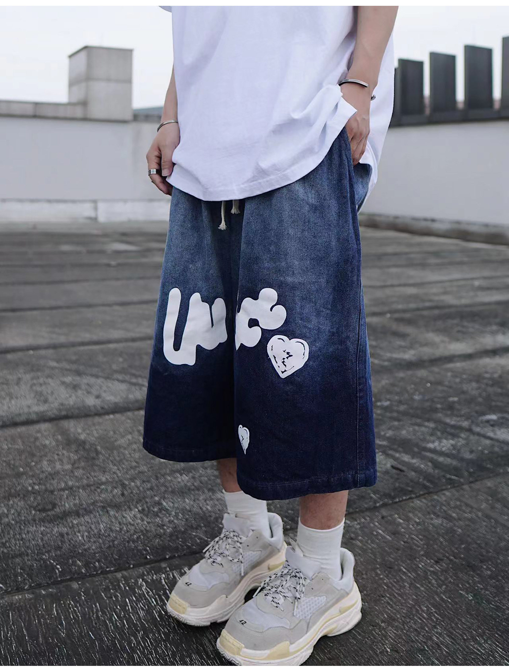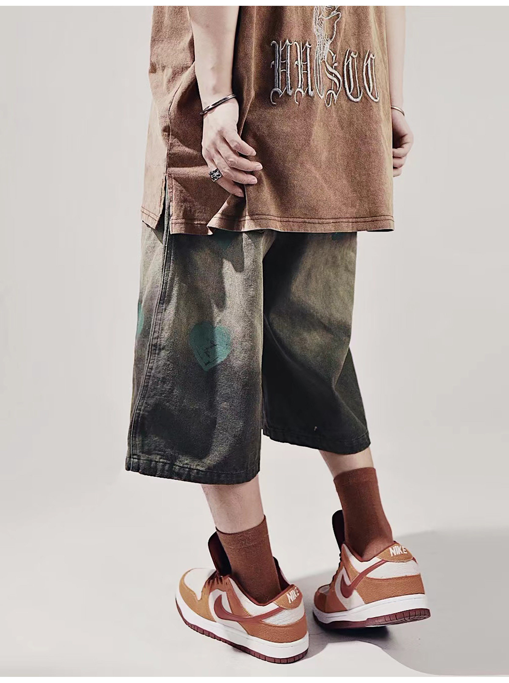 Heart Design Wide Leg Half Denim Jeans WN23997
