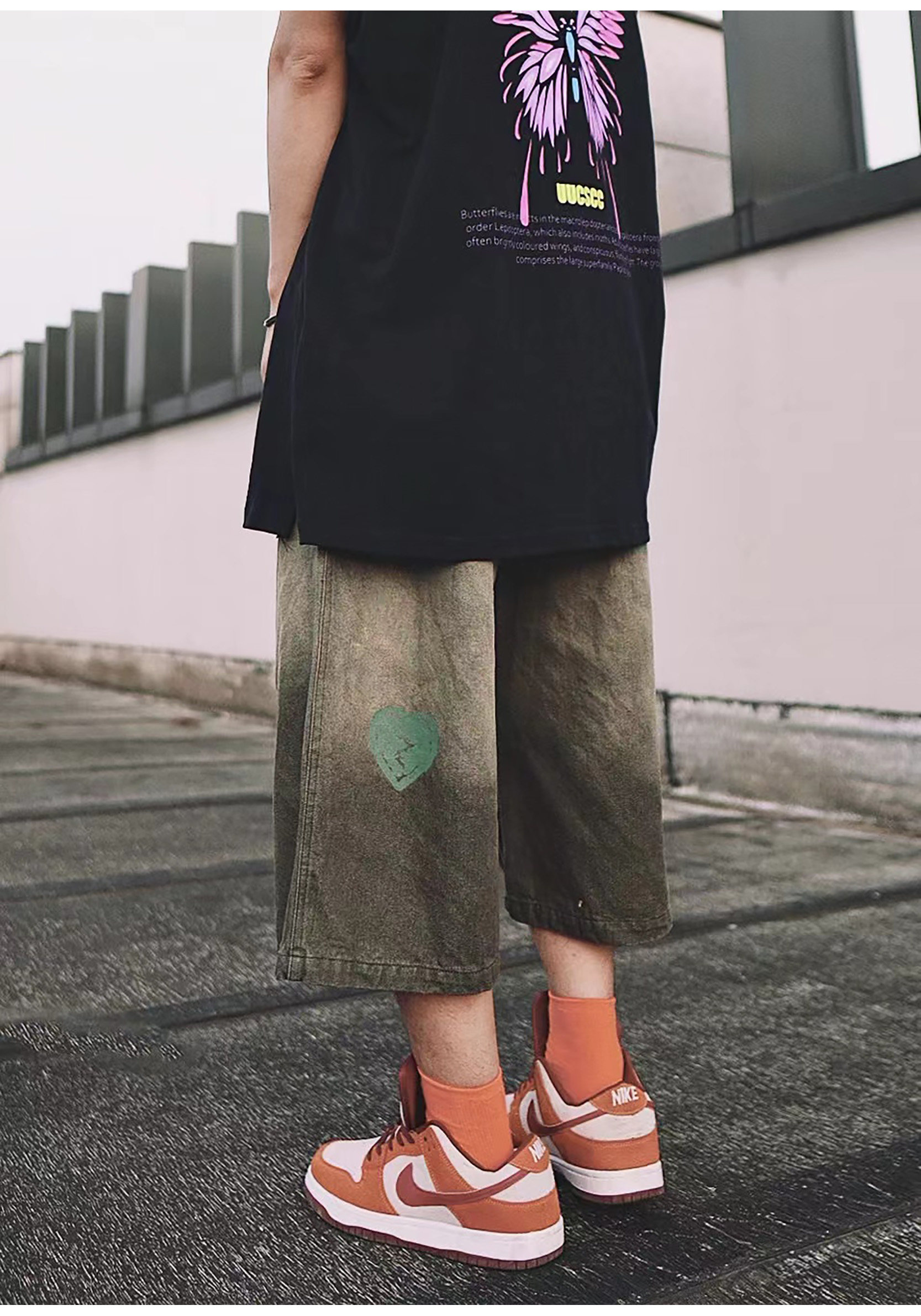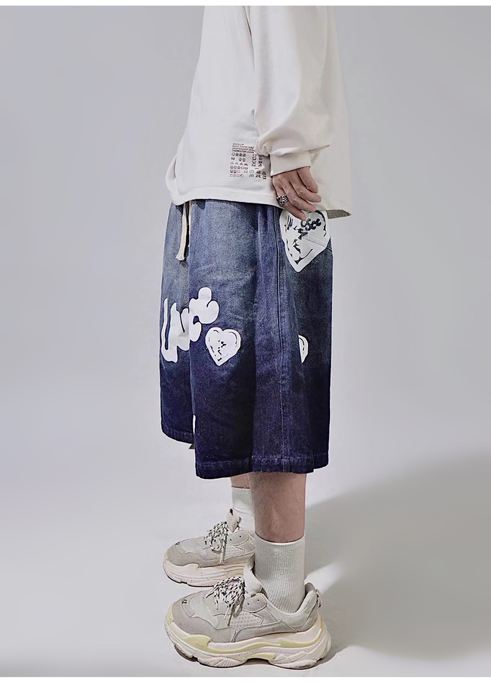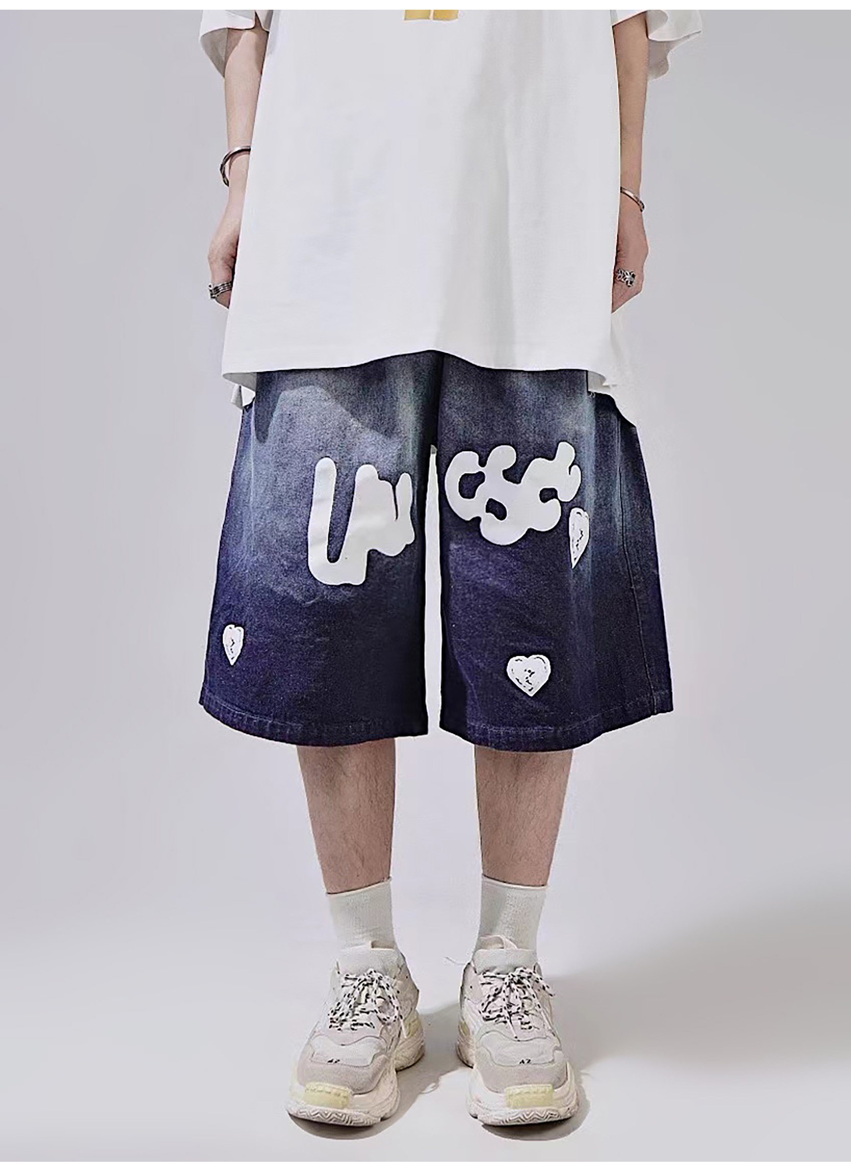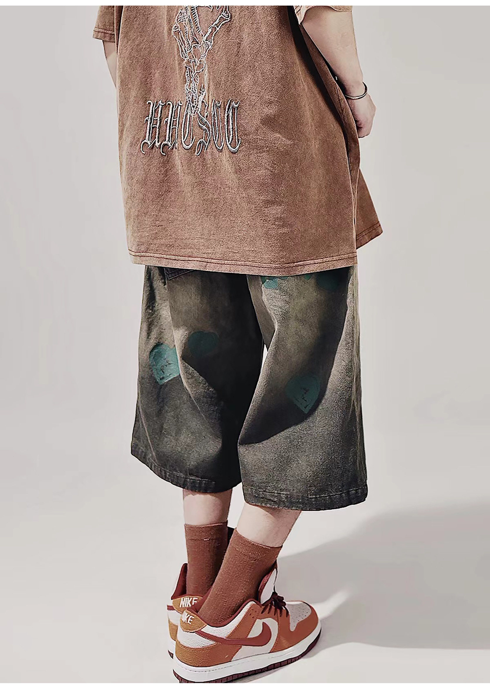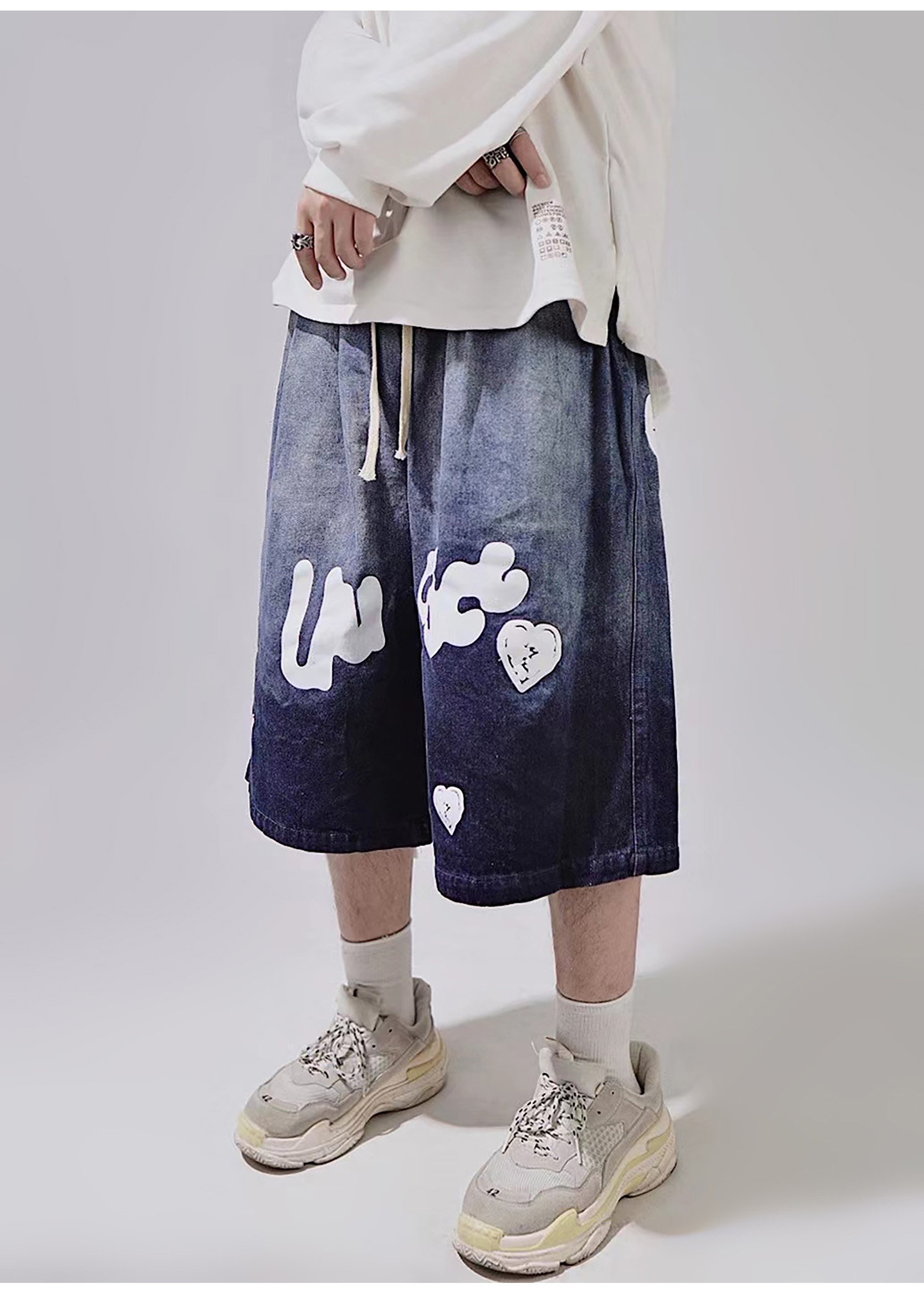 Heart Design Wide Leg Half Denim Jeans WN23997