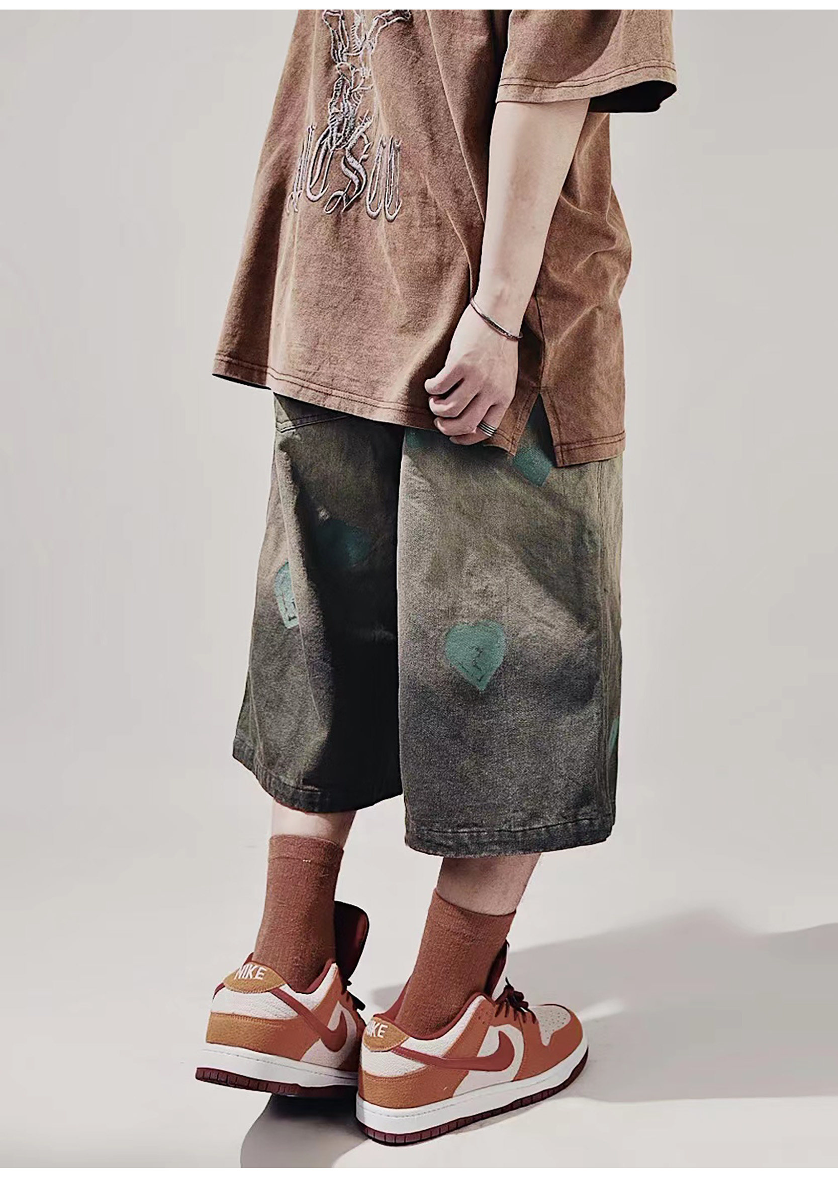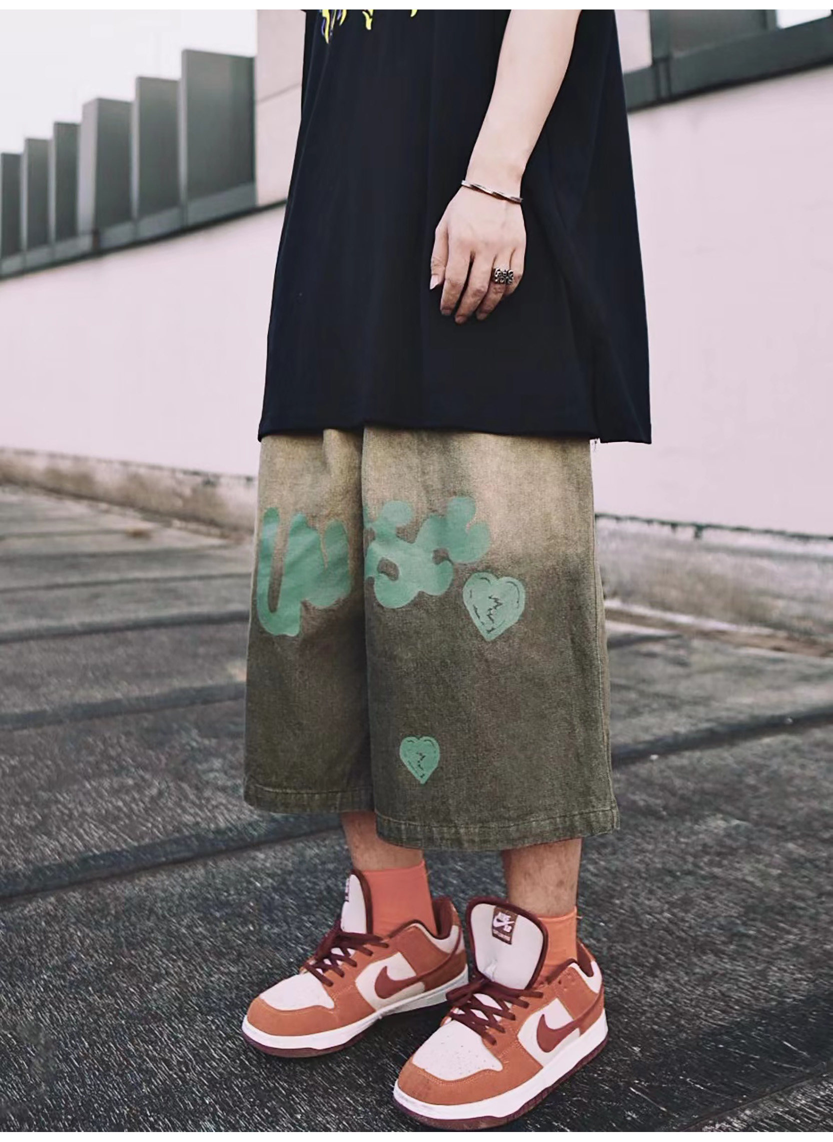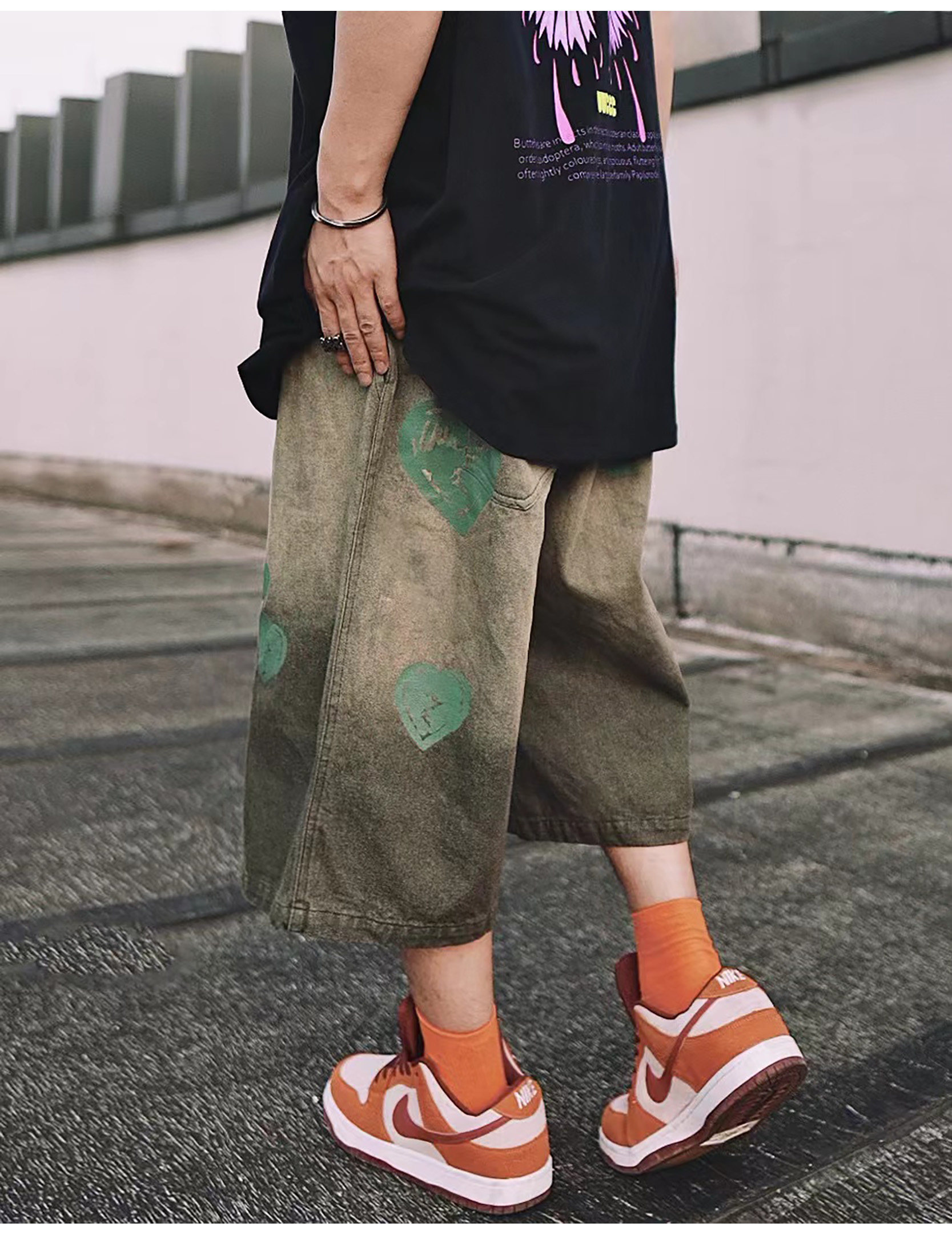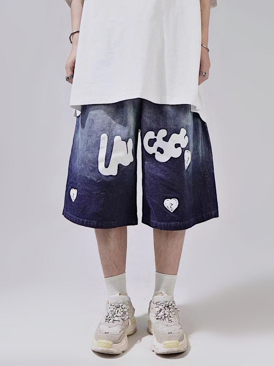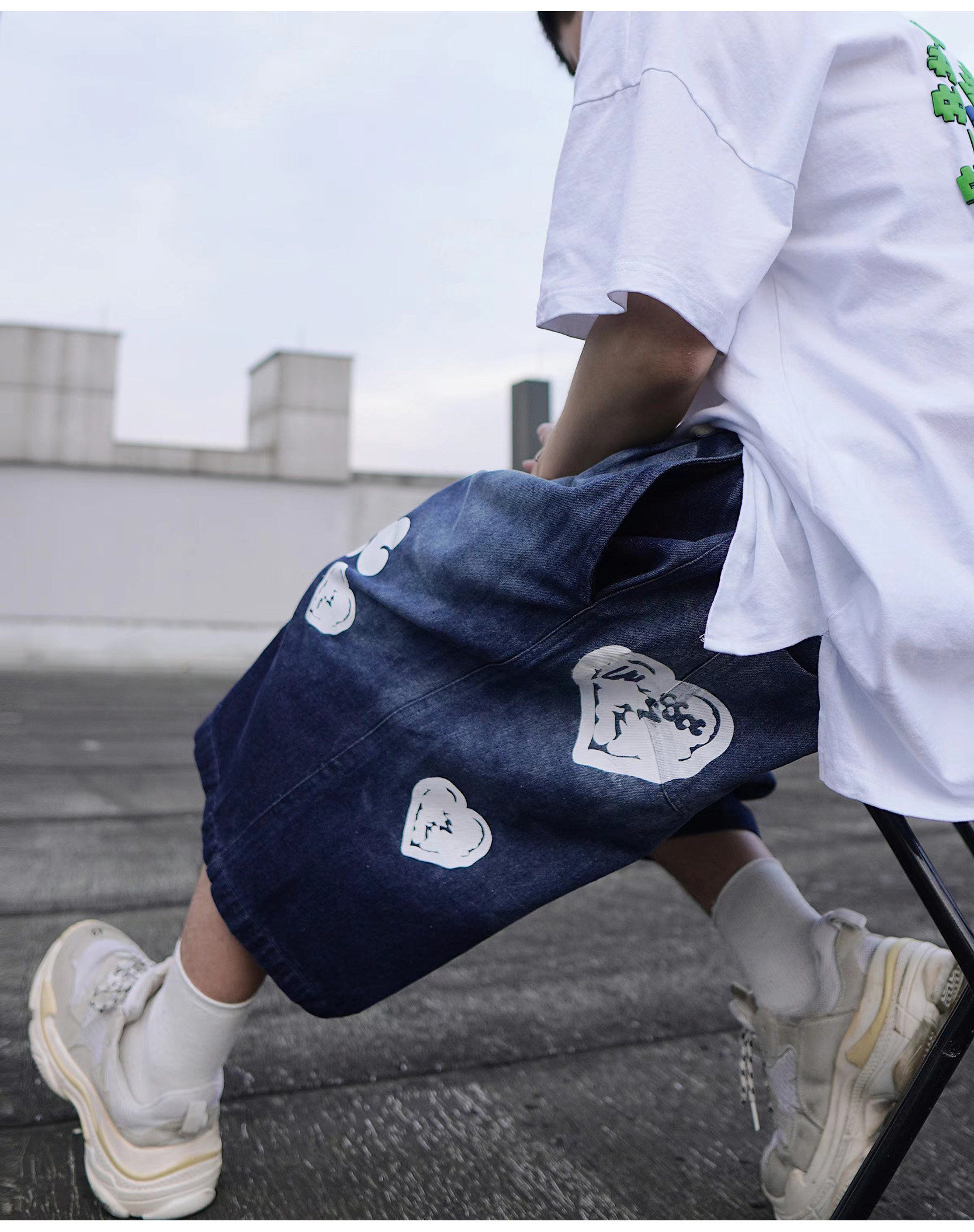 Heart Design Wide Leg Half Denim Jeans WN23997